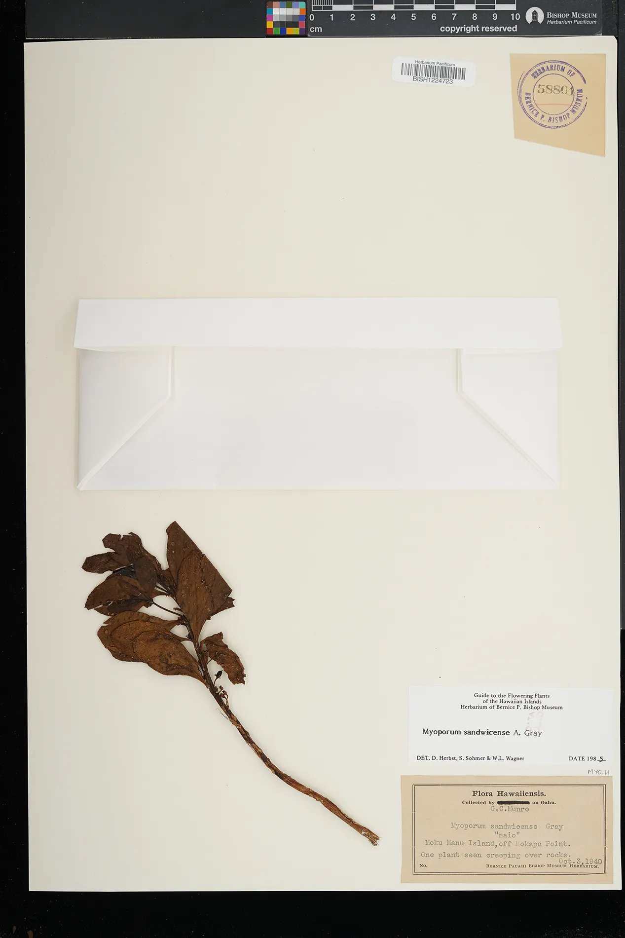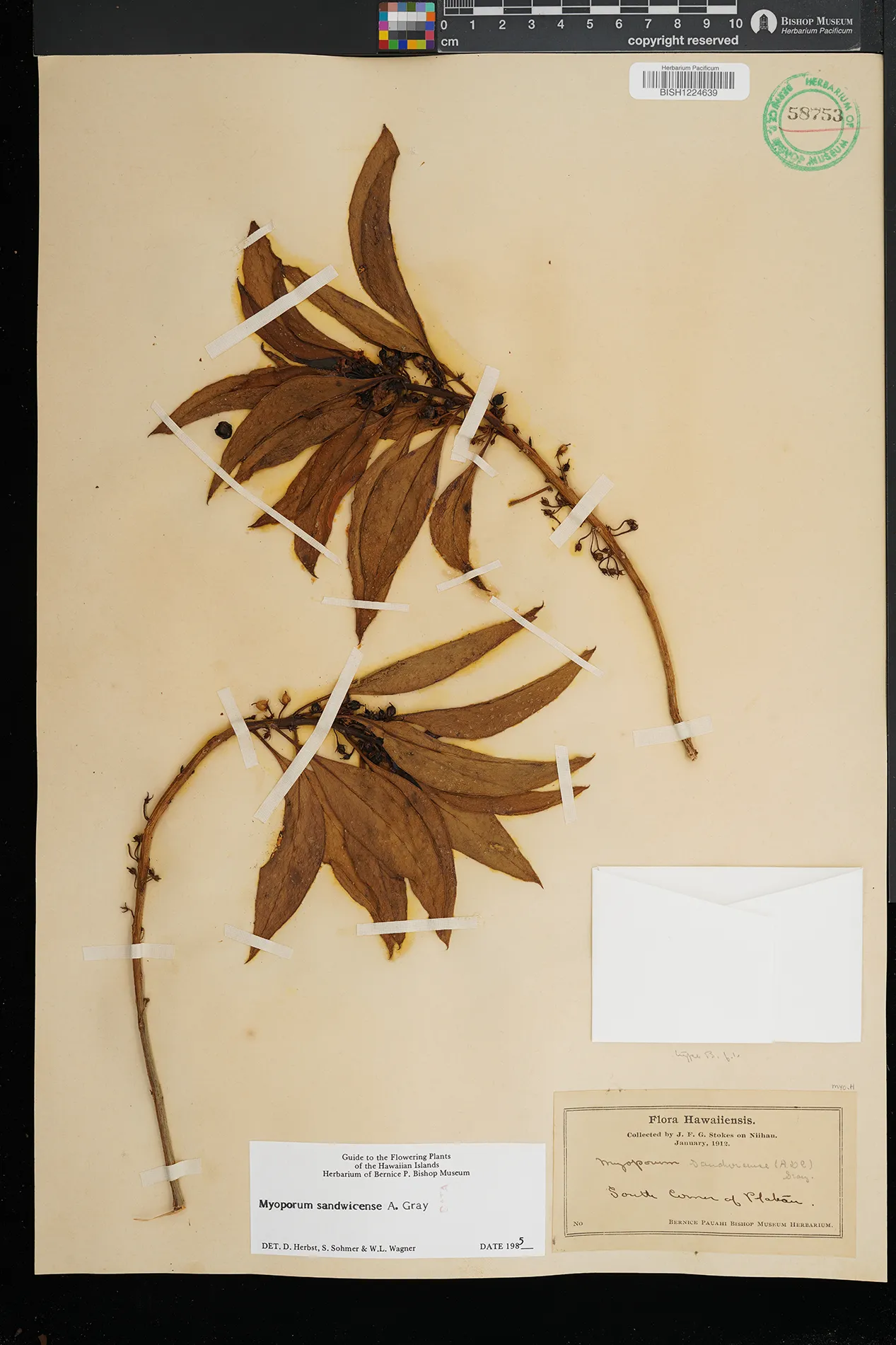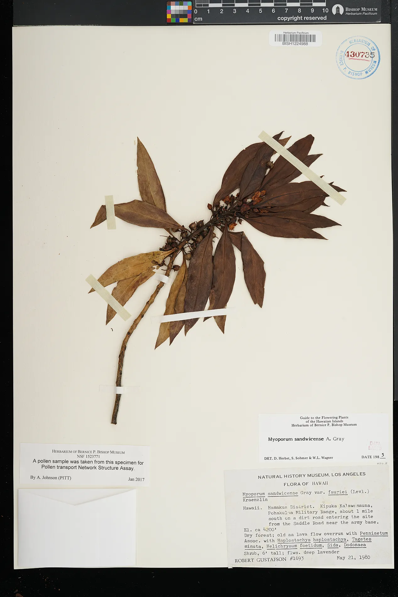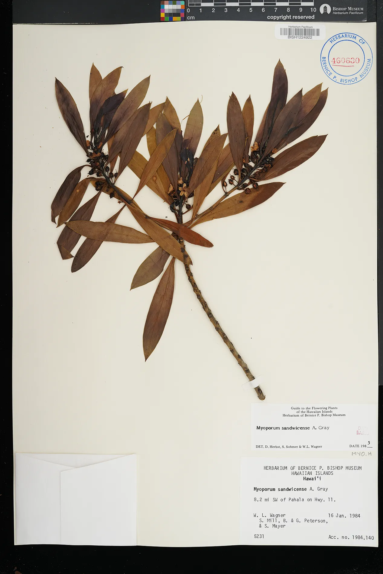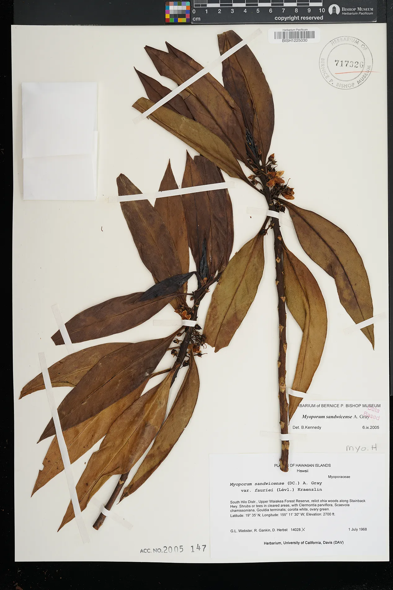 Wood has odor similar to sandalwood (Degener 1930:267). Used for house posts (Degener 1930:268; Krauss 1993:56). Burns well and long, used for torches (Lamb 1981:127). Wood used for fish net gauge (haha ka ‘upena) (Krauss 1993:35). In the Ethnology Collection at Bishop Museum there is a post-contact example of the wood made into a bowl.