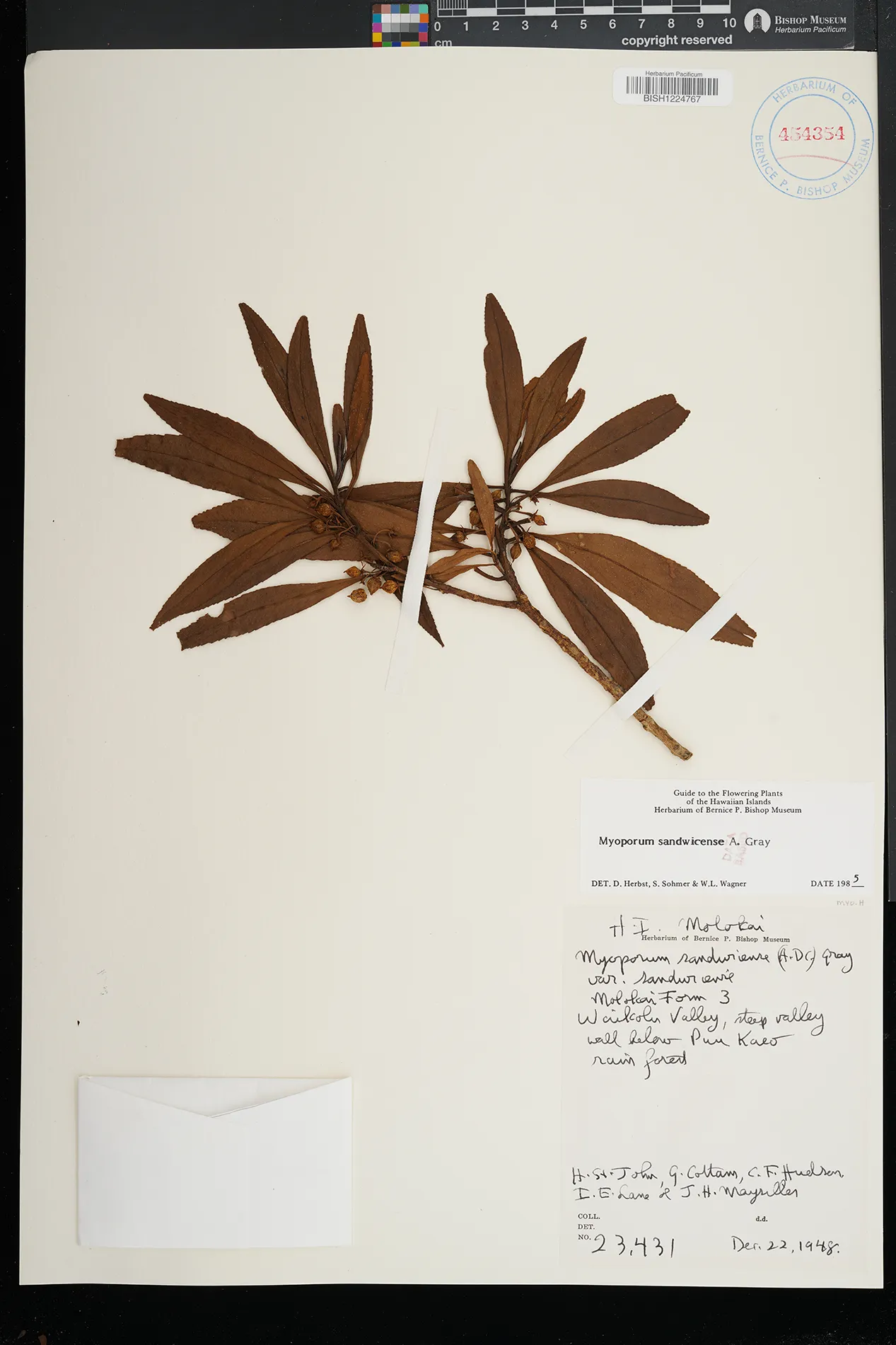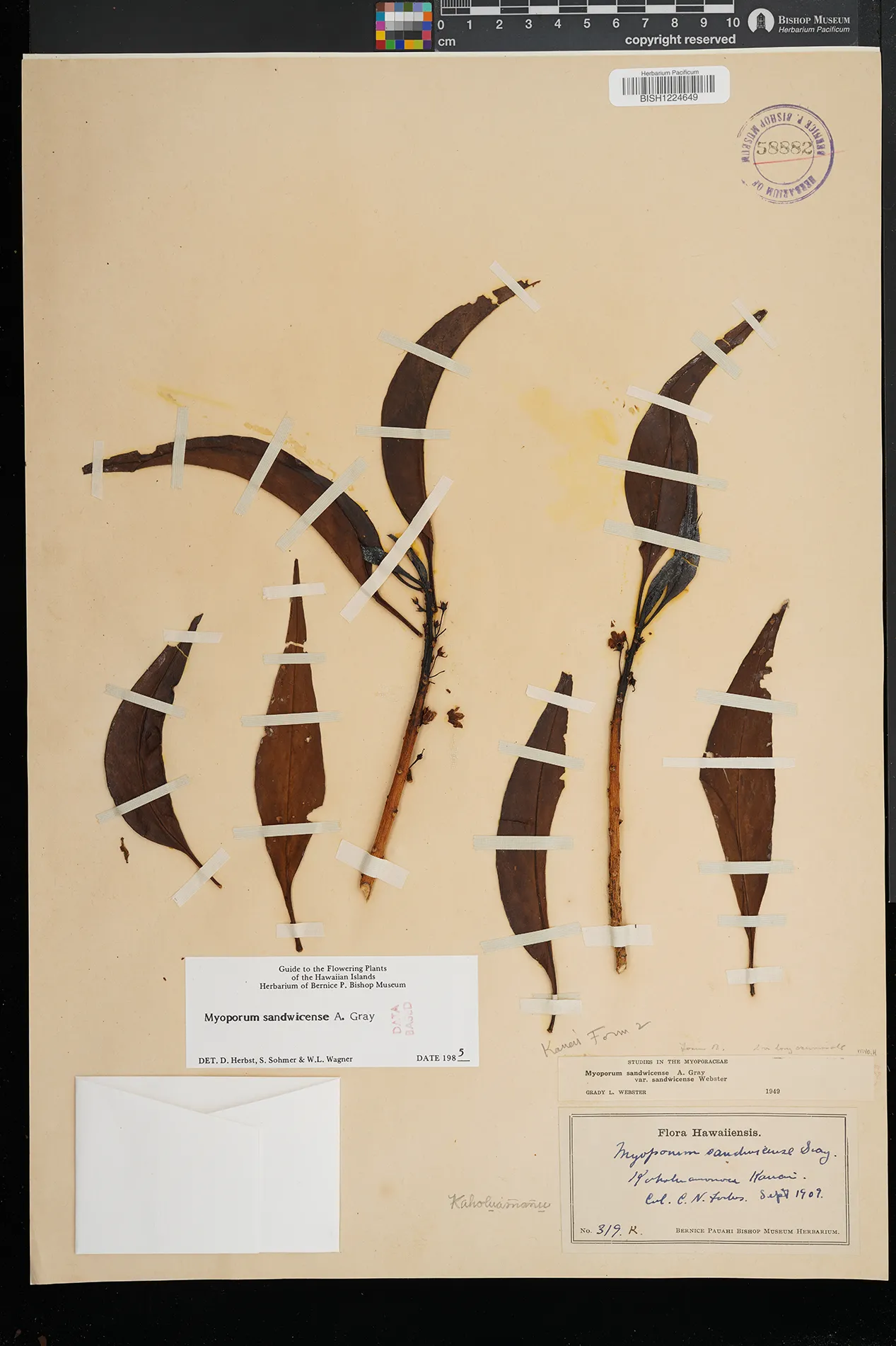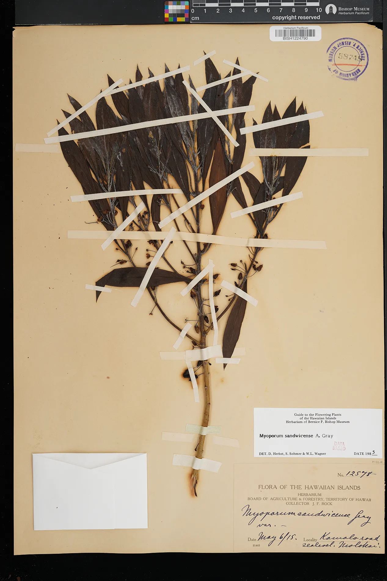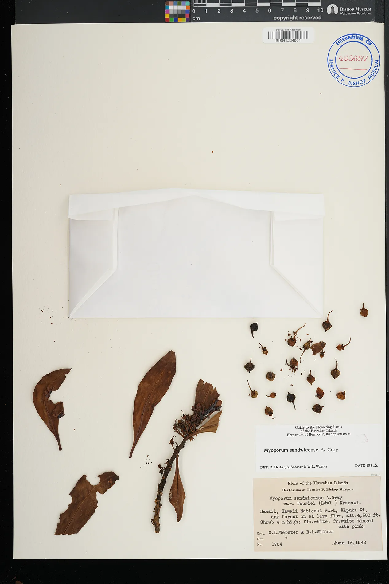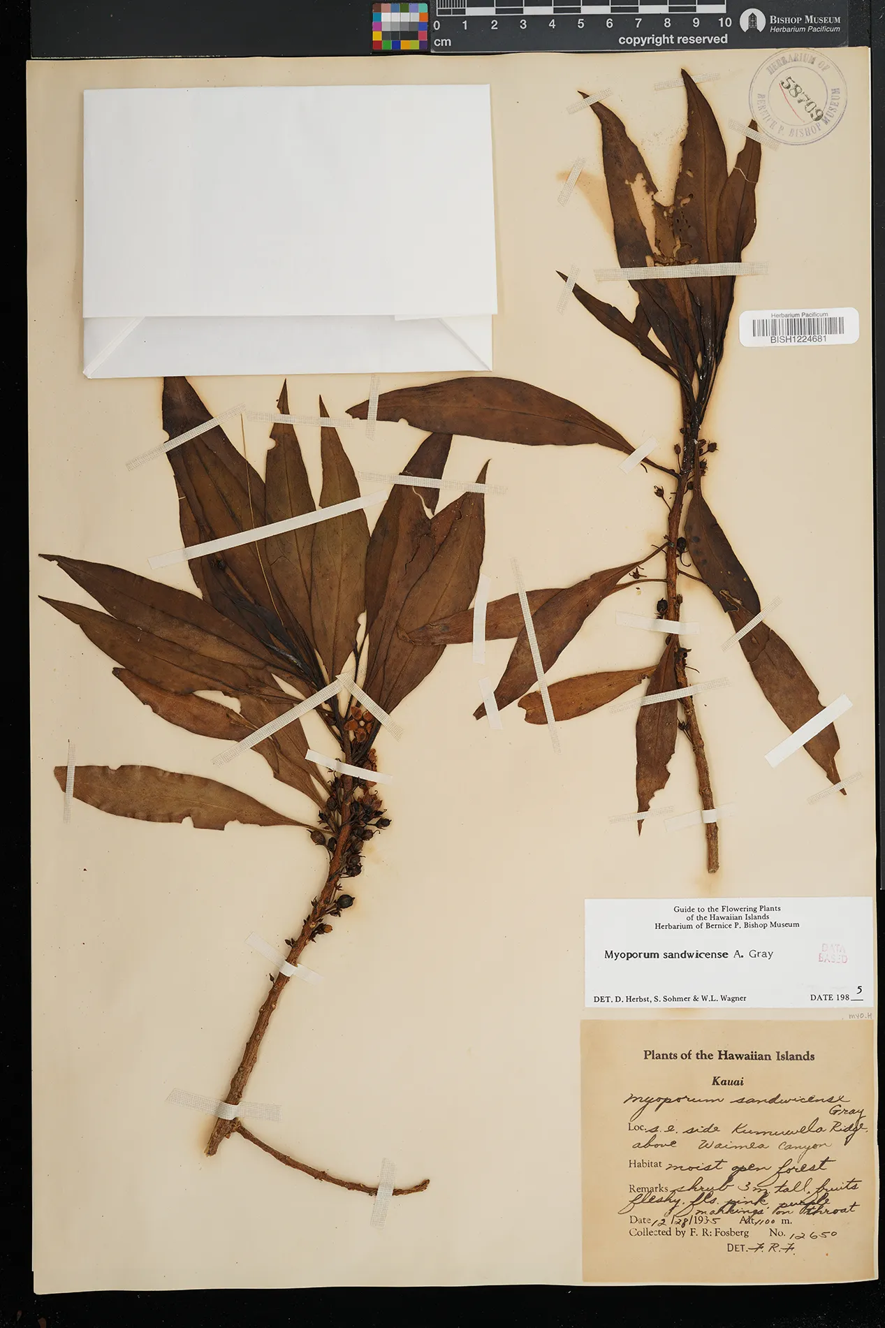 Wood has odor similar to sandalwood (Degener 1930:267). Used for house posts (Degener 1930:268; Krauss 1993:56). Burns well and long, used for torches (Lamb 1981:127). Wood used for fish net gauge (haha ka ‘upena) (Krauss 1993:35). In the Ethnology Collection at Bishop Museum there is a post-contact example of the wood made into a bowl.