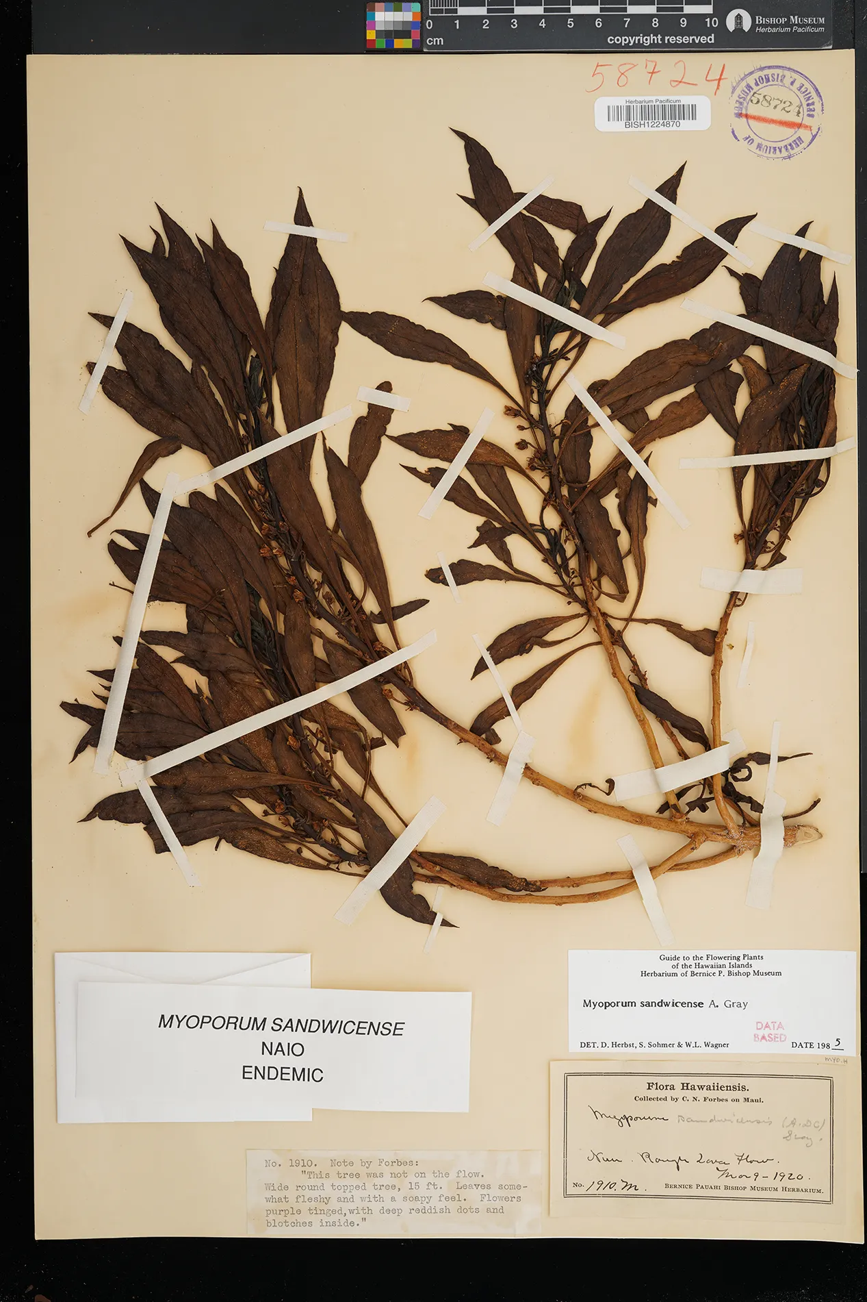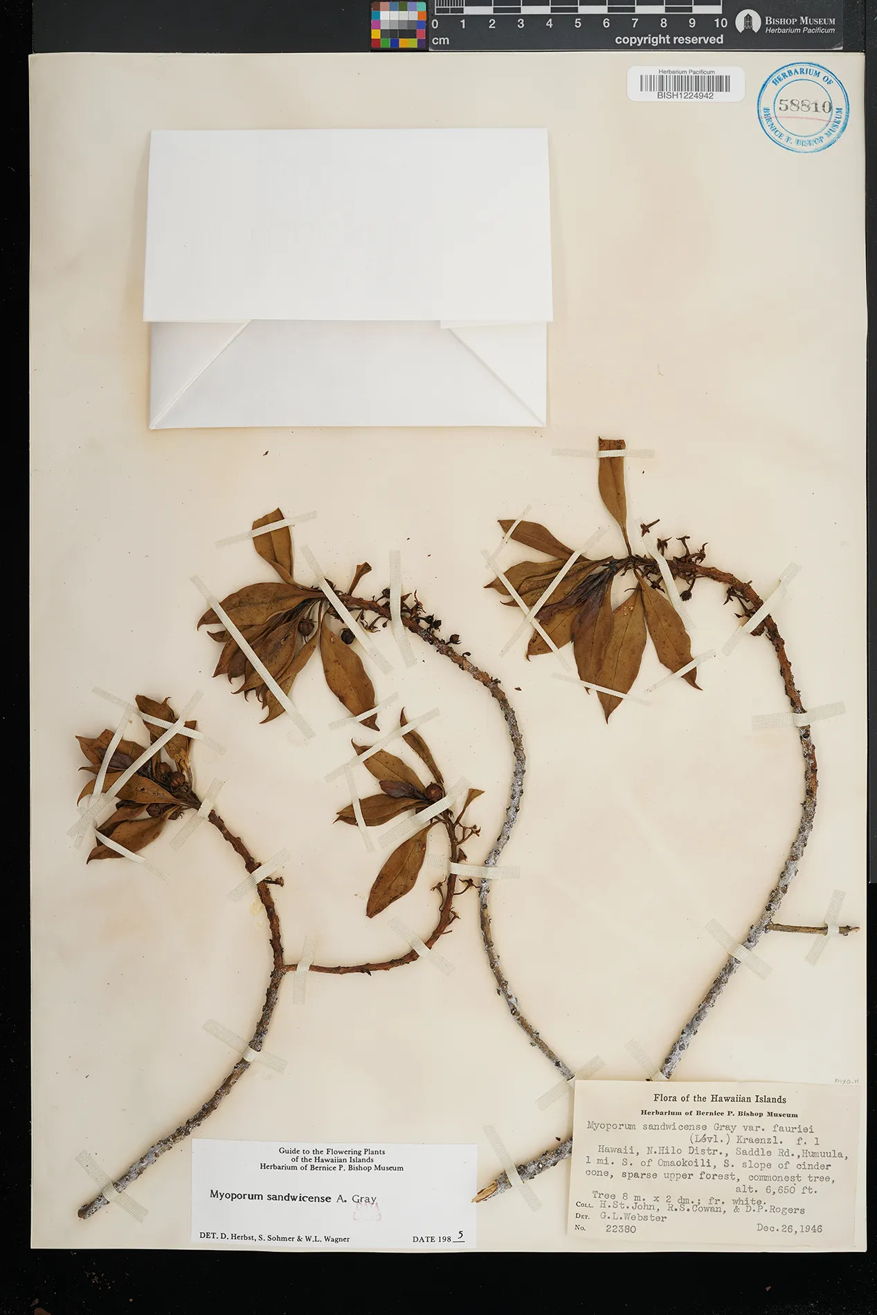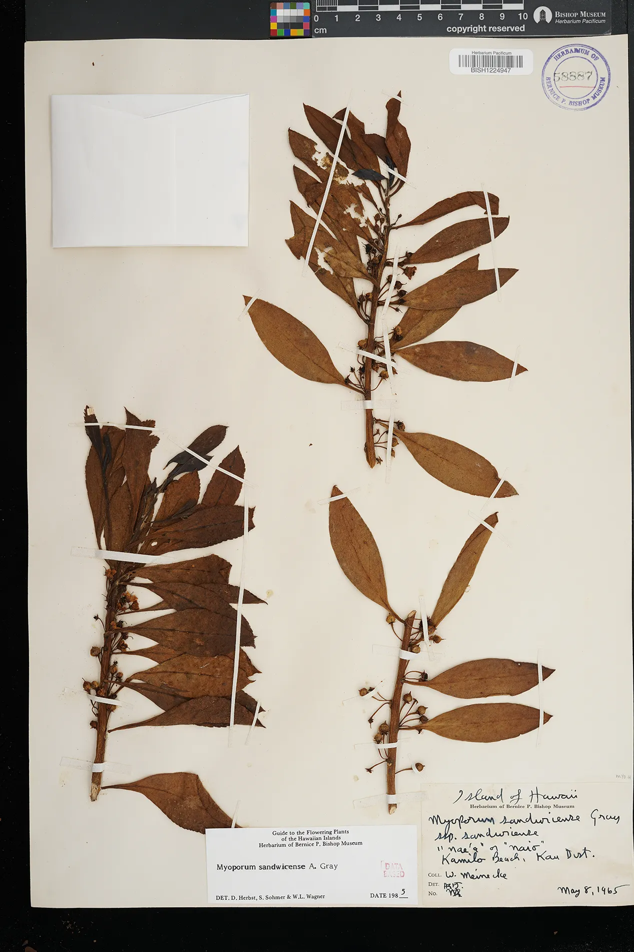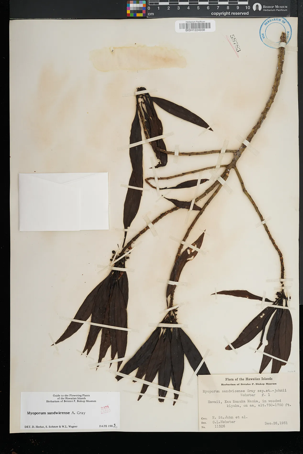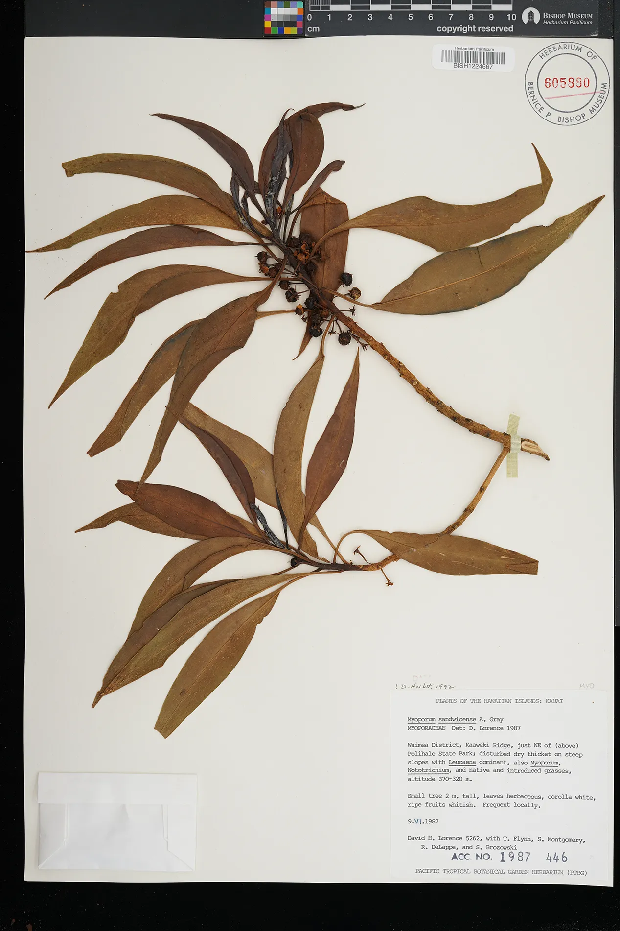 Wood has odor similar to sandalwood (Degener 1930:267). Used for house posts (Degener 1930:268; Krauss 1993:56). Burns well and long, used for torches (Lamb 1981:127). Wood used for fish net gauge (haha ka ‘upena) (Krauss 1993:35). In the Ethnology Collection at Bishop Museum there is a post-contact example of the wood made into a bowl.
