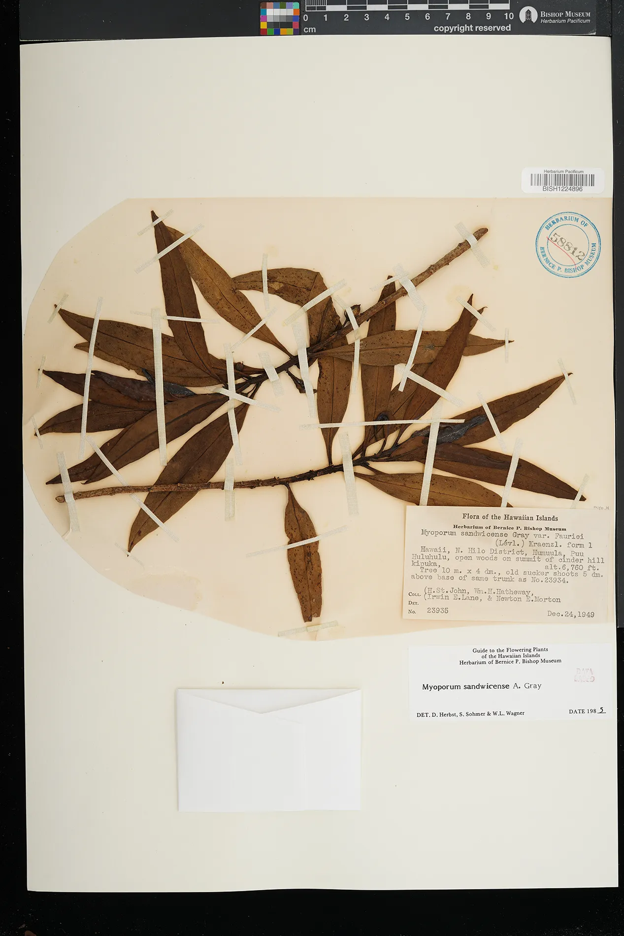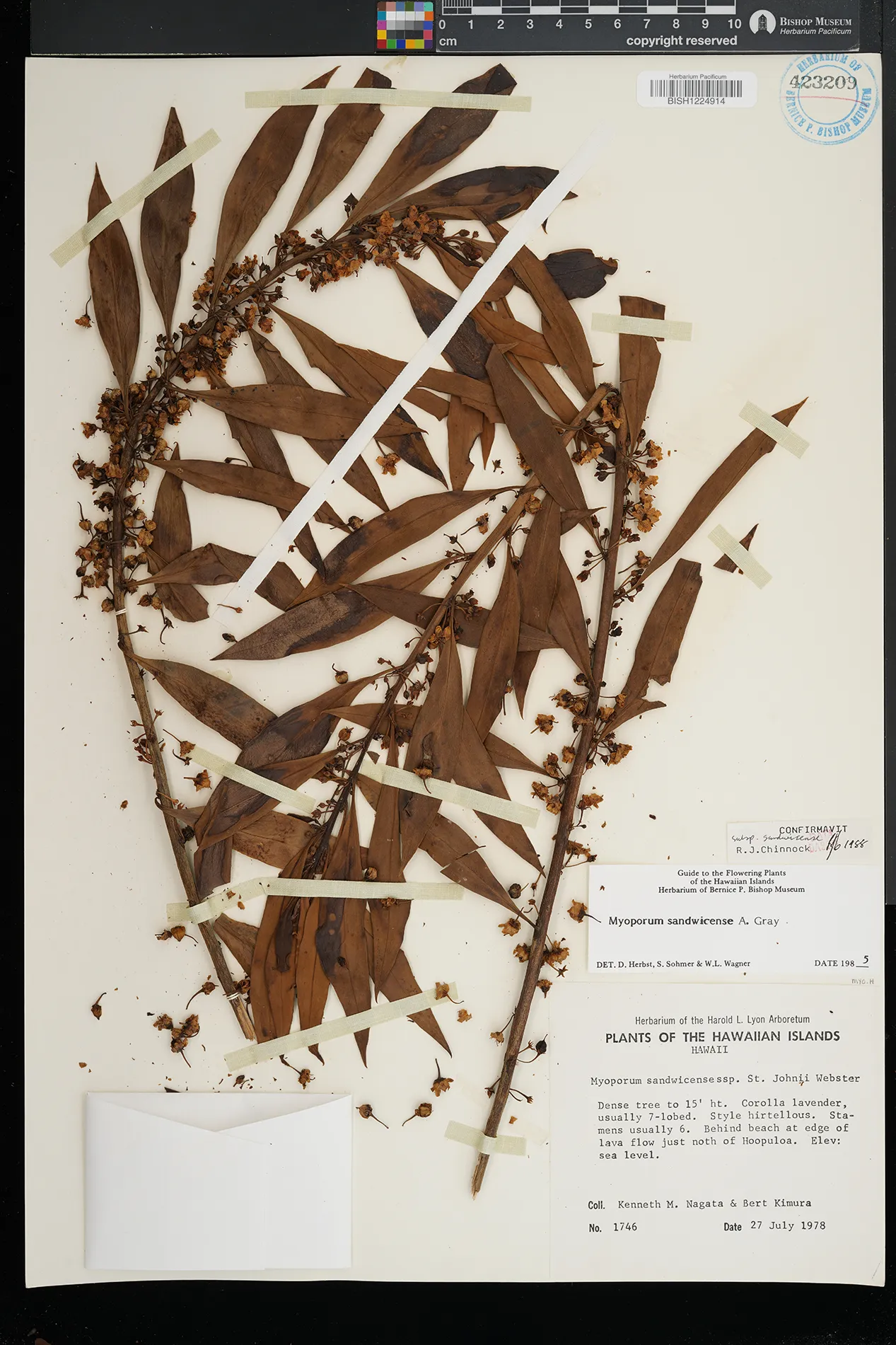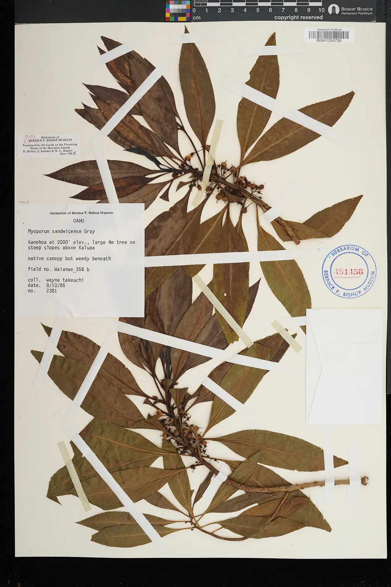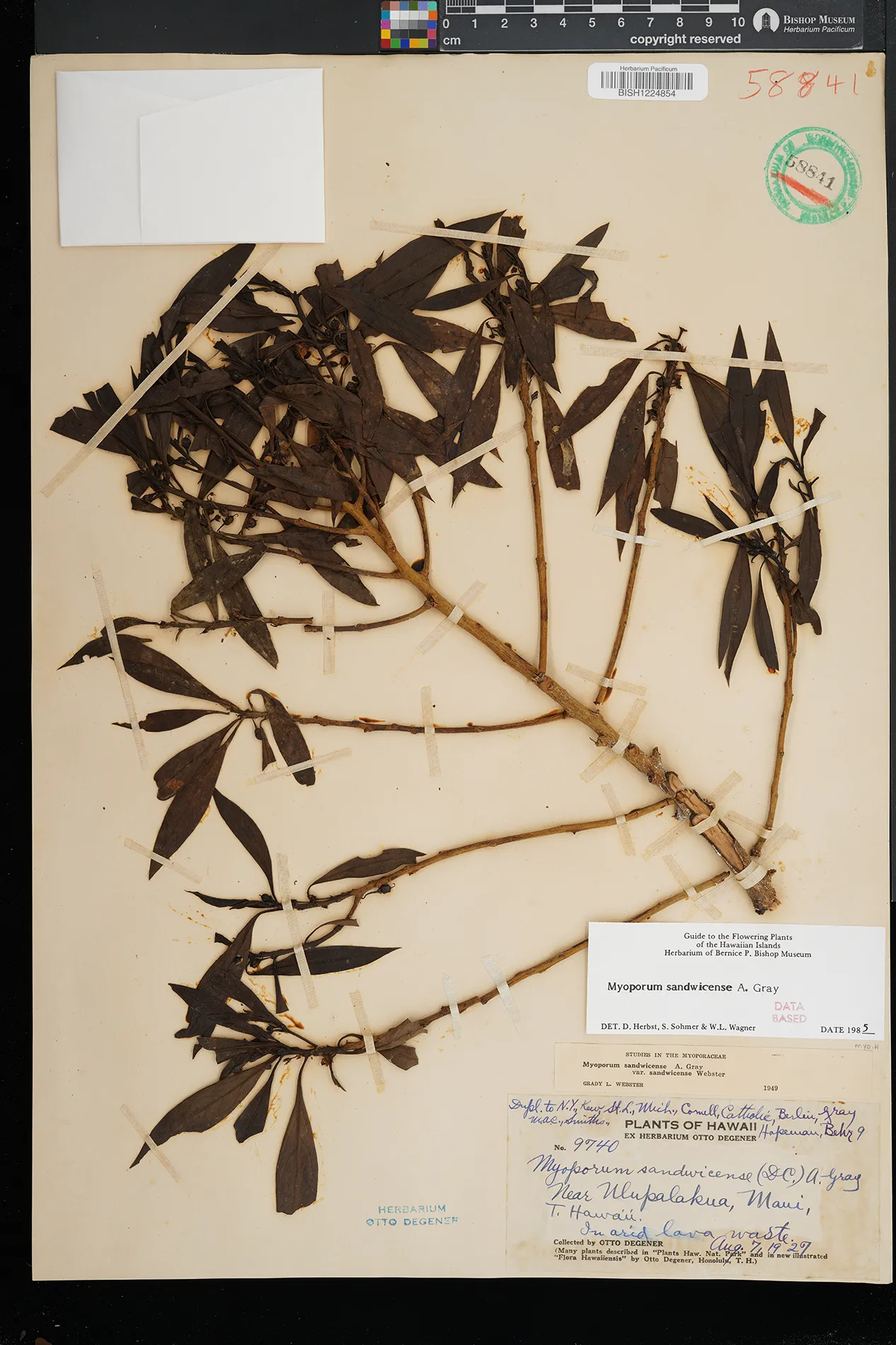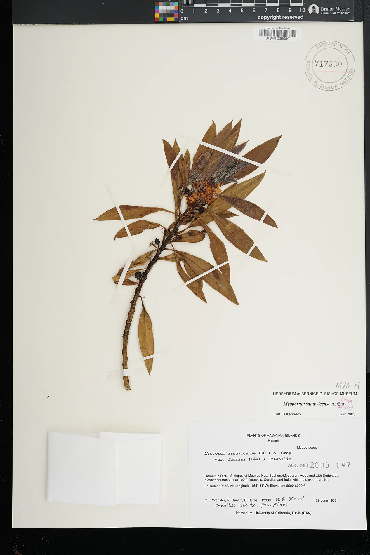 Wood has odor similar to sandalwood (Degener 1930:267). Used for house posts (Degener 1930:268; Krauss 1993:56). Burns well and long, used for torches (Lamb 1981:127). Wood used for fish net gauge (haha ka ‘upena) (Krauss 1993:35). In the Ethnology Collection at Bishop Museum there is a post-contact example of the wood made into a bowl.