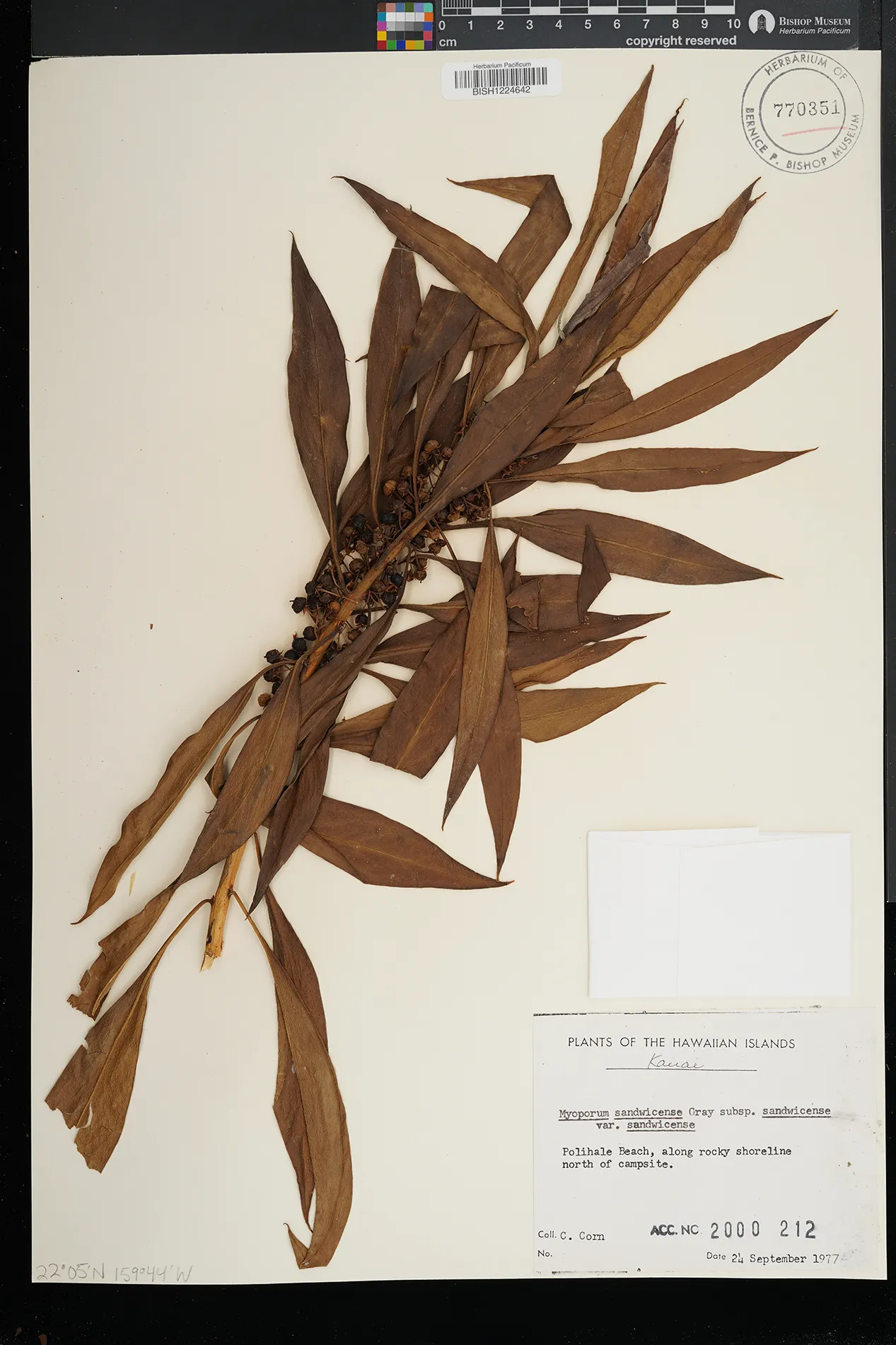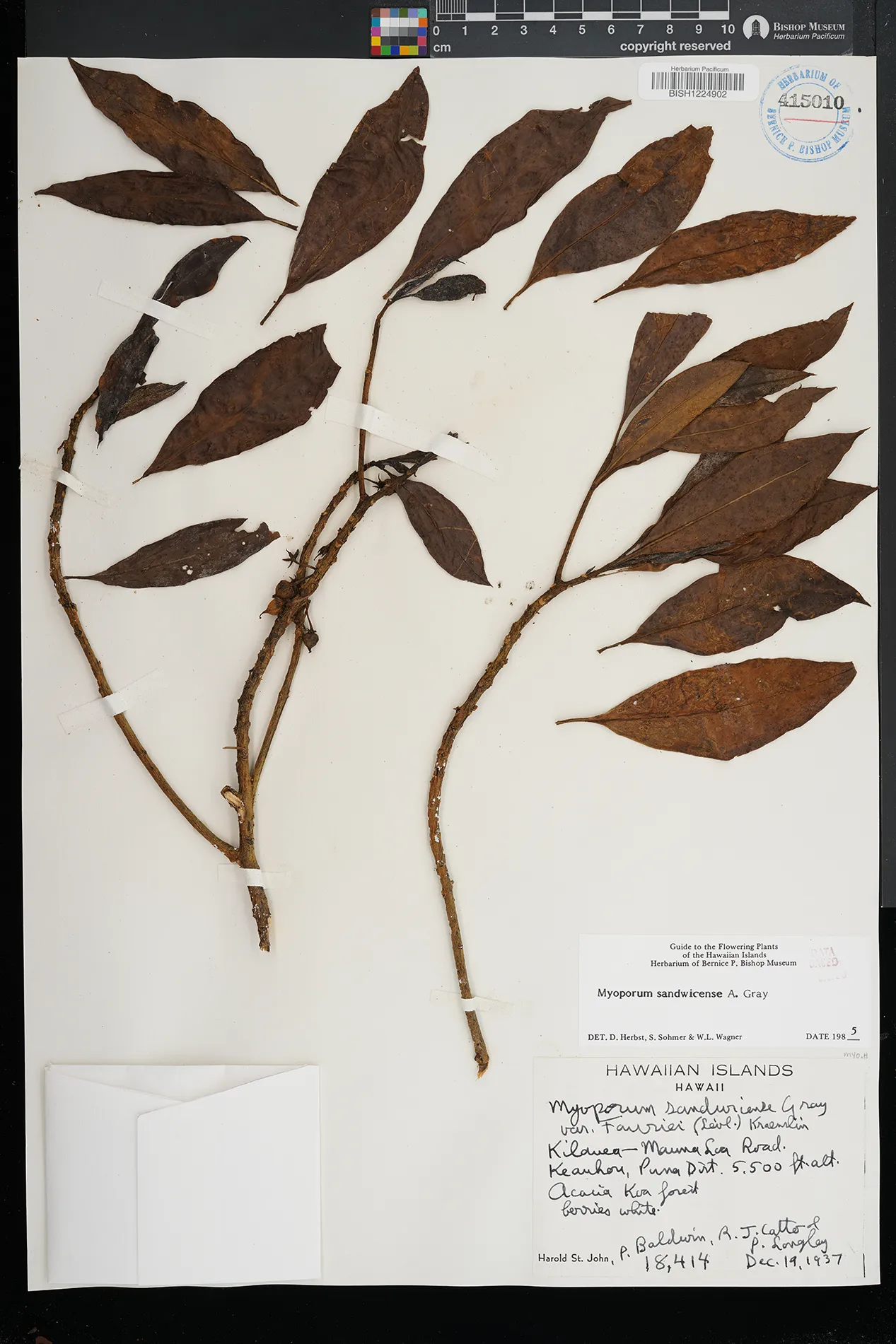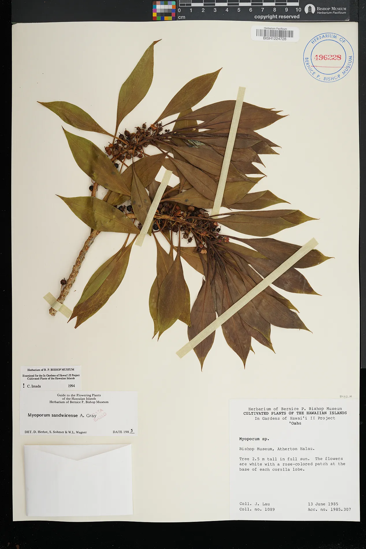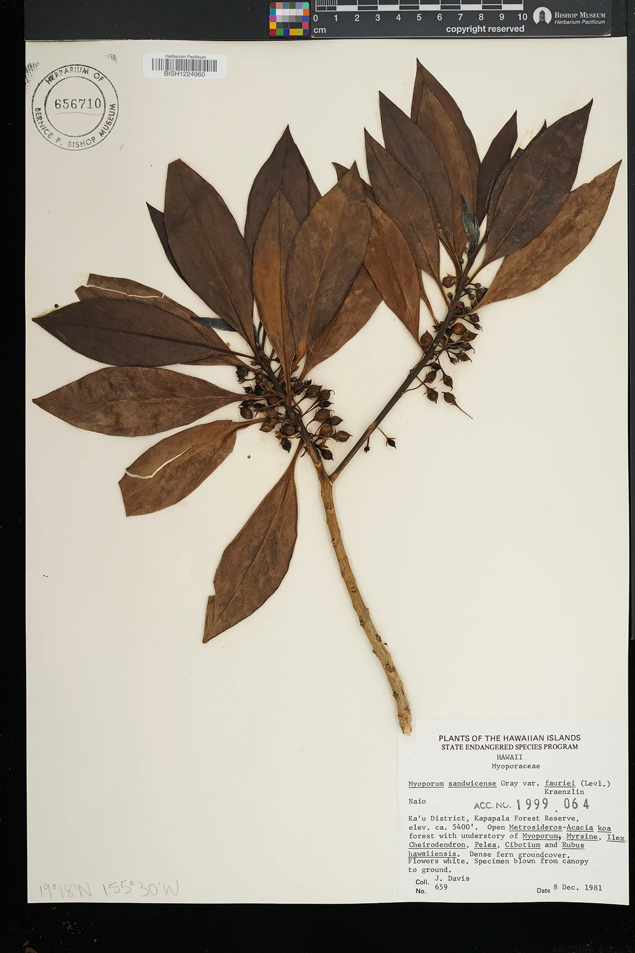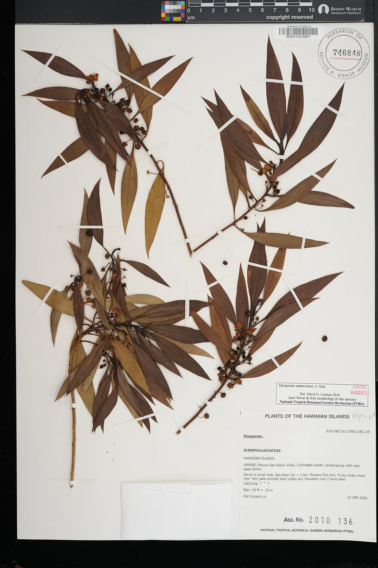 Wood has odor similar to sandalwood (Degener 1930:267). Used for house posts (Degener 1930:268; Krauss 1993:56). Burns well and long, used for torches (Lamb 1981:127). Wood used for fish net gauge (haha ka ‘upena) (Krauss 1993:35). In the Ethnology Collection at Bishop Museum there is a post-contact example of the wood made into a bowl.