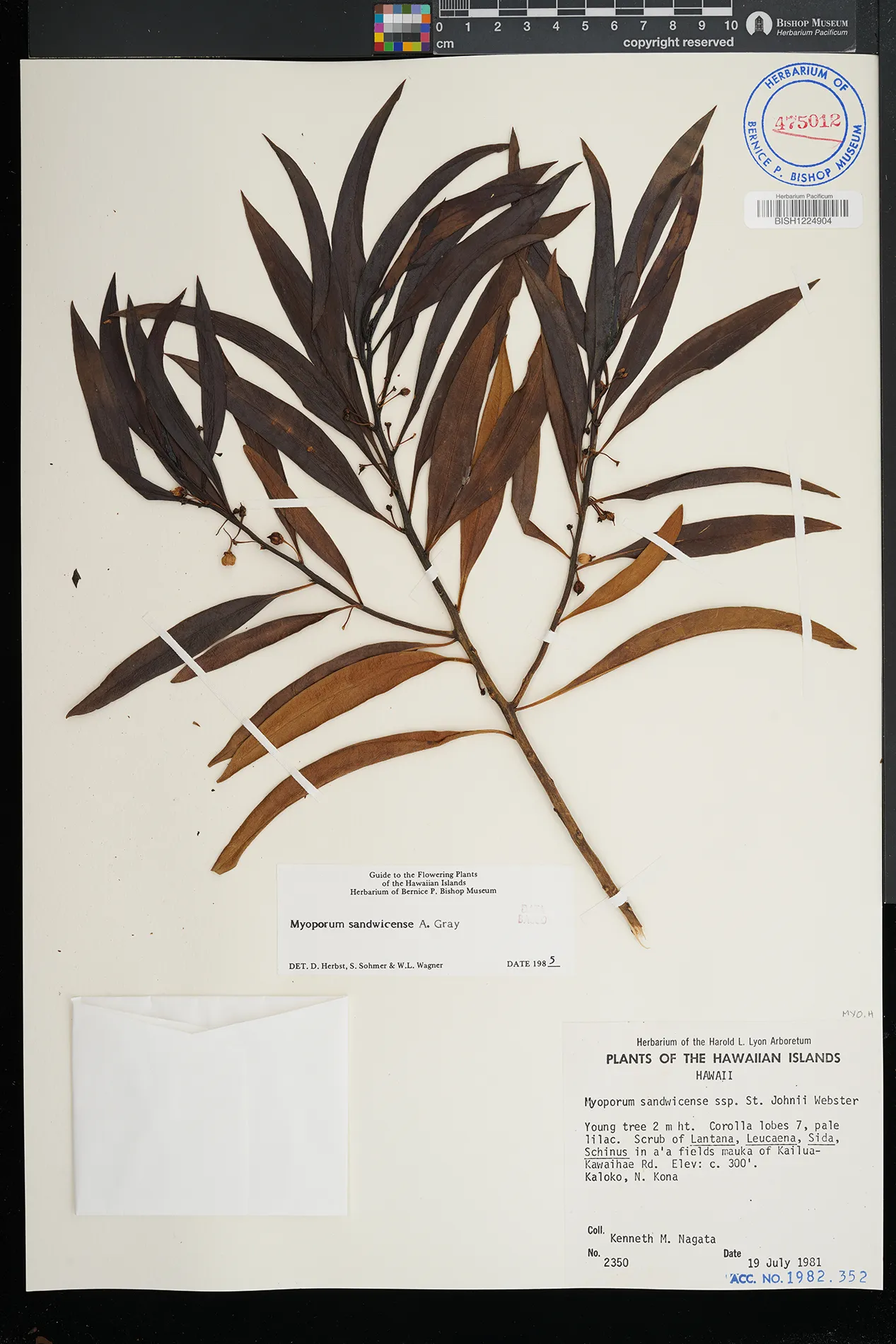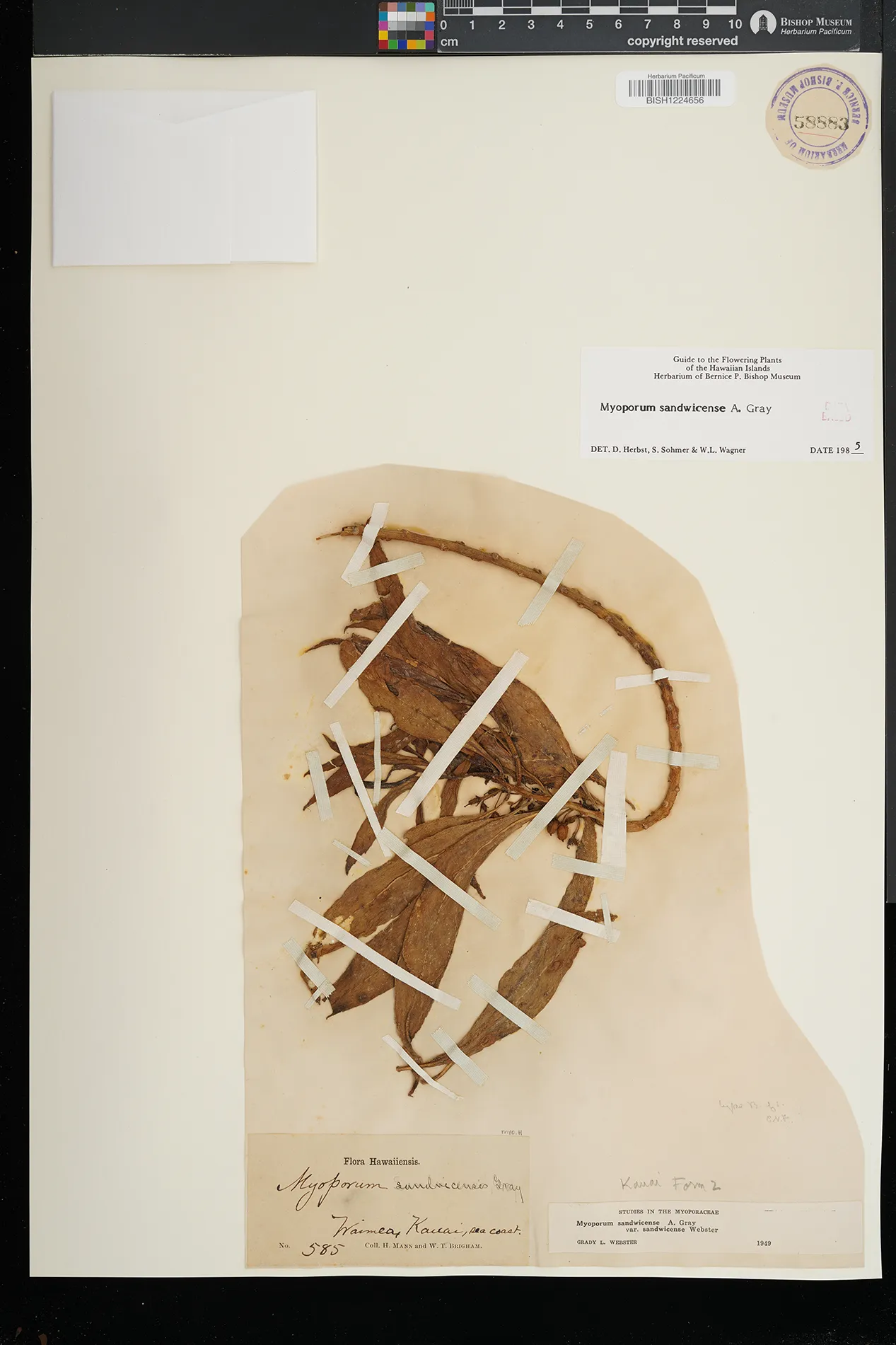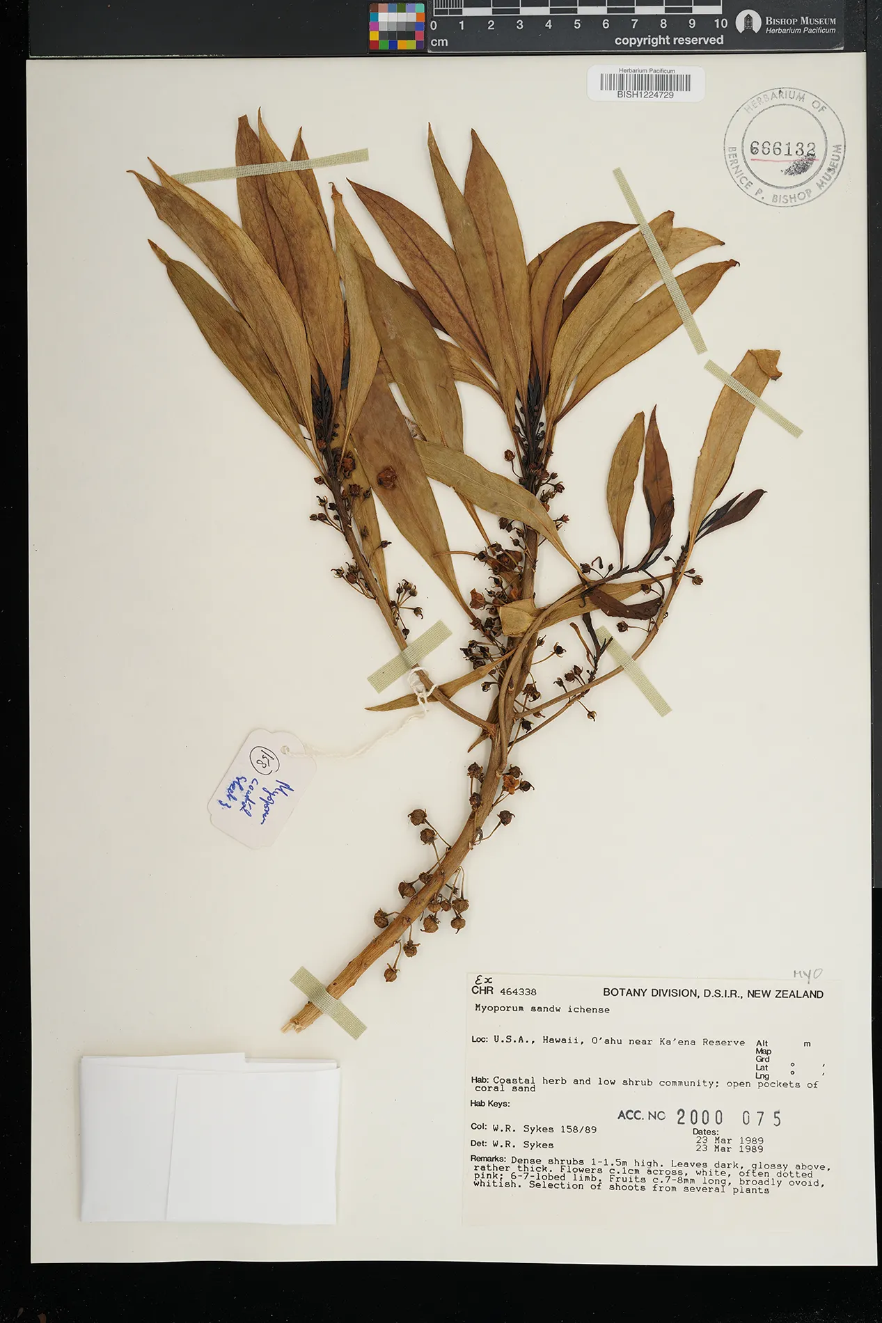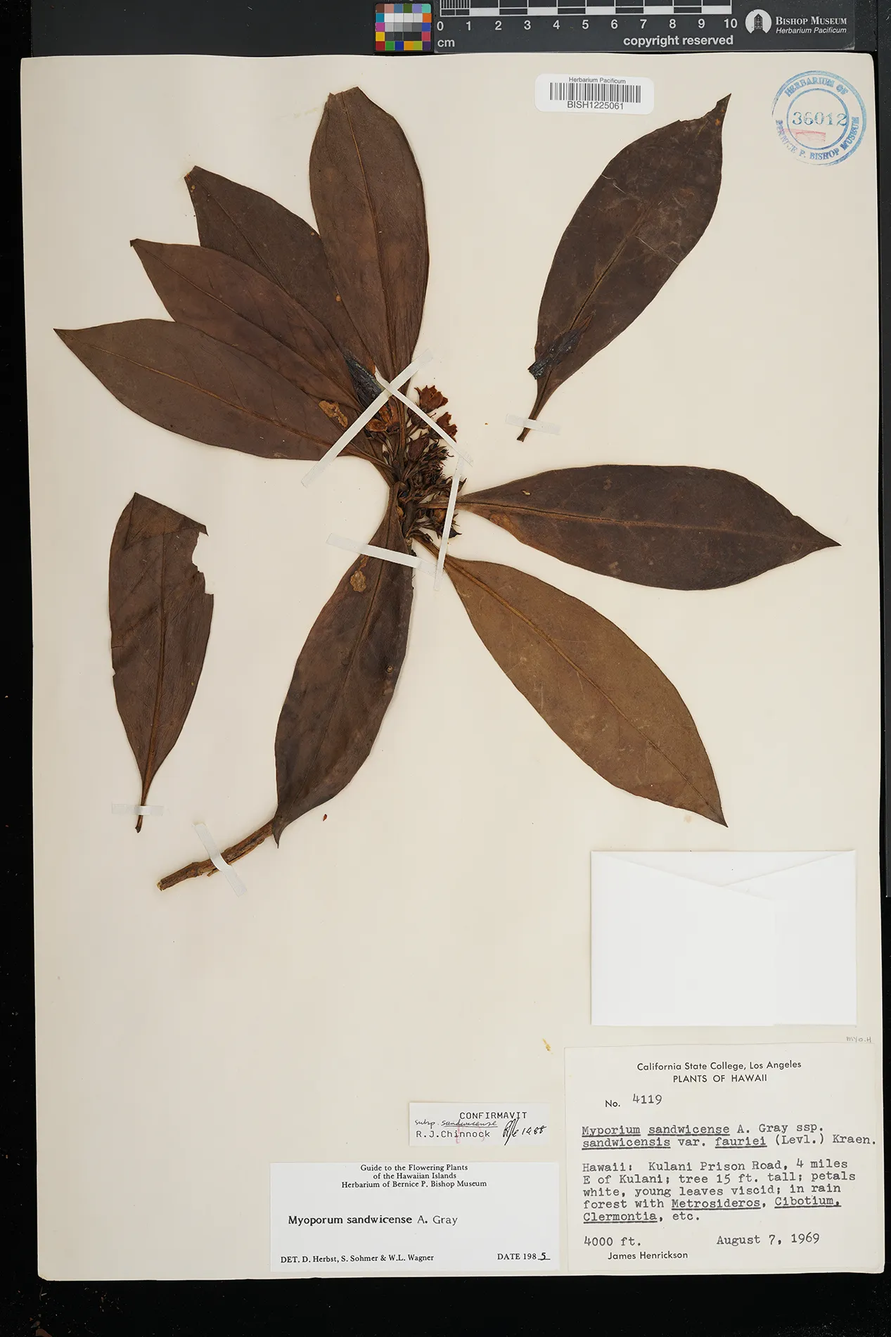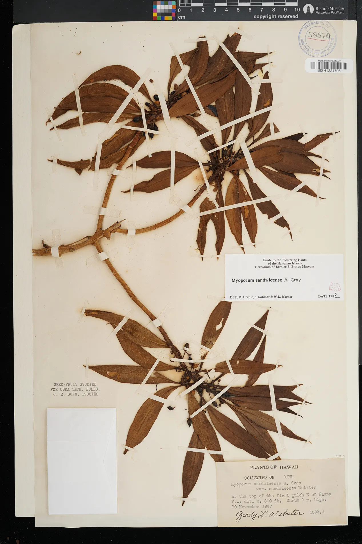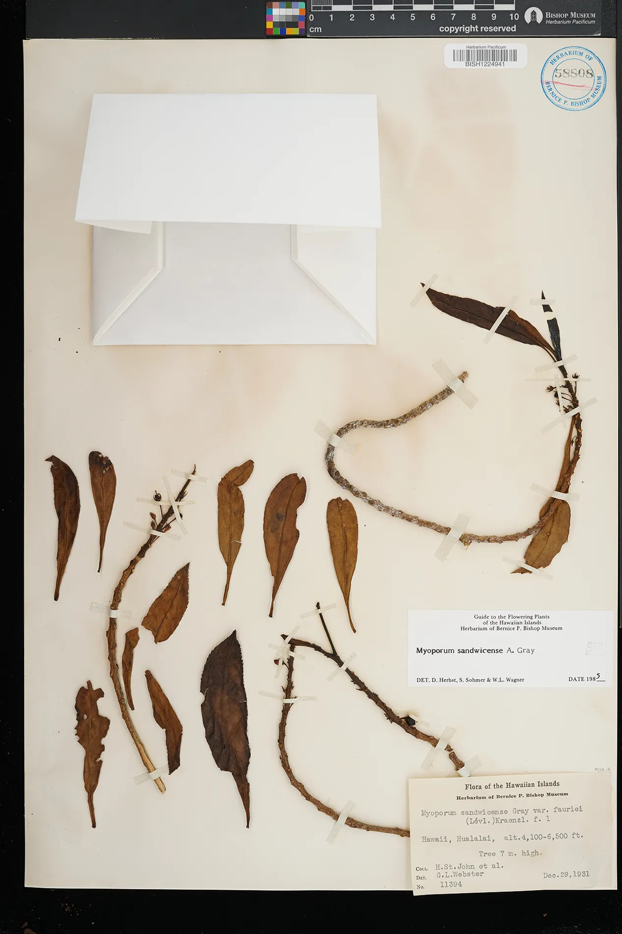 Wood has odor similar to sandalwood (Degener 1930:267). Used for house posts (Degener 1930:268; Krauss 1993:56). Burns well and long, used for torches (Lamb 1981:127). Wood used for fish net gauge (haha ka ‘upena) (Krauss 1993:35). In the Ethnology Collection at Bishop Museum there is a post-contact example of the wood made into a bowl.