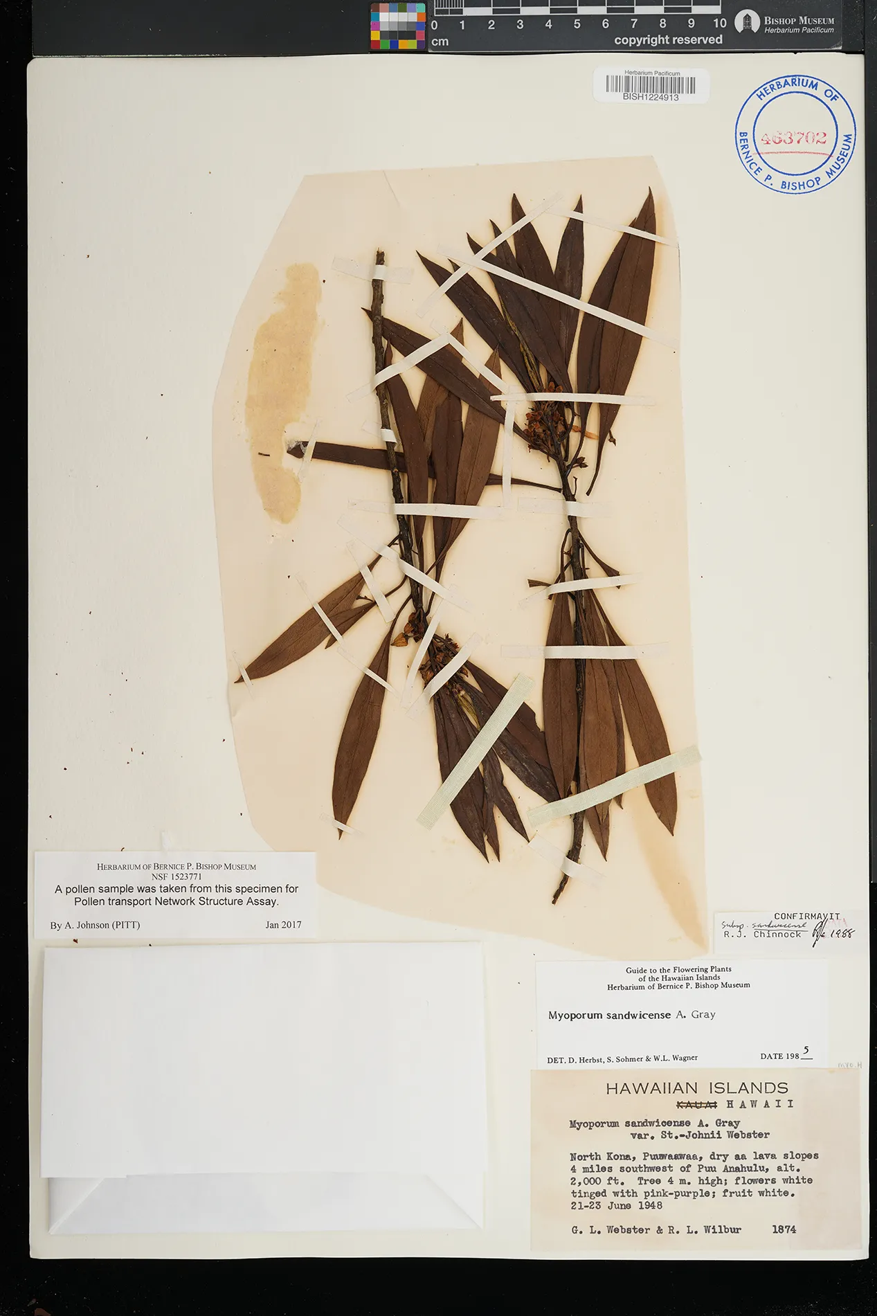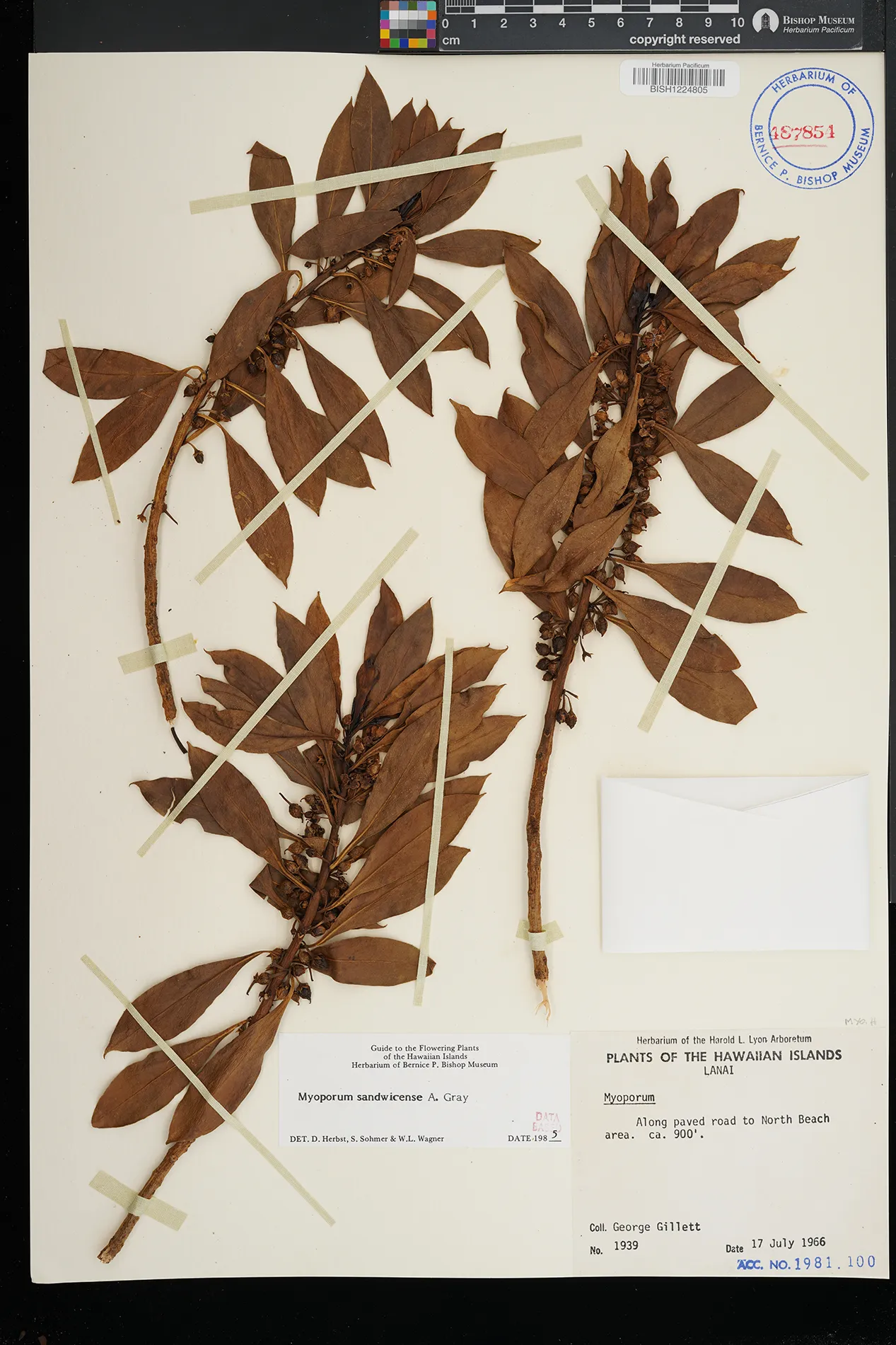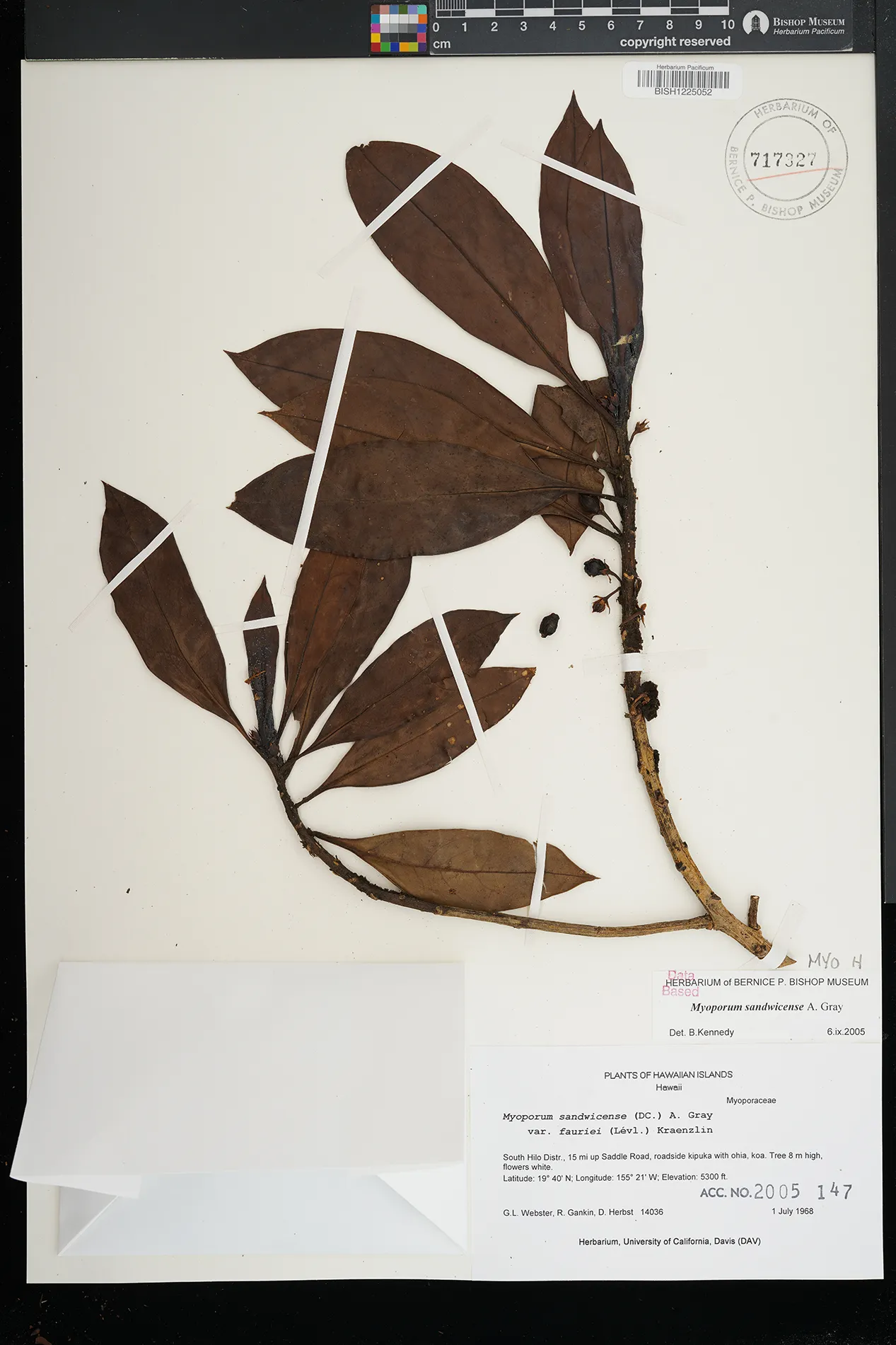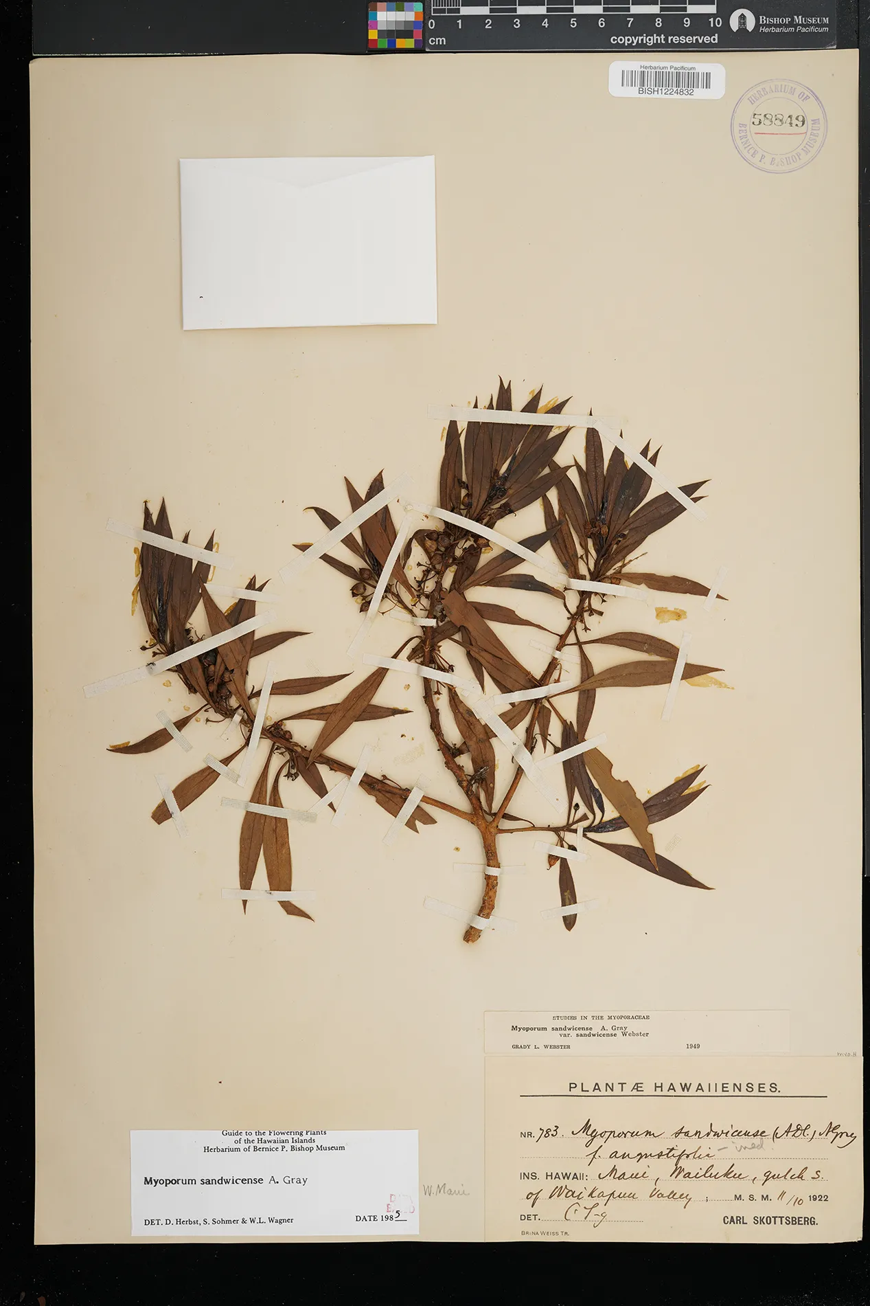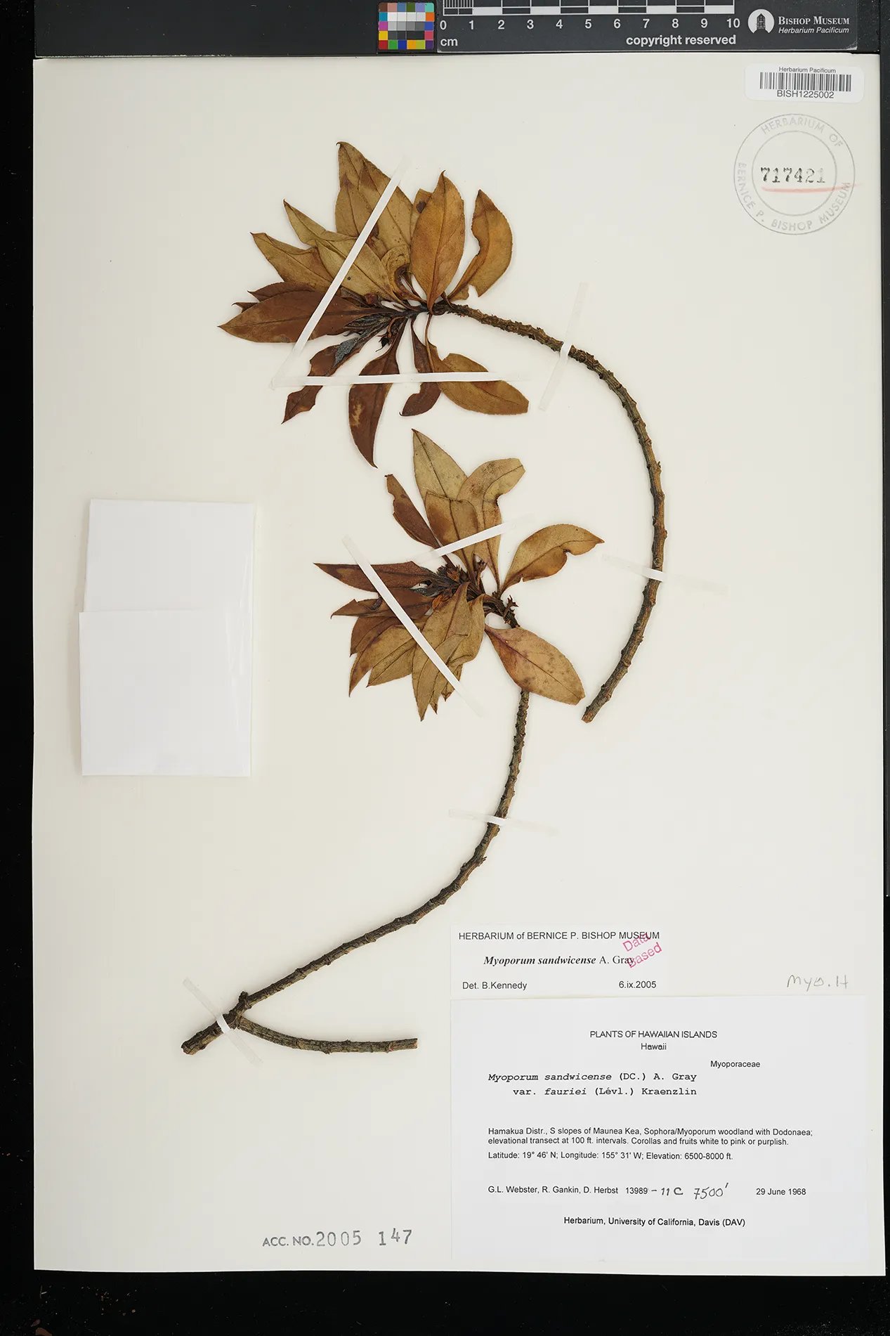 Wood has odor similar to sandalwood (Degener 1930:267). Used for house posts (Degener 1930:268; Krauss 1993:56). Burns well and long, used for torches (Lamb 1981:127). Wood used for fish net gauge (haha ka ‘upena) (Krauss 1993:35). In the Ethnology Collection at Bishop Museum there is a post-contact example of the wood made into a bowl.