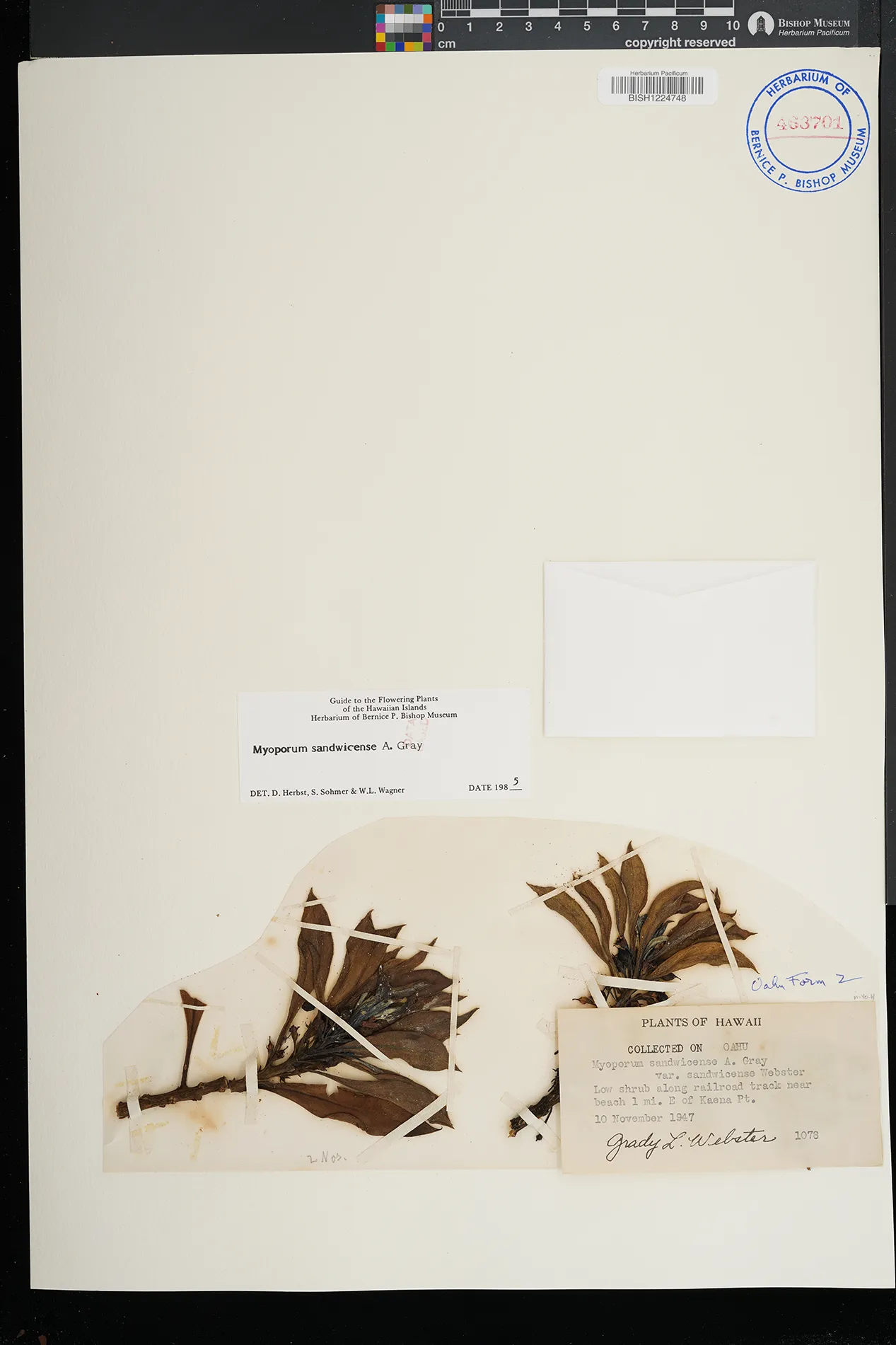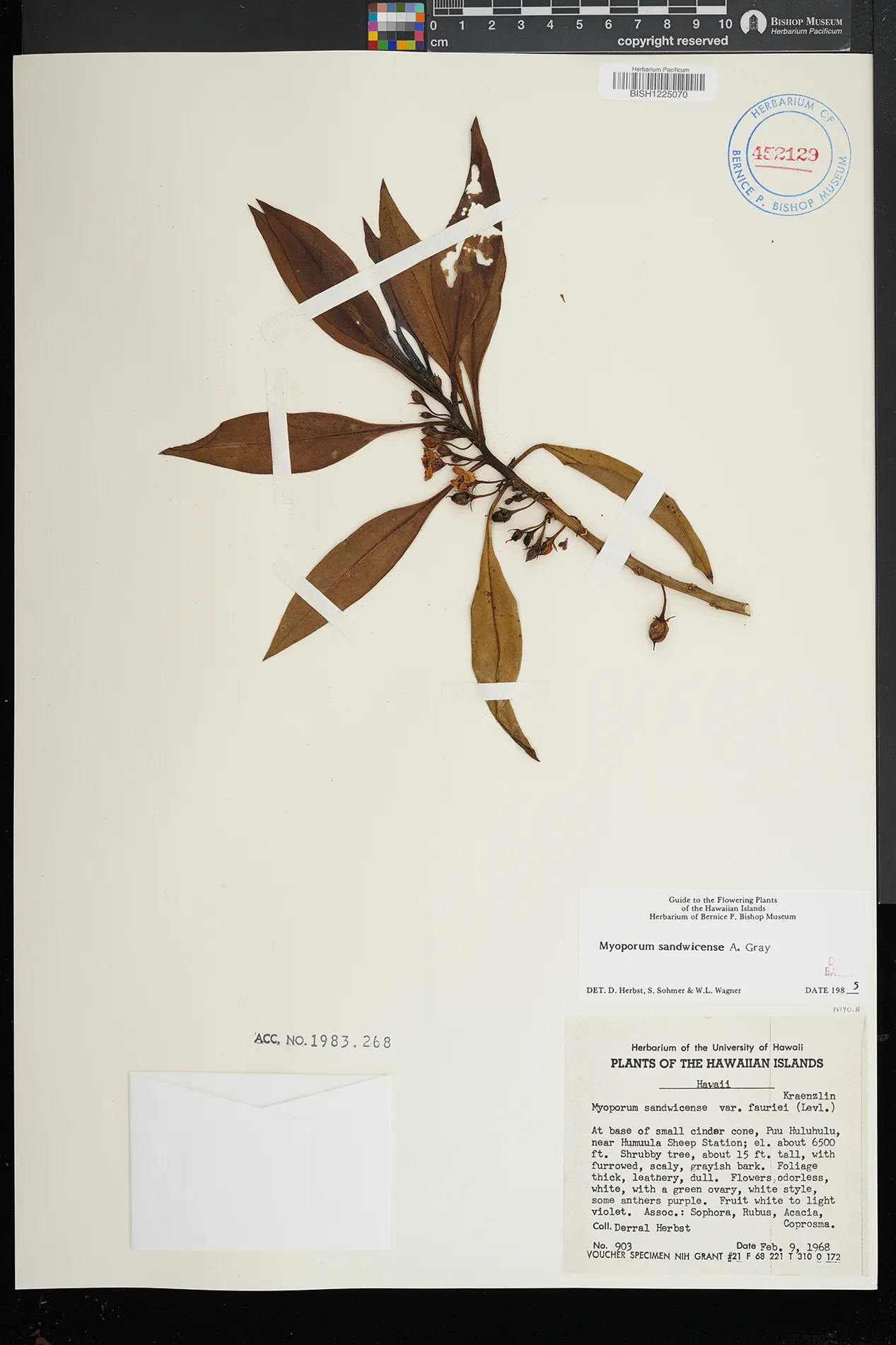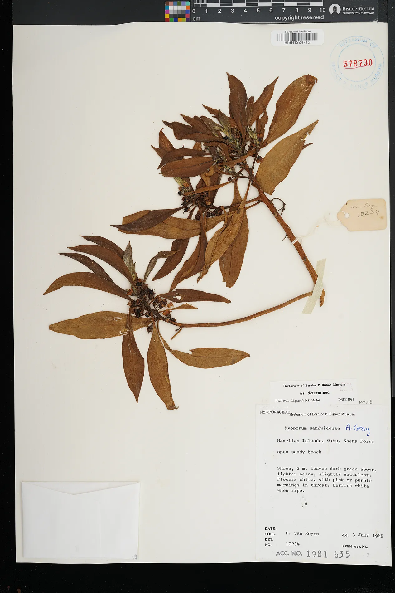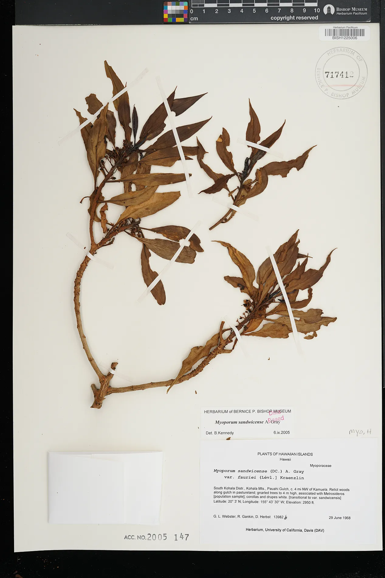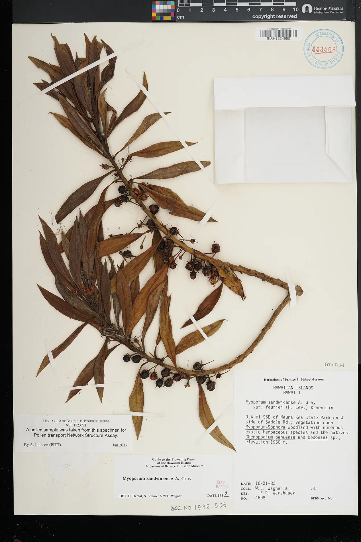 Wood has odor similar to sandalwood (Degener 1930:267). Used for house posts (Degener 1930:268; Krauss 1993:56). Burns well and long, used for torches (Lamb 1981:127). Wood used for fish net gauge (haha ka ‘upena) (Krauss 1993:35). In the Ethnology Collection at Bishop Museum there is a post-contact example of the wood made into a bowl.