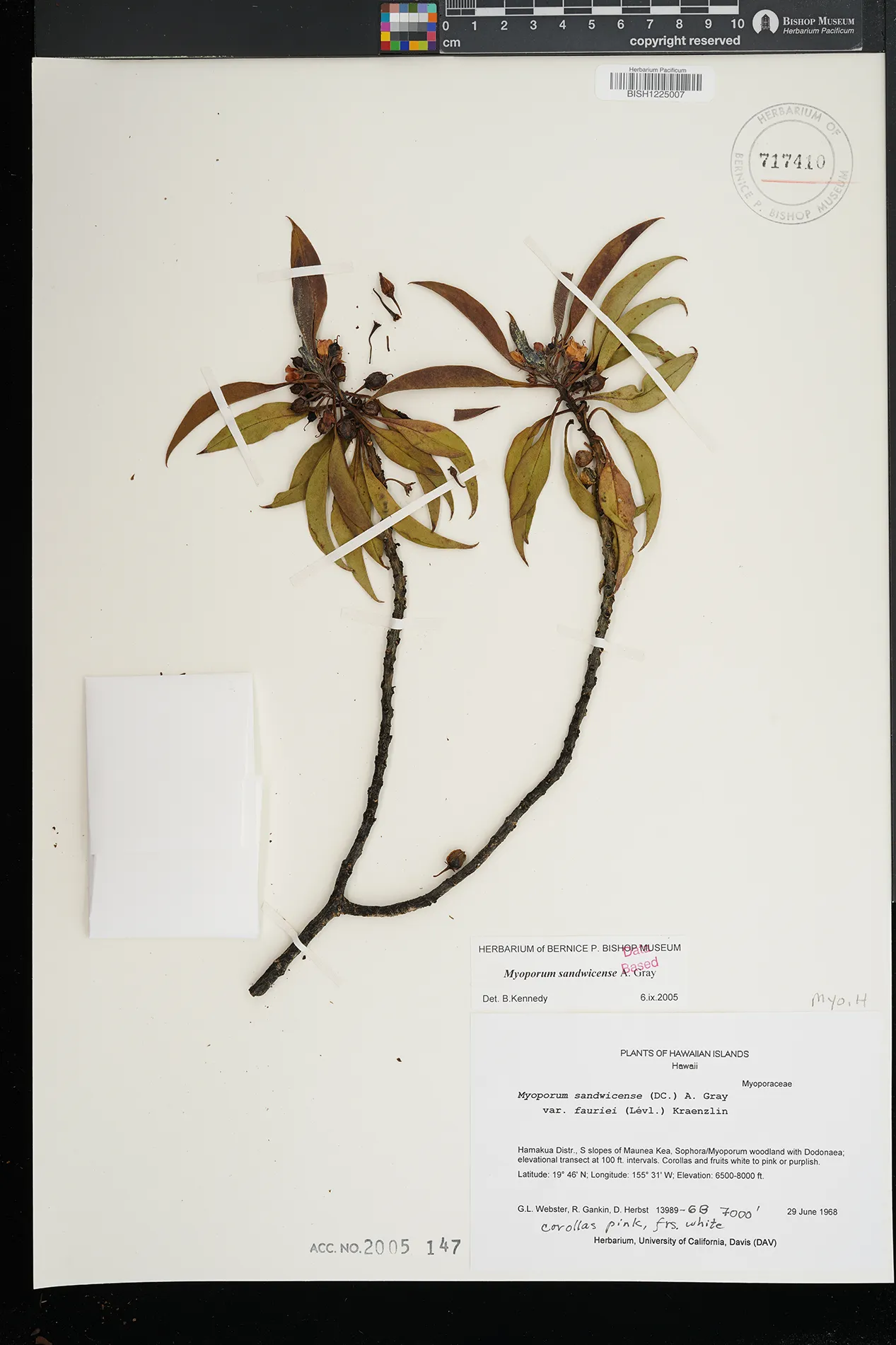 Habitat: Strand vegetation; dry forest; 'a'a lava; mesic to wet forest; and a dominant element of subalpine forest.