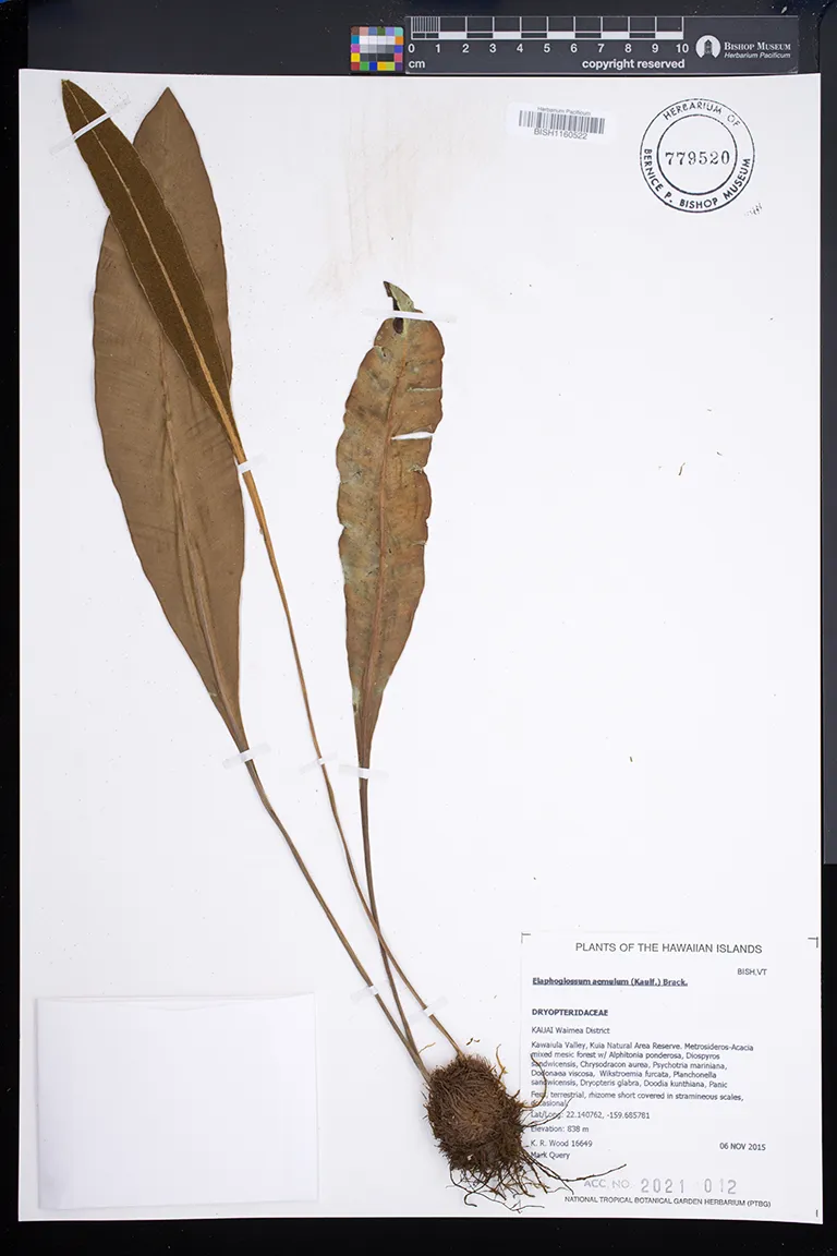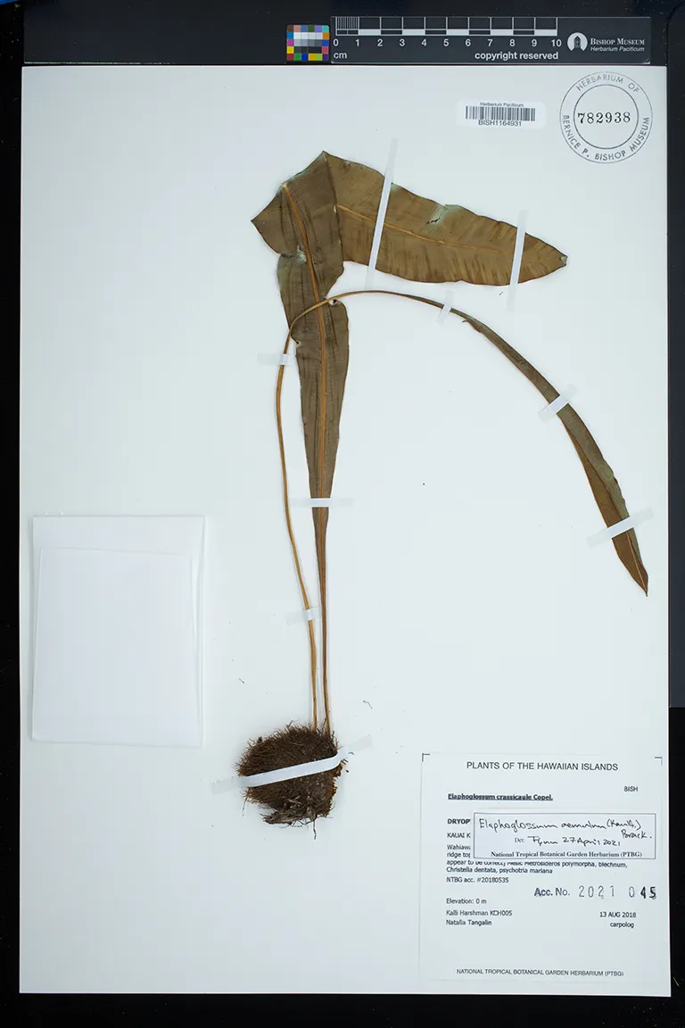 Kingdom: Viridiplantae Phylum: Pteridophyta Class/Clade: Polypodiopsida Order: Polypodiales Family: Dryopteridaceae Genus: Elaphoglossum