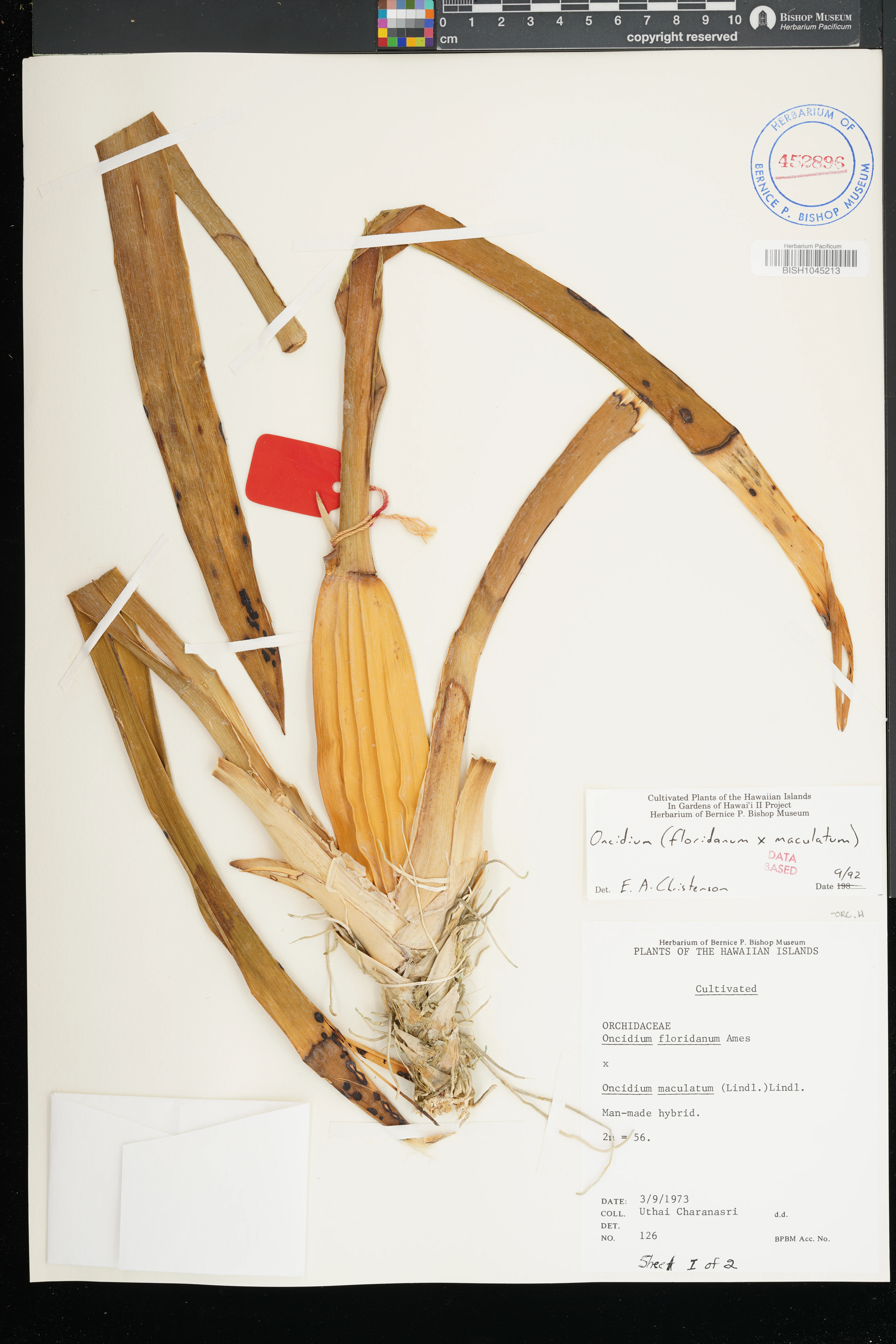 | 1 | Oncidium ensatum × Oncidium maculatum | [Hawaiian Islands; U.S.A.; O`ahu; Hawai`i; Honolulu] | Preserved_Specimen | Charanasri, U. | 126 | Oahu | BISH | 1973-03-09 | ||