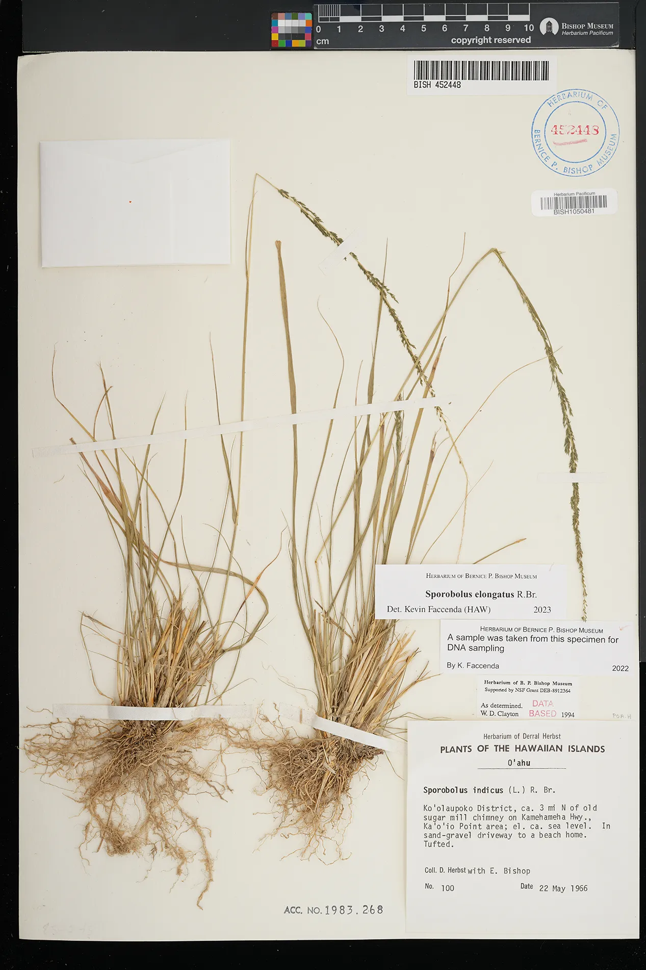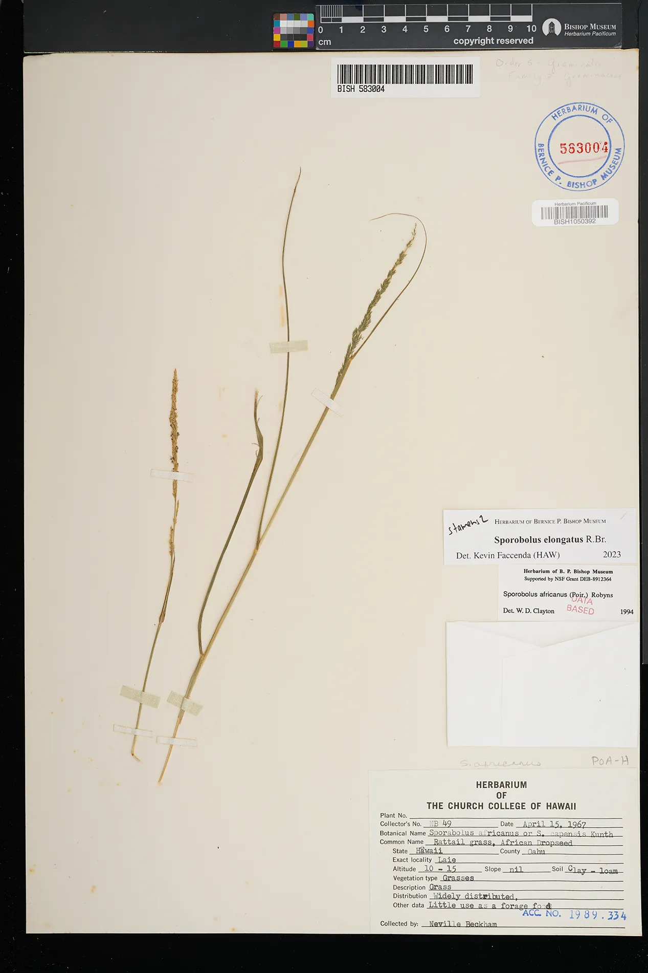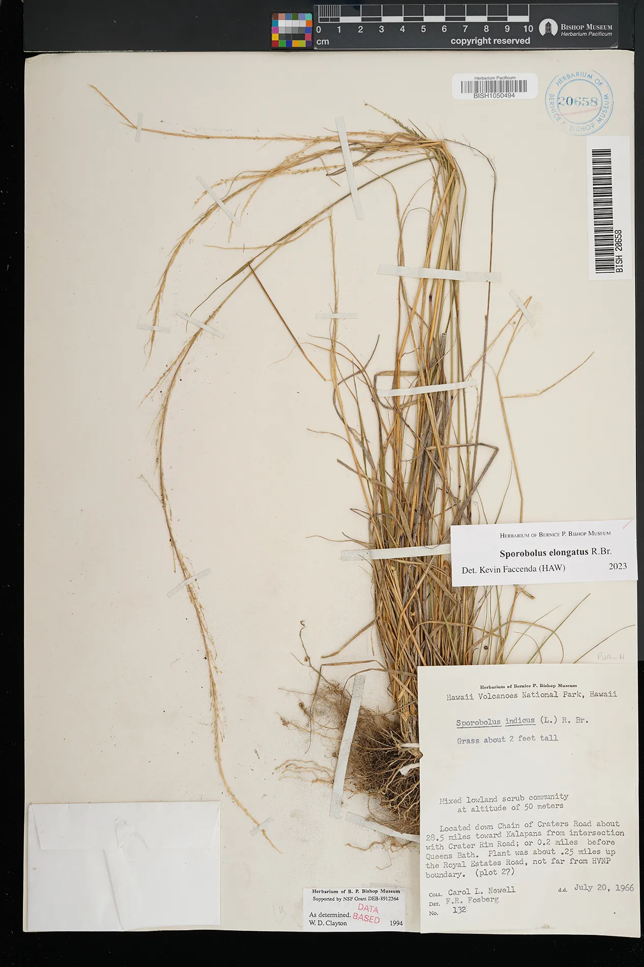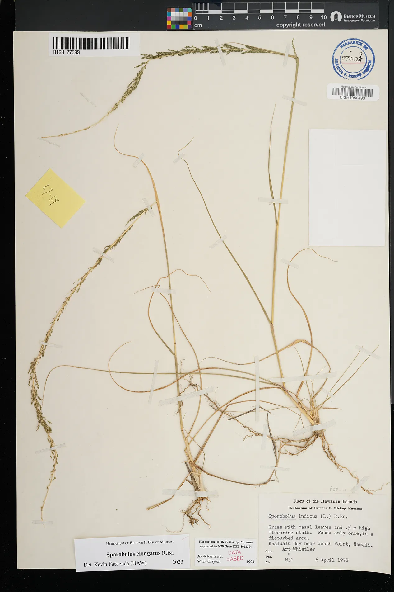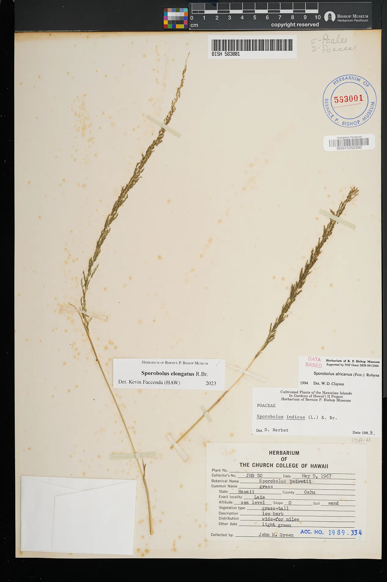 | 5 | Sporobolus elongatus | R.Br. | Kamoku | PRESERVED_SPECIMEN | Munro, G.C. | 706 | Lanai | BISH | 8/1/1925 | |