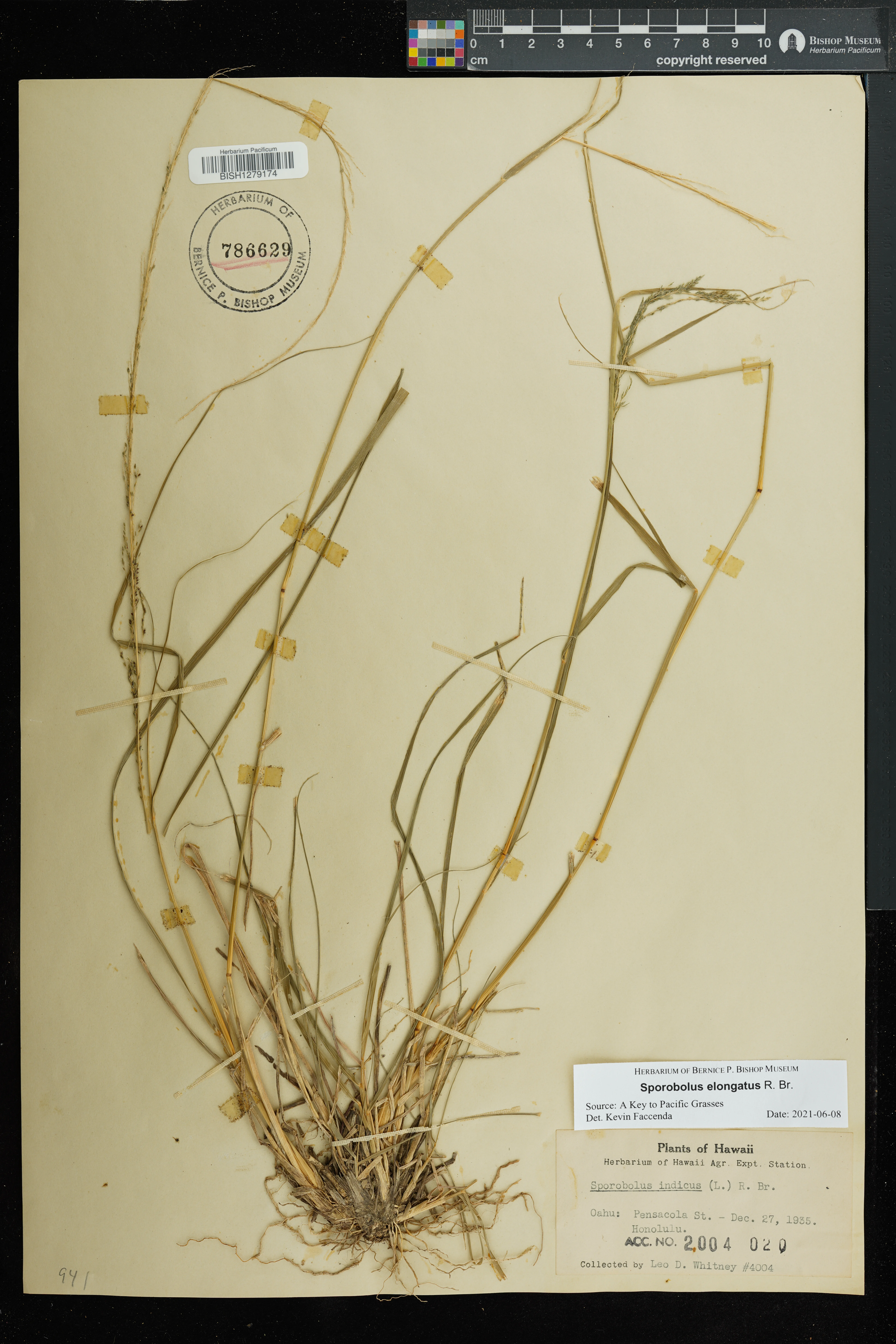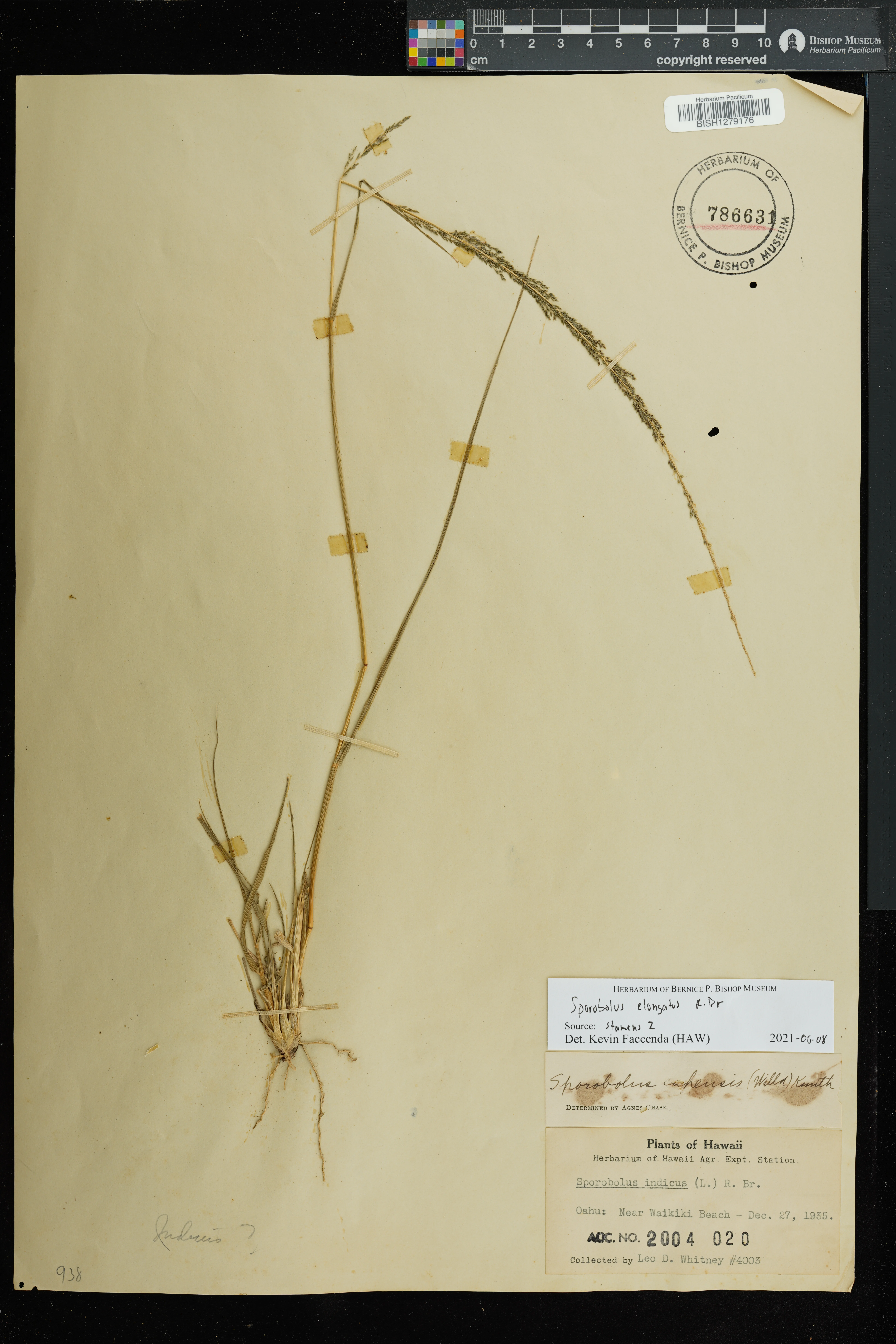 | 6 | Sporobolus elongatus | R.Br. | Honolulu | PRESERVED_SPECIMEN | A.S. Hitchcock | Hitchcock 13940 | Oahu | HAPI | 7/5/1916 | |