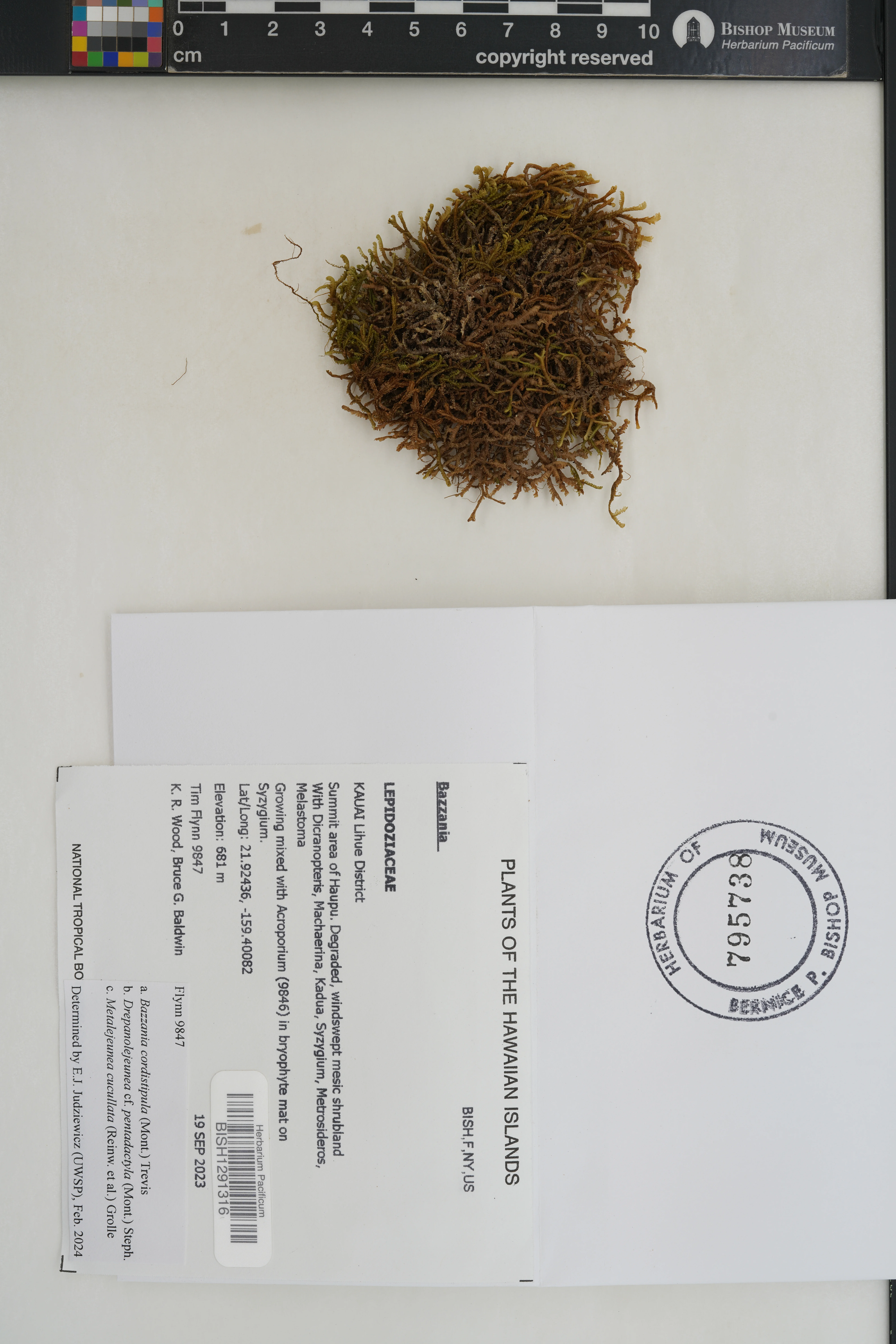Kingdom: Viridiplantae Phylum: Marchantiophyta Class/Clade: Jungermanniopsida Order: Jungermanniales Family: Lepidoziaceae Genus: