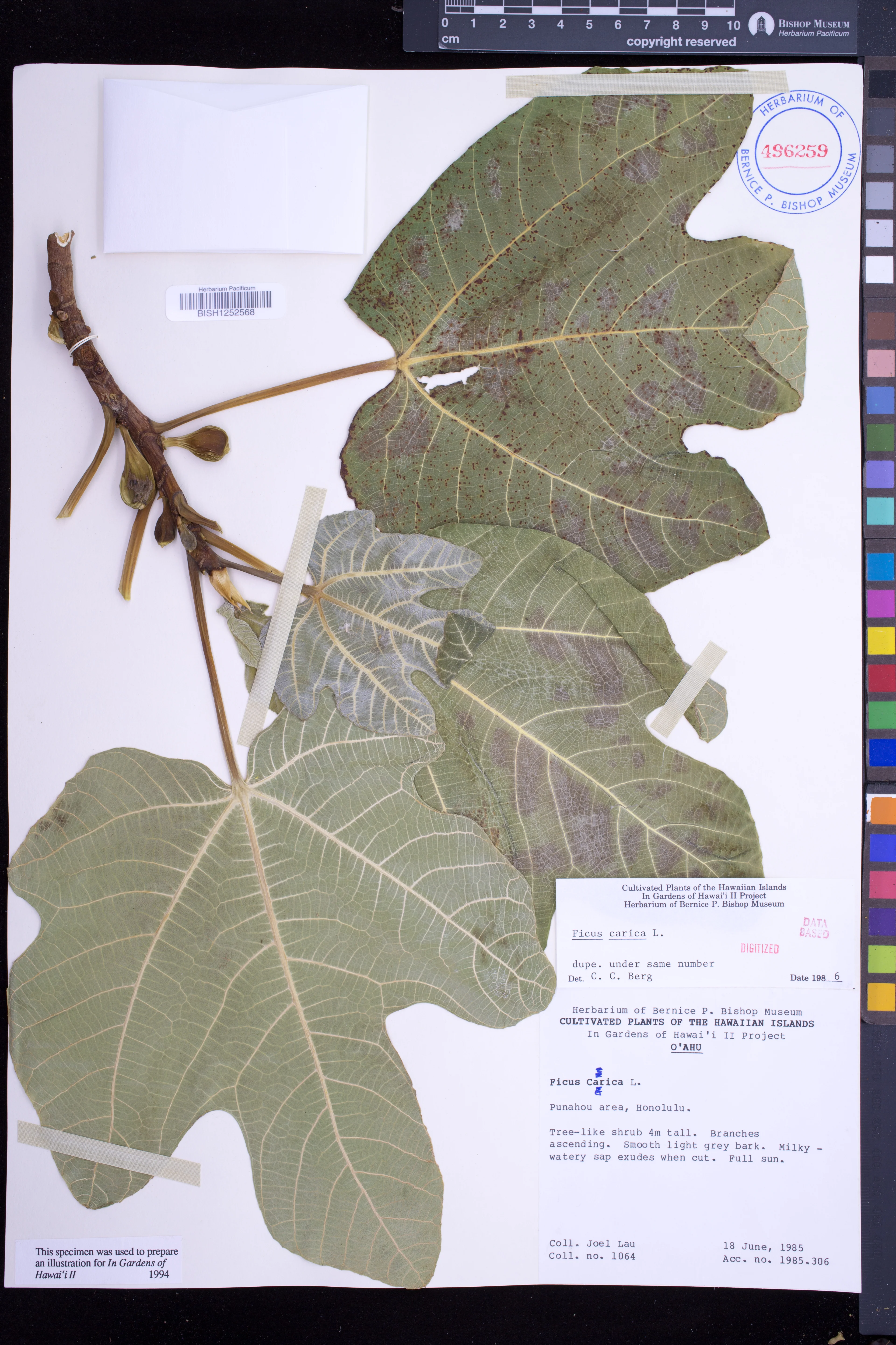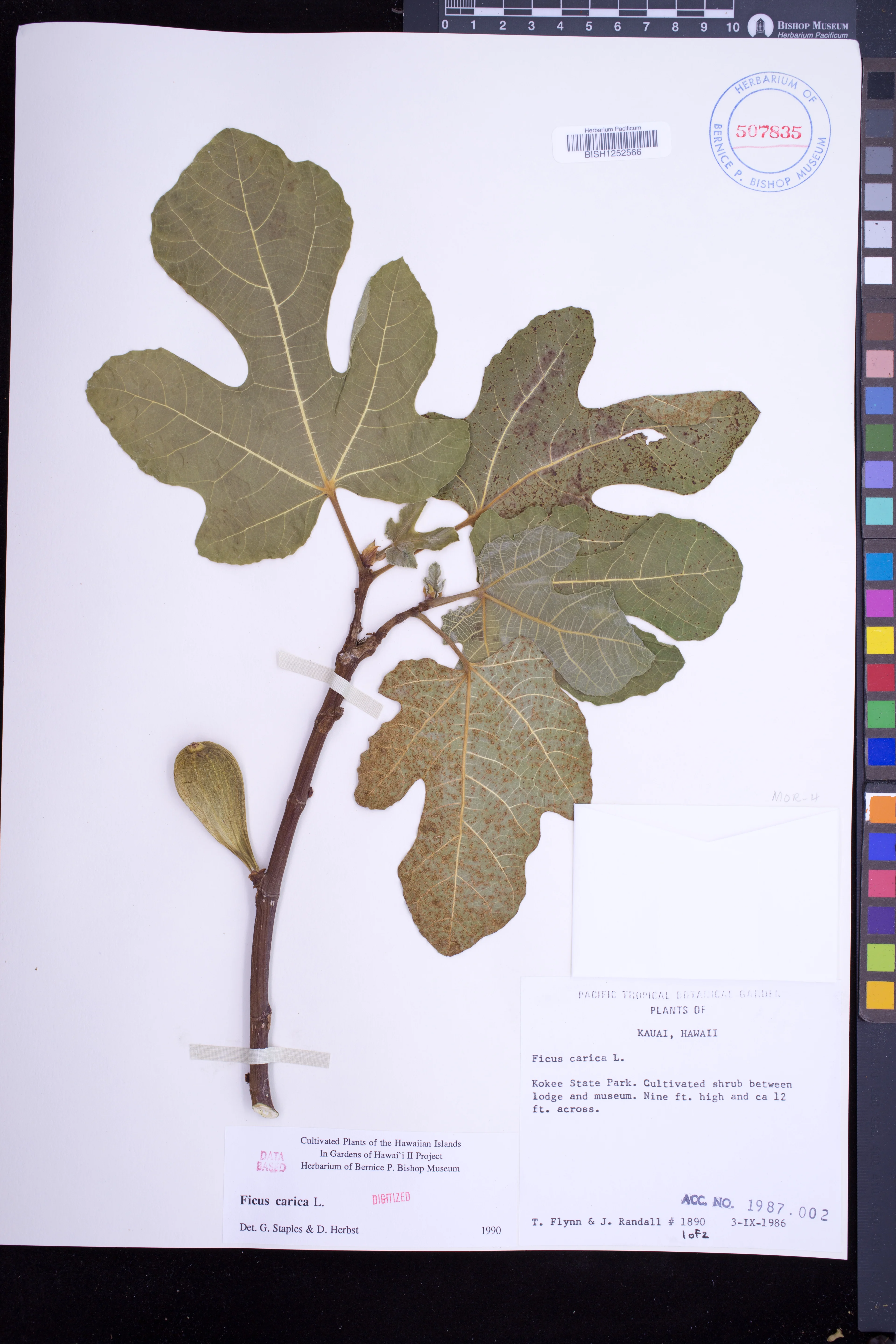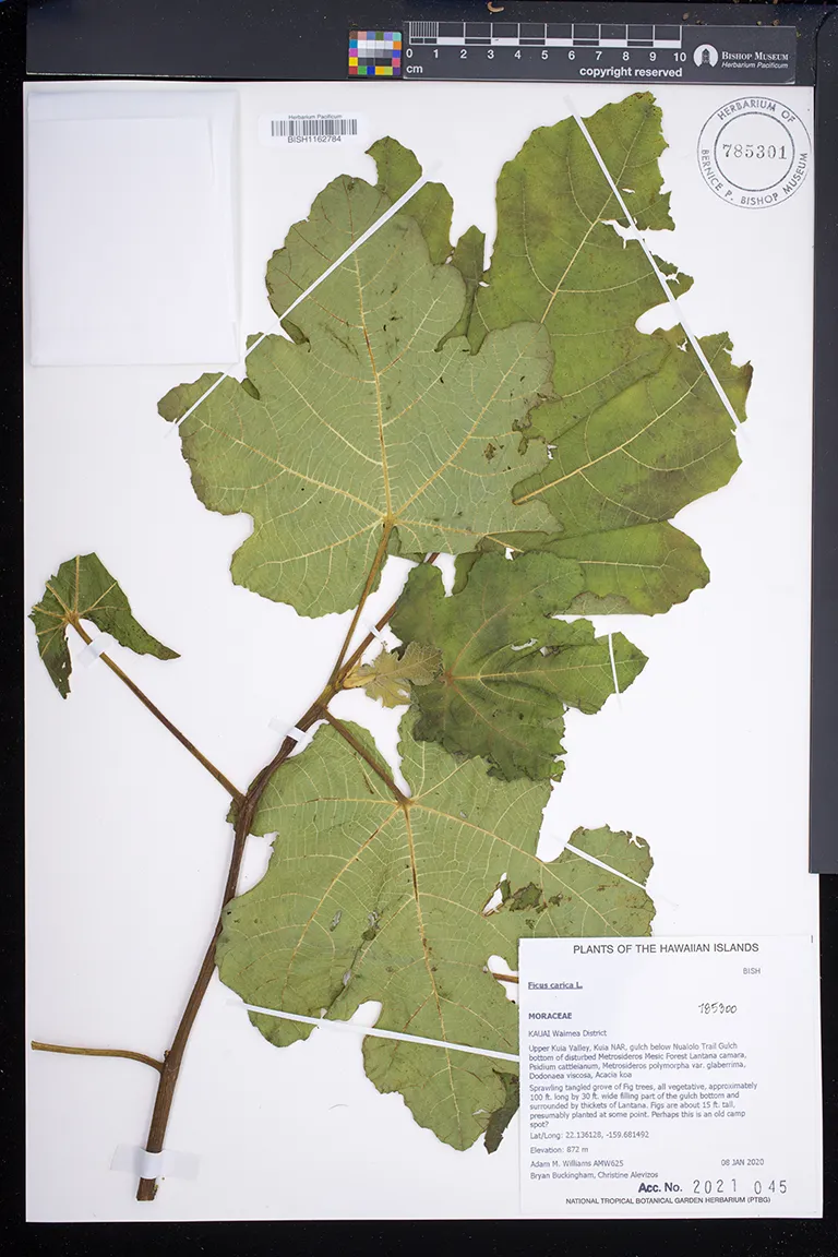 | 1 | Ficus carica | L. | fern forest trail, moderate forest | PRESERVED_SPECIMEN | morley, h. | collector number: 169-h | Oahu | BISH | 8/22/1934 | |