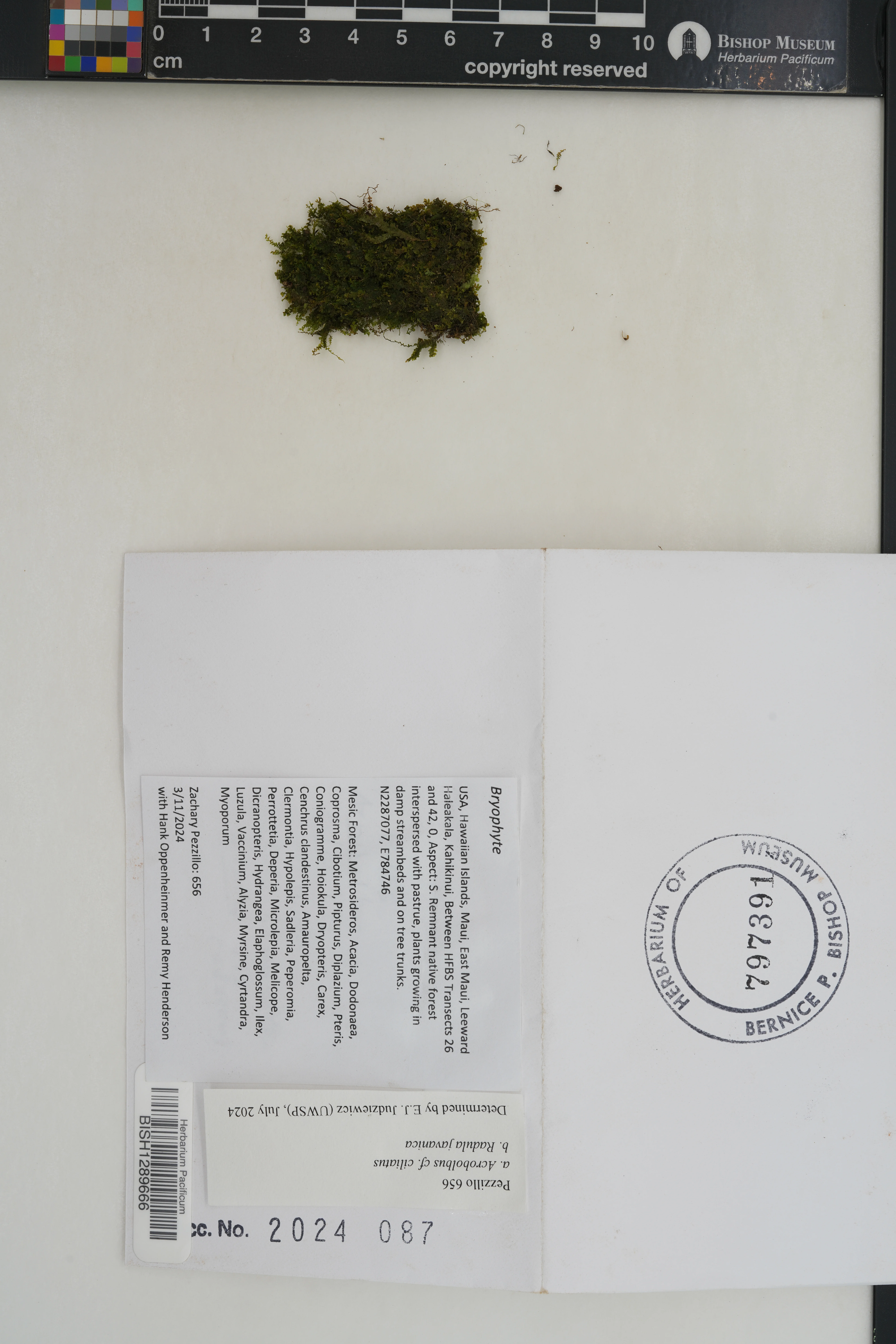 Kingdom: Viridiplantae Phylum: Marchantiophyta Class/Clade: Jungermanniopsida Order: Jungermanniales Family: Acrobolbaceae Genus: Acrobolbus