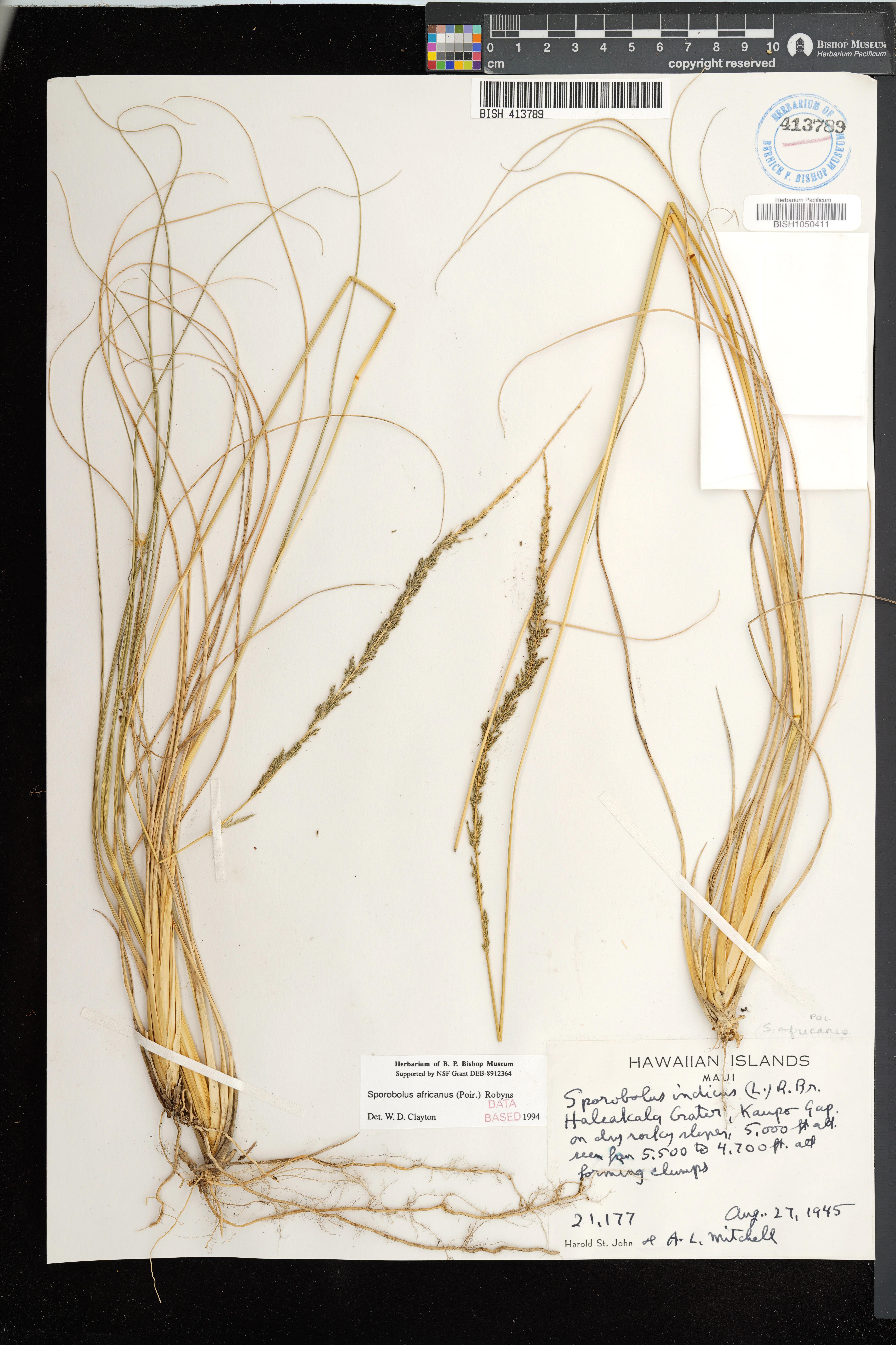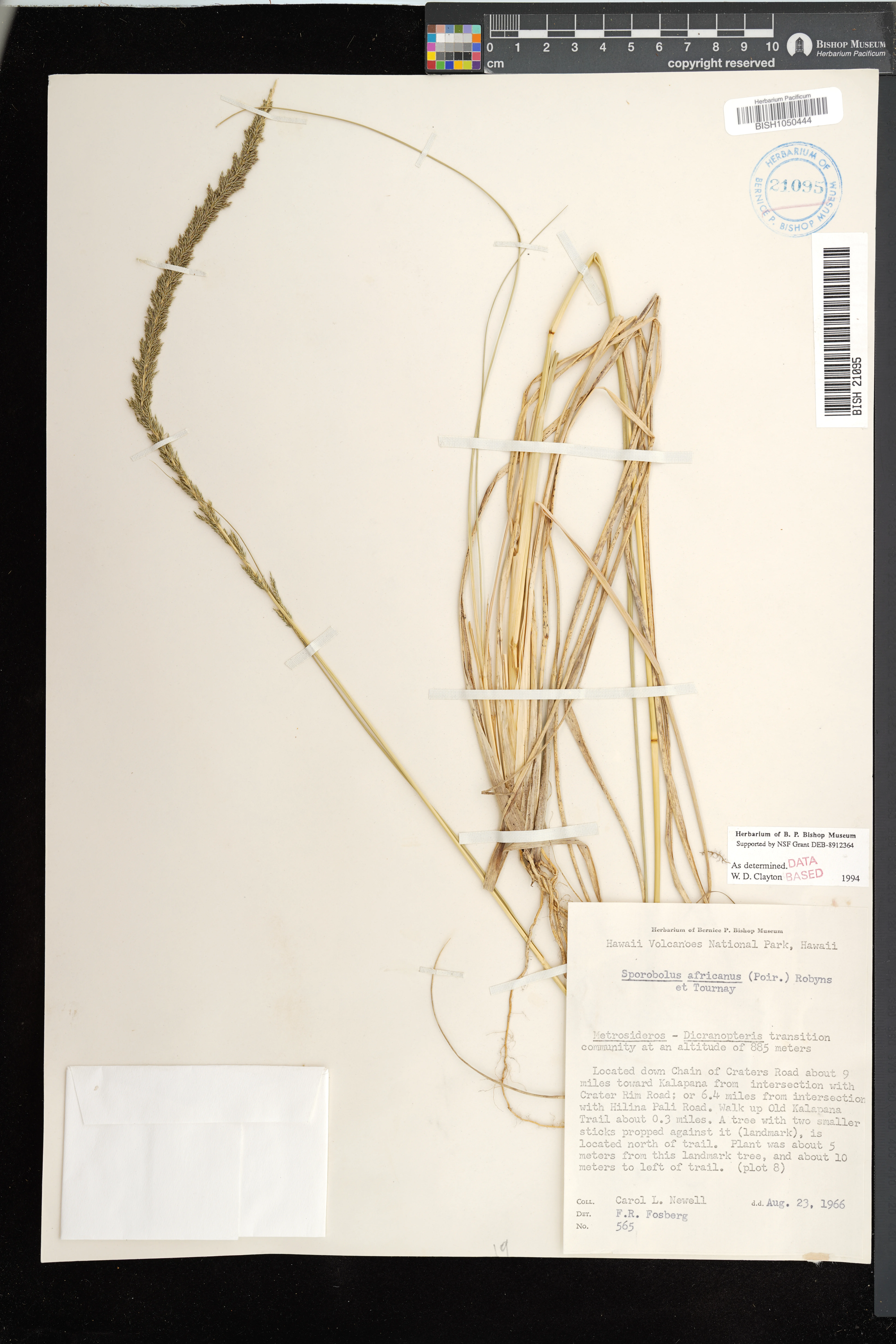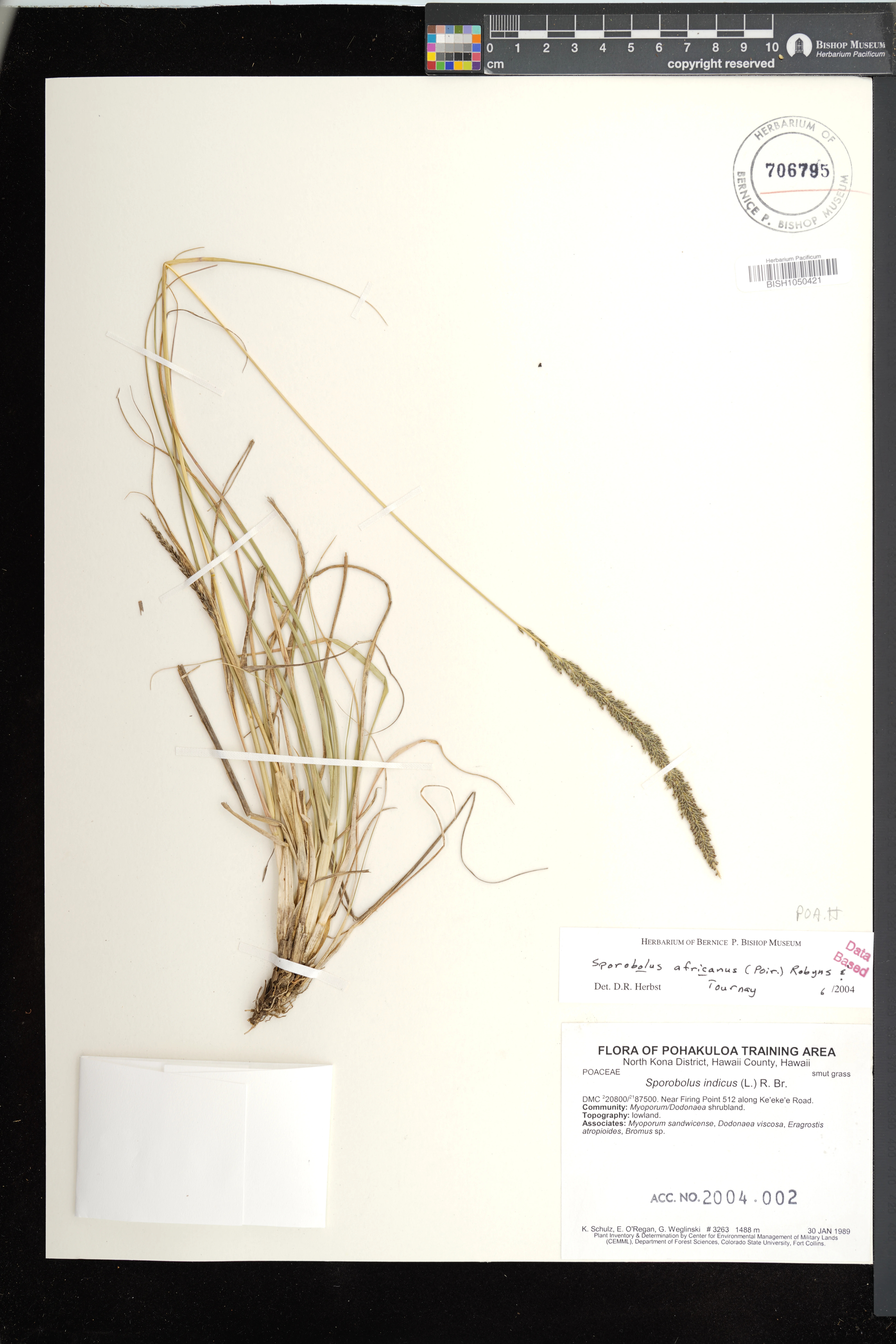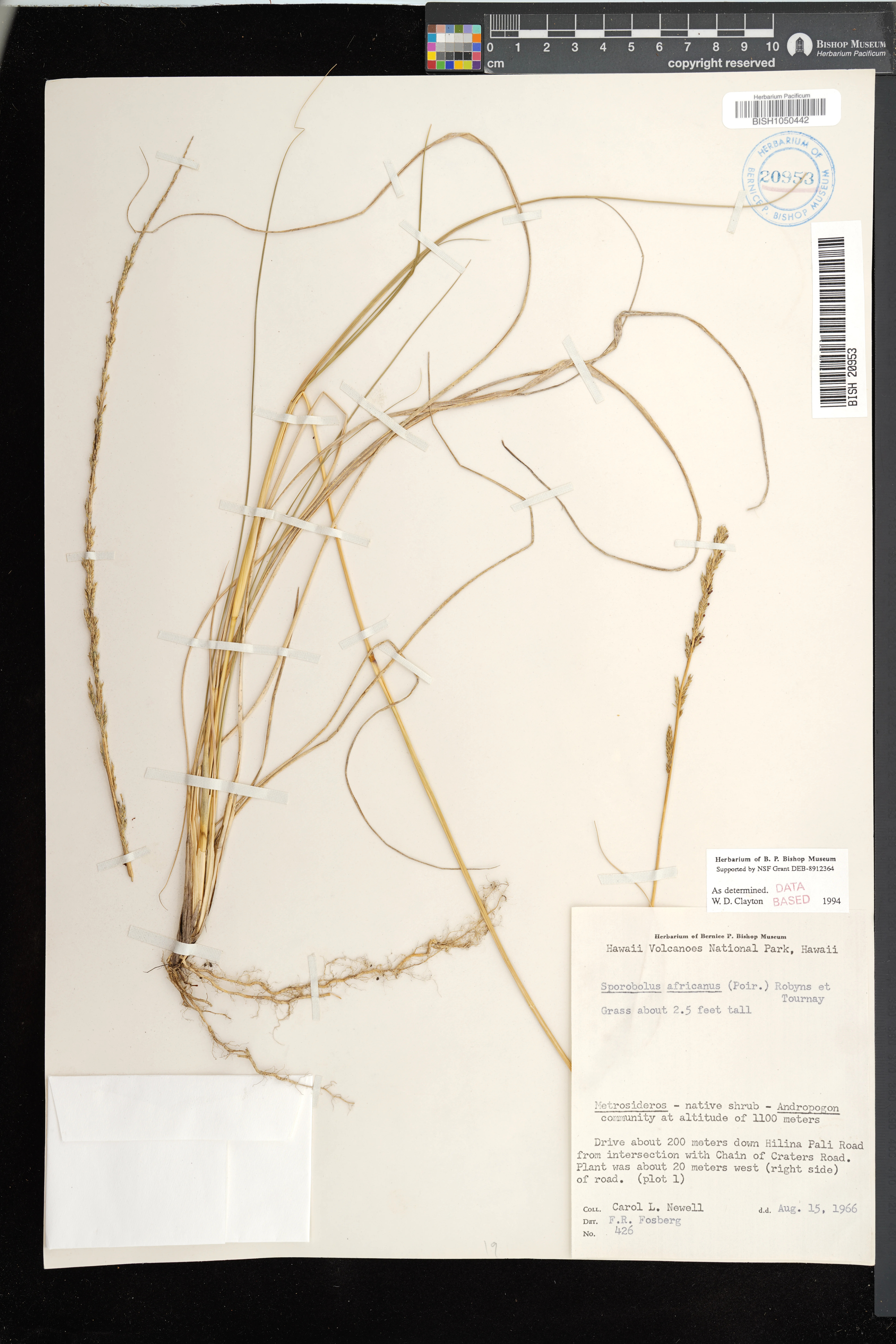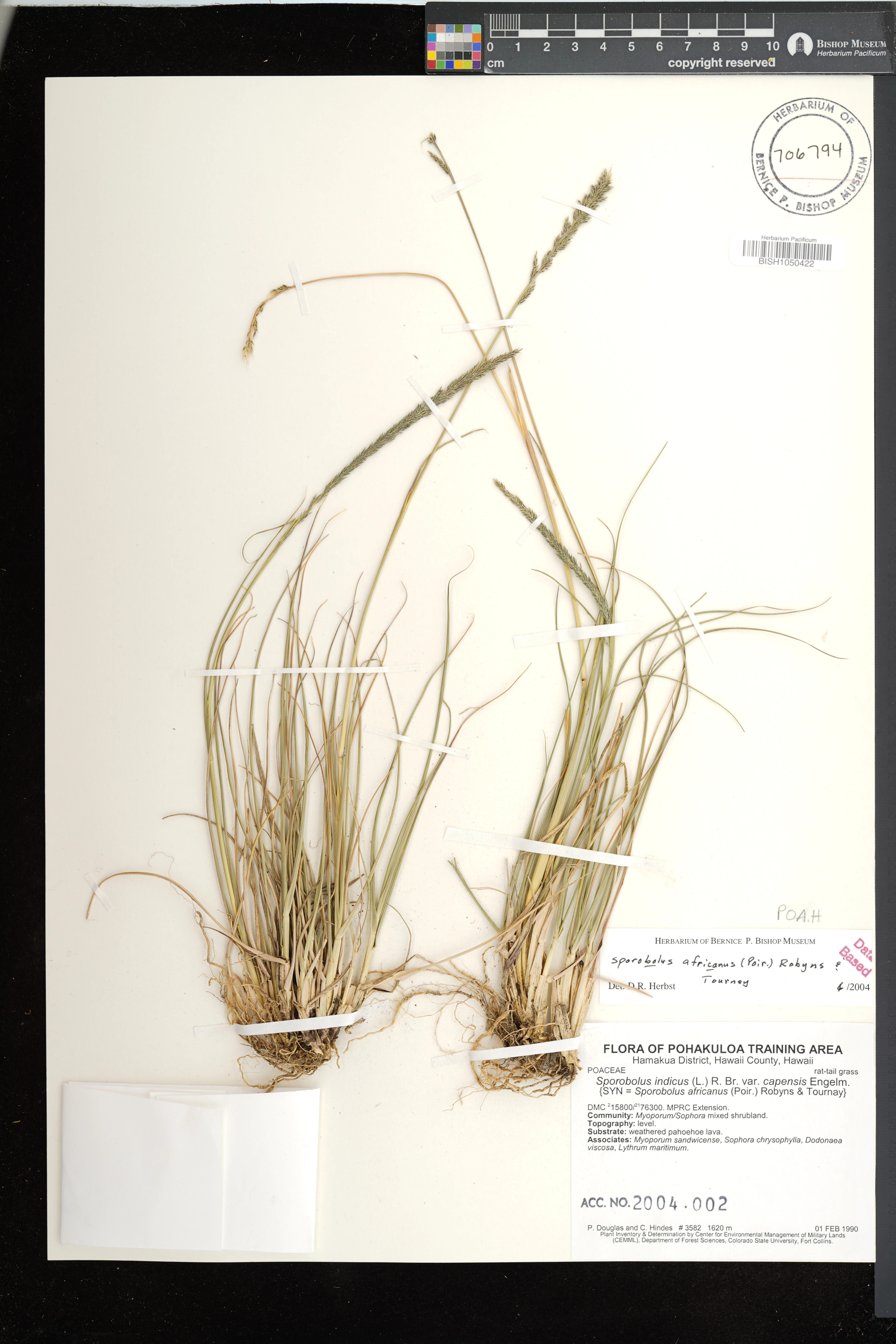 Scattered Metrosideros-Andropogon grassland community on stationary ash dunes. |