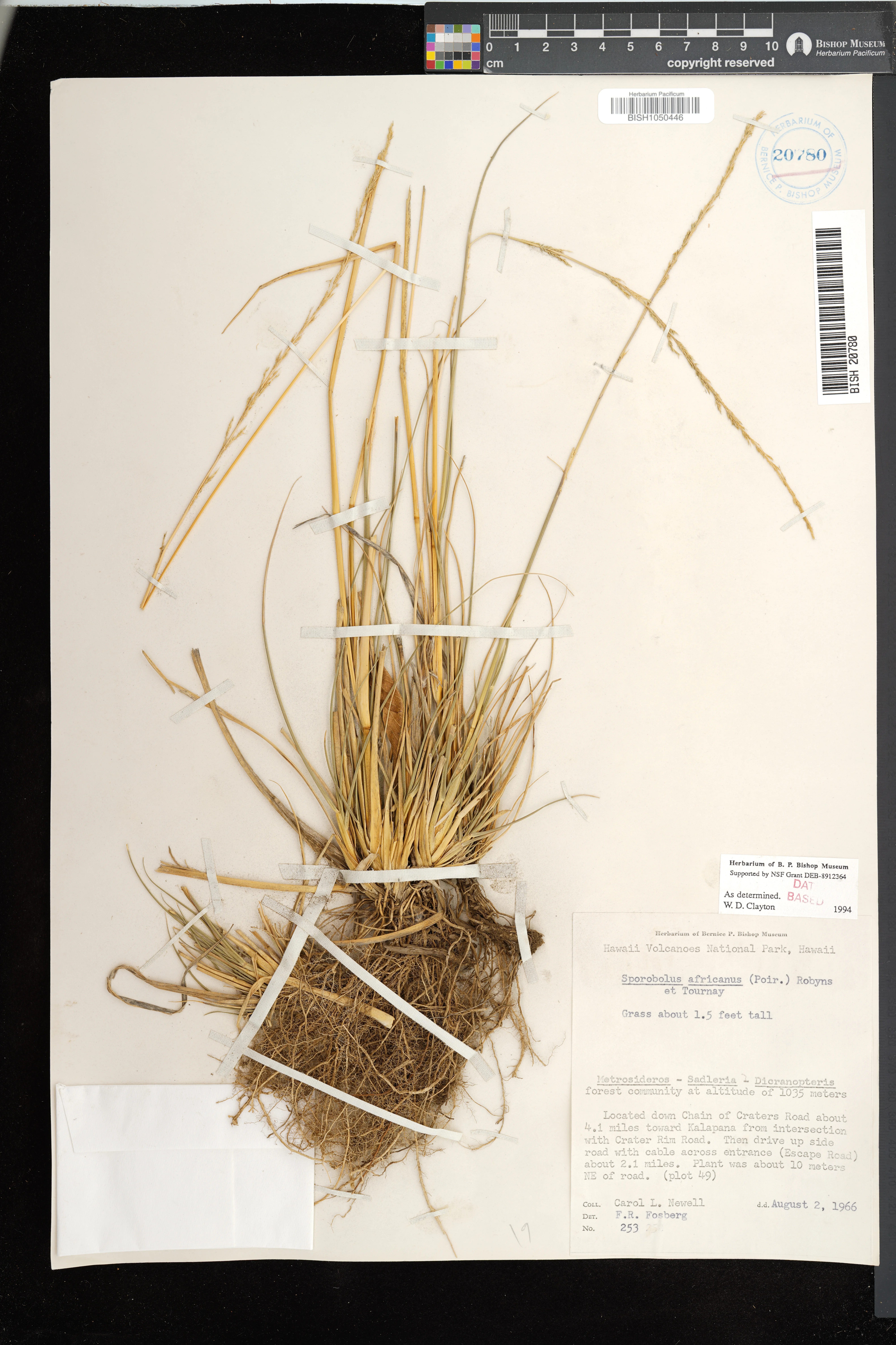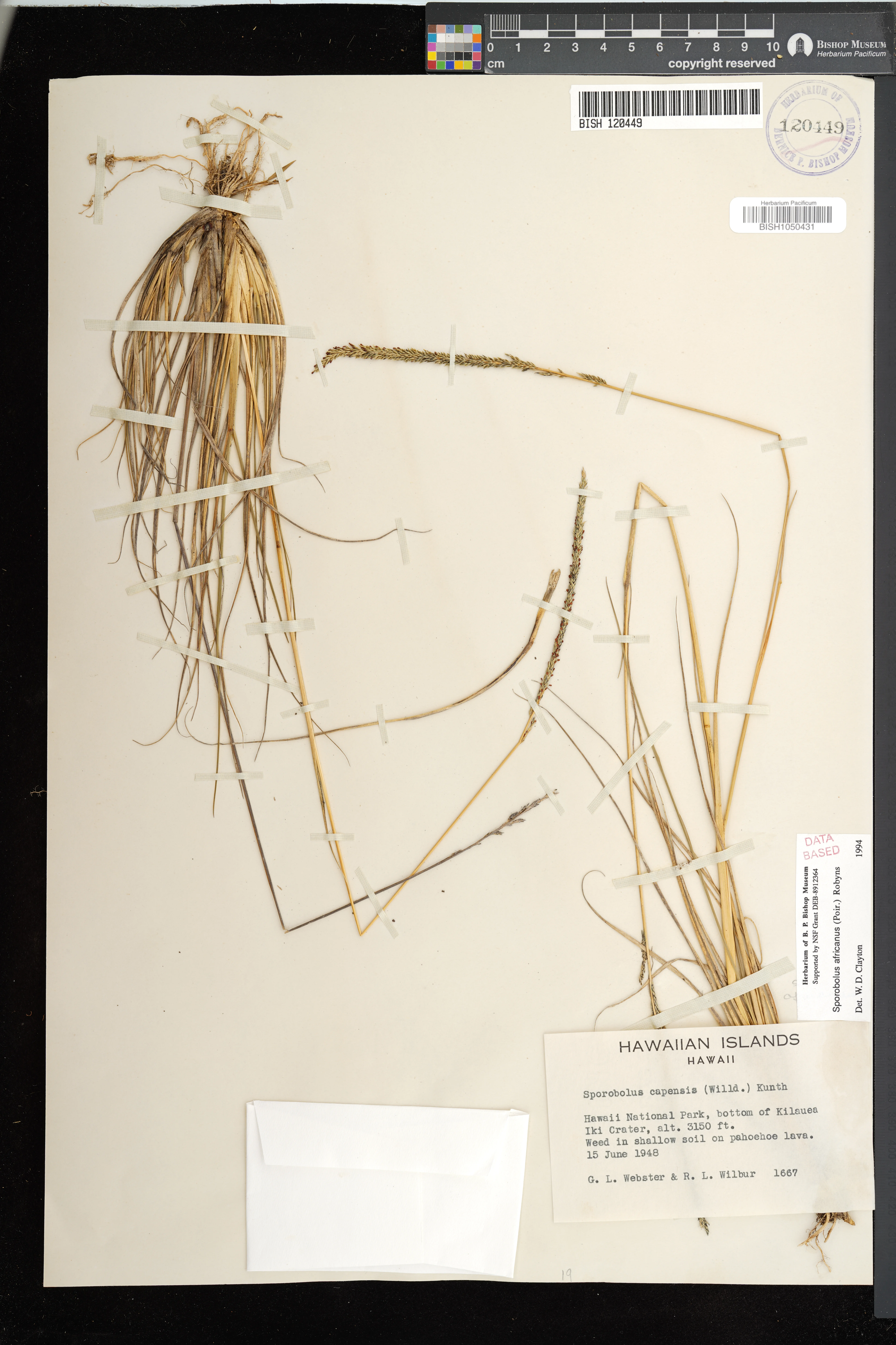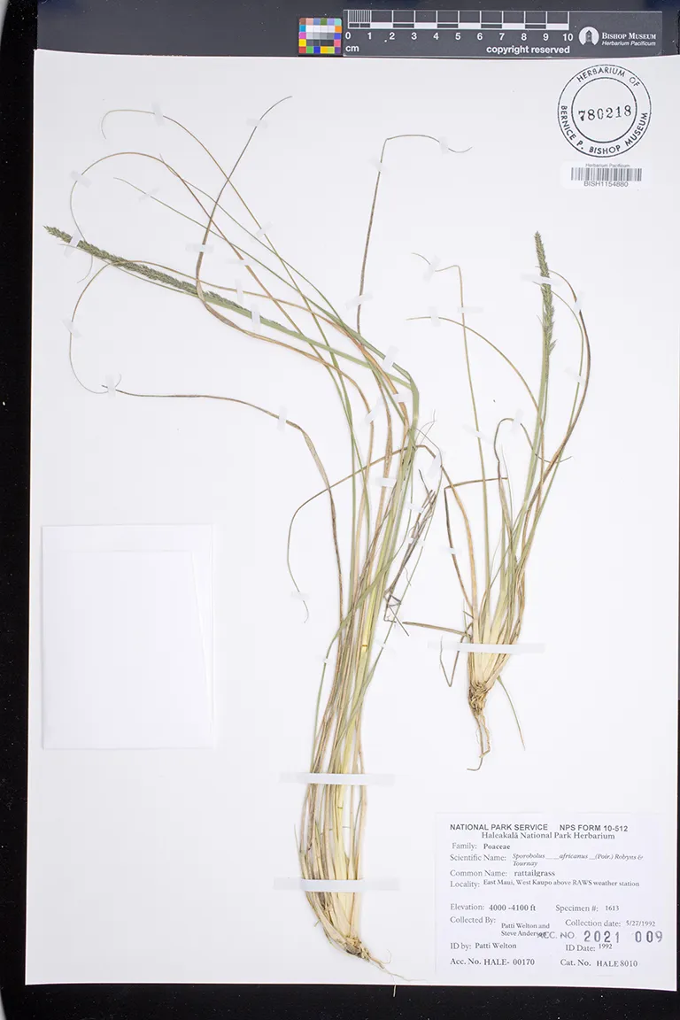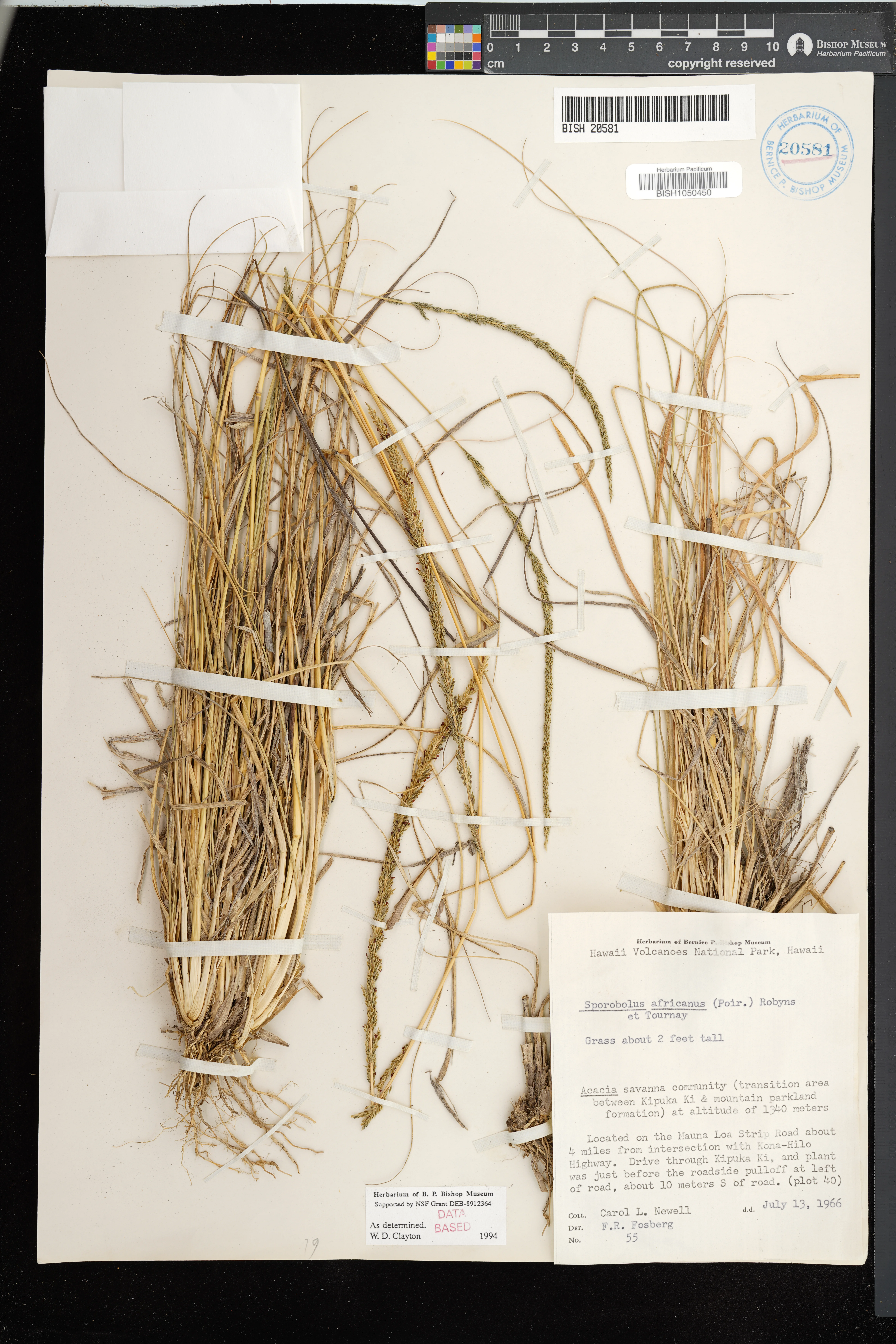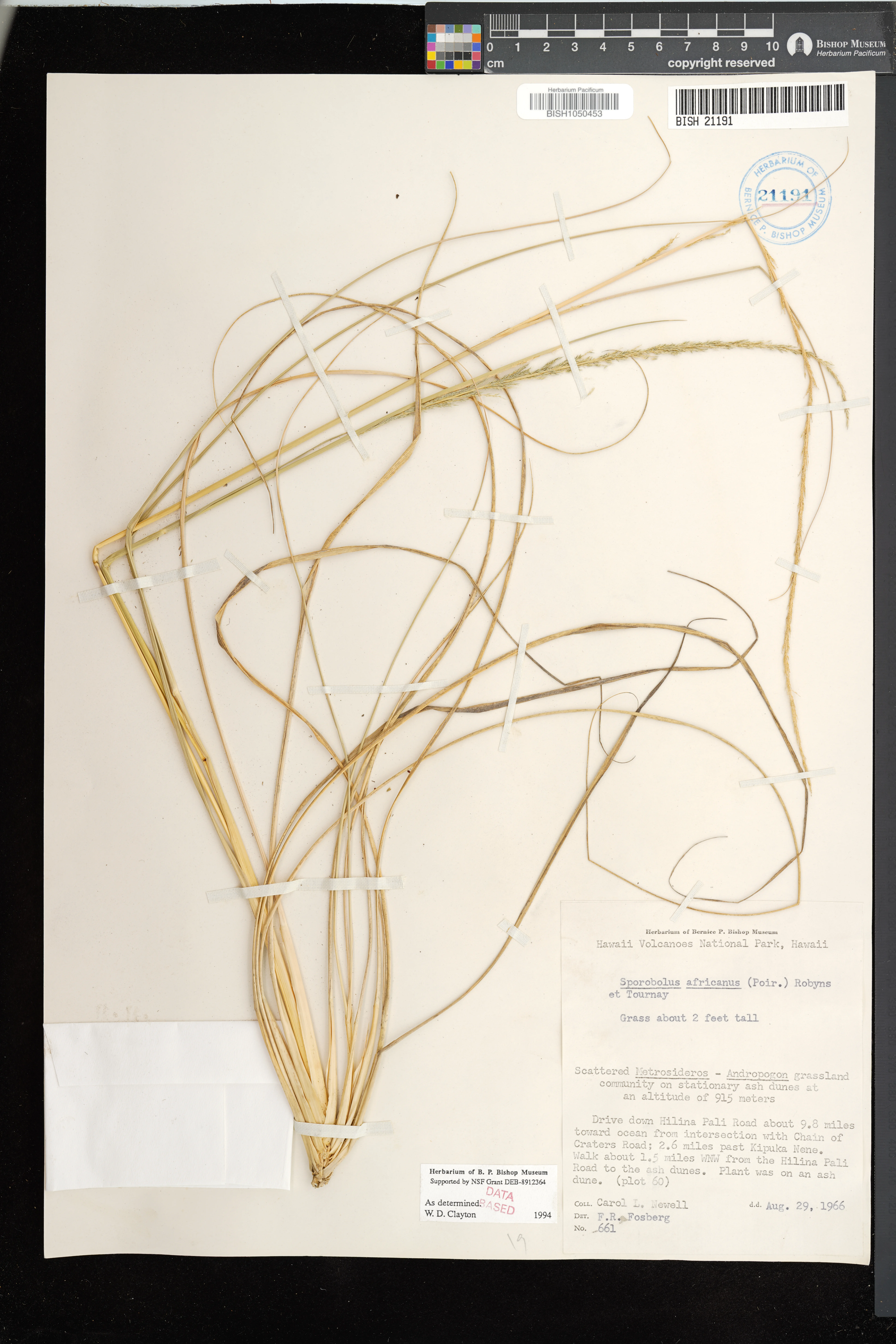 Scattered Metrosideros-Andropogon grassland community on stationary ash dunes. |