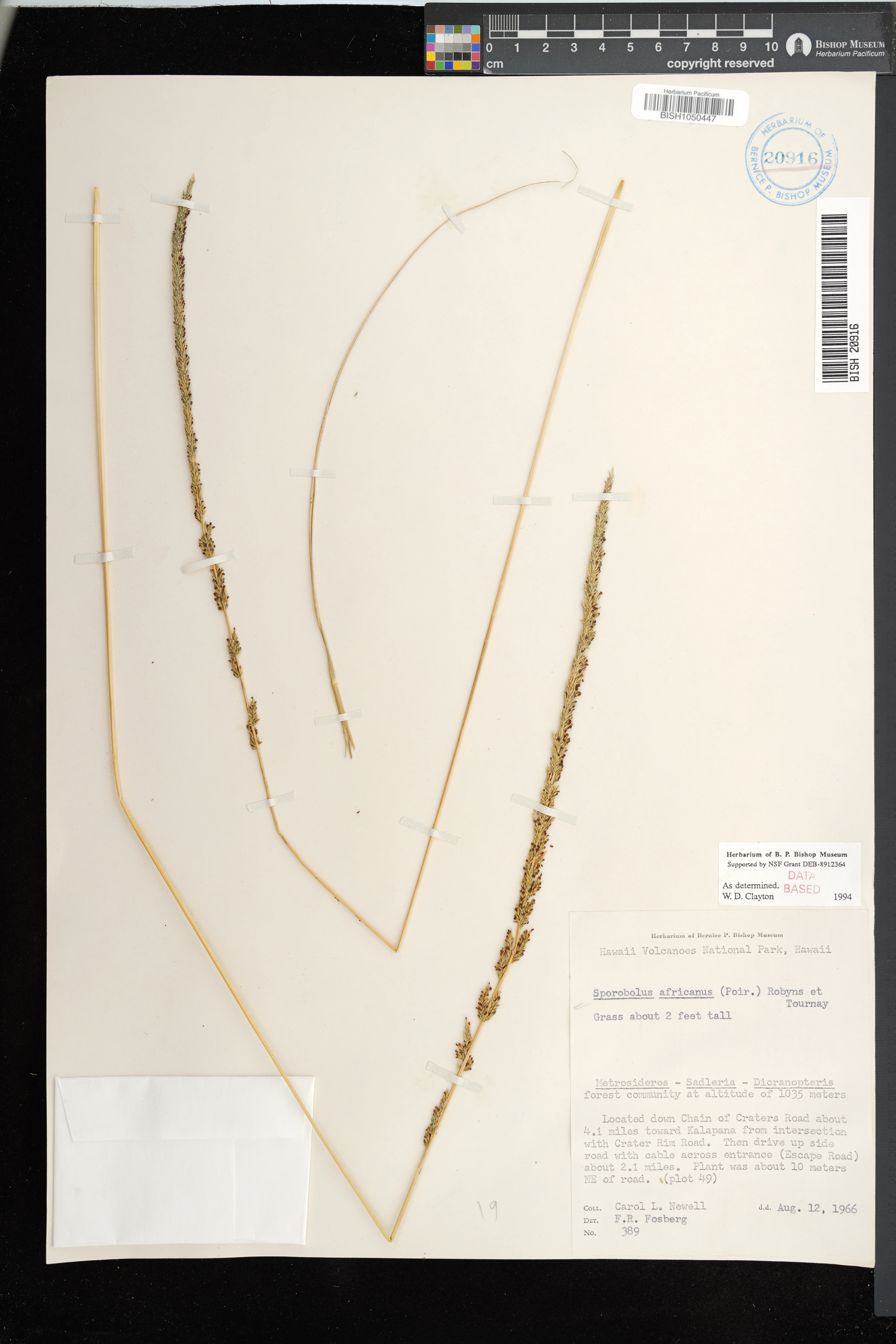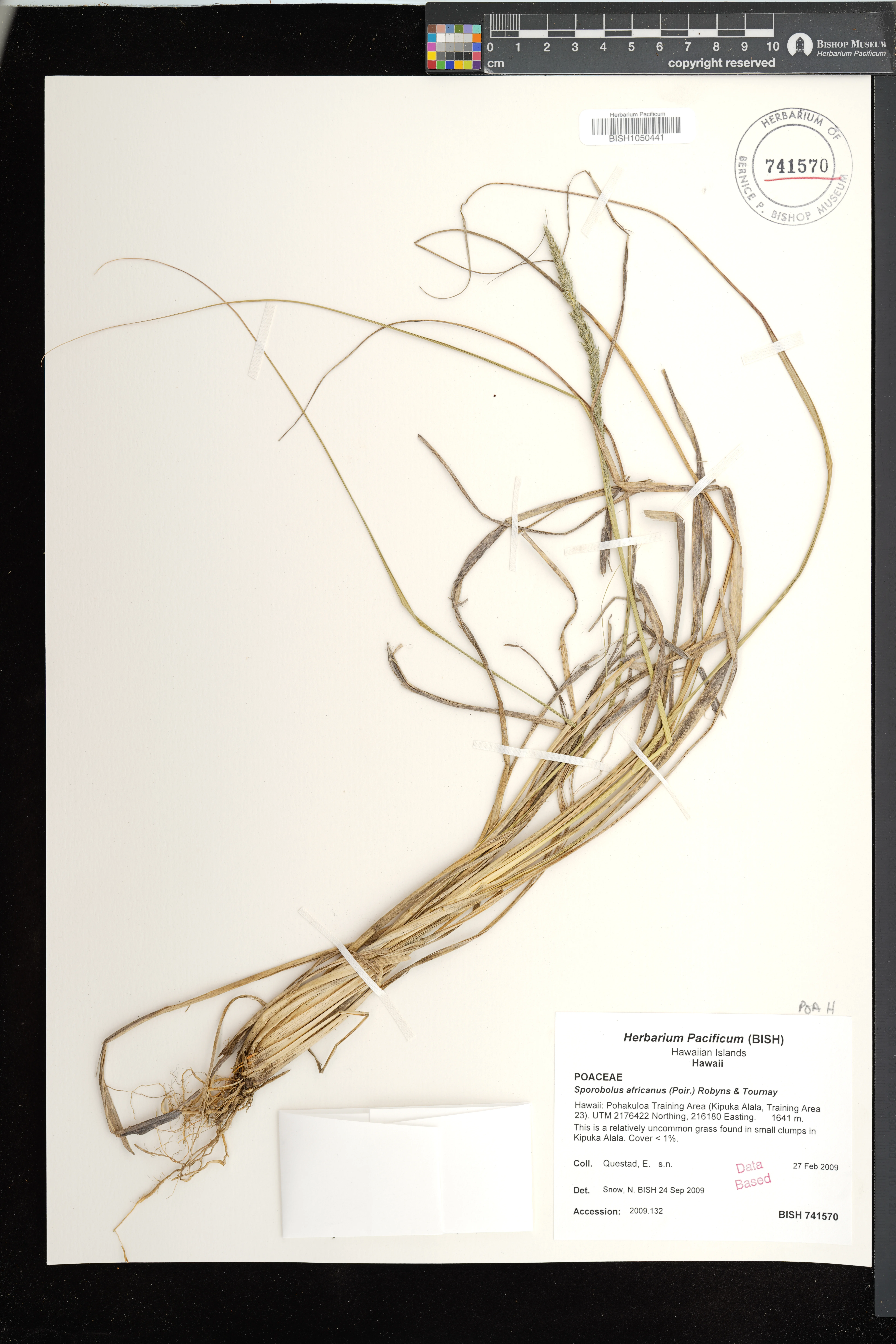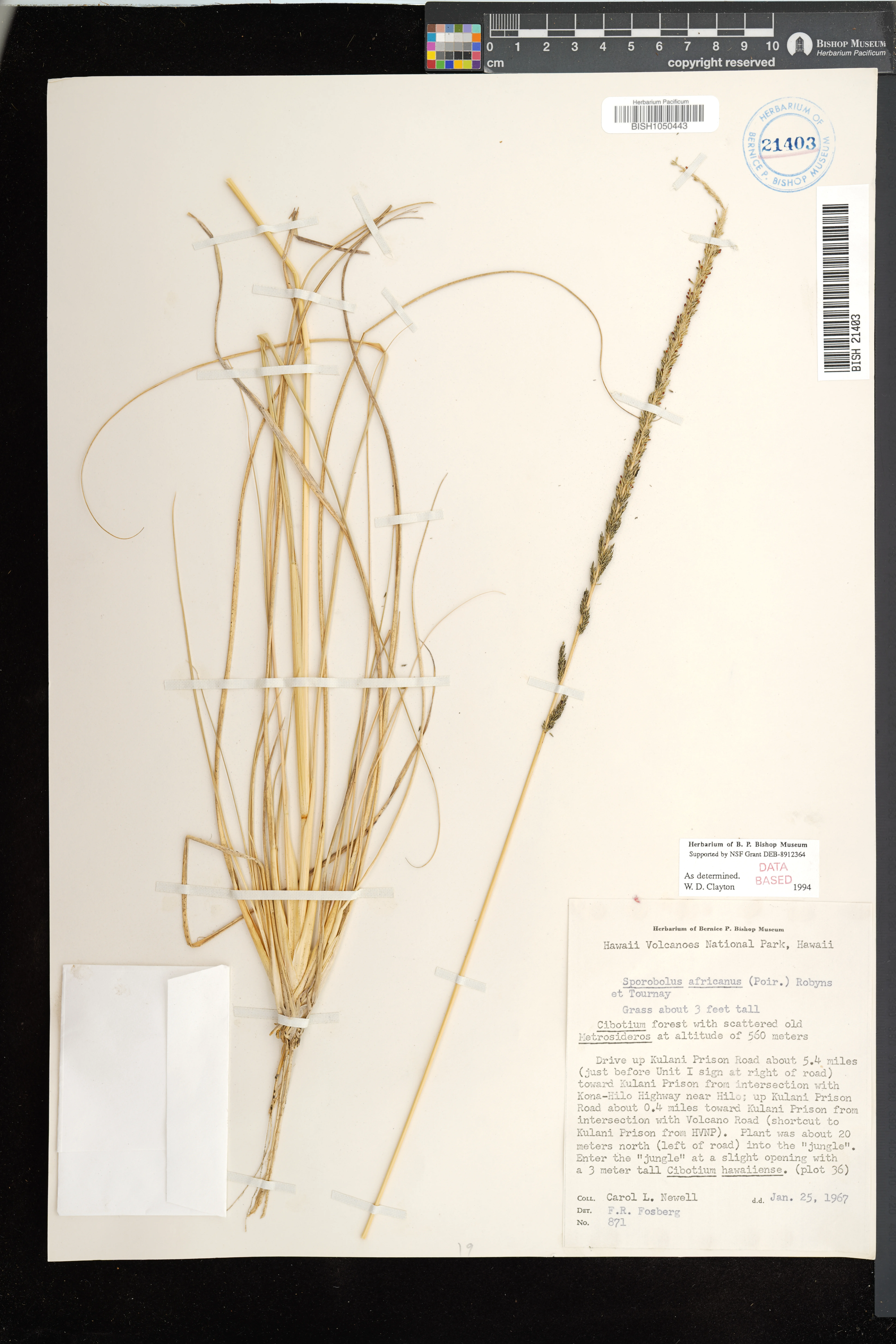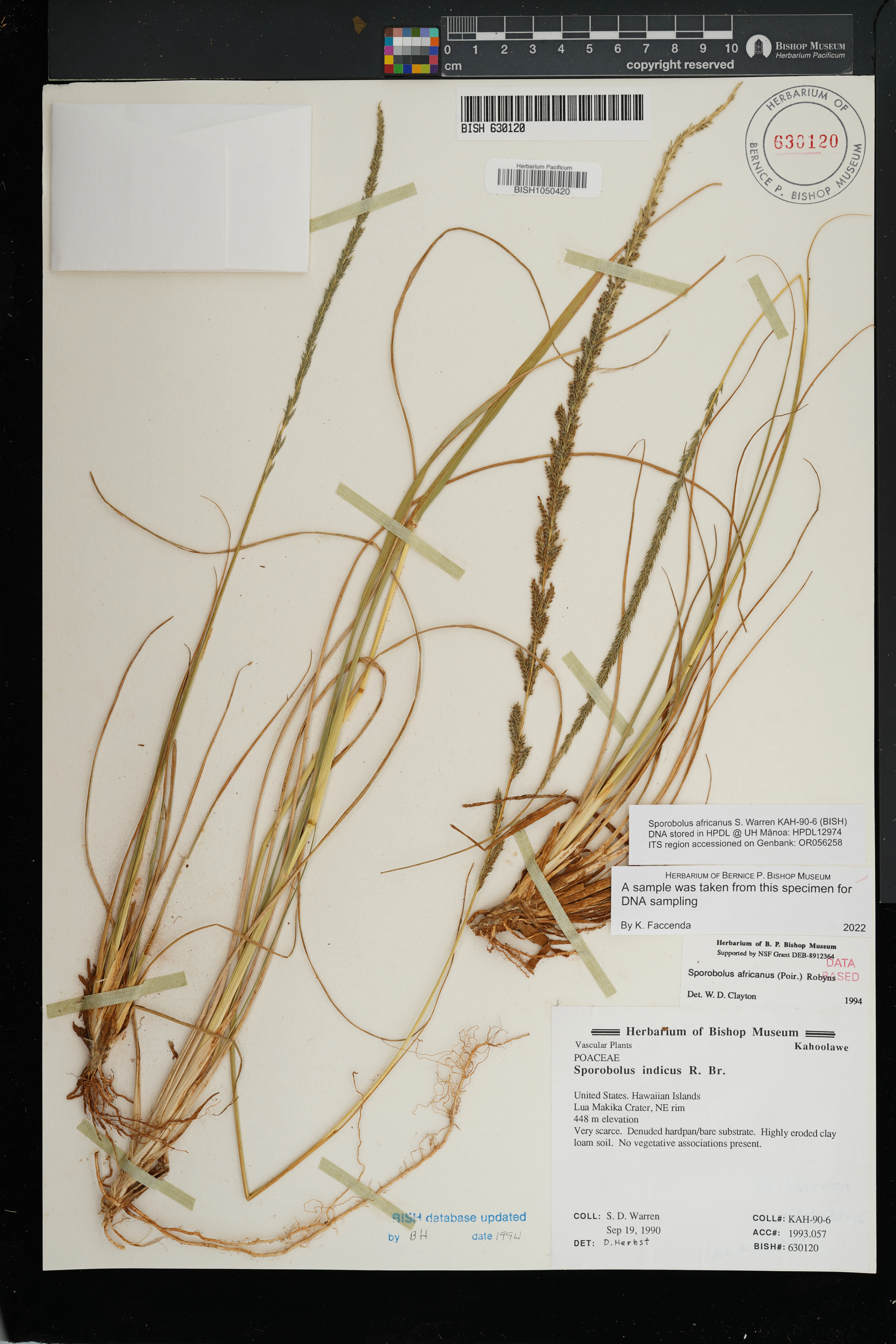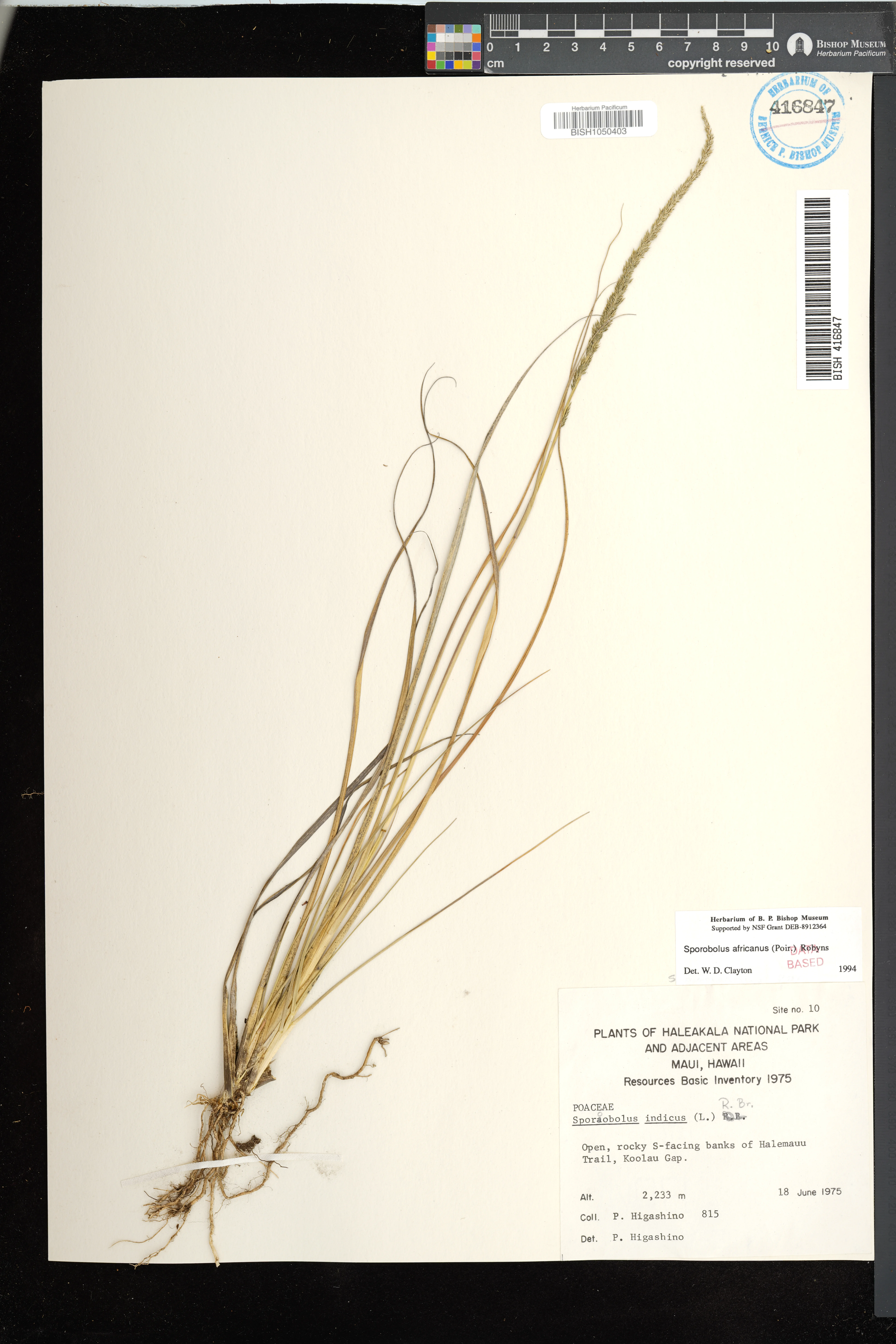 Scattered Metrosideros-Andropogon grassland community on stationary ash dunes. |