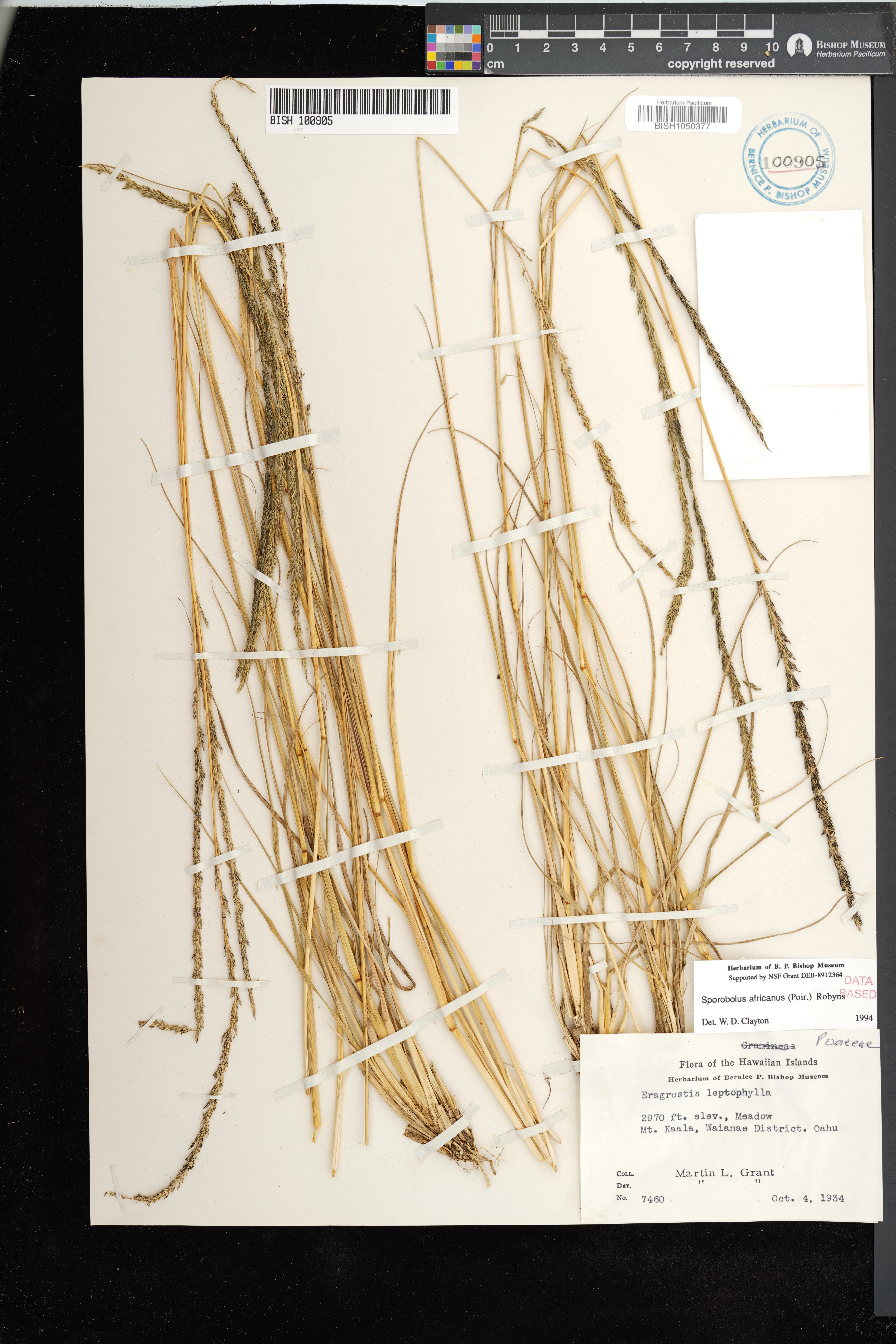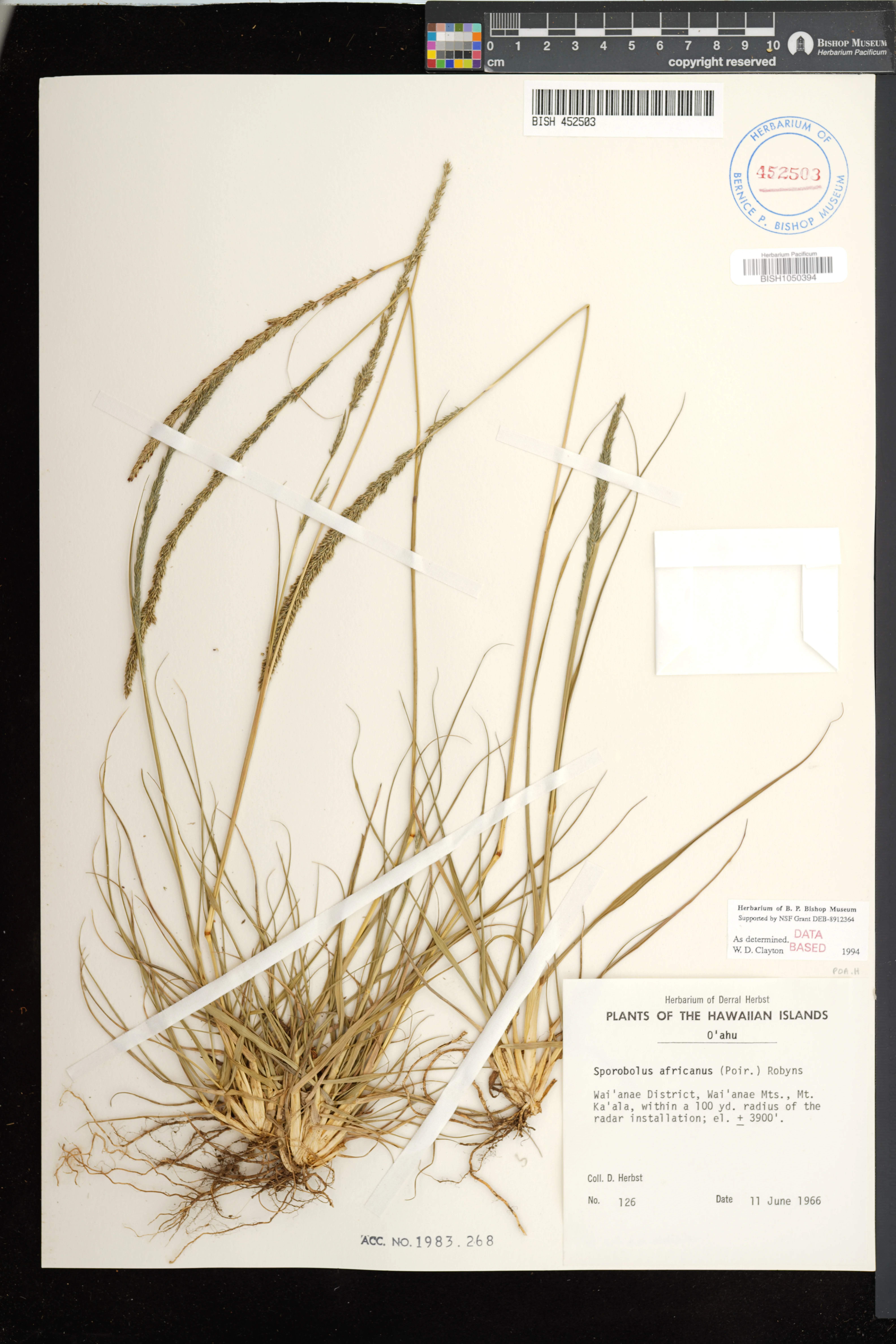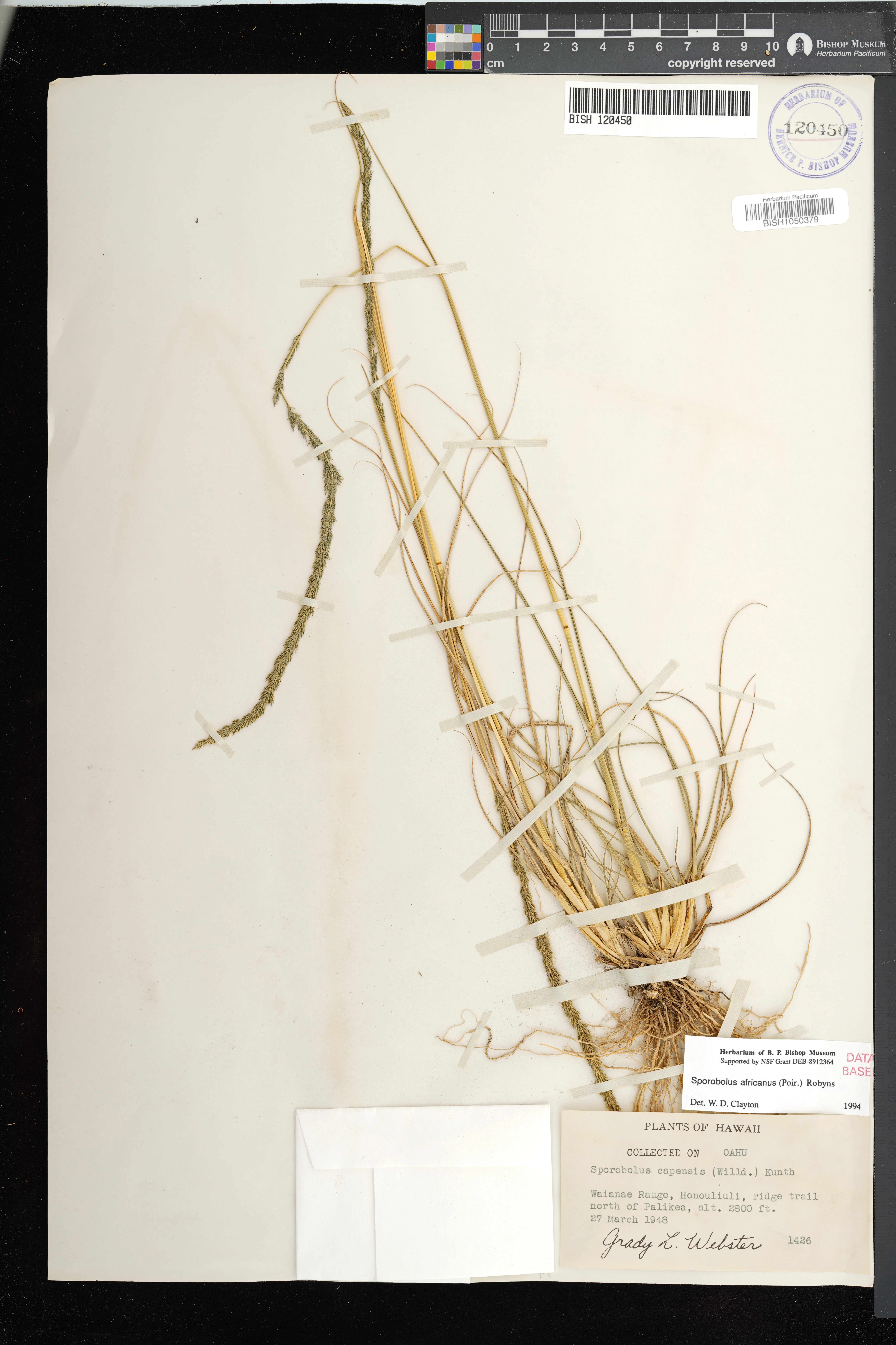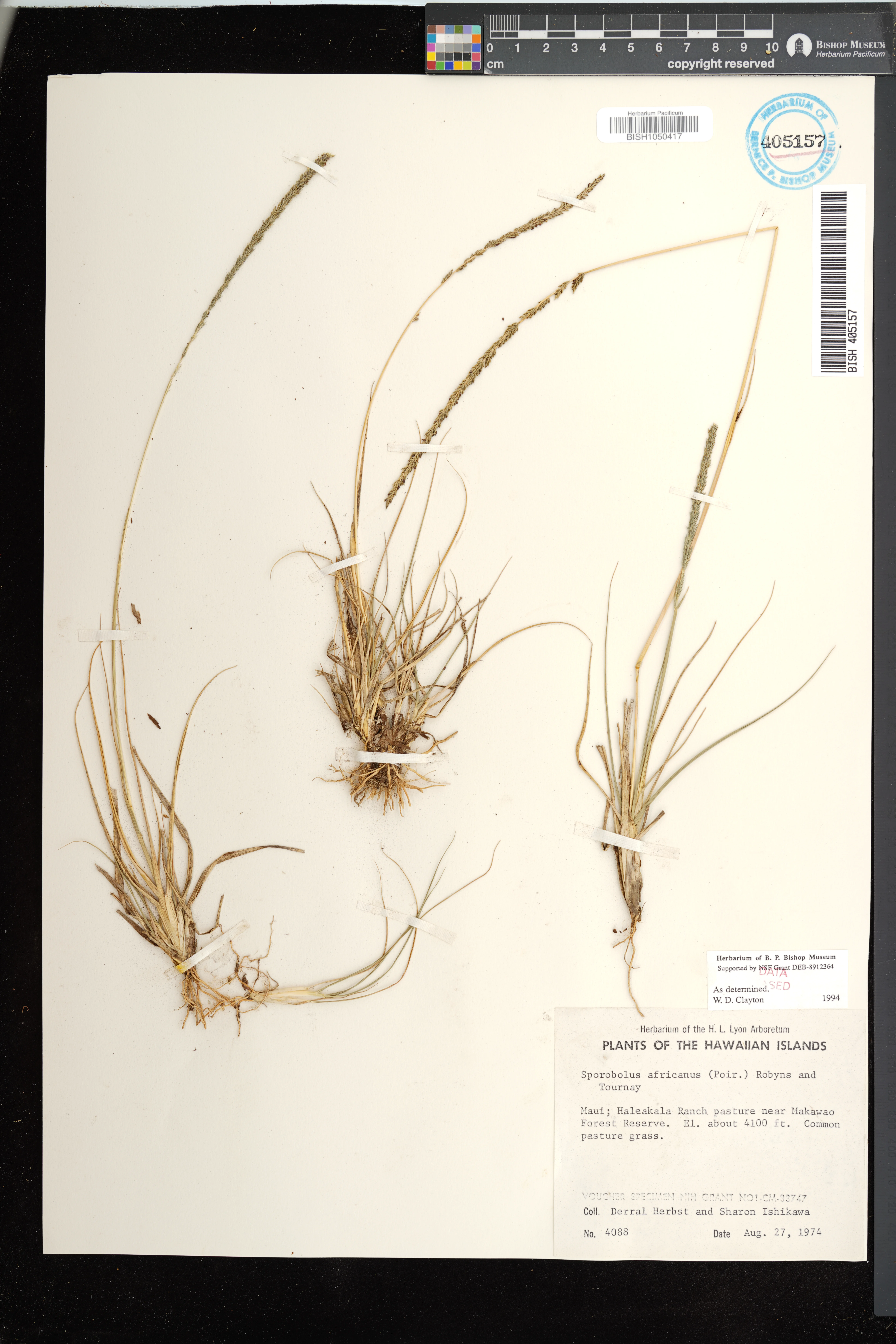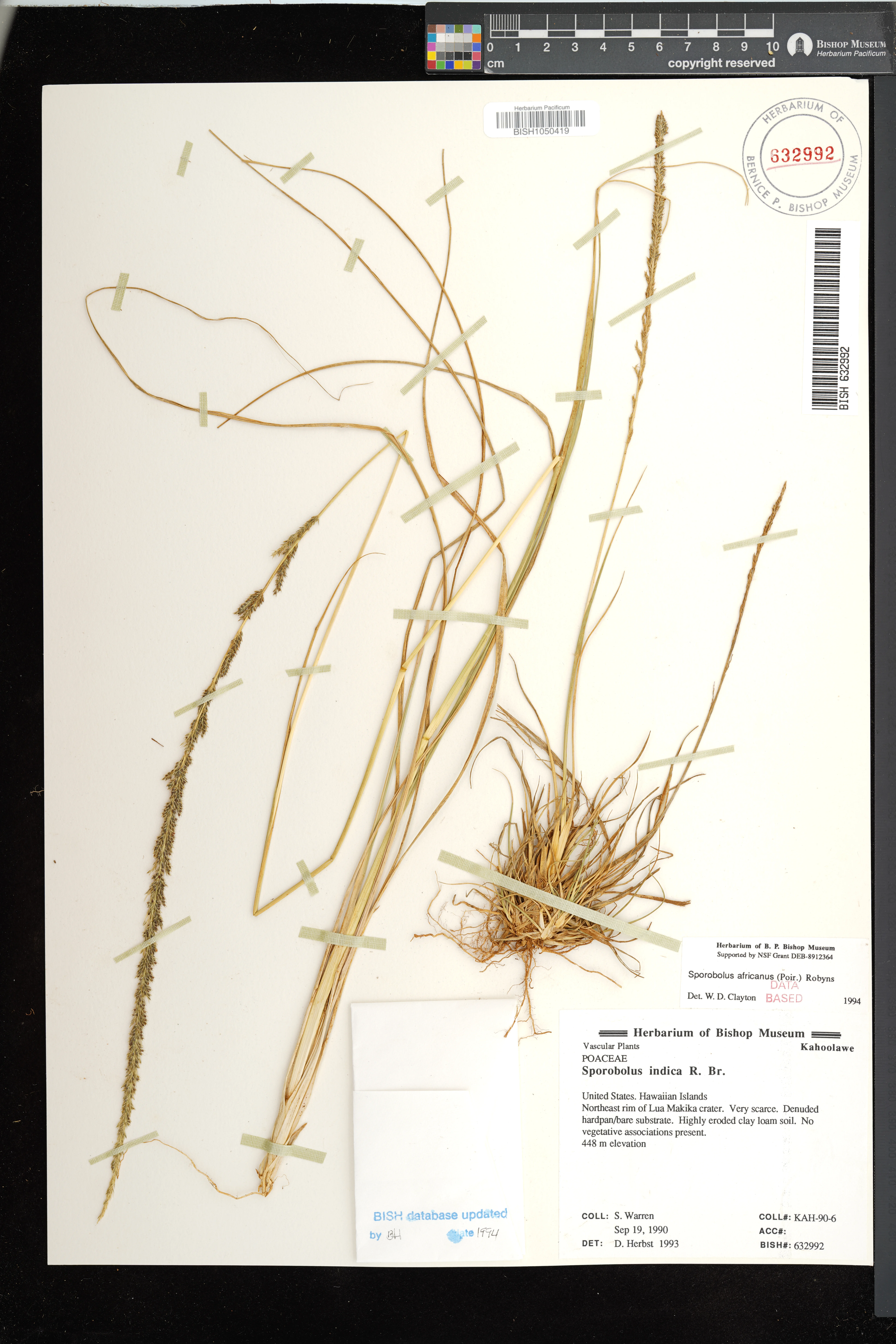 Scattered Metrosideros-Andropogon grassland community on stationary ash dunes. |