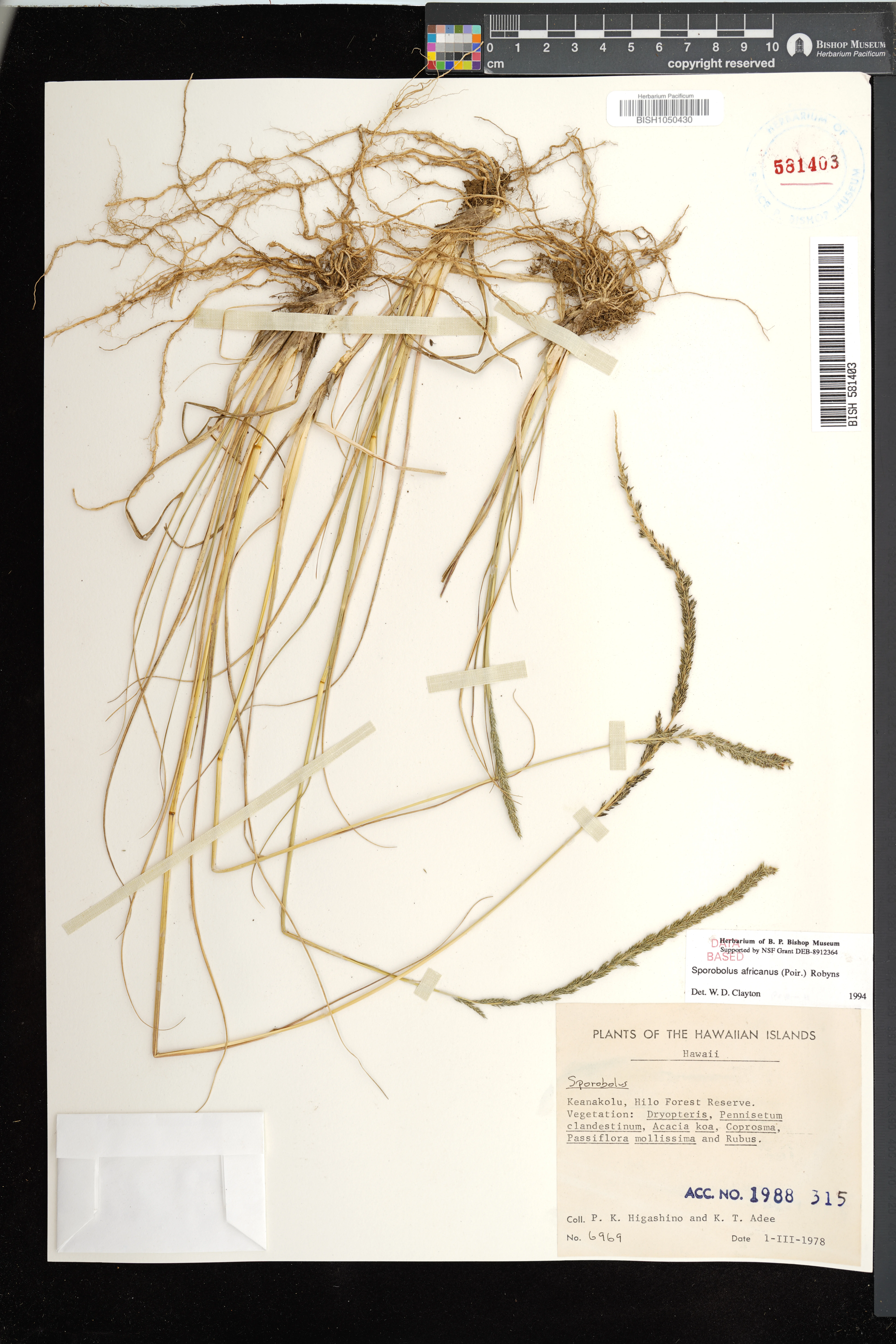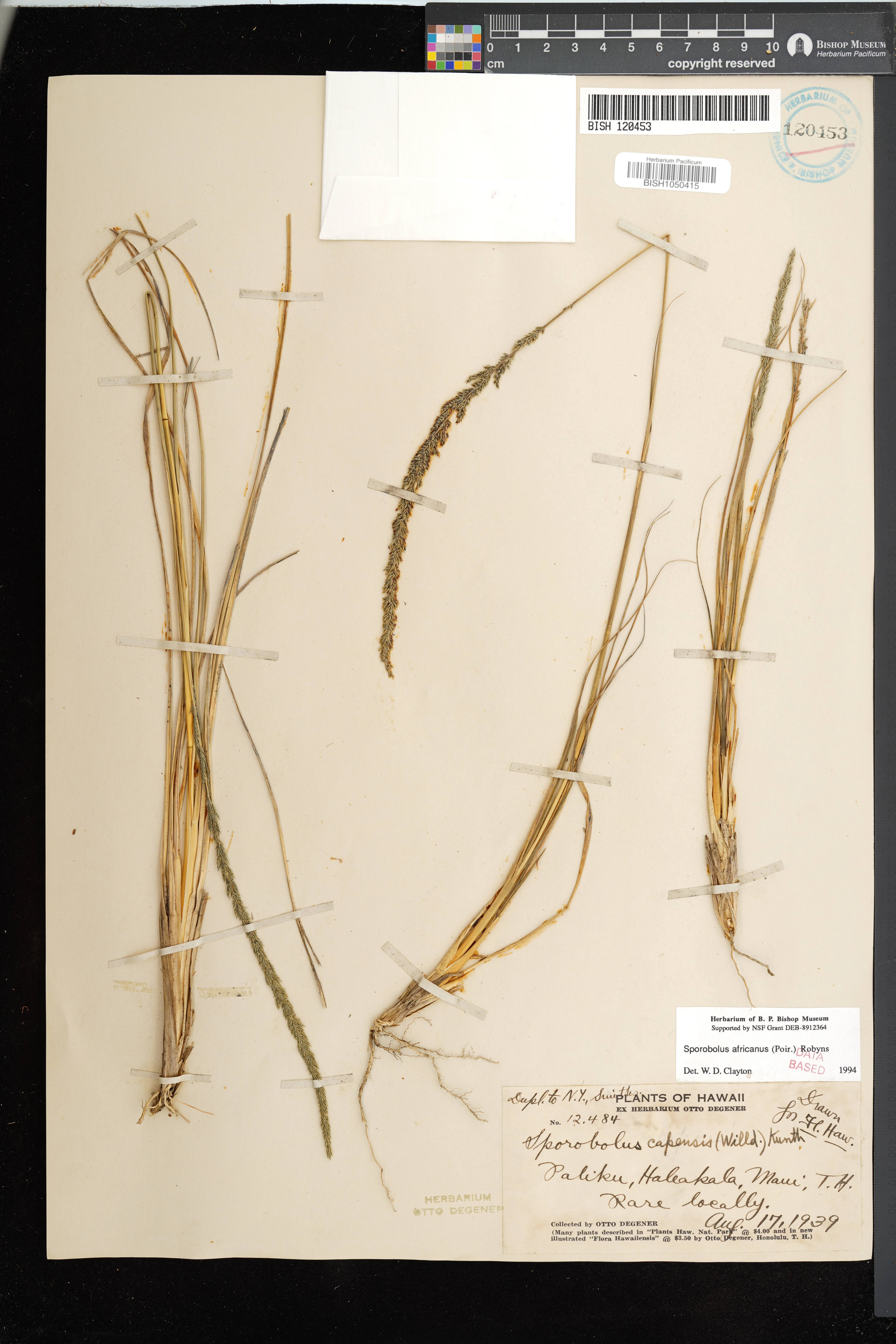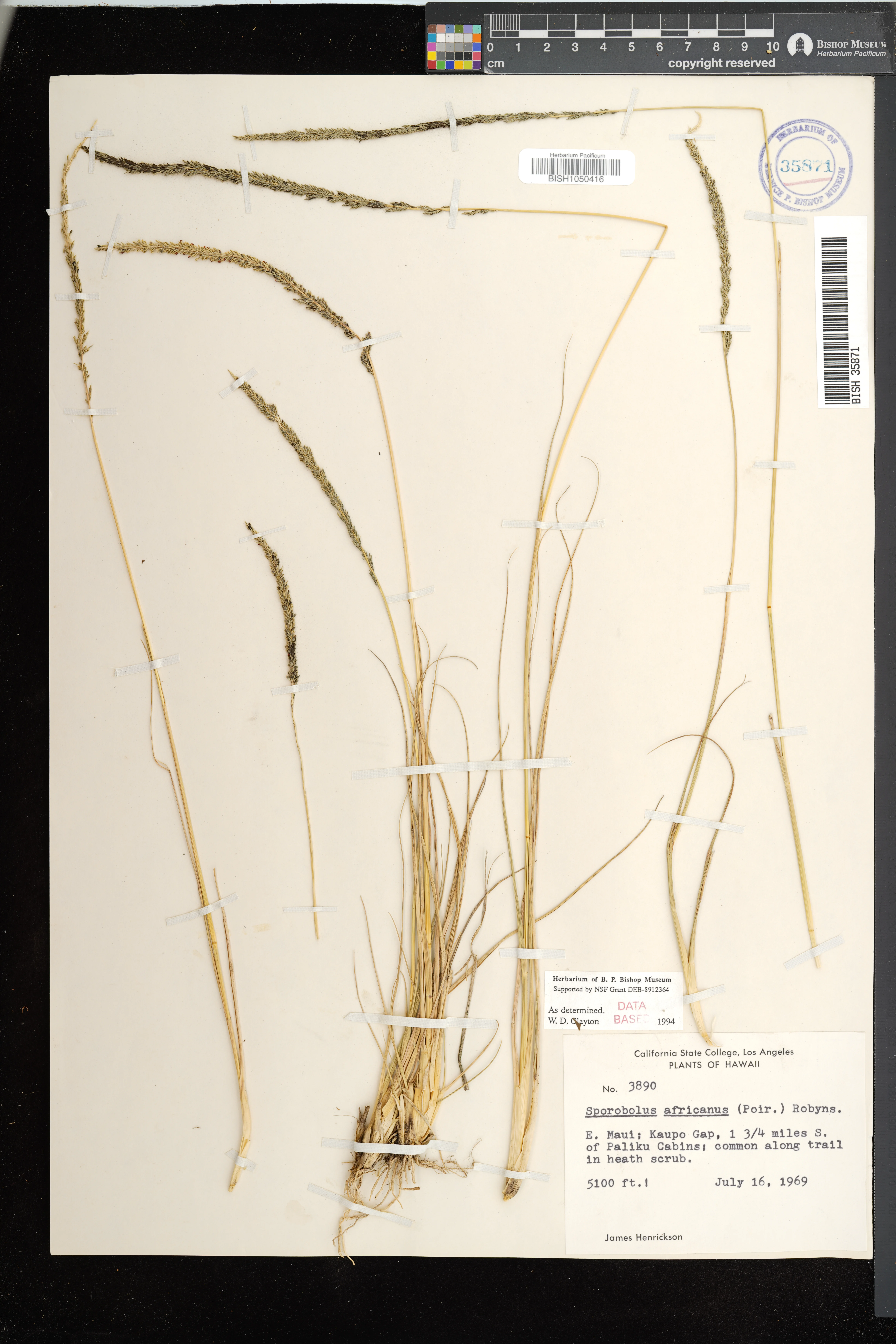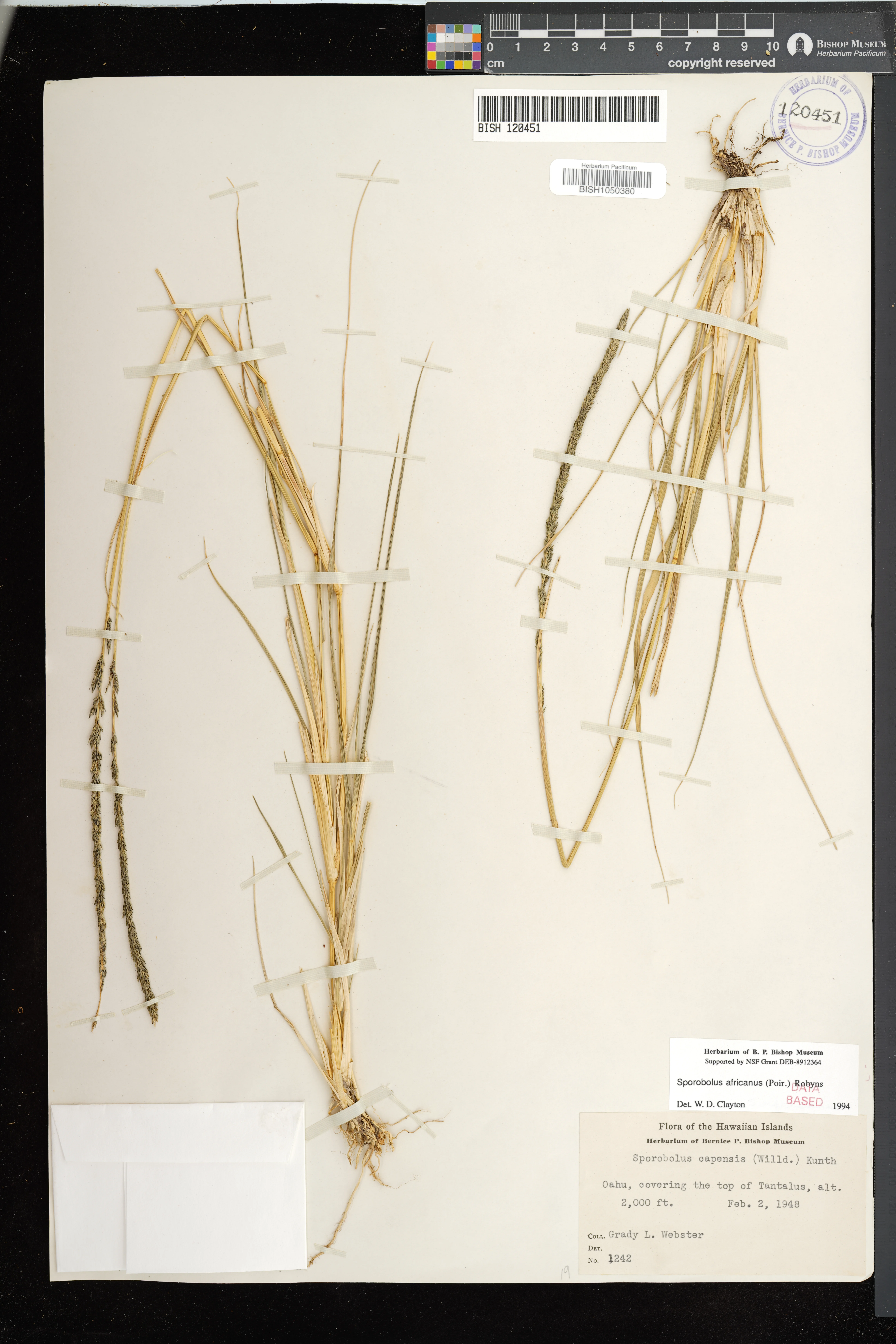 Scattered Metrosideros-Andropogon grassland community on stationary ash dunes. |