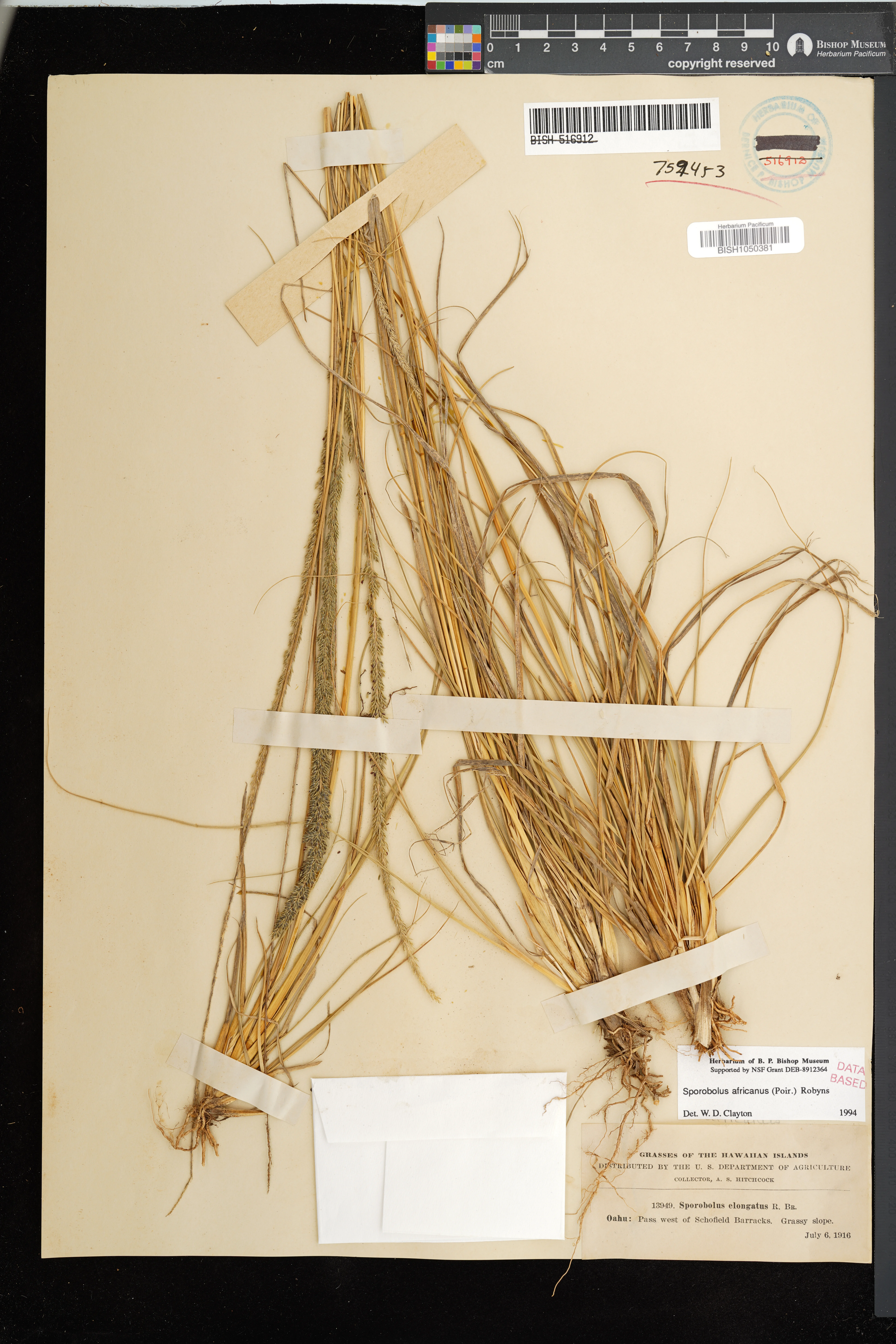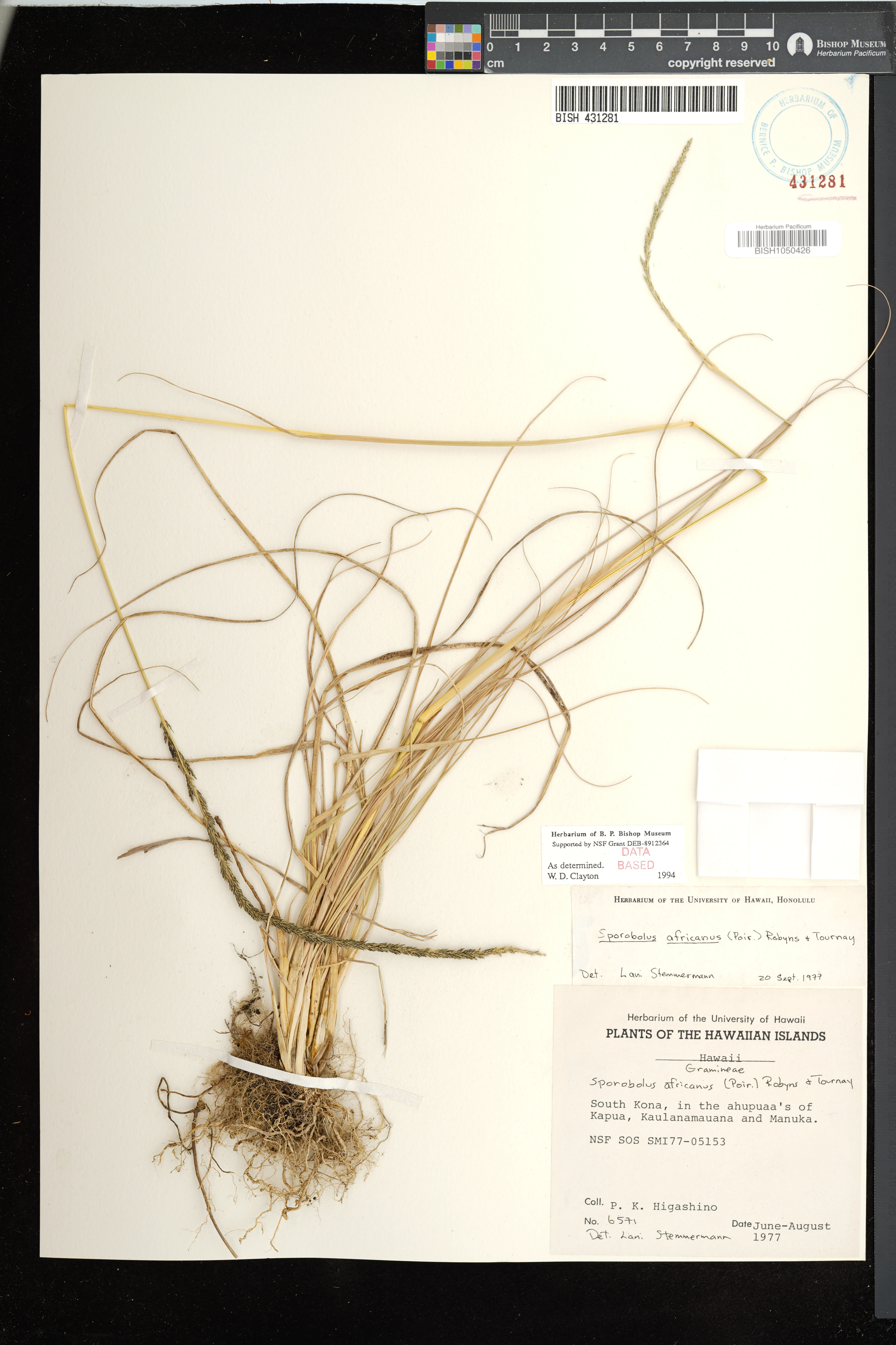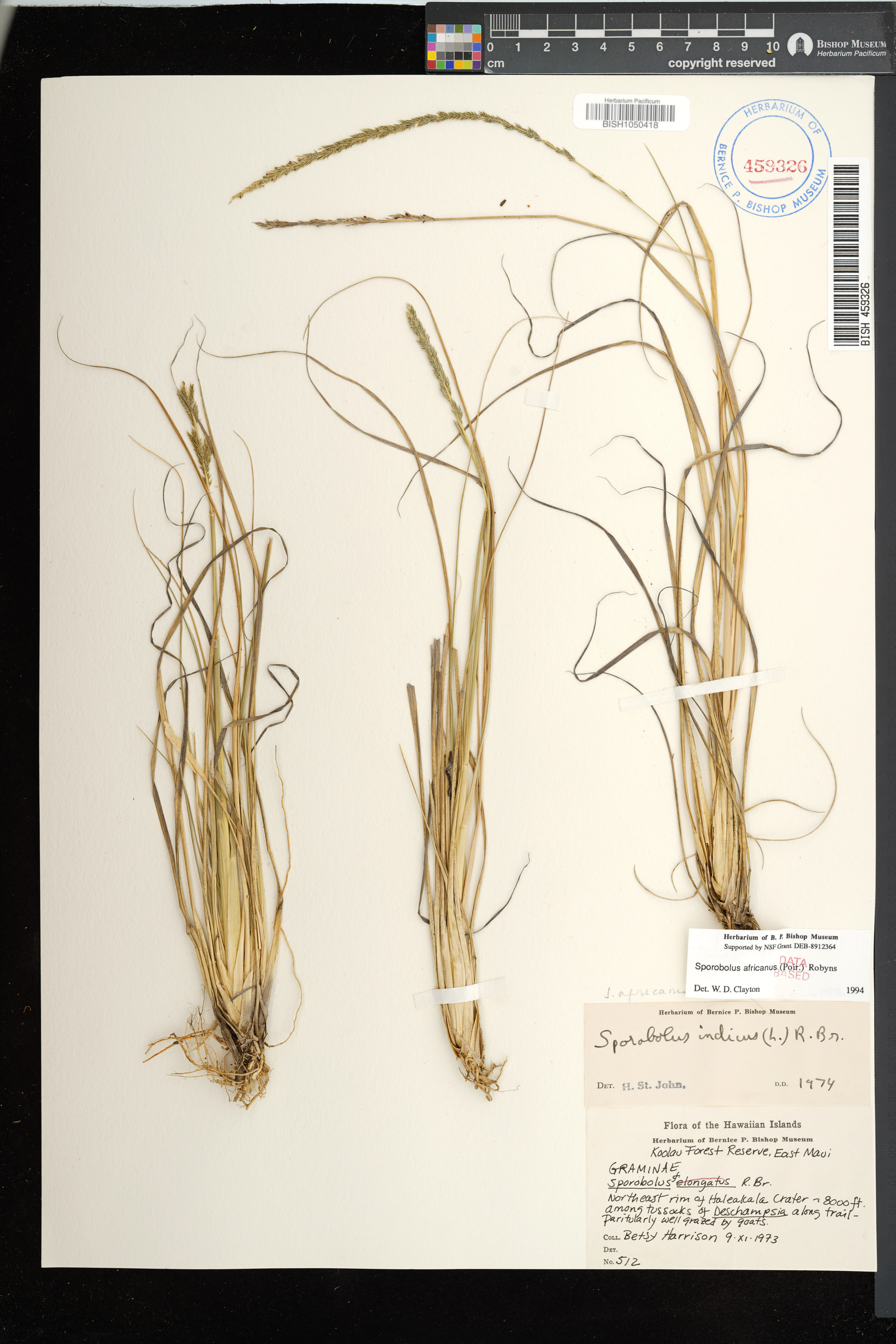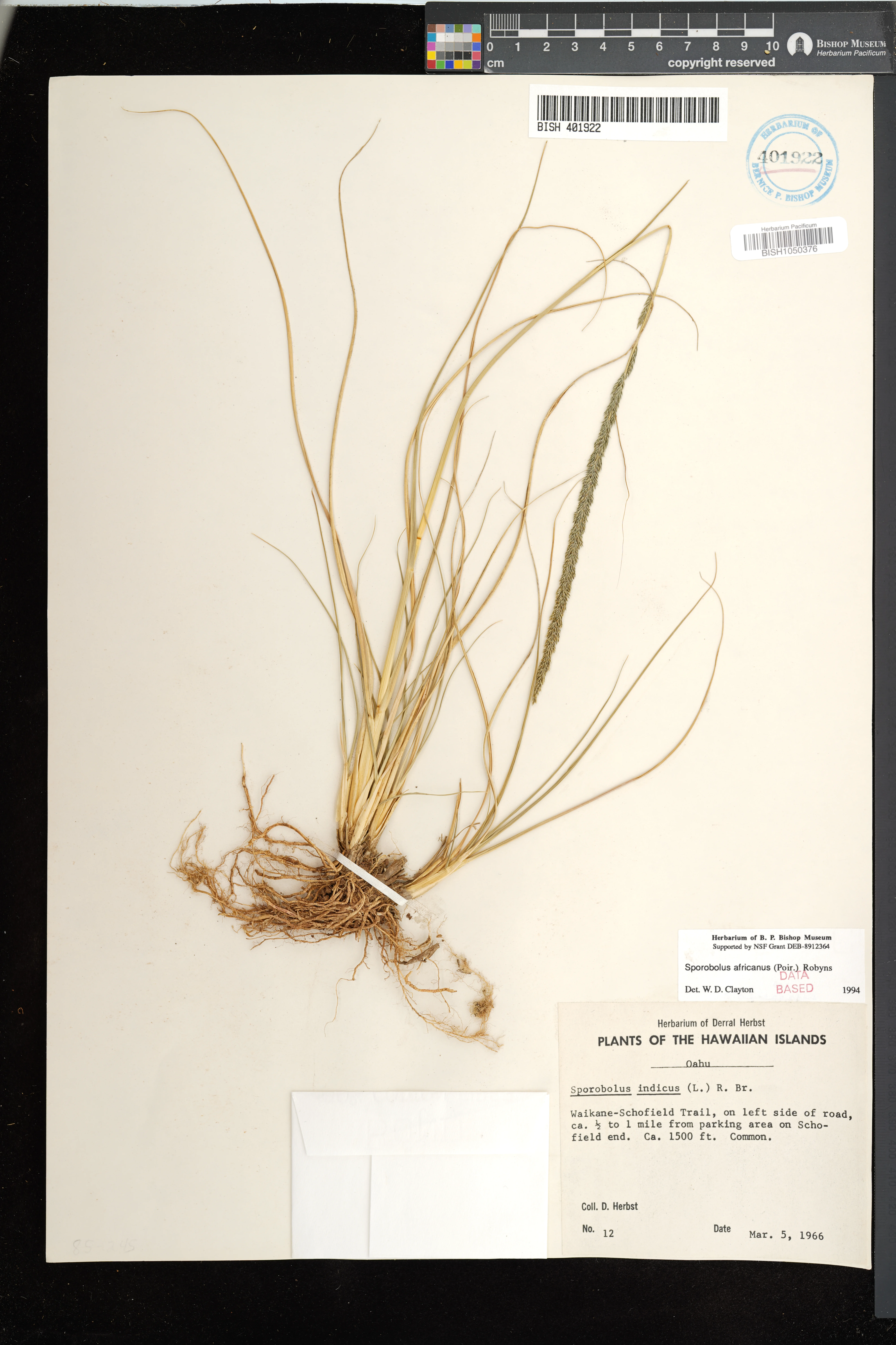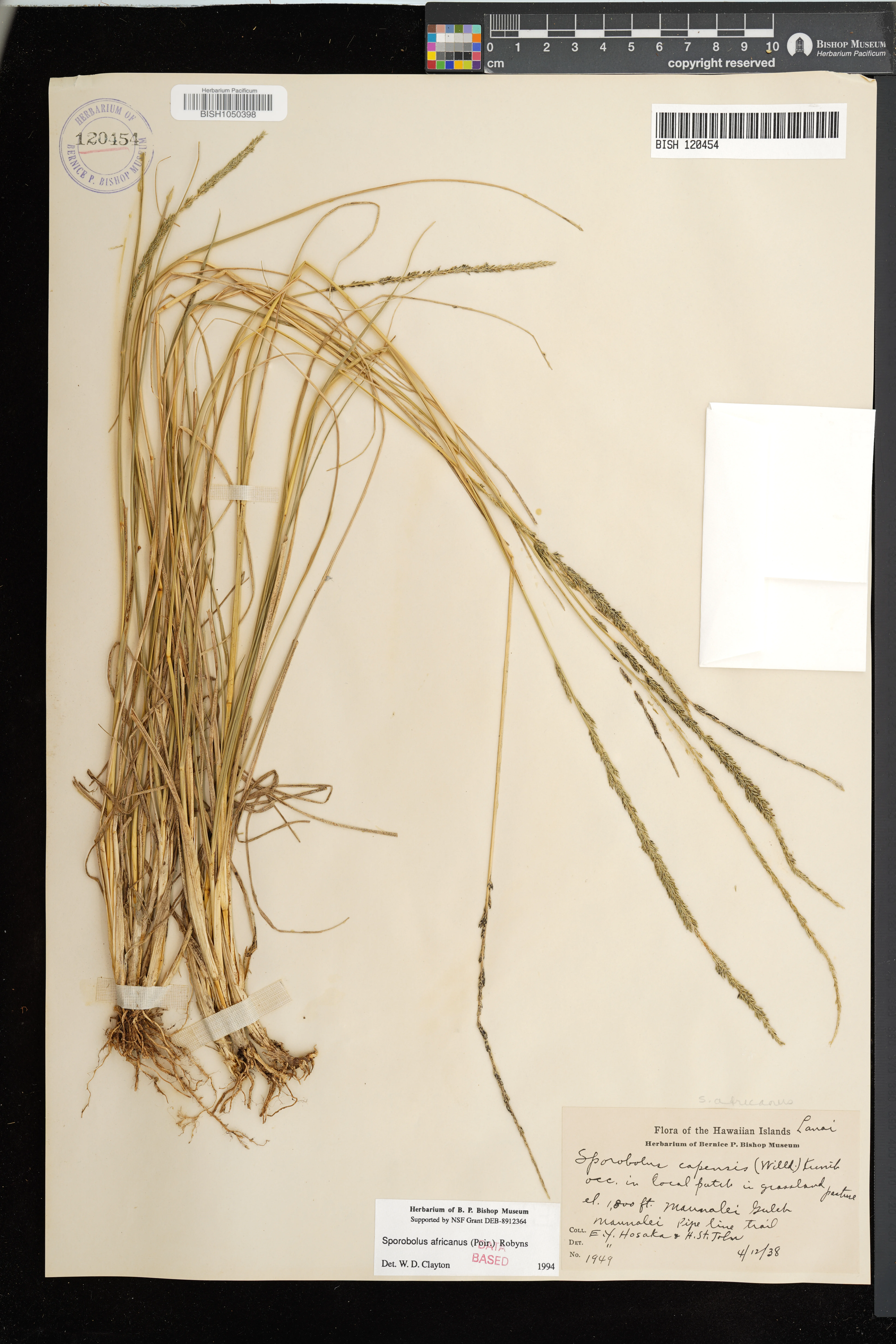 Scattered Metrosideros-Andropogon grassland community on stationary ash dunes. |