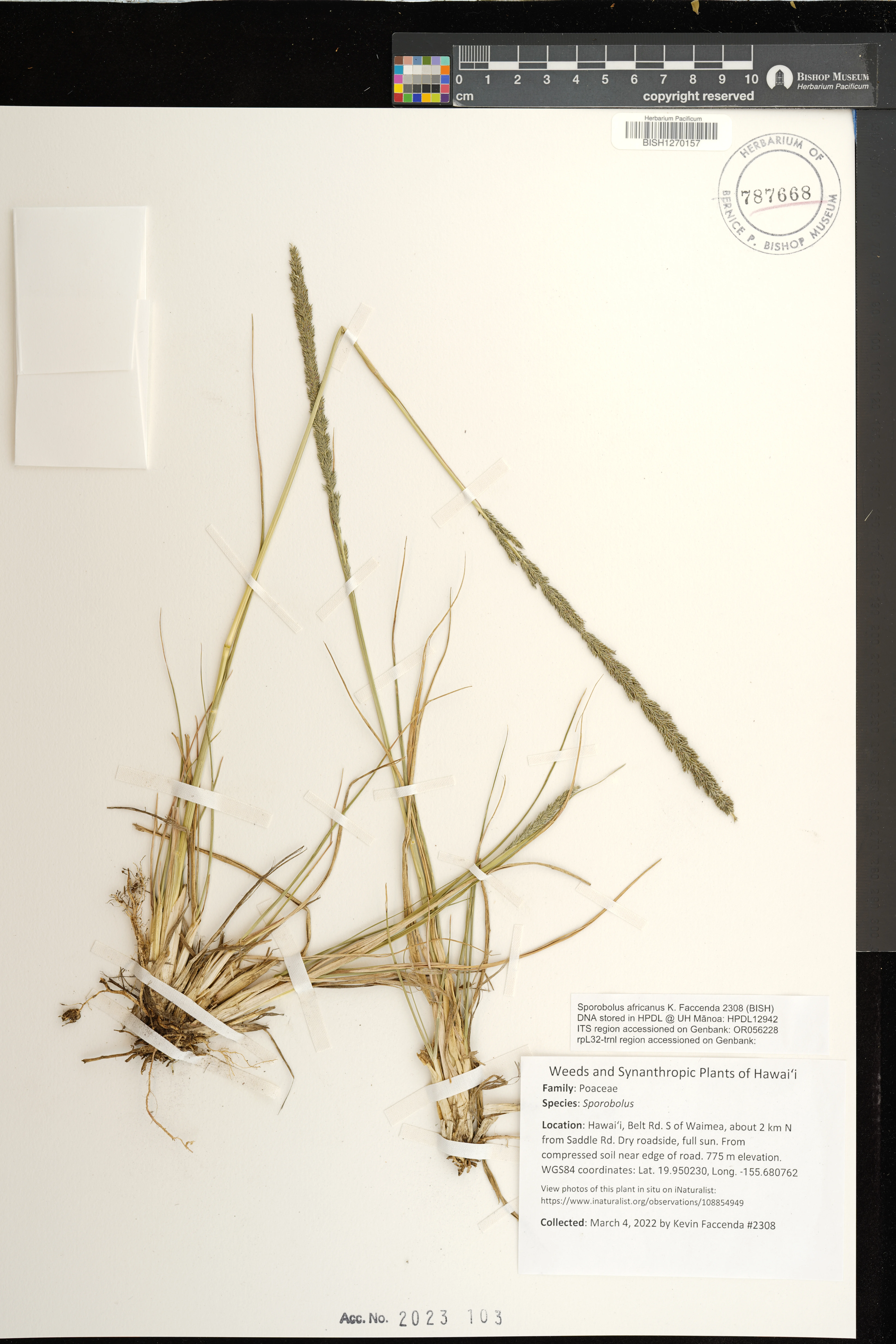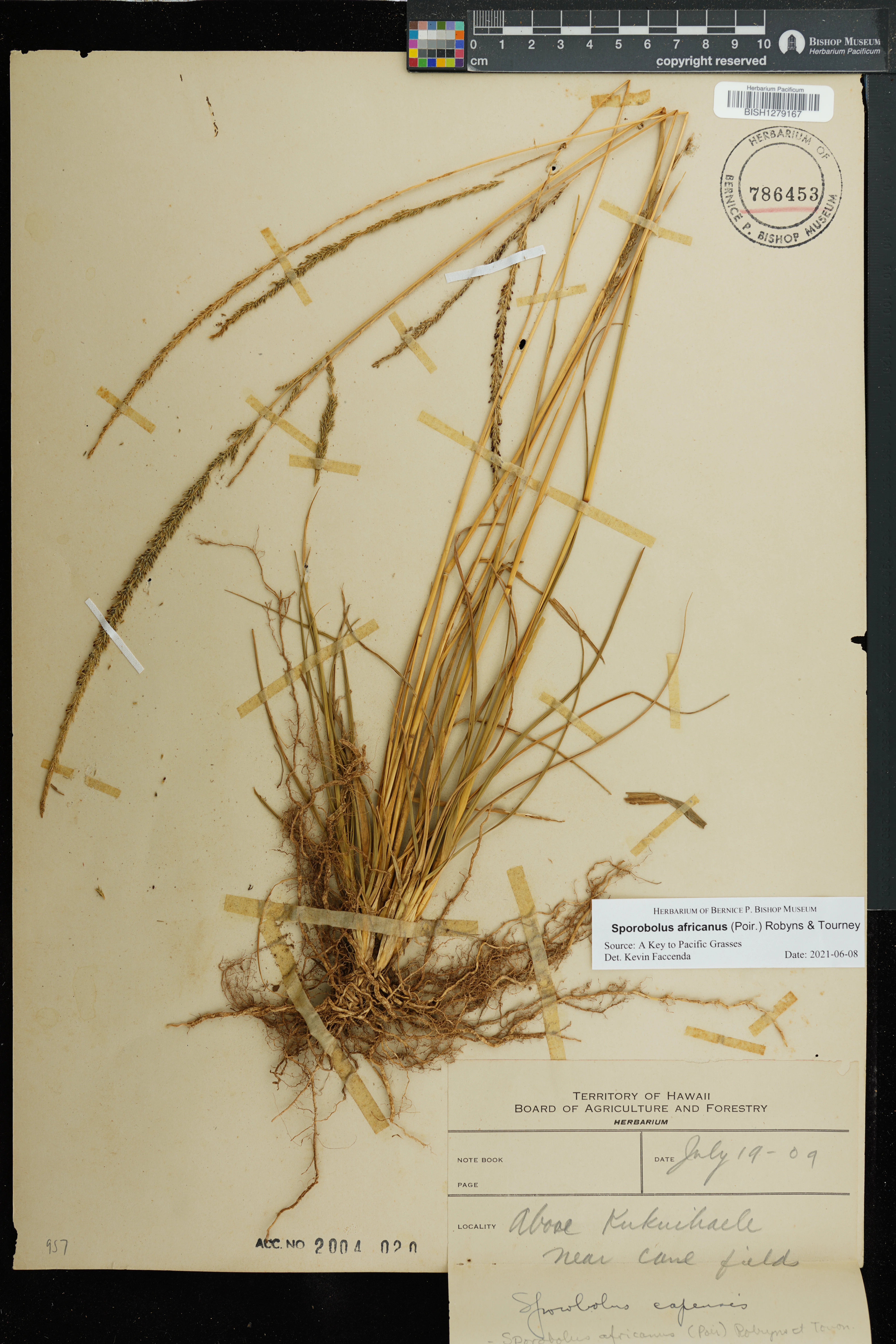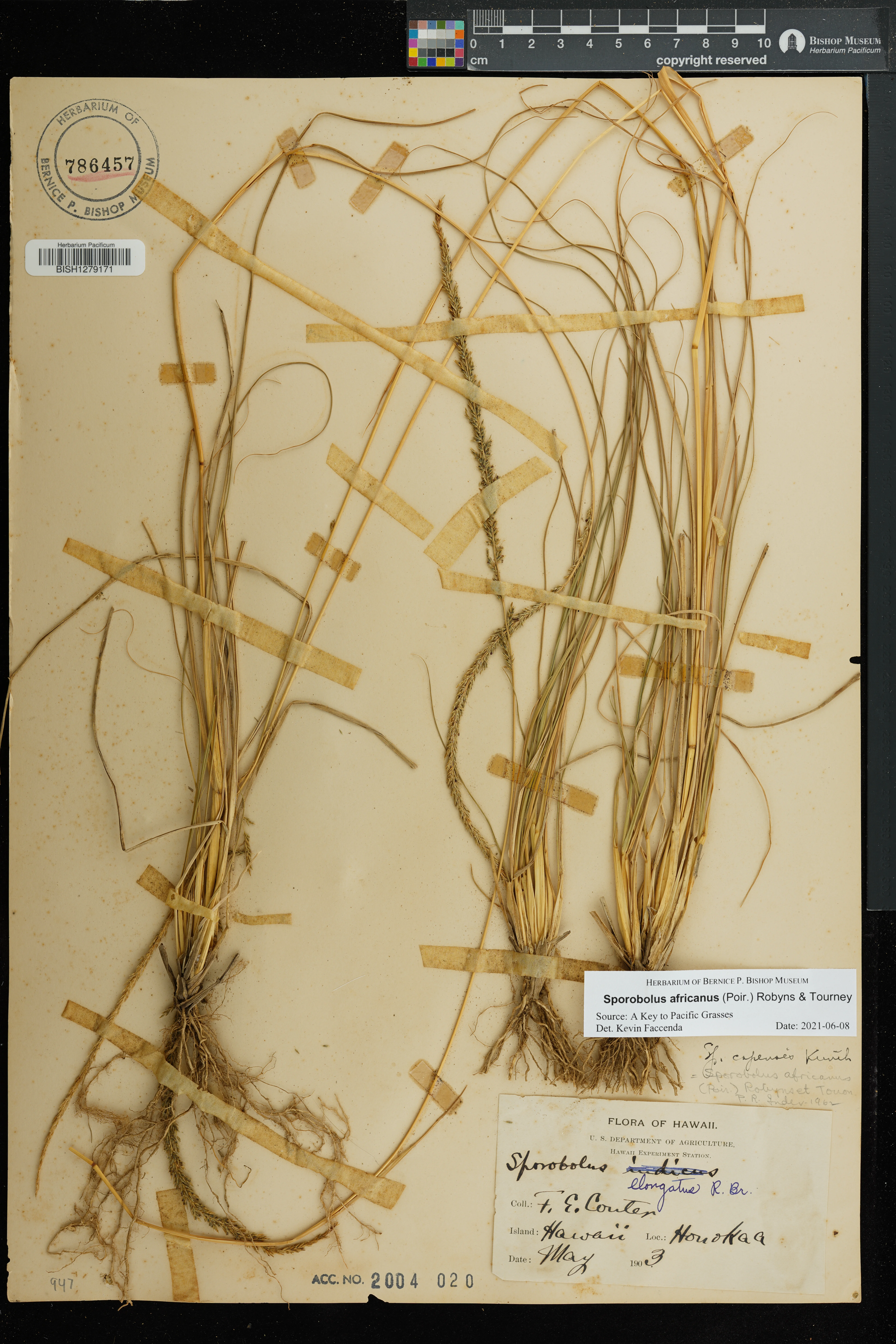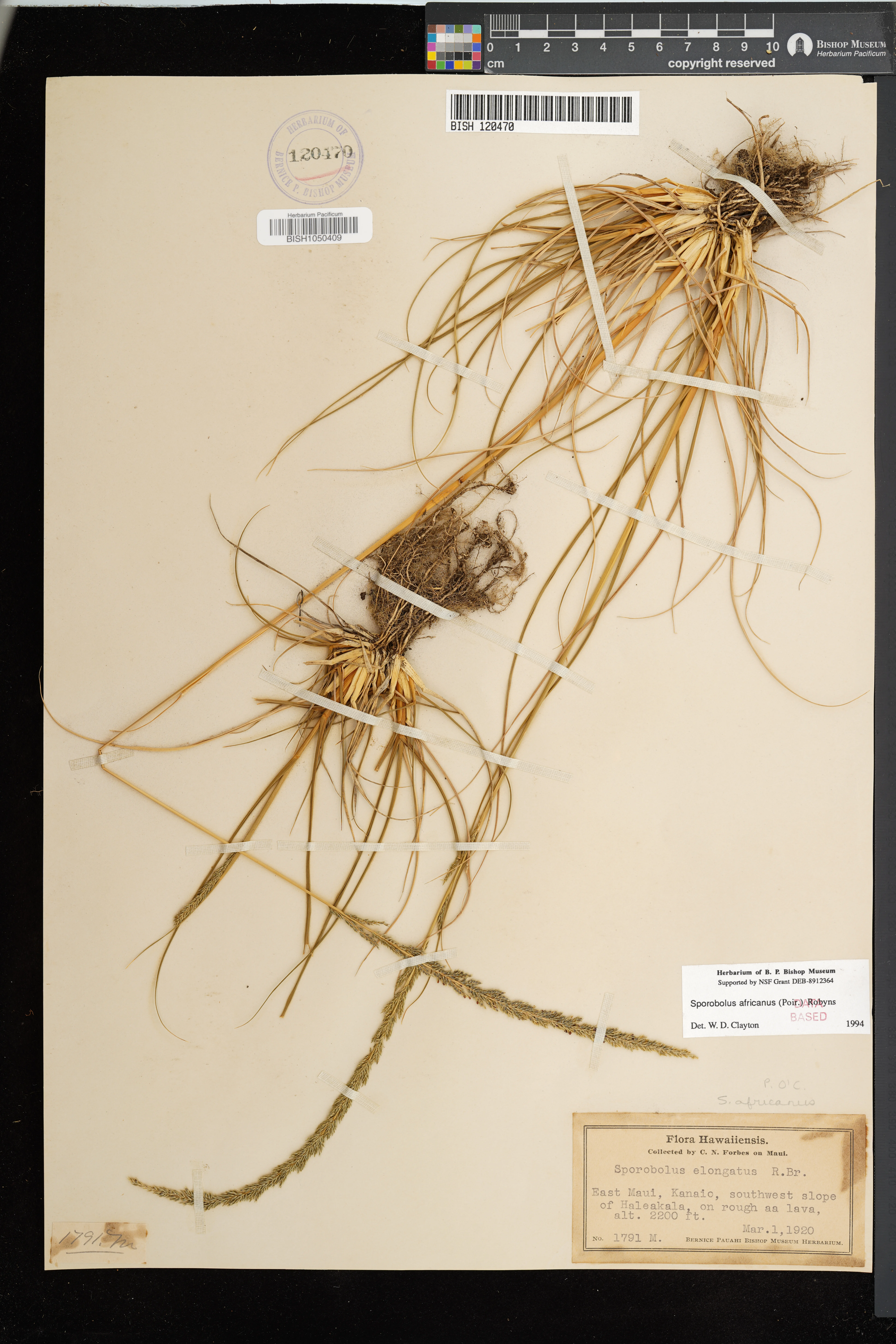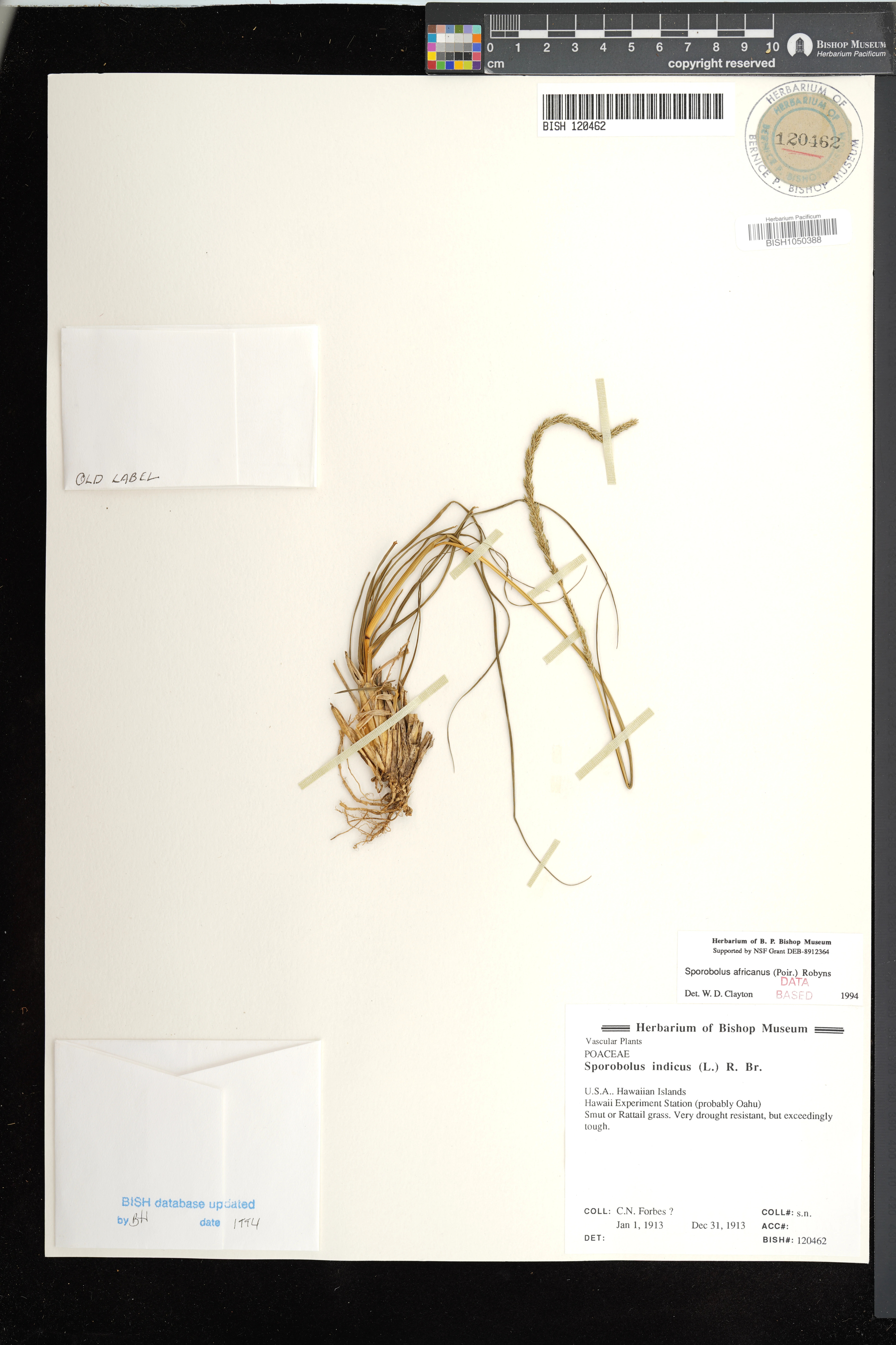 Scattered Metrosideros-Andropogon grassland community on stationary ash dunes. |
