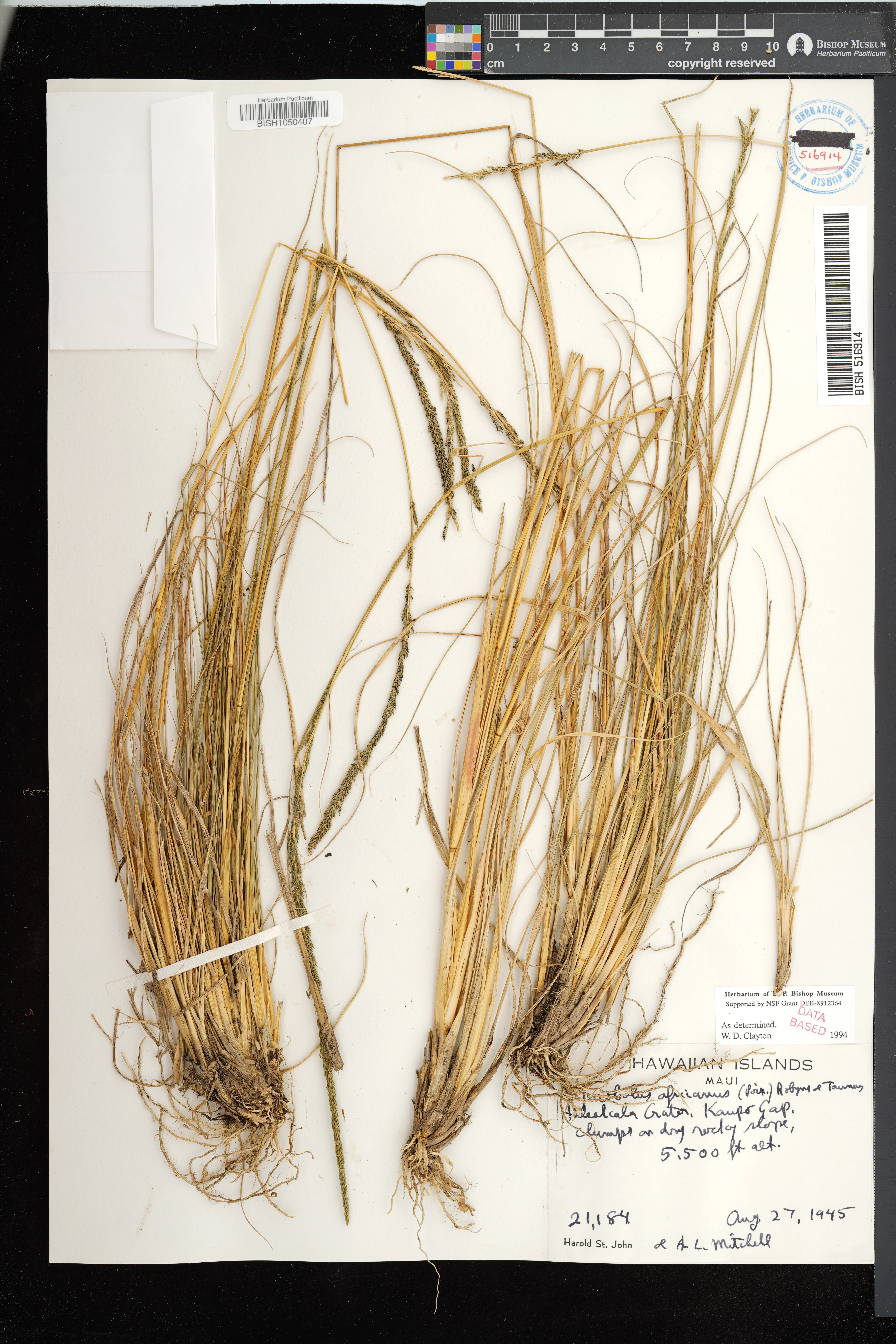 Occasional in subalpine shrubland. Vegetation: Leptecophylla, Vaccinium, Deschampsia, Carex, Sophora, Coprosma, Luzula, Dubautia, Trisetum, Asplenium, Polypodium, Pellaea, Pteridium. |
