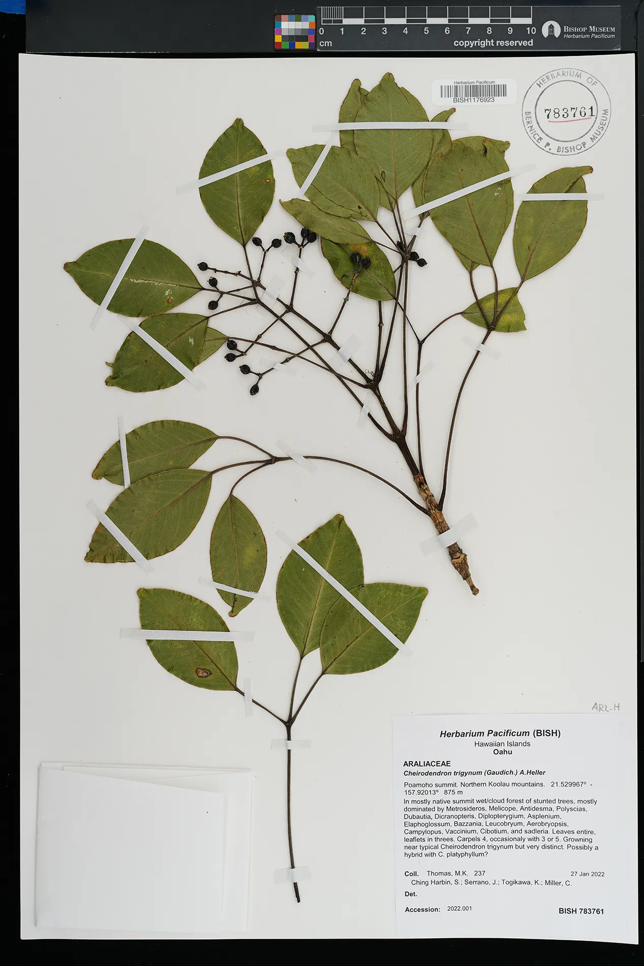 [var.] multiflorum [added later, carl skottsberg scripsit] kauai, waimea, kohua ridge, kawai trail, c.1200 m aug. 19 l. m. cranwell. o. selling. c. skottsberg. 3881. hawaiian bog survey 1938. |