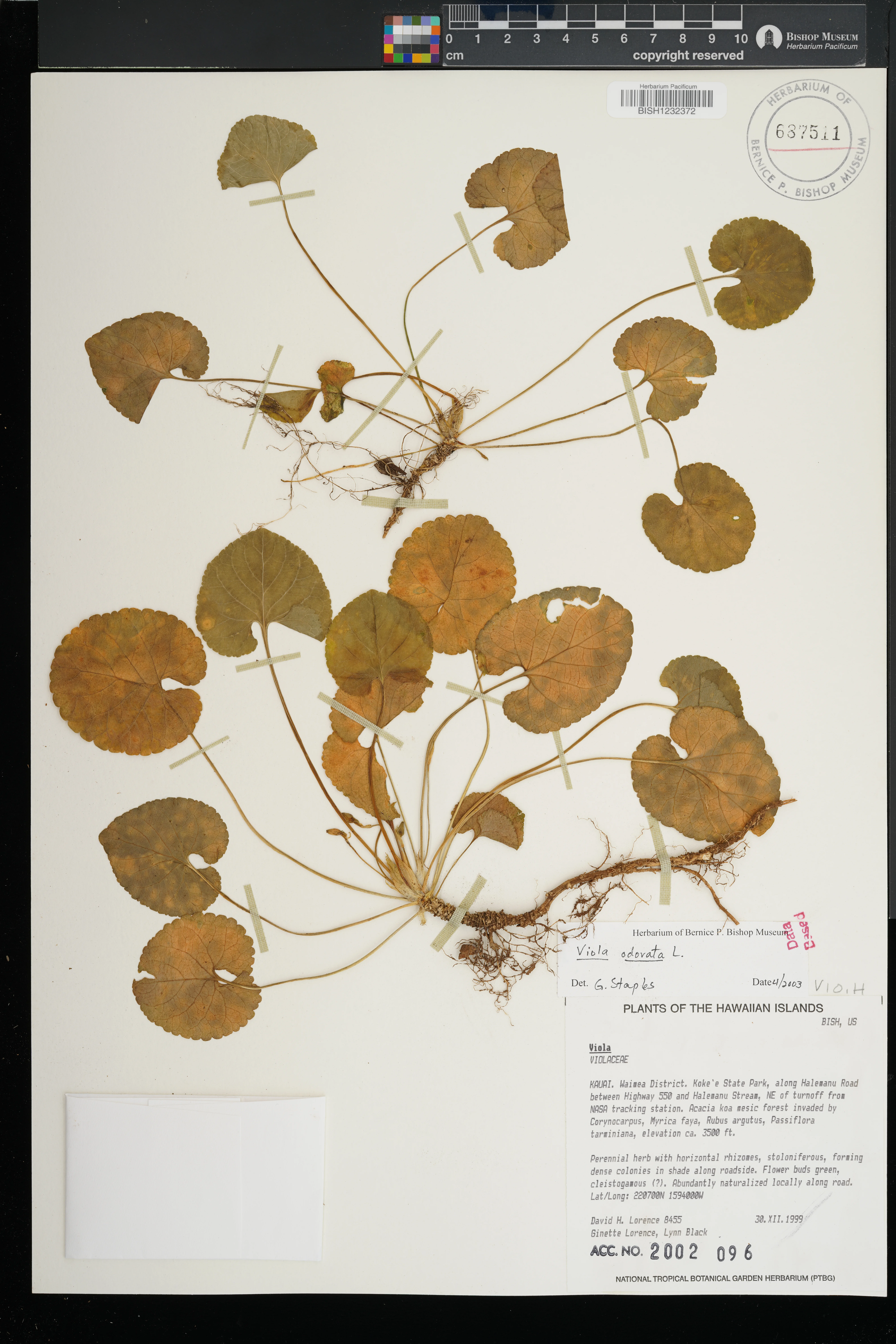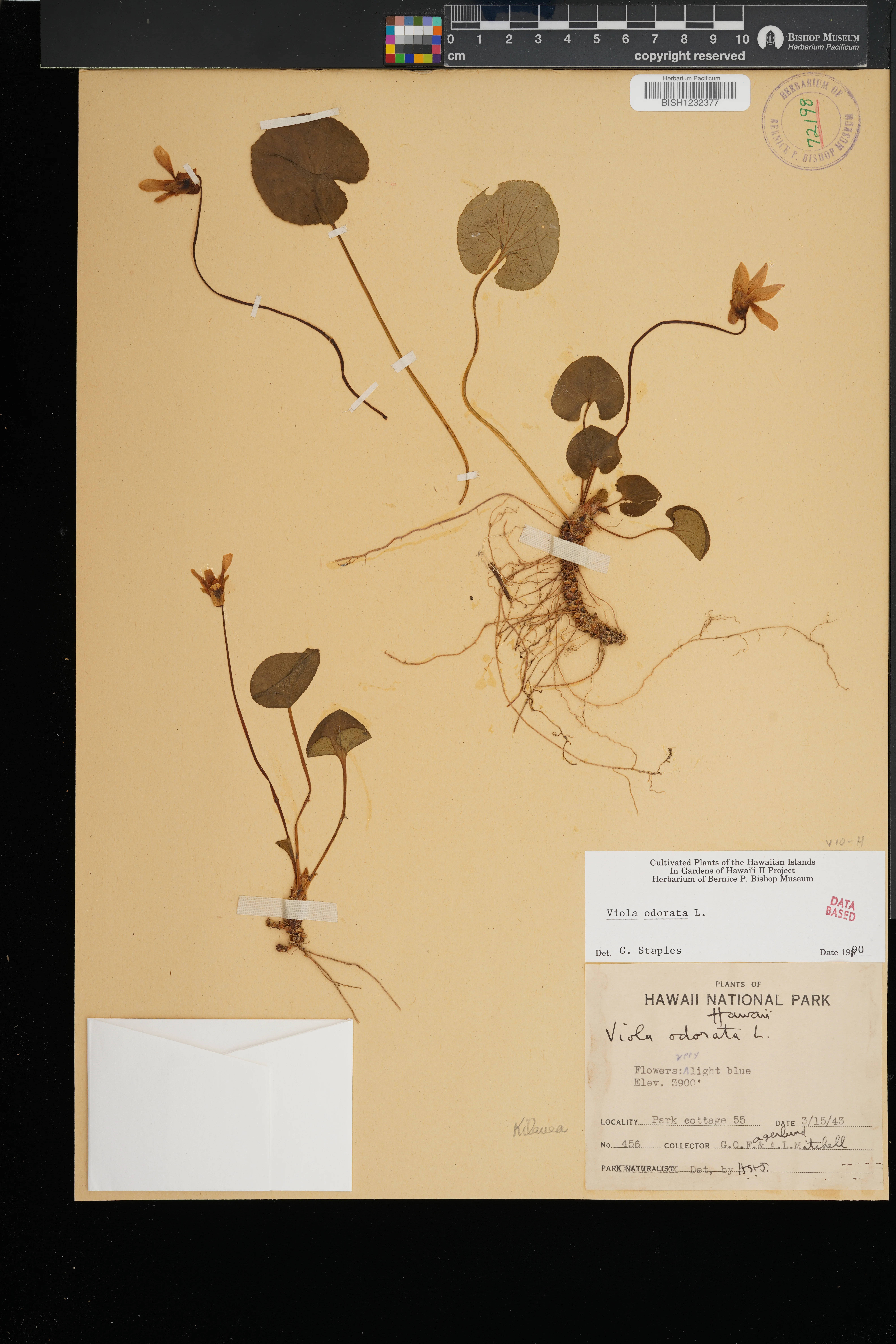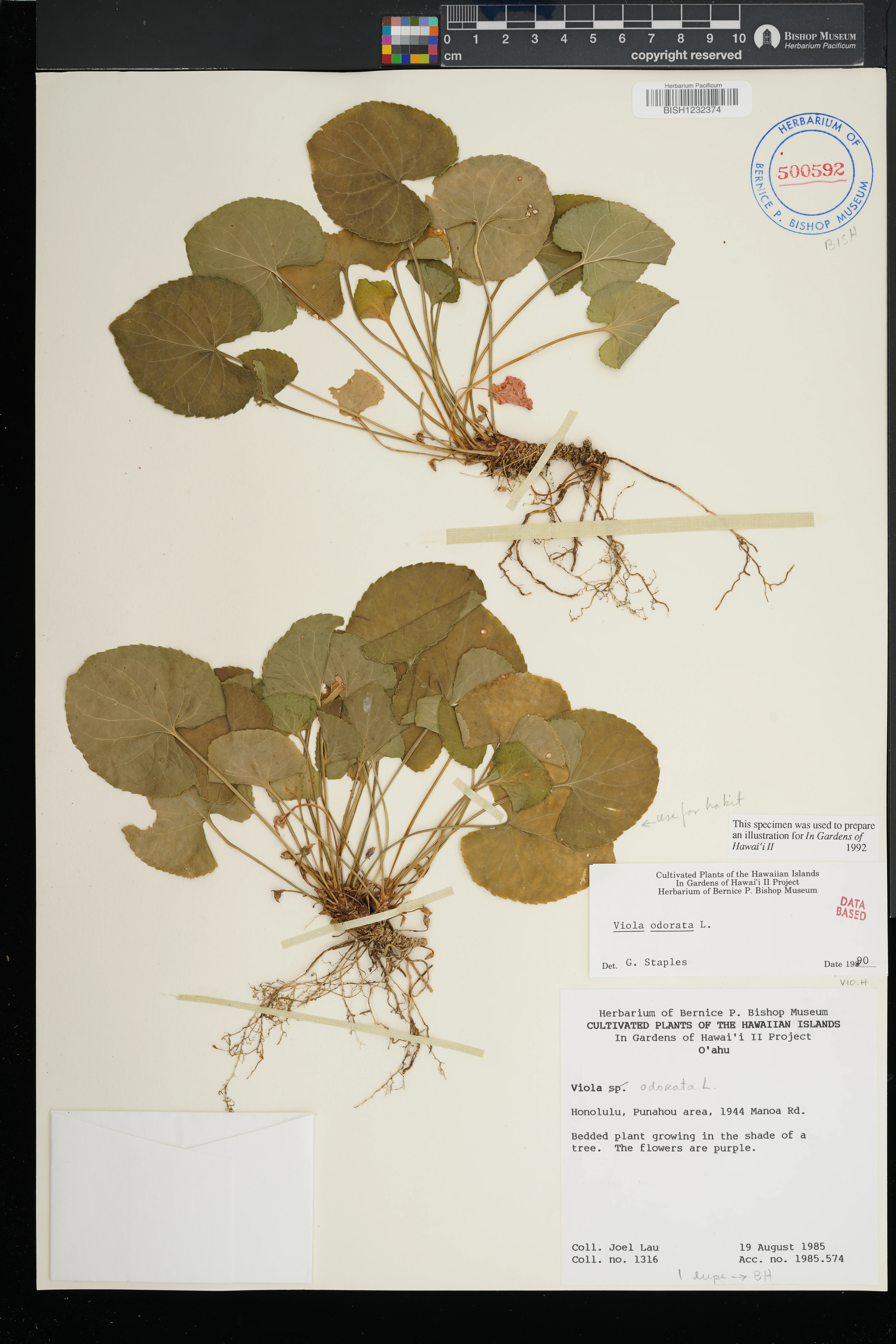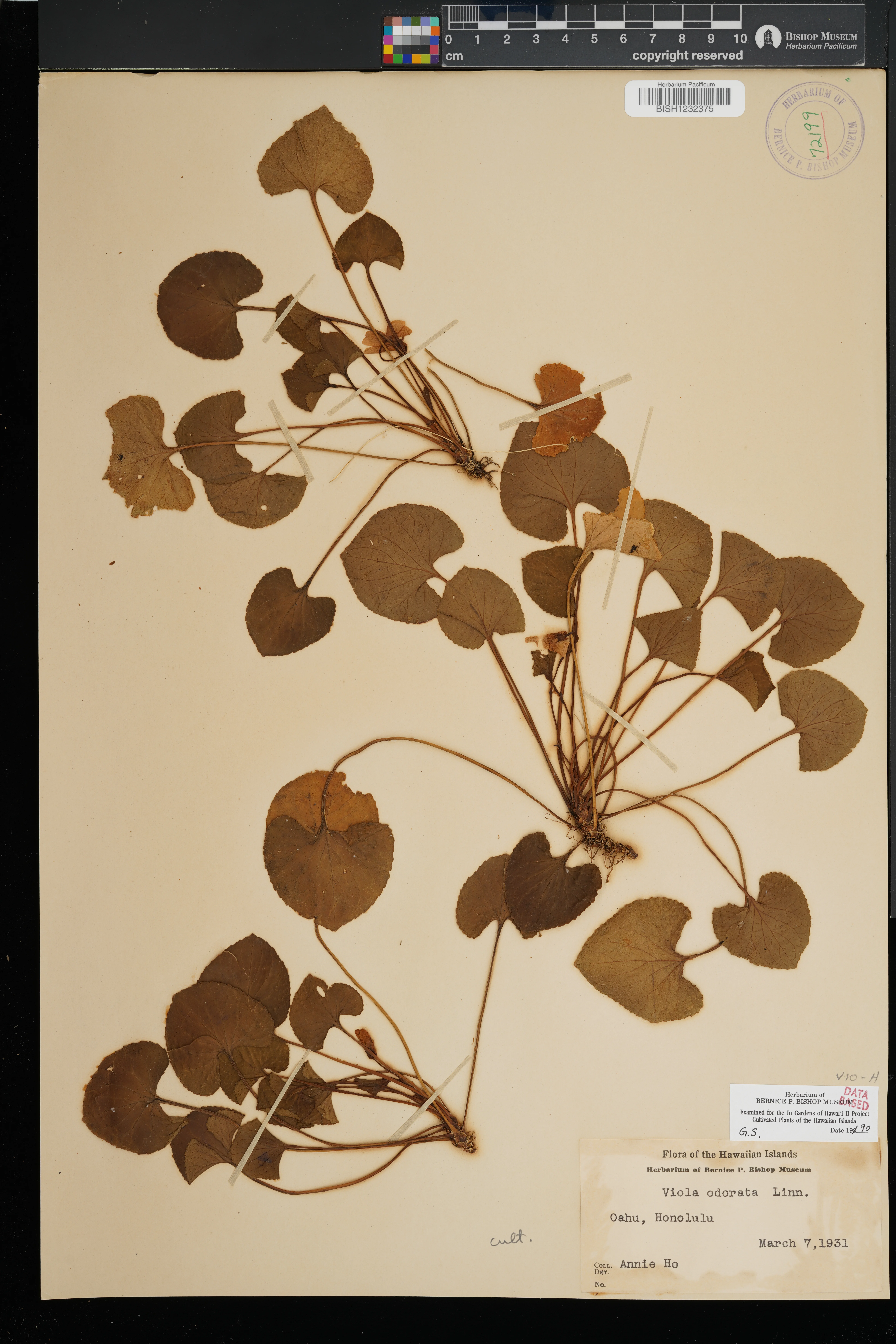 | 4 | Viola odorata | L. | Honolulu | PRESERVED_SPECIMEN | Ho, A. | Collector Number: s.n. | Oahu | BISH | 3/7/1931 | |