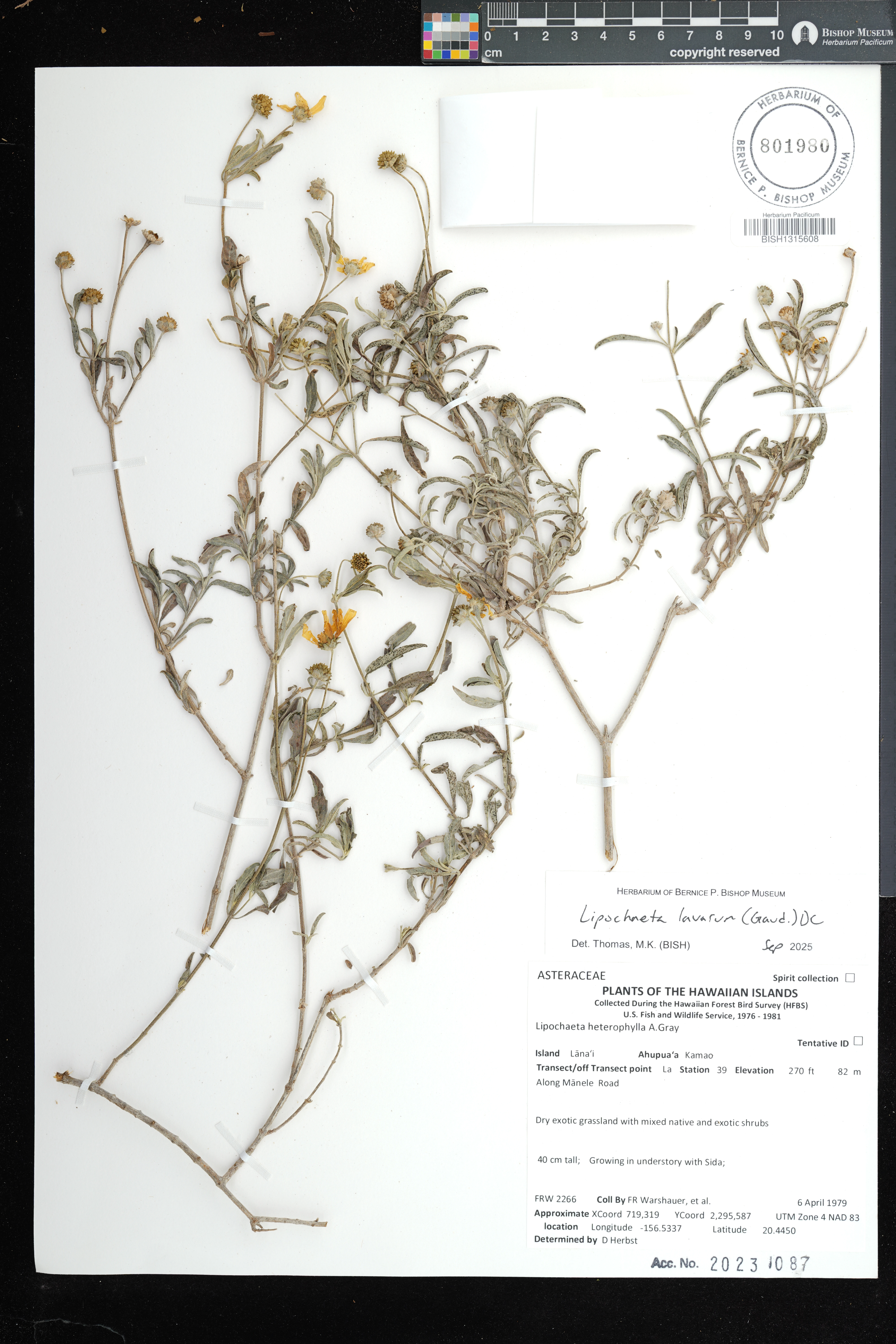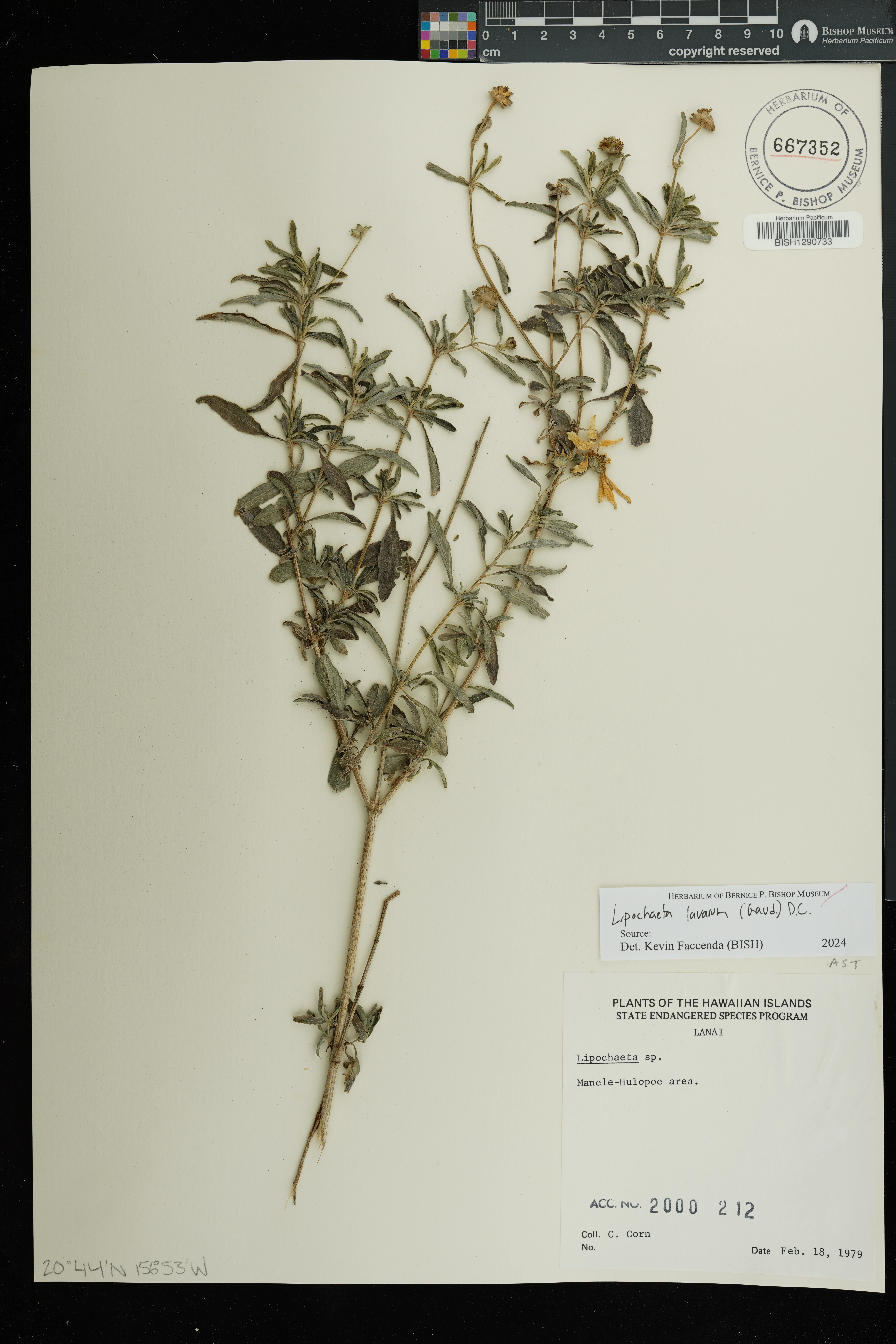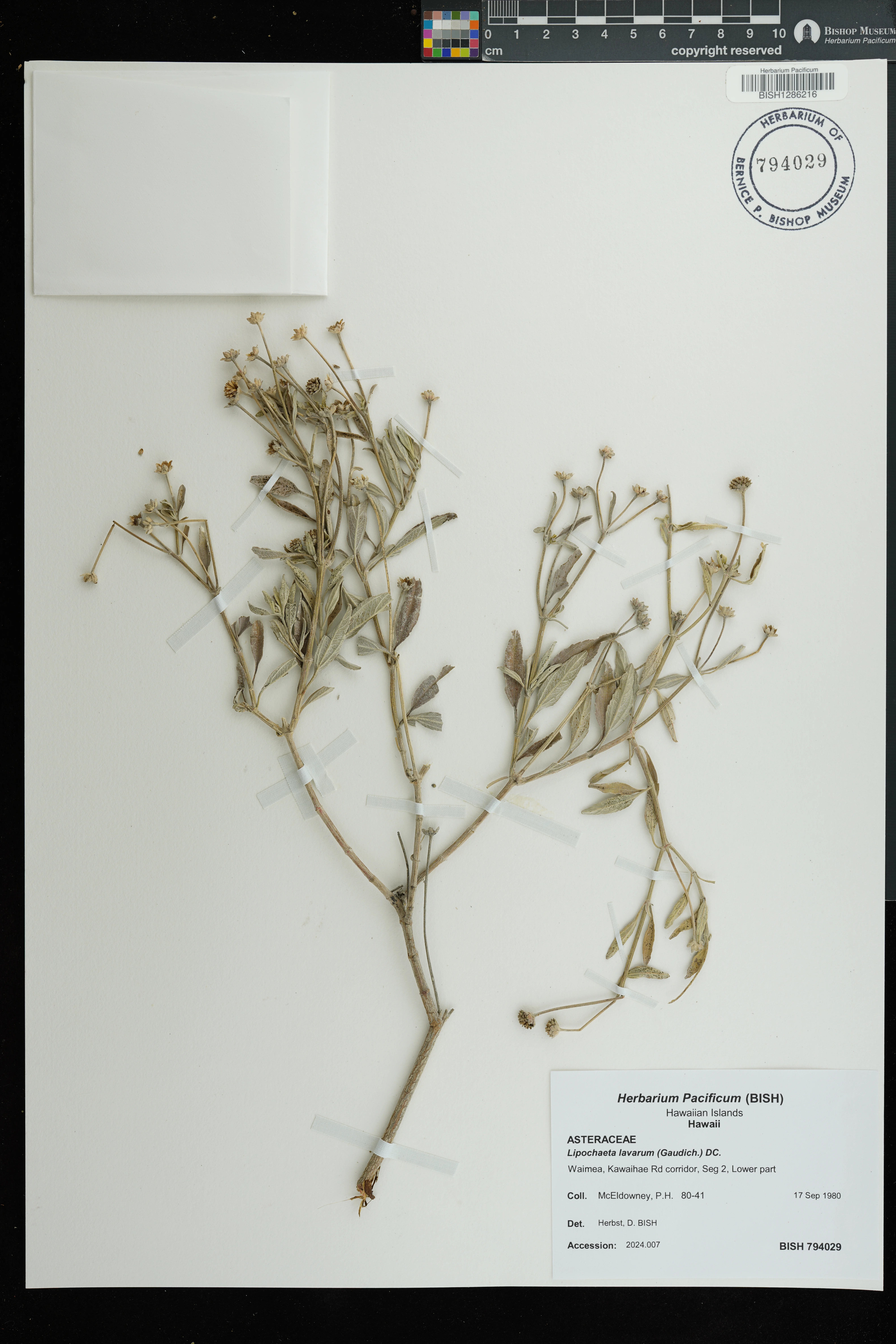 Kingdom: Viridiplantae Phylum: Magnoliophyta Class/Clade: Eudicot-Asterids Order: Asterales Family: Asteraceae Genus: Lipochaeta