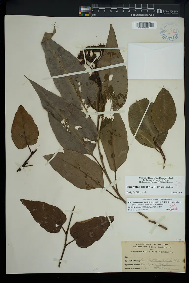 | 4 | Corymbia calophylla | (Lindl.) K.D.Hill & L.A.S.Johnson | tantalus | PRESERVED_SPECIMEN | collector number: 6036 | Oahu | BISH | 11/1/1909 | ||