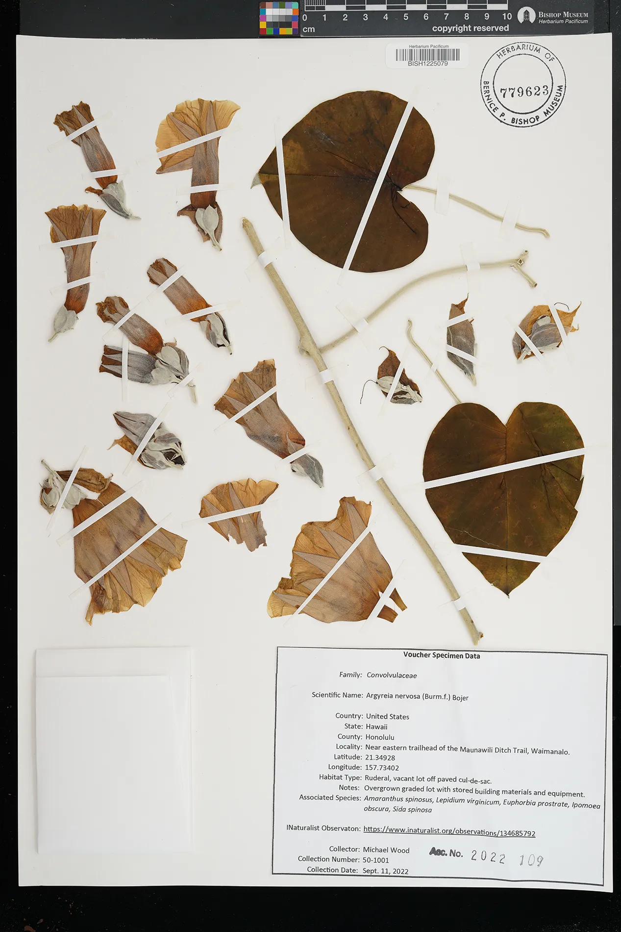 Vine climbing over Psidium along road at the edge of the canefield. |