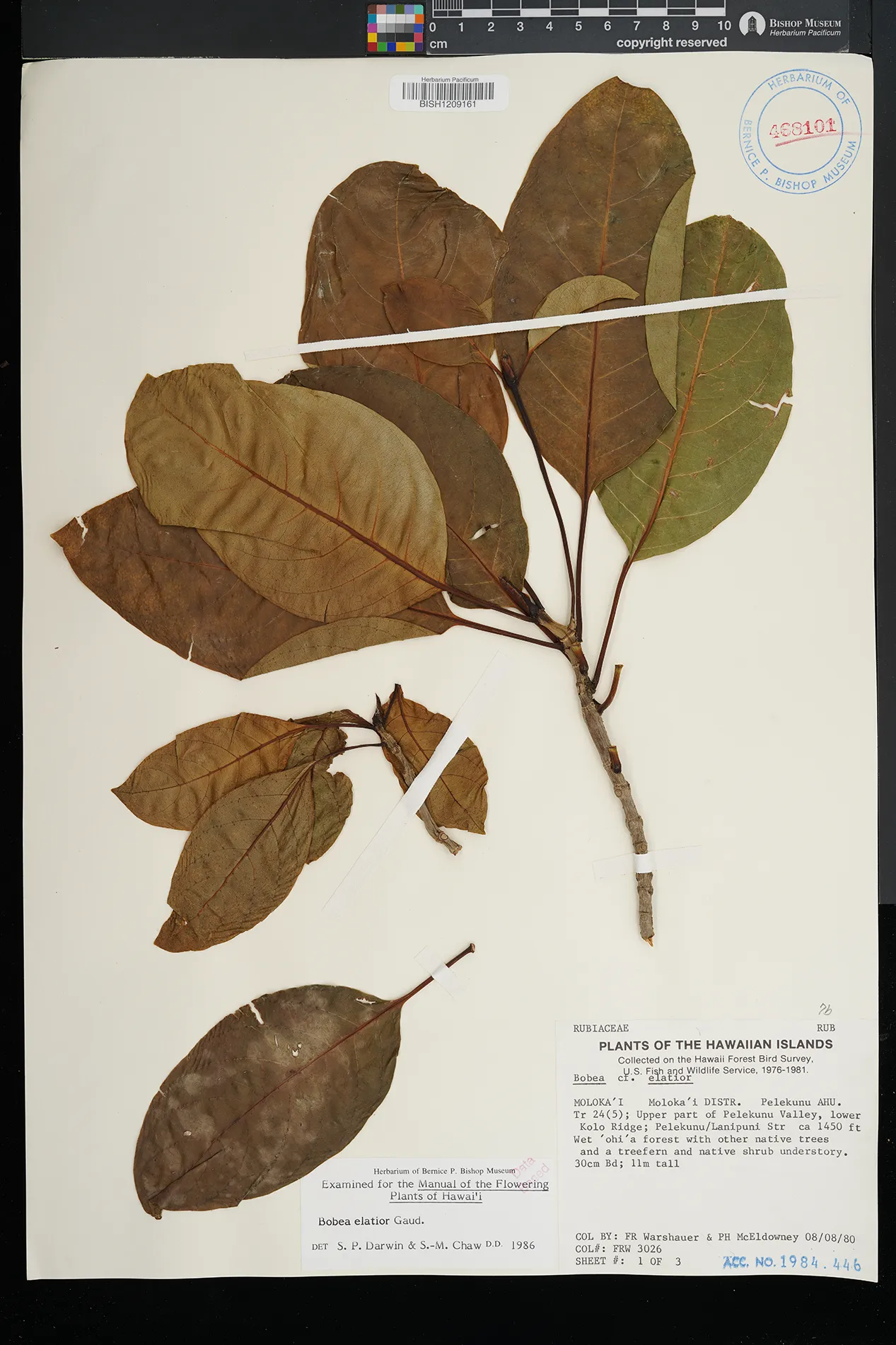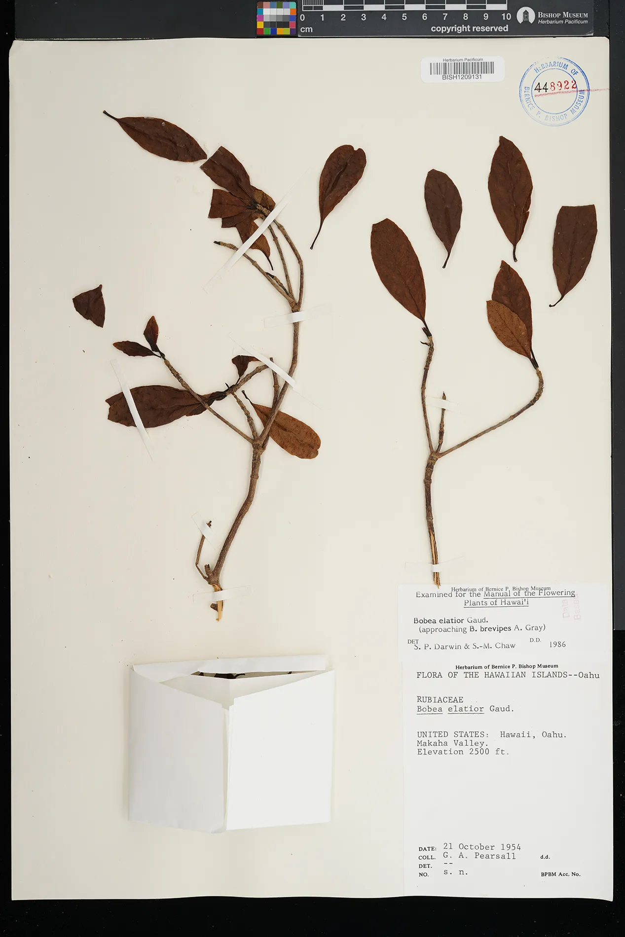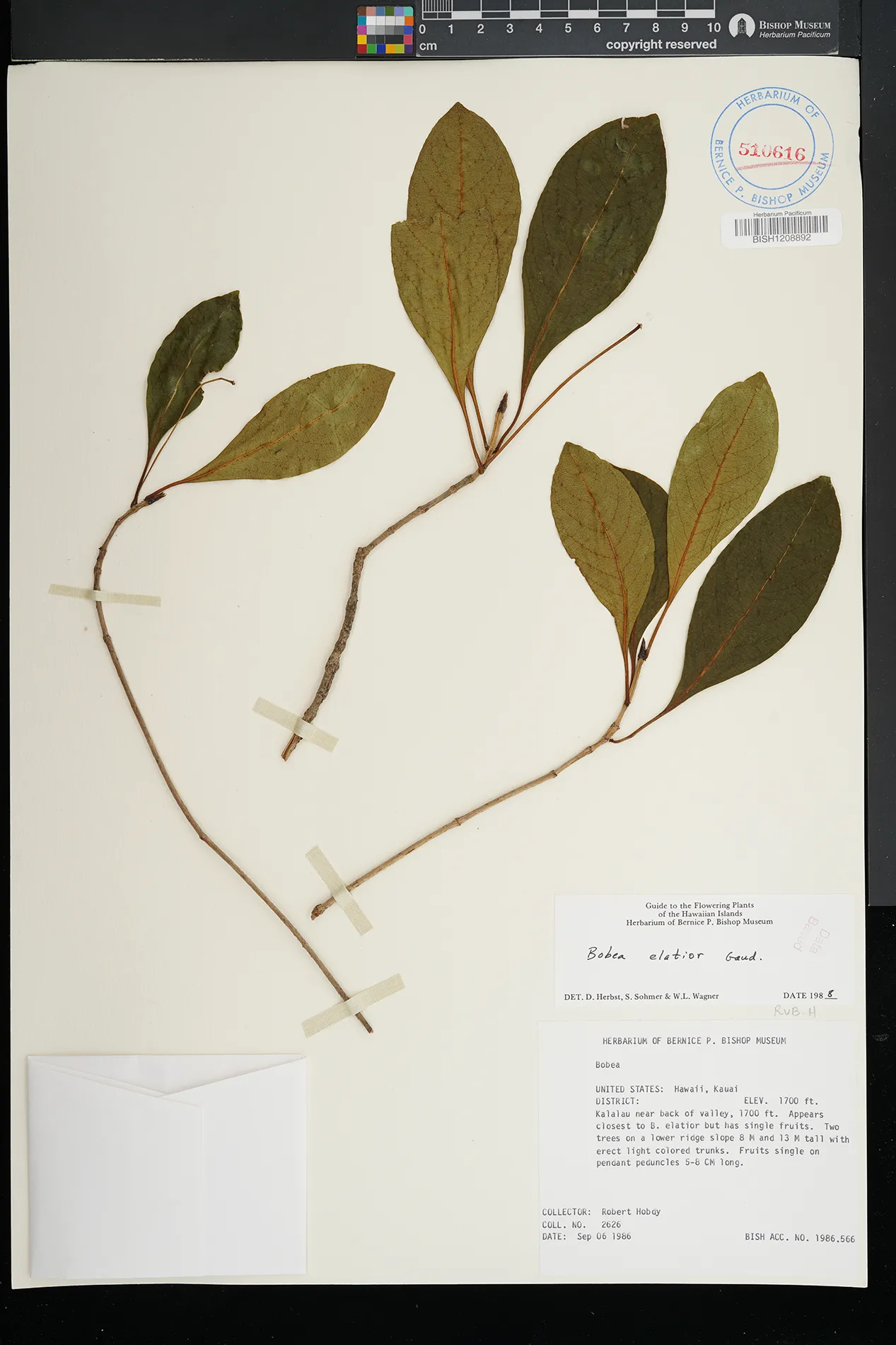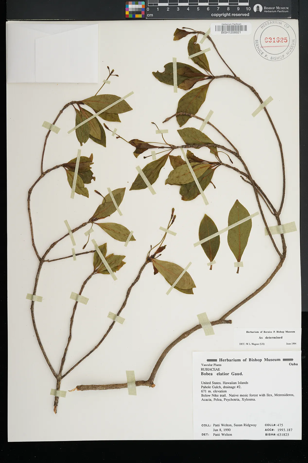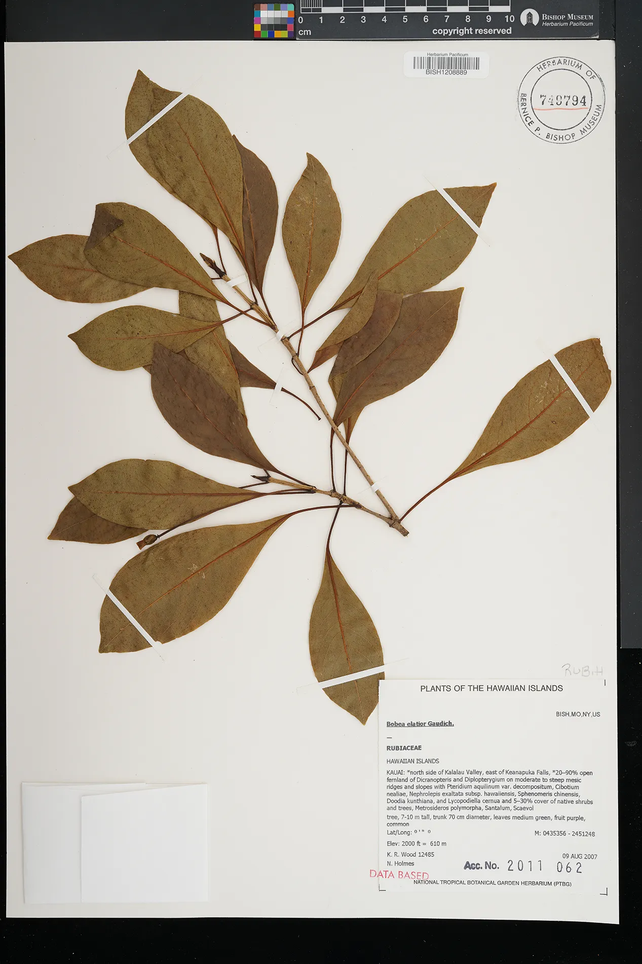 Leaves: Leaves simple. Opposite. Blades elliptic to obovate, (1.5–)3–15 cm long, (1–)4–5.5(–8) cm wide. Apex acute to obtuse. Base acute to long–attenuate. Surfaces usually glabrous, domatia somewhat elevated, porate, subglabrous, often scattered over blade, or sometimes absent chartaceous to subcoriaceous. Margins entire. Secondary veins 7–10 on each side of midrib, often reddish pellucid. Petioles (5–)10–25(–50) mm long, sometimes winged distally, glabrous. Stipules ovate to lanceolate, strongly imbricate in bud, 7–22 mm long, 4–9 mm wide, acute to acuminate, upper surface villous toward base, lower surface glabrous or slightly pubescent toward apex.