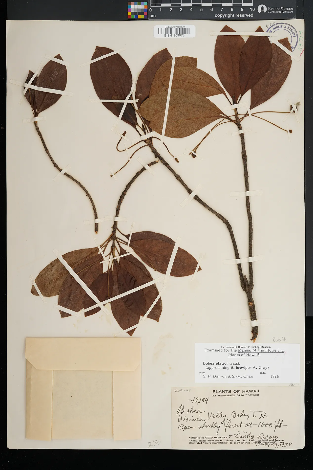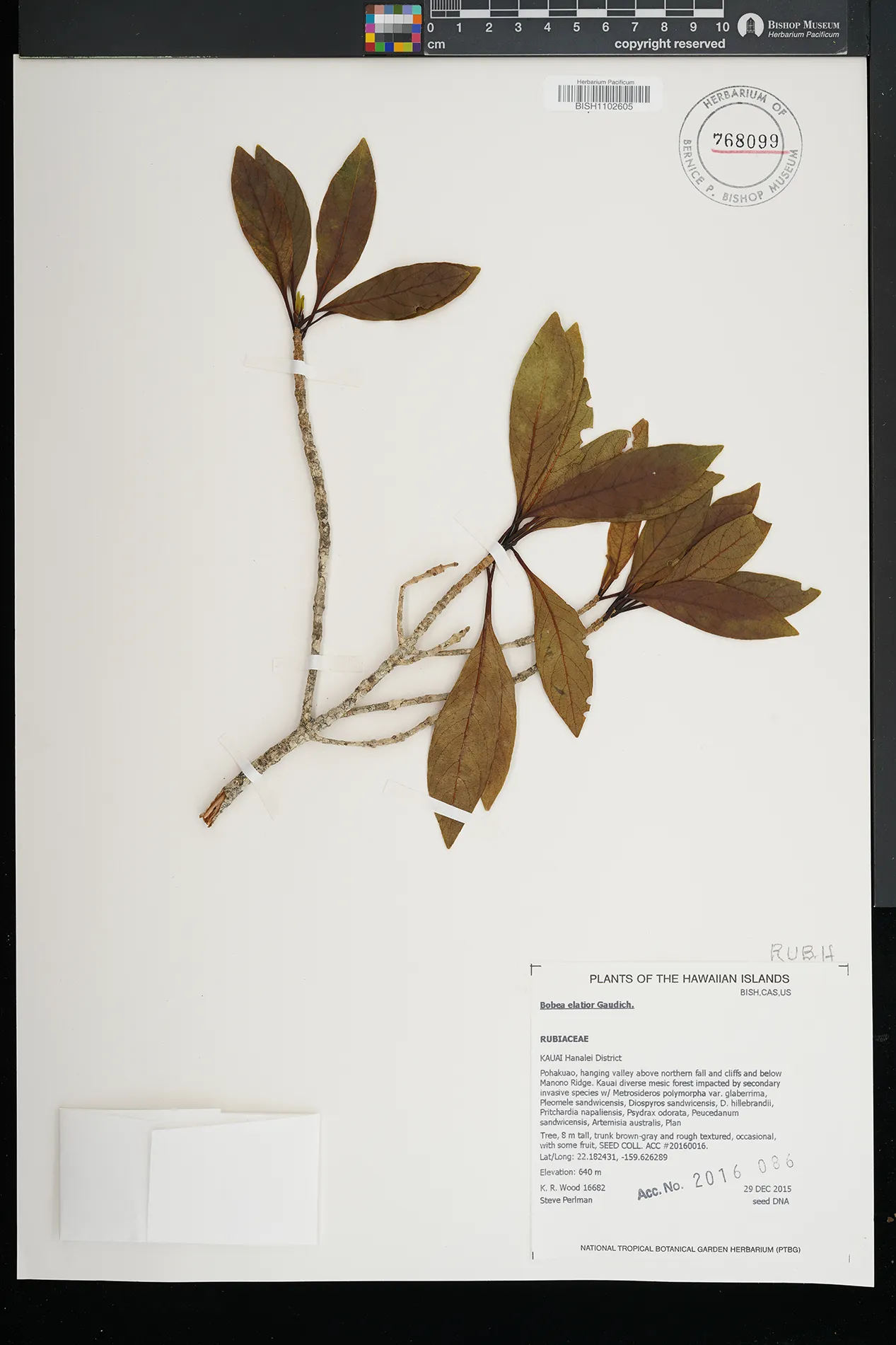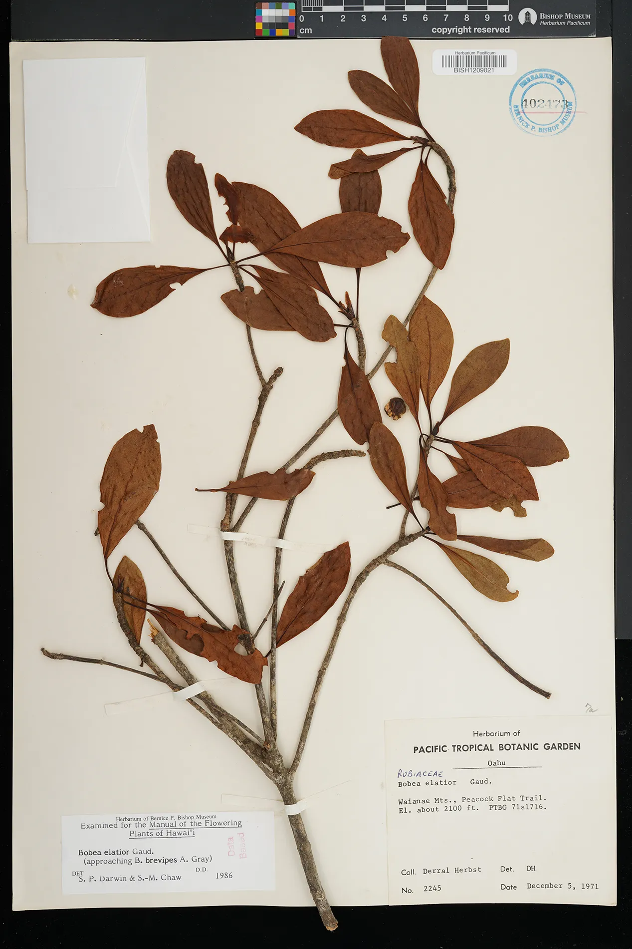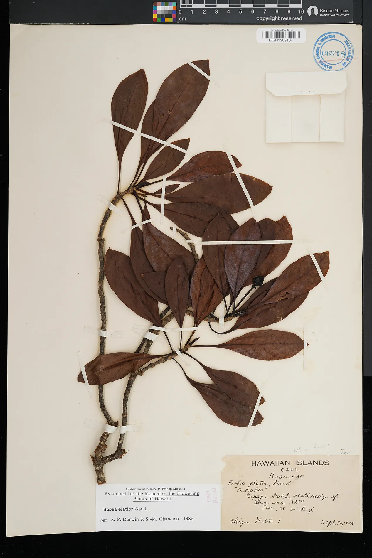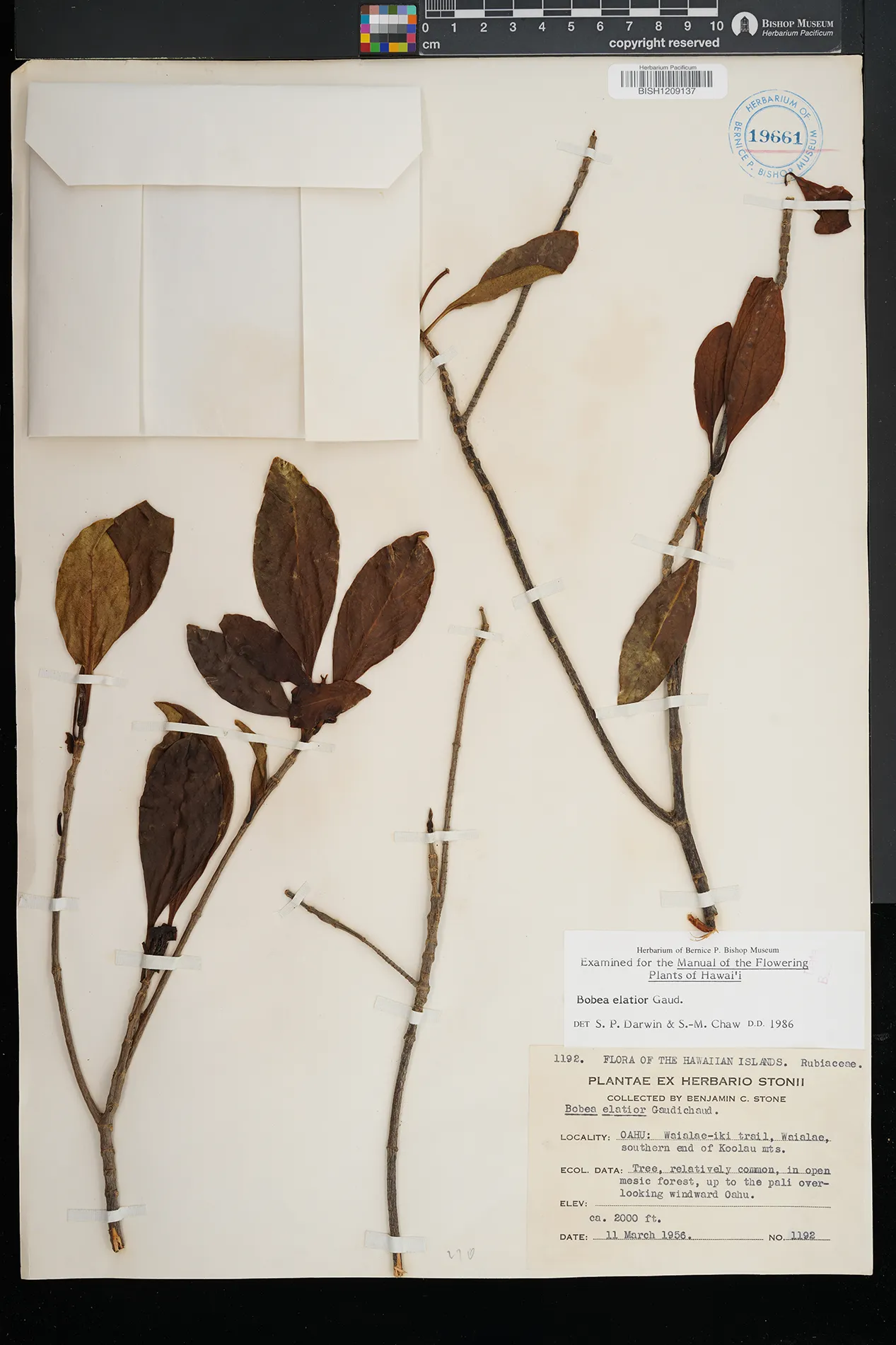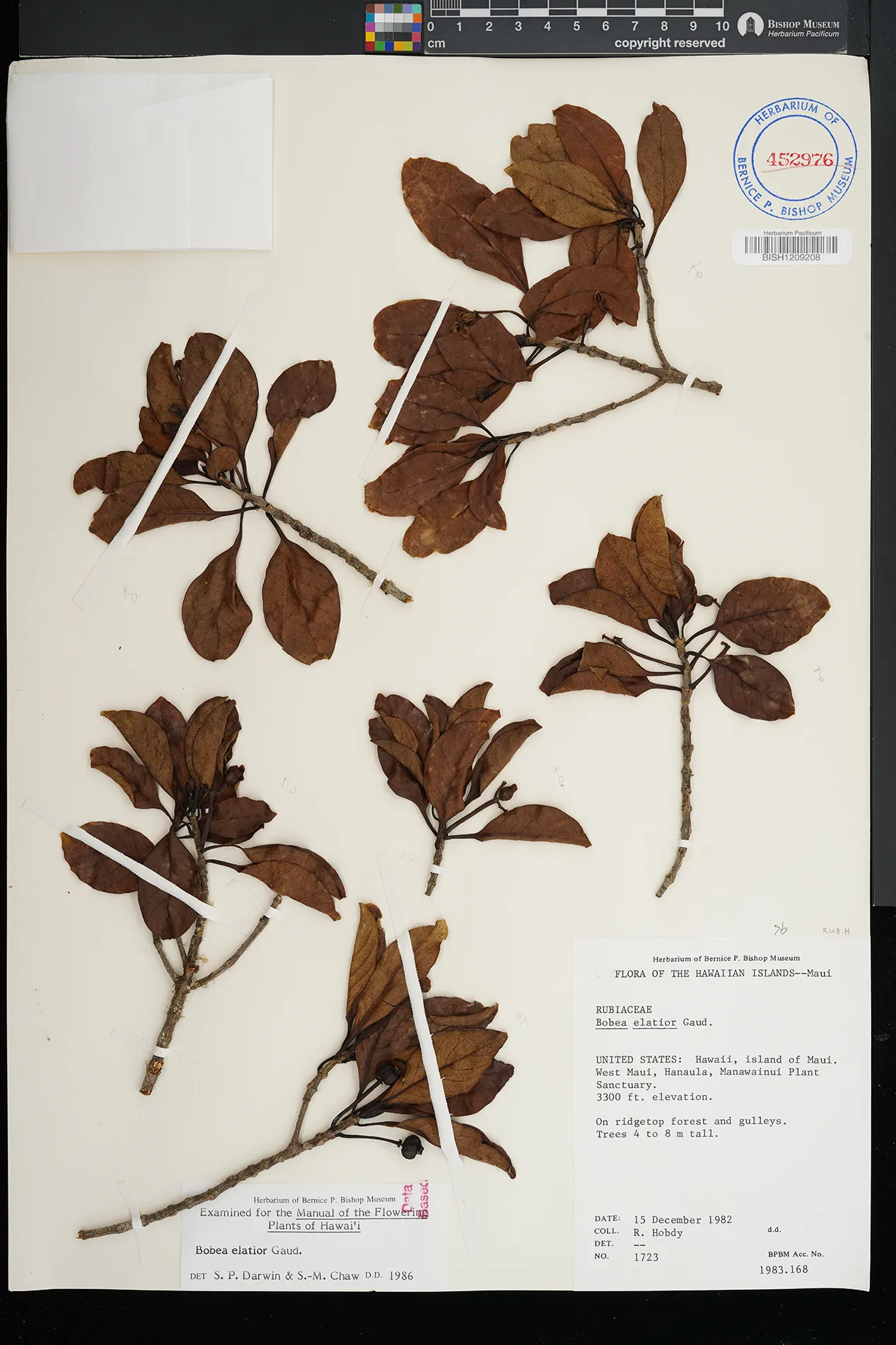 Leaves: Leaves simple. Opposite. Blades elliptic to obovate, (1.5–)3–15 cm long, (1–)4–5.5(–8) cm wide. Apex acute to obtuse. Base acute to long–attenuate. Surfaces usually glabrous, domatia somewhat elevated, porate, subglabrous, often scattered over blade, or sometimes absent chartaceous to subcoriaceous. Margins entire. Secondary veins 7–10 on each side of midrib, often reddish pellucid. Petioles (5–)10–25(–50) mm long, sometimes winged distally, glabrous. Stipules ovate to lanceolate, strongly imbricate in bud, 7–22 mm long, 4–9 mm wide, acute to acuminate, upper surface villous toward base, lower surface glabrous or slightly pubescent toward apex.