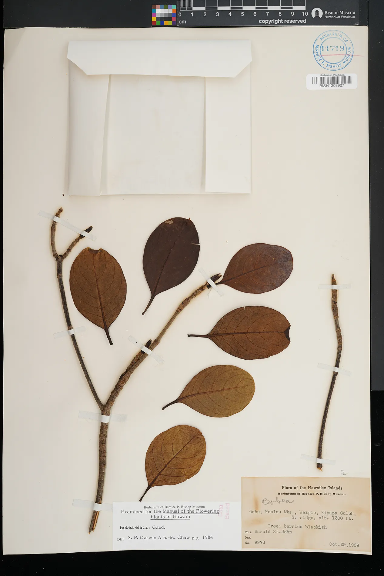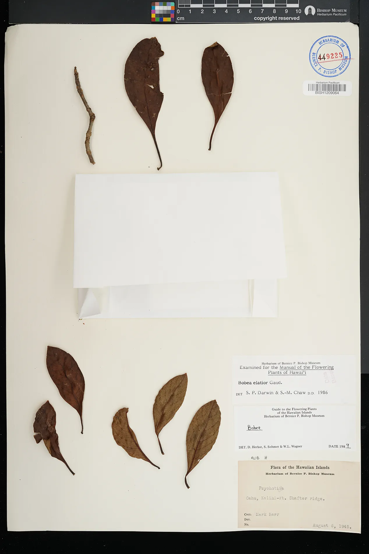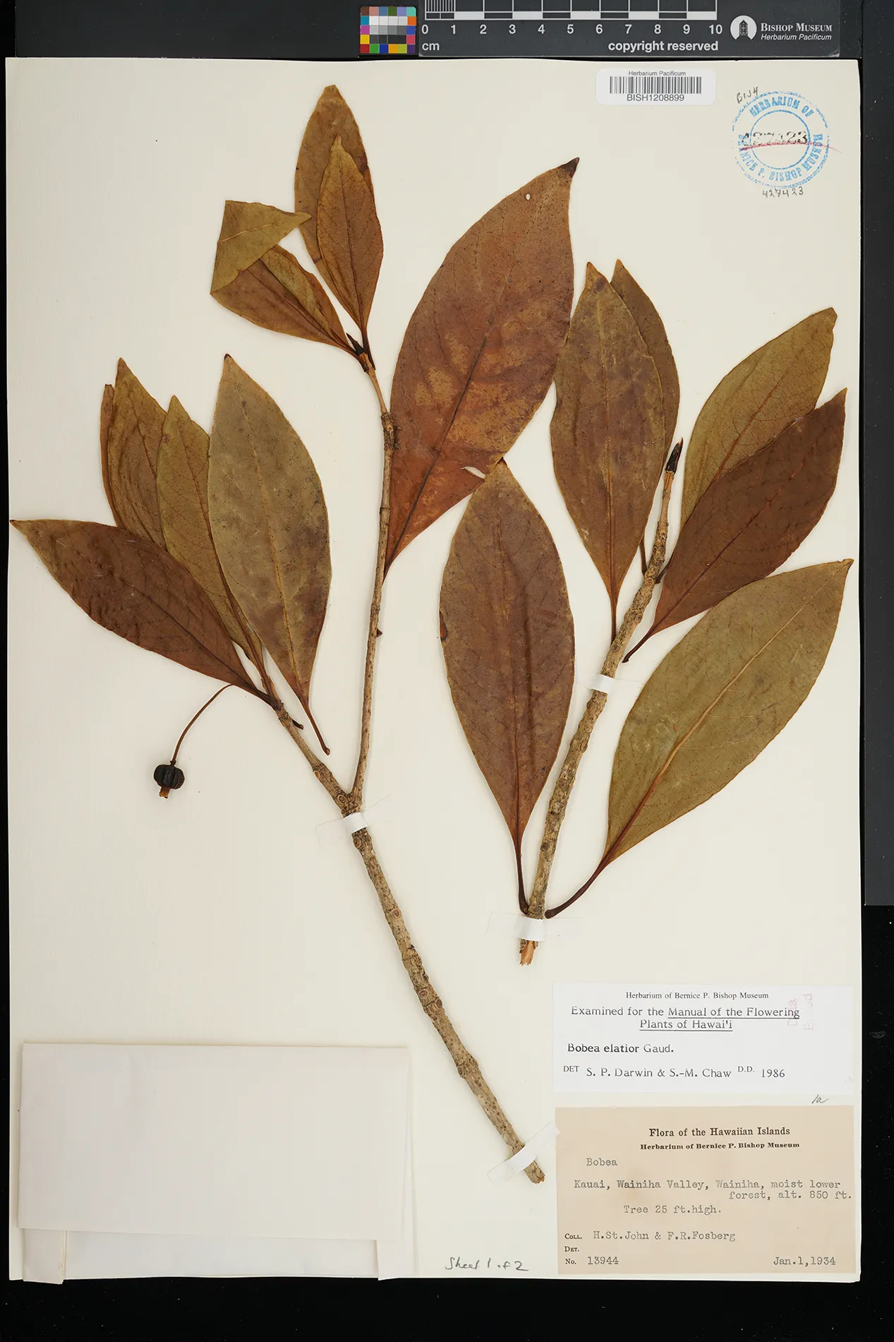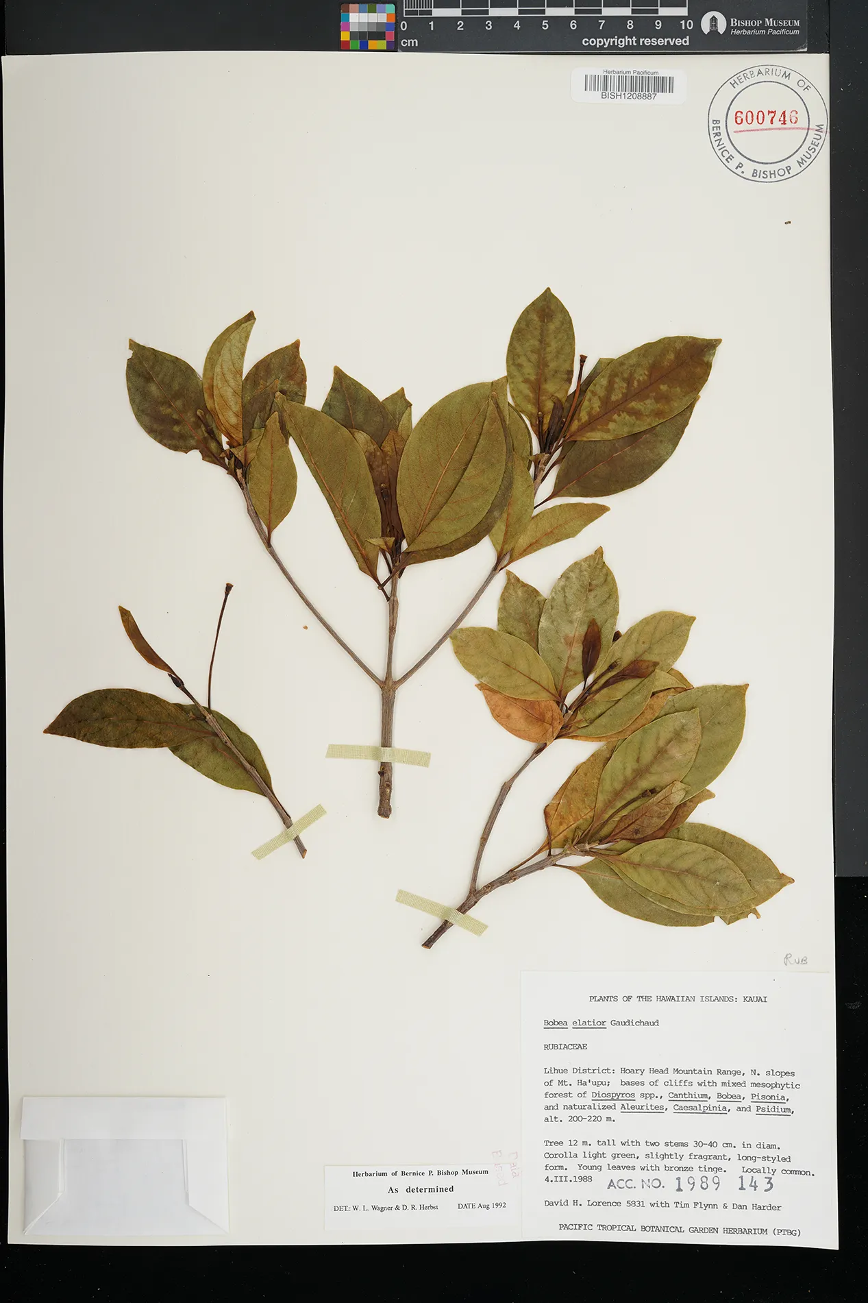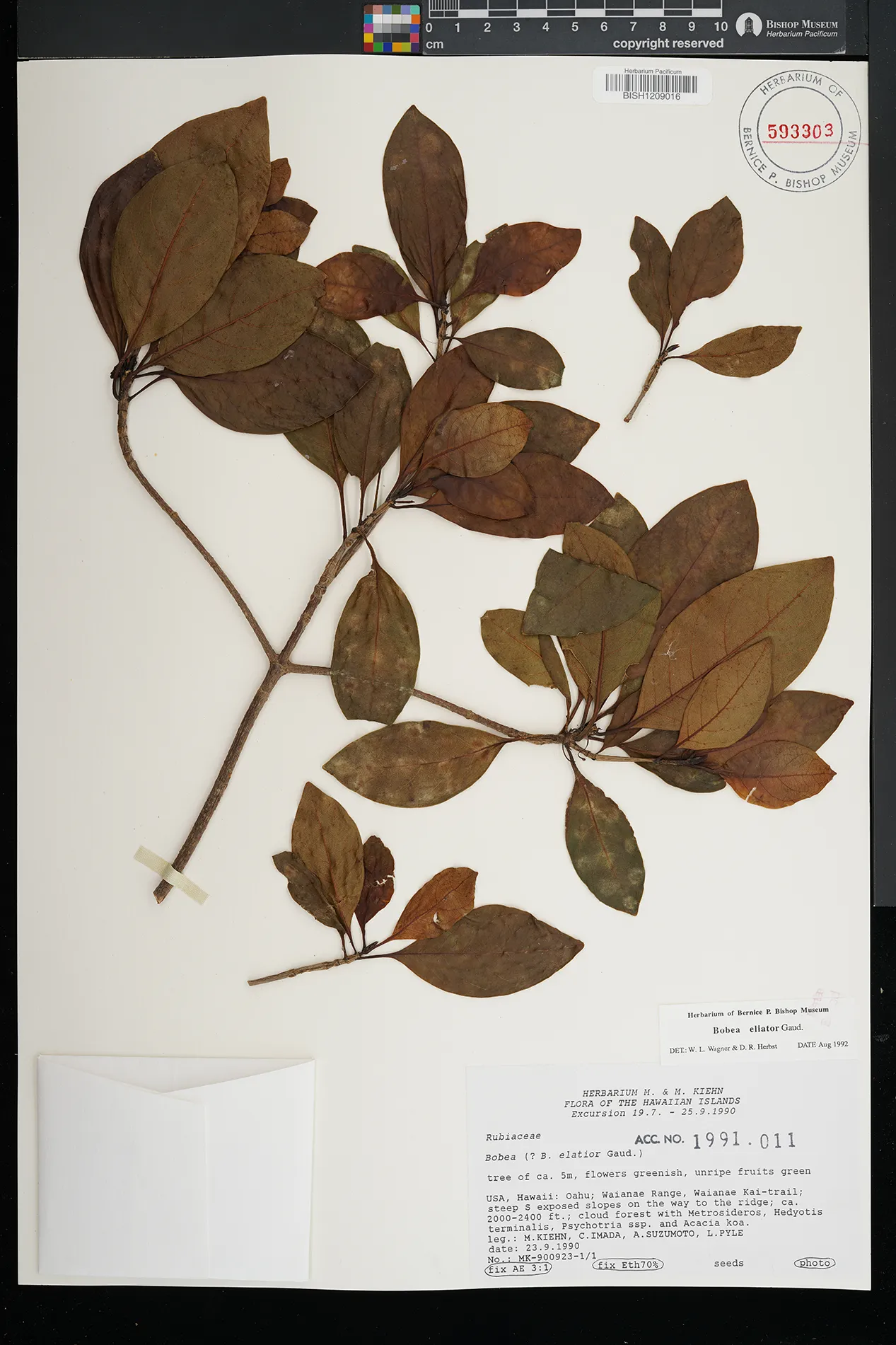 Leaves: Leaves simple. Opposite. Blades elliptic to obovate, (1.5–)3–15 cm long, (1–)4–5.5(–8) cm wide. Apex acute to obtuse. Base acute to long–attenuate. Surfaces usually glabrous, domatia somewhat elevated, porate, subglabrous, often scattered over blade, or sometimes absent chartaceous to subcoriaceous. Margins entire. Secondary veins 7–10 on each side of midrib, often reddish pellucid. Petioles (5–)10–25(–50) mm long, sometimes winged distally, glabrous. Stipules ovate to lanceolate, strongly imbricate in bud, 7–22 mm long, 4–9 mm wide, acute to acuminate, upper surface villous toward base, lower surface glabrous or slightly pubescent toward apex.