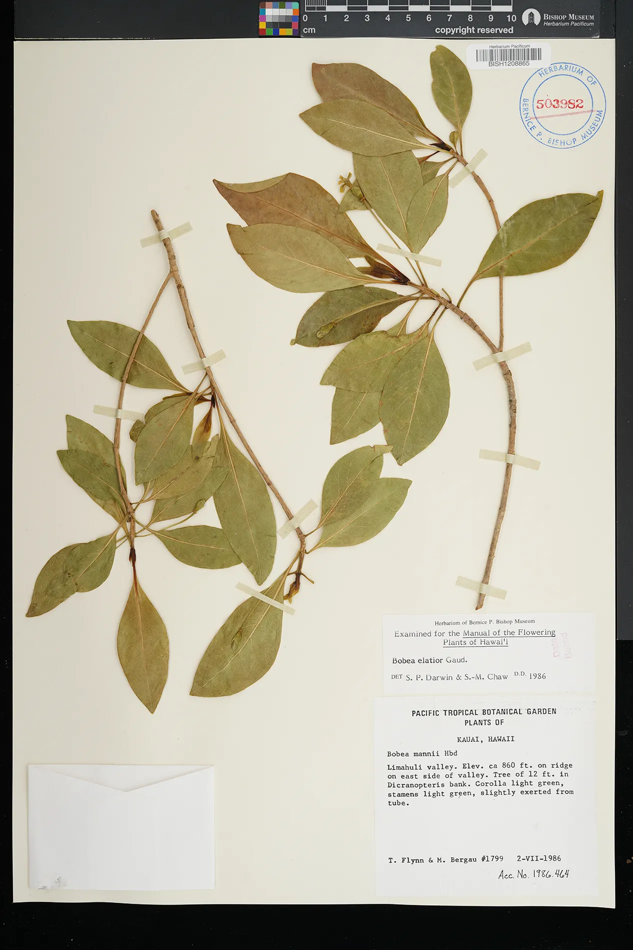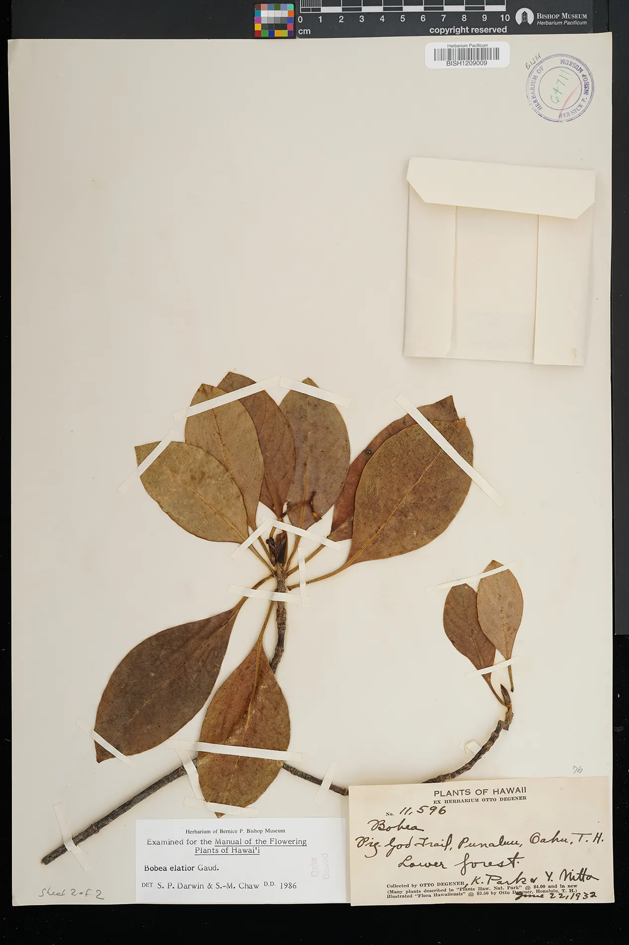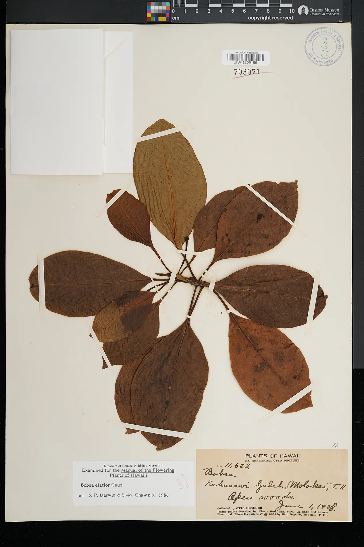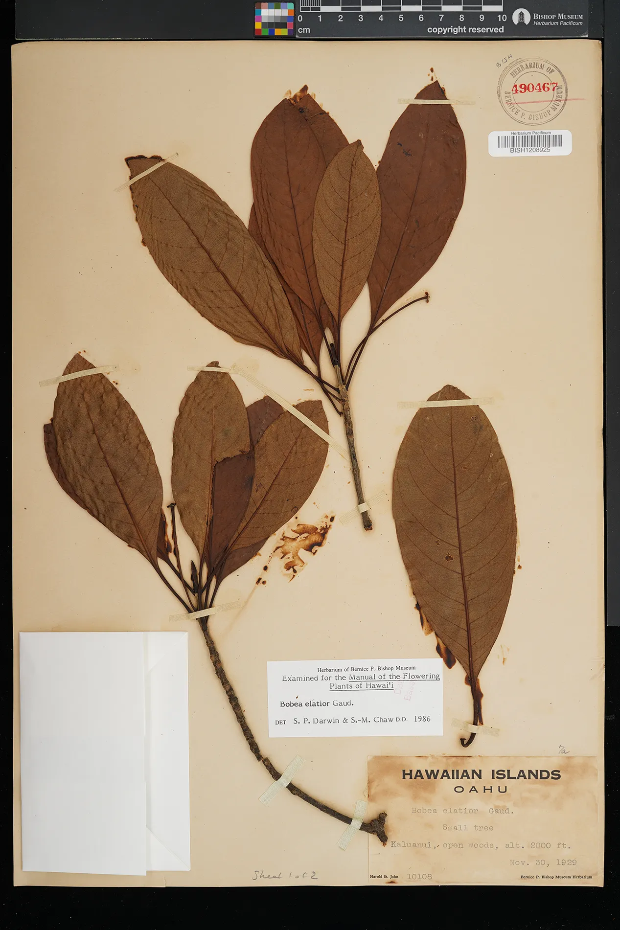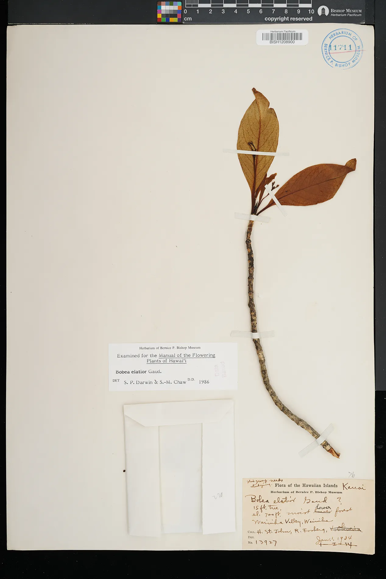 Leaves: Leaves simple. Opposite. Blades elliptic to obovate, (1.5–)3–15 cm long, (1–)4–5.5(–8) cm wide. Apex acute to obtuse. Base acute to long–attenuate. Surfaces usually glabrous, domatia somewhat elevated, porate, subglabrous, often scattered over blade, or sometimes absent chartaceous to subcoriaceous. Margins entire. Secondary veins 7–10 on each side of midrib, often reddish pellucid. Petioles (5–)10–25(–50) mm long, sometimes winged distally, glabrous. Stipules ovate to lanceolate, strongly imbricate in bud, 7–22 mm long, 4–9 mm wide, acute to acuminate, upper surface villous toward base, lower surface glabrous or slightly pubescent toward apex.