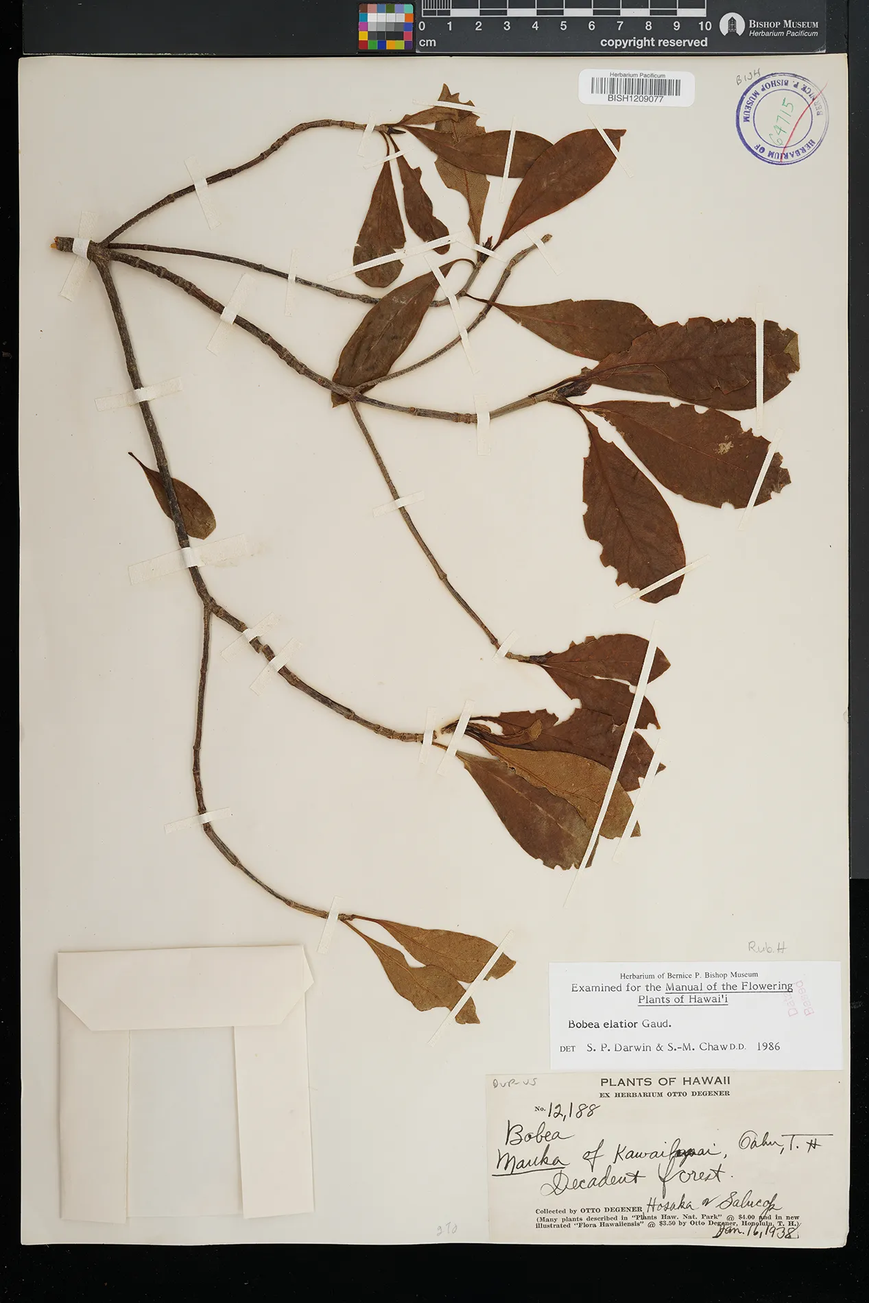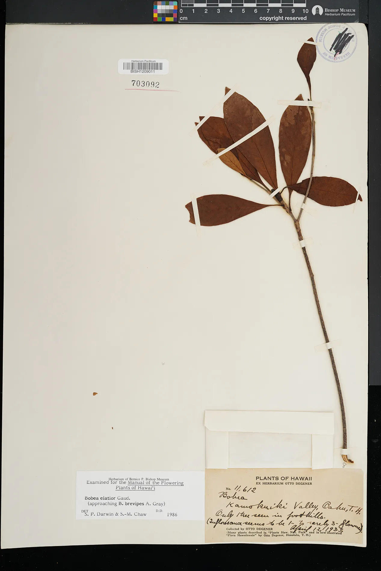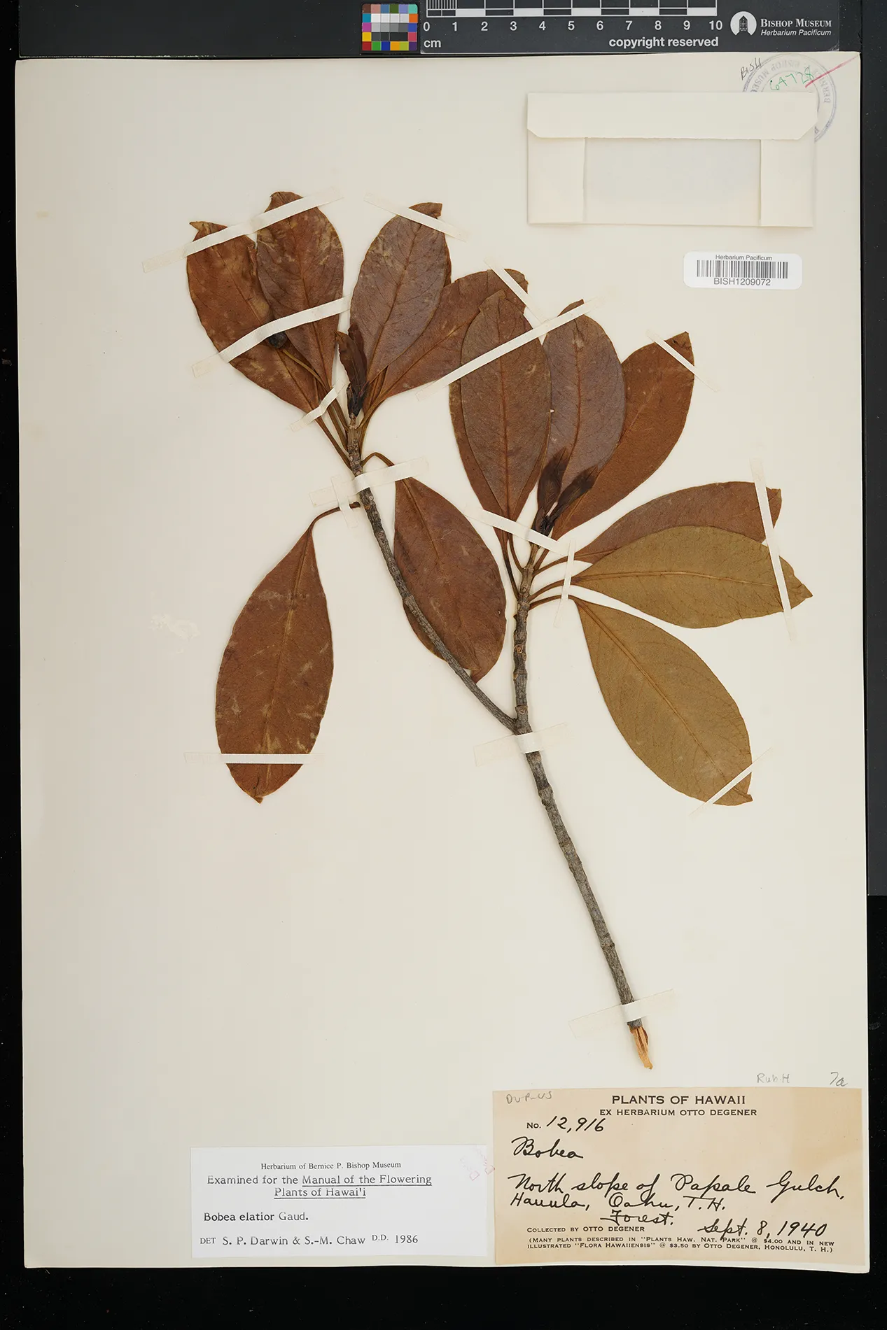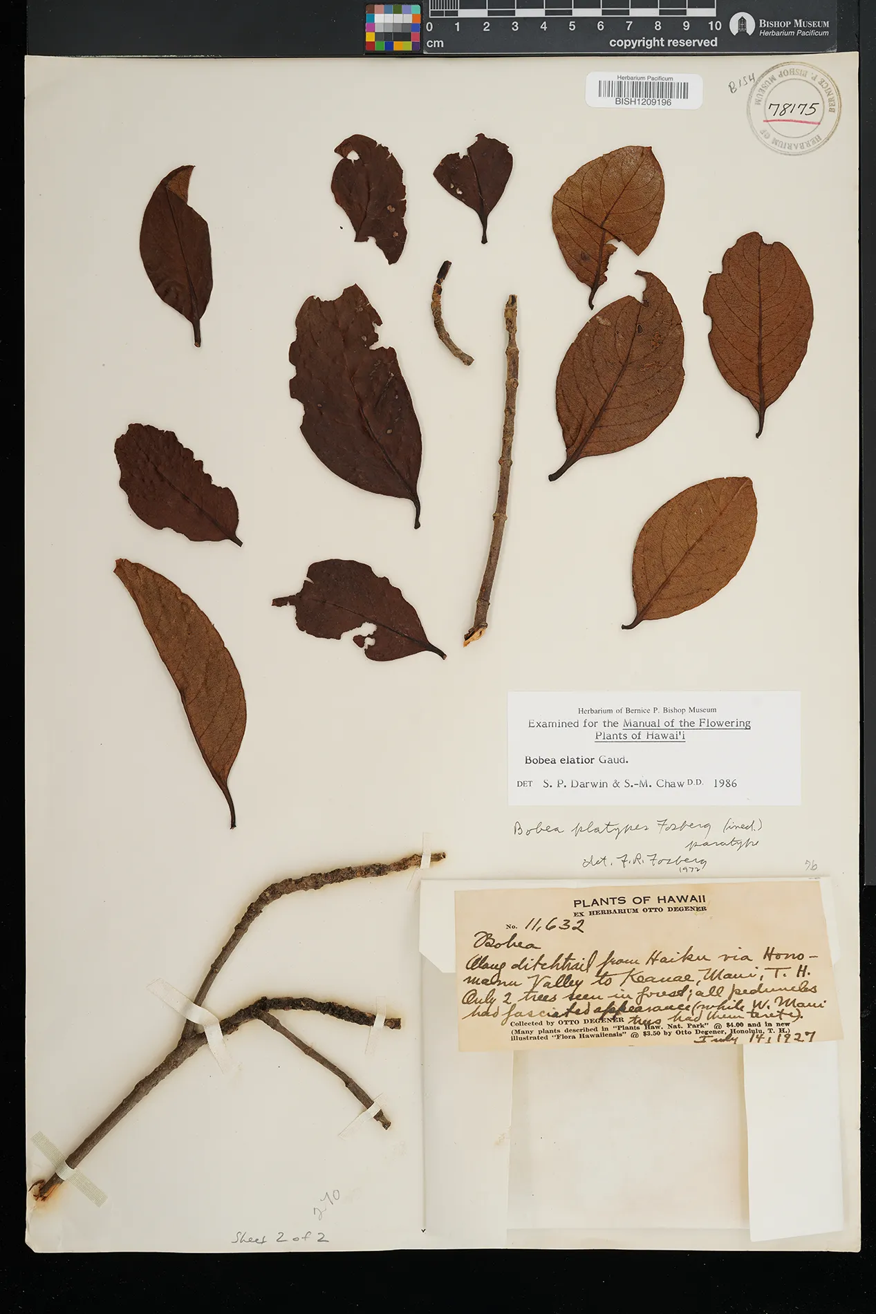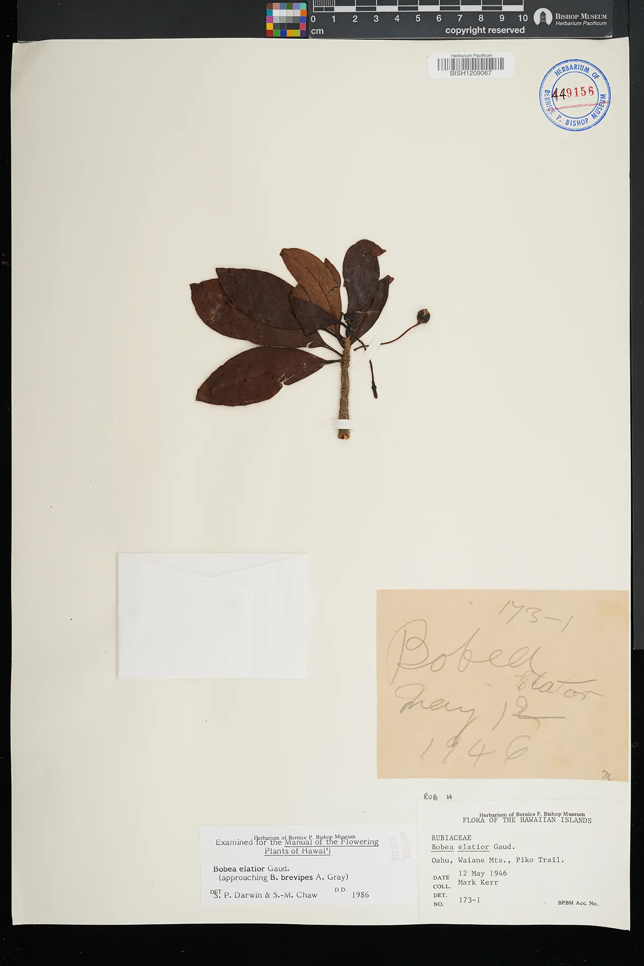 Leaves: Leaves simple. Opposite. Blades elliptic to obovate, (1.5–)3–15 cm long, (1–)4–5.5(–8) cm wide. Apex acute to obtuse. Base acute to long–attenuate. Surfaces usually glabrous, domatia somewhat elevated, porate, subglabrous, often scattered over blade, or sometimes absent chartaceous to subcoriaceous. Margins entire. Secondary veins 7–10 on each side of midrib, often reddish pellucid. Petioles (5–)10–25(–50) mm long, sometimes winged distally, glabrous. Stipules ovate to lanceolate, strongly imbricate in bud, 7–22 mm long, 4–9 mm wide, acute to acuminate, upper surface villous toward base, lower surface glabrous or slightly pubescent toward apex.