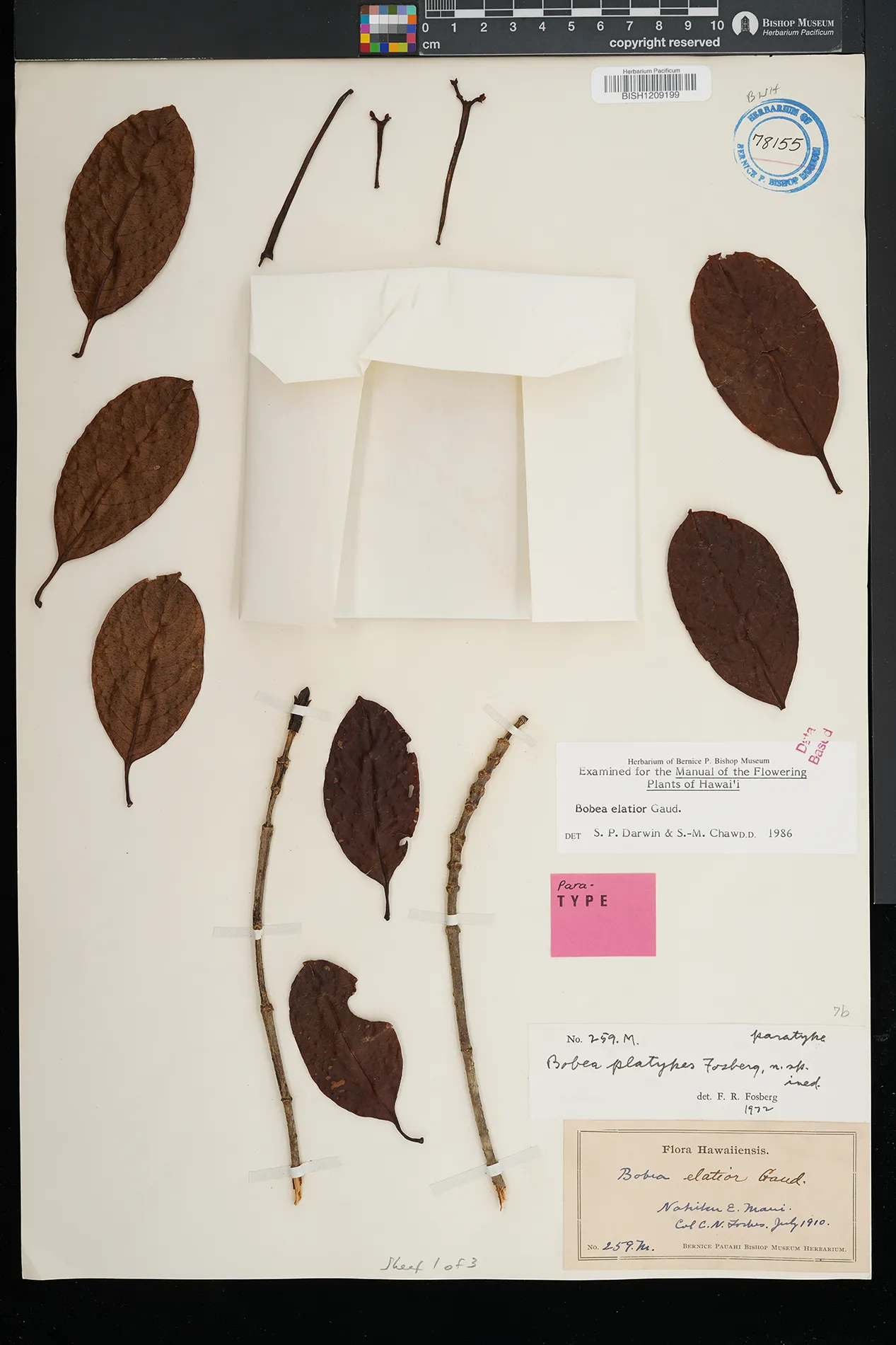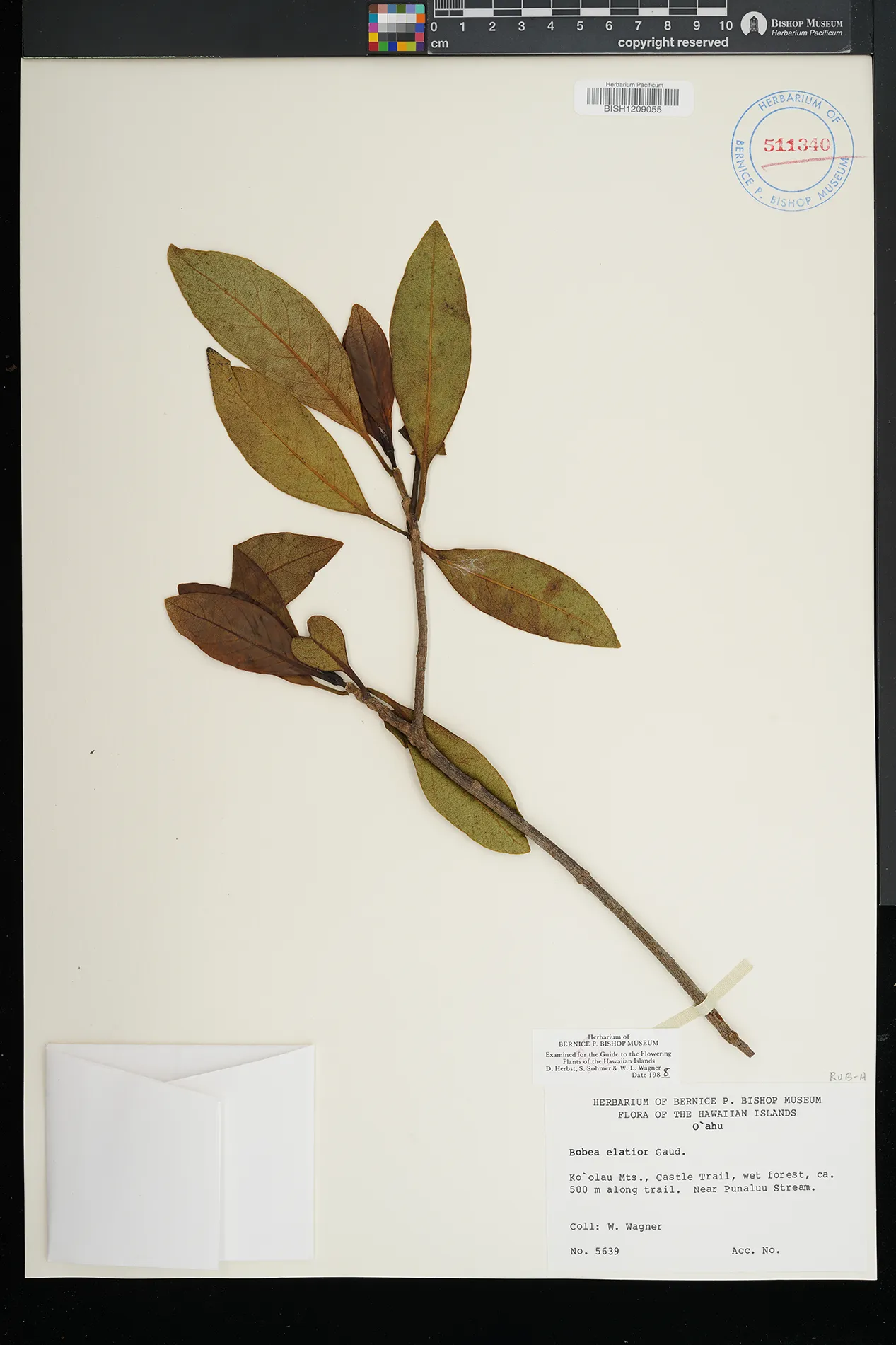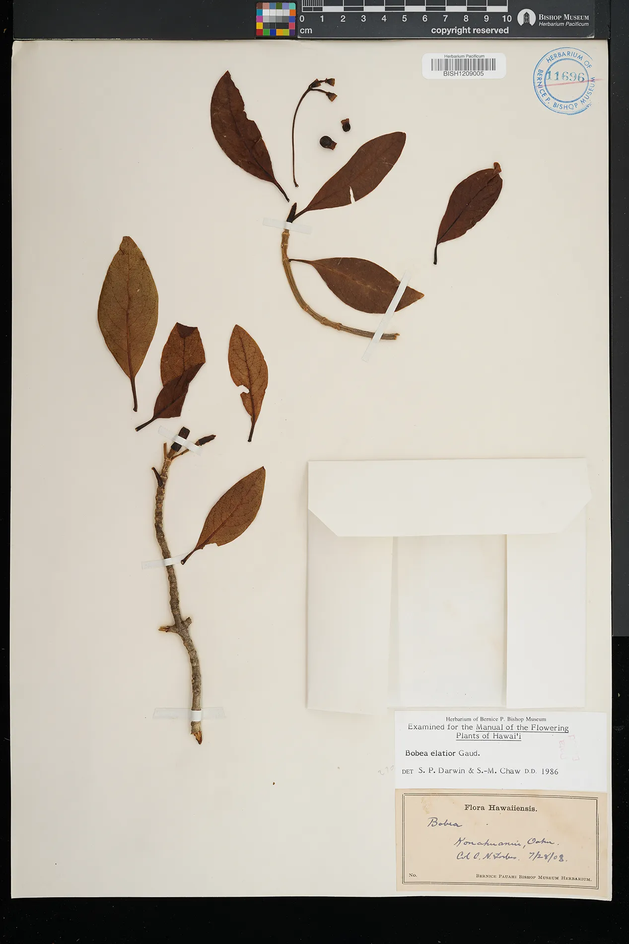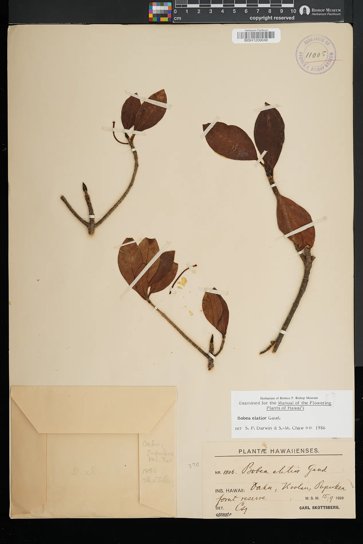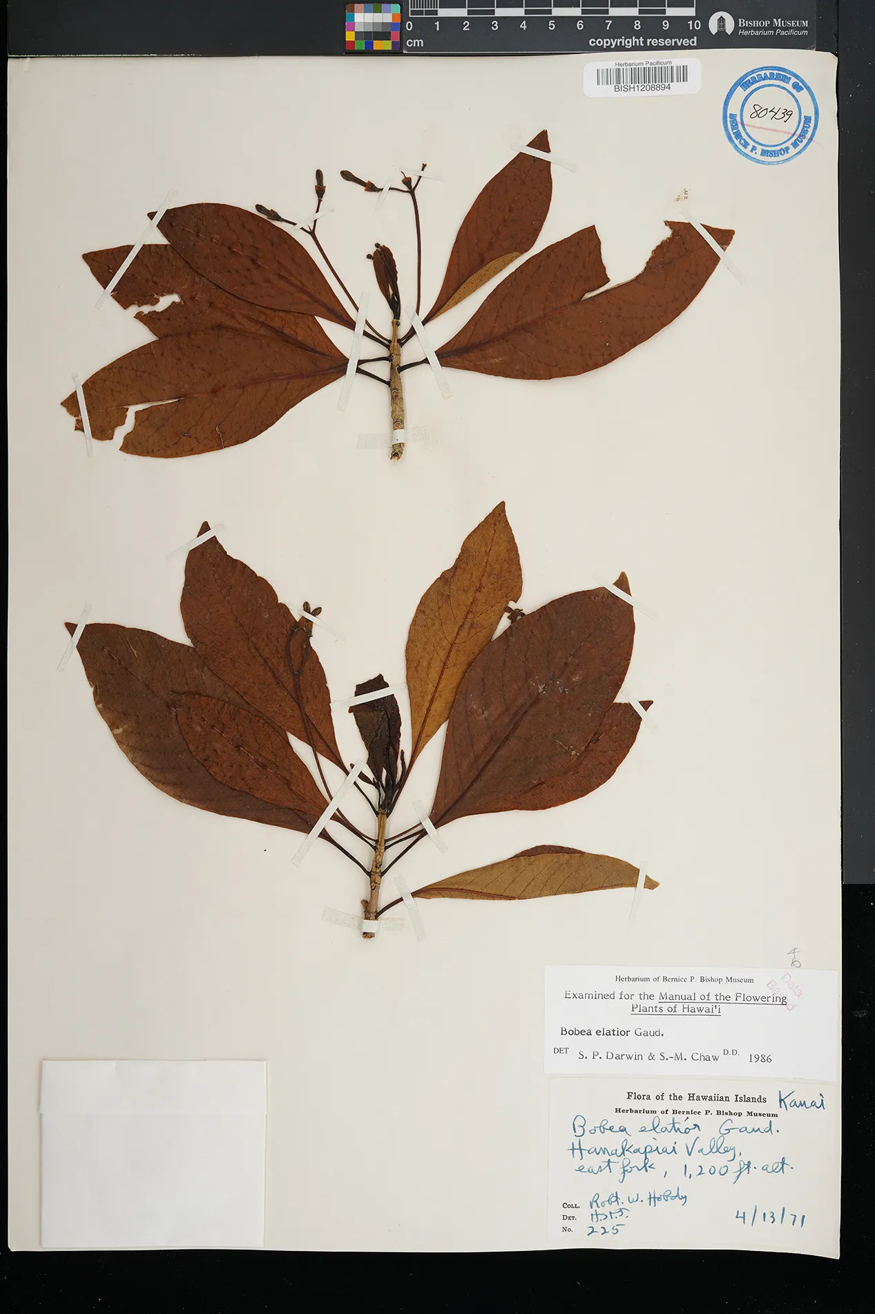 Leaves: Leaves simple. Opposite. Blades elliptic to obovate, (1.5–)3–15 cm long, (1–)4–5.5(–8) cm wide. Apex acute to obtuse. Base acute to long–attenuate. Surfaces usually glabrous, domatia somewhat elevated, porate, subglabrous, often scattered over blade, or sometimes absent chartaceous to subcoriaceous. Margins entire. Secondary veins 7–10 on each side of midrib, often reddish pellucid. Petioles (5–)10–25(–50) mm long, sometimes winged distally, glabrous. Stipules ovate to lanceolate, strongly imbricate in bud, 7–22 mm long, 4–9 mm wide, acute to acuminate, upper surface villous toward base, lower surface glabrous or slightly pubescent toward apex.