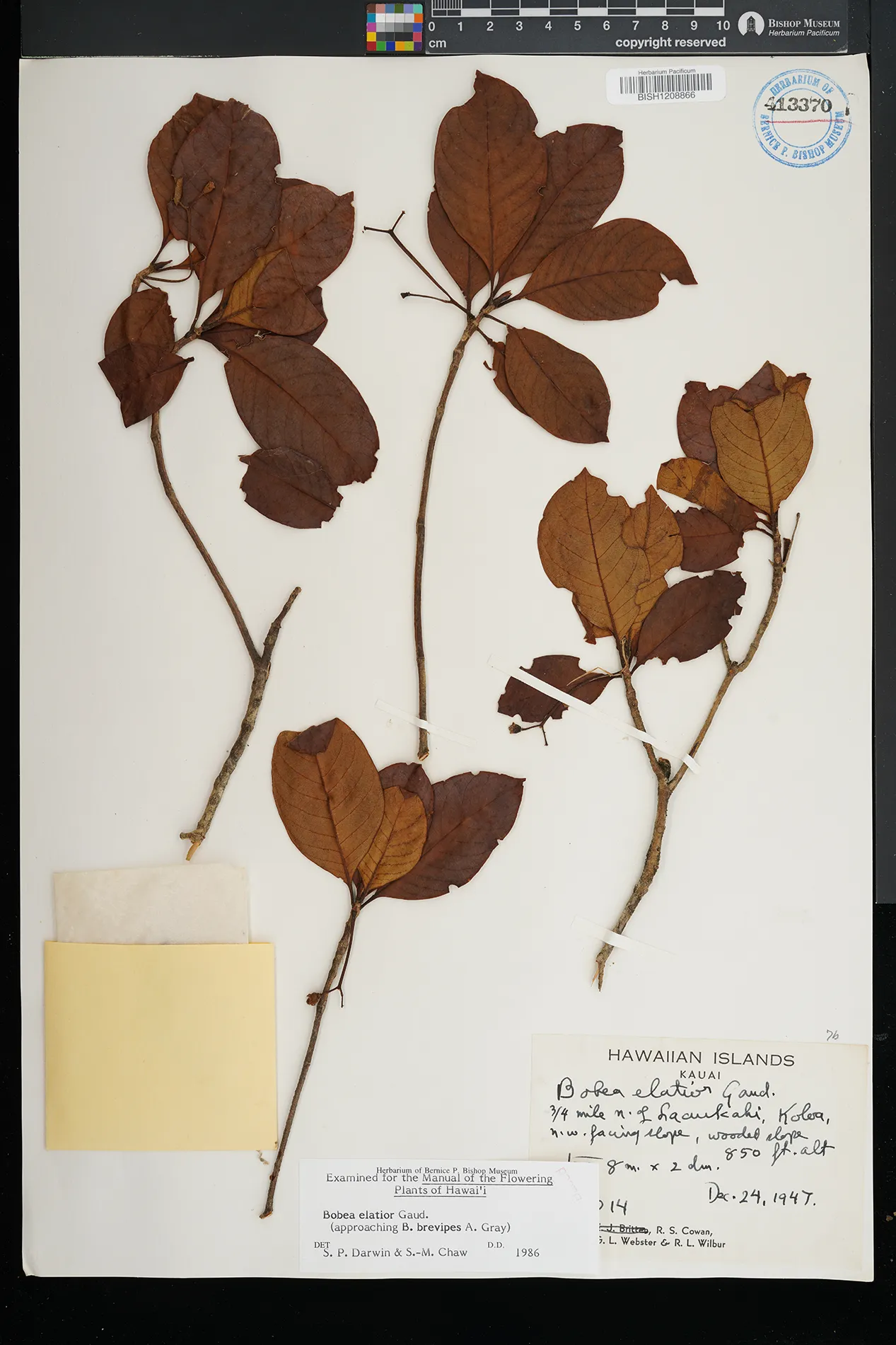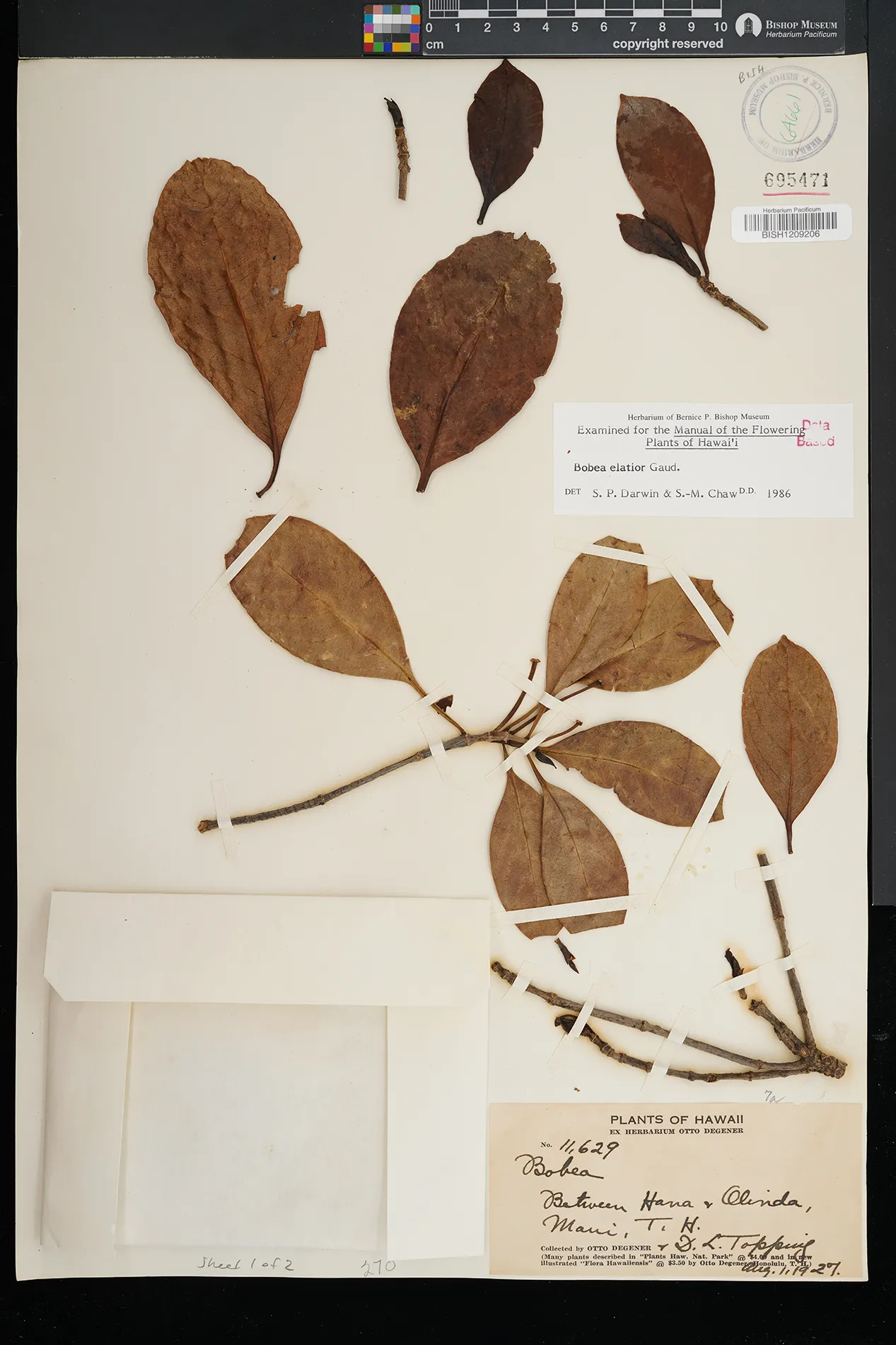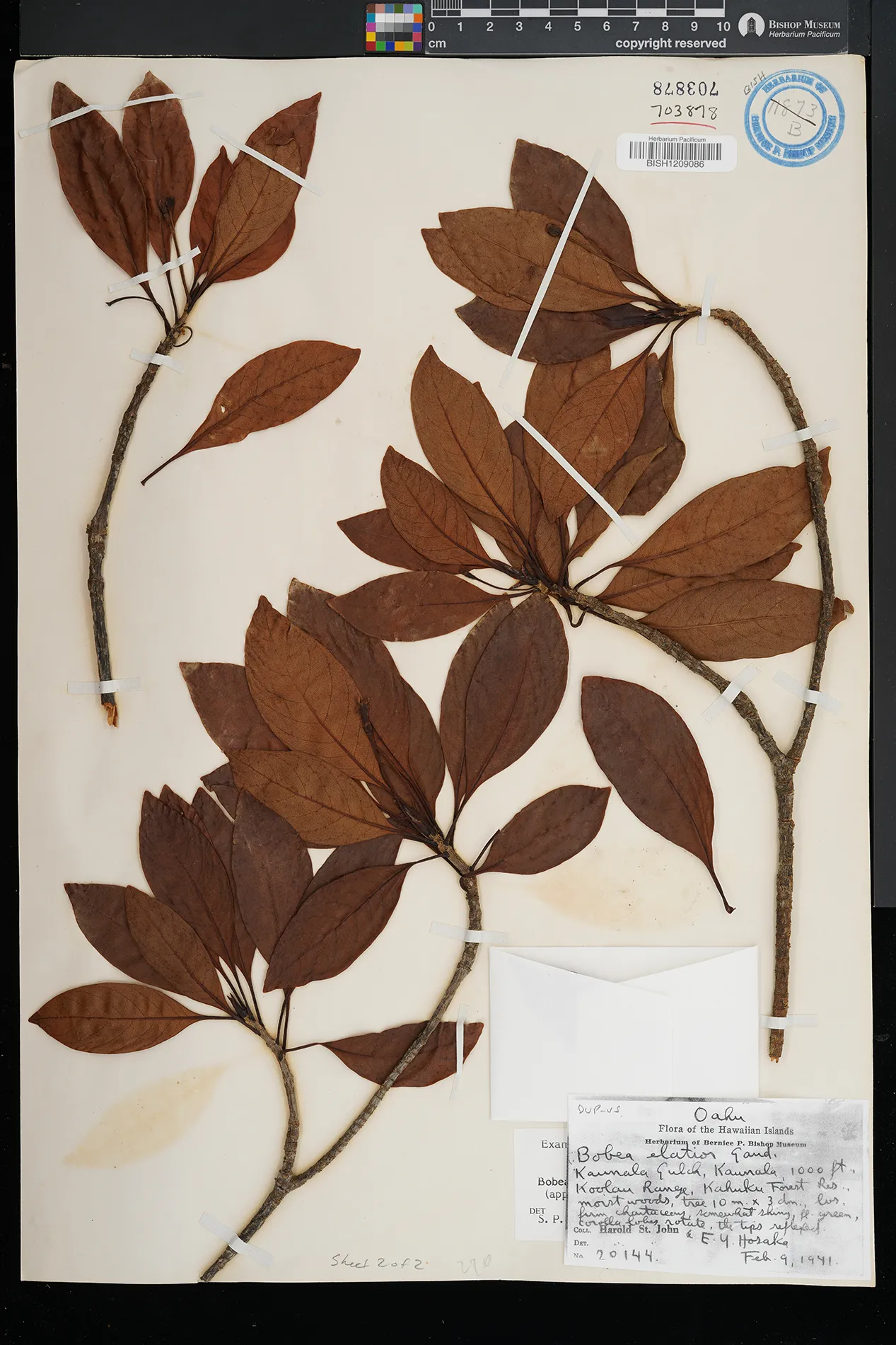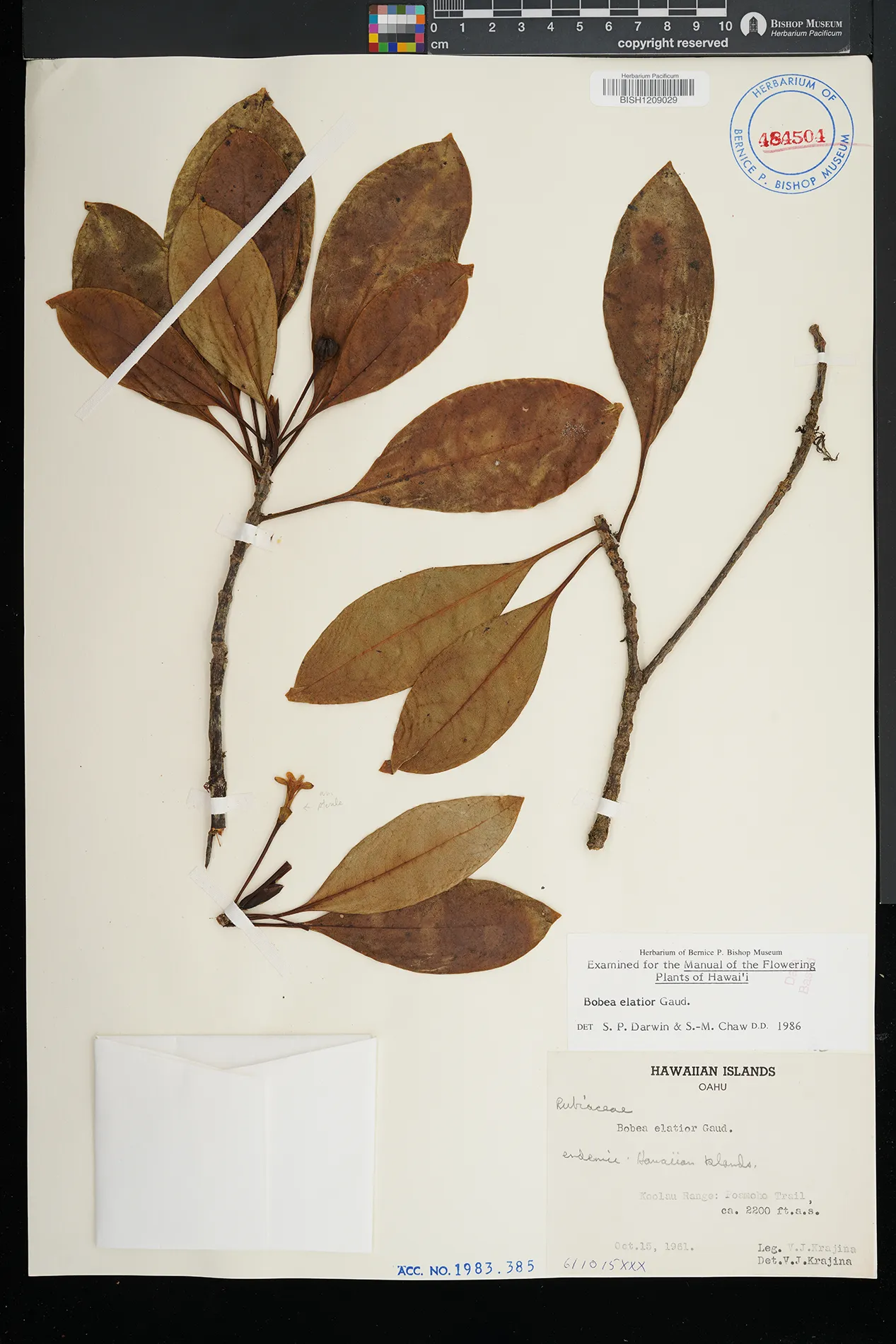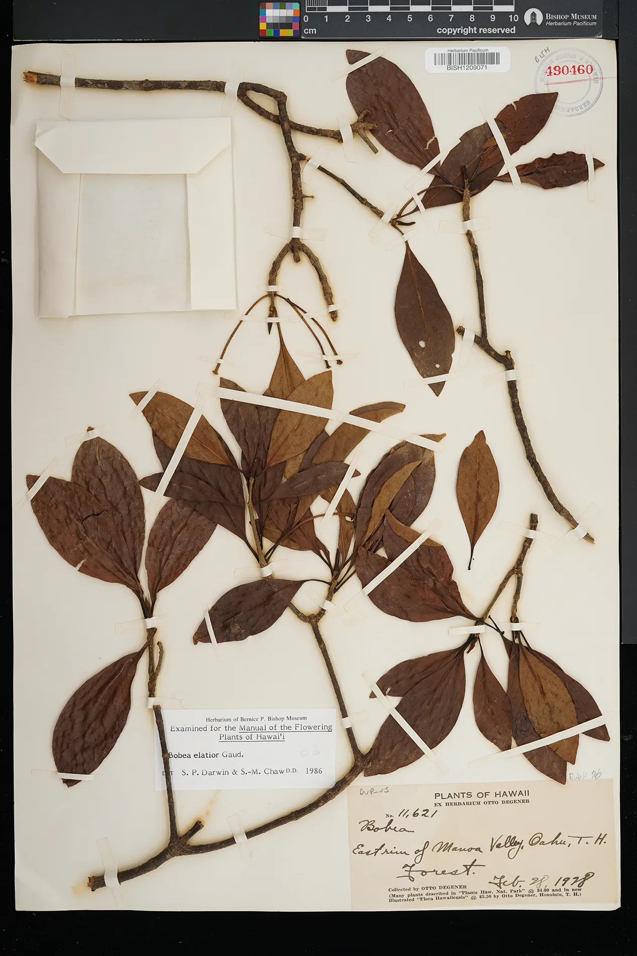 Leaves: Leaves simple. Opposite. Blades elliptic to obovate, (1.5–)3–15 cm long, (1–)4–5.5(–8) cm wide. Apex acute to obtuse. Base acute to long–attenuate. Surfaces usually glabrous, domatia somewhat elevated, porate, subglabrous, often scattered over blade, or sometimes absent chartaceous to subcoriaceous. Margins entire. Secondary veins 7–10 on each side of midrib, often reddish pellucid. Petioles (5–)10–25(–50) mm long, sometimes winged distally, glabrous. Stipules ovate to lanceolate, strongly imbricate in bud, 7–22 mm long, 4–9 mm wide, acute to acuminate, upper surface villous toward base, lower surface glabrous or slightly pubescent toward apex.