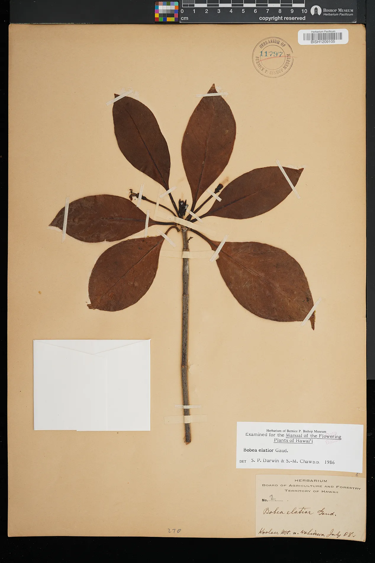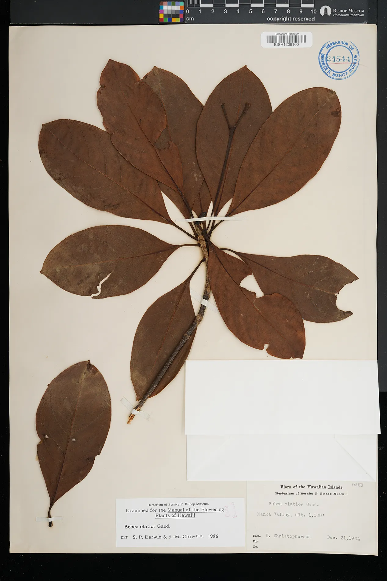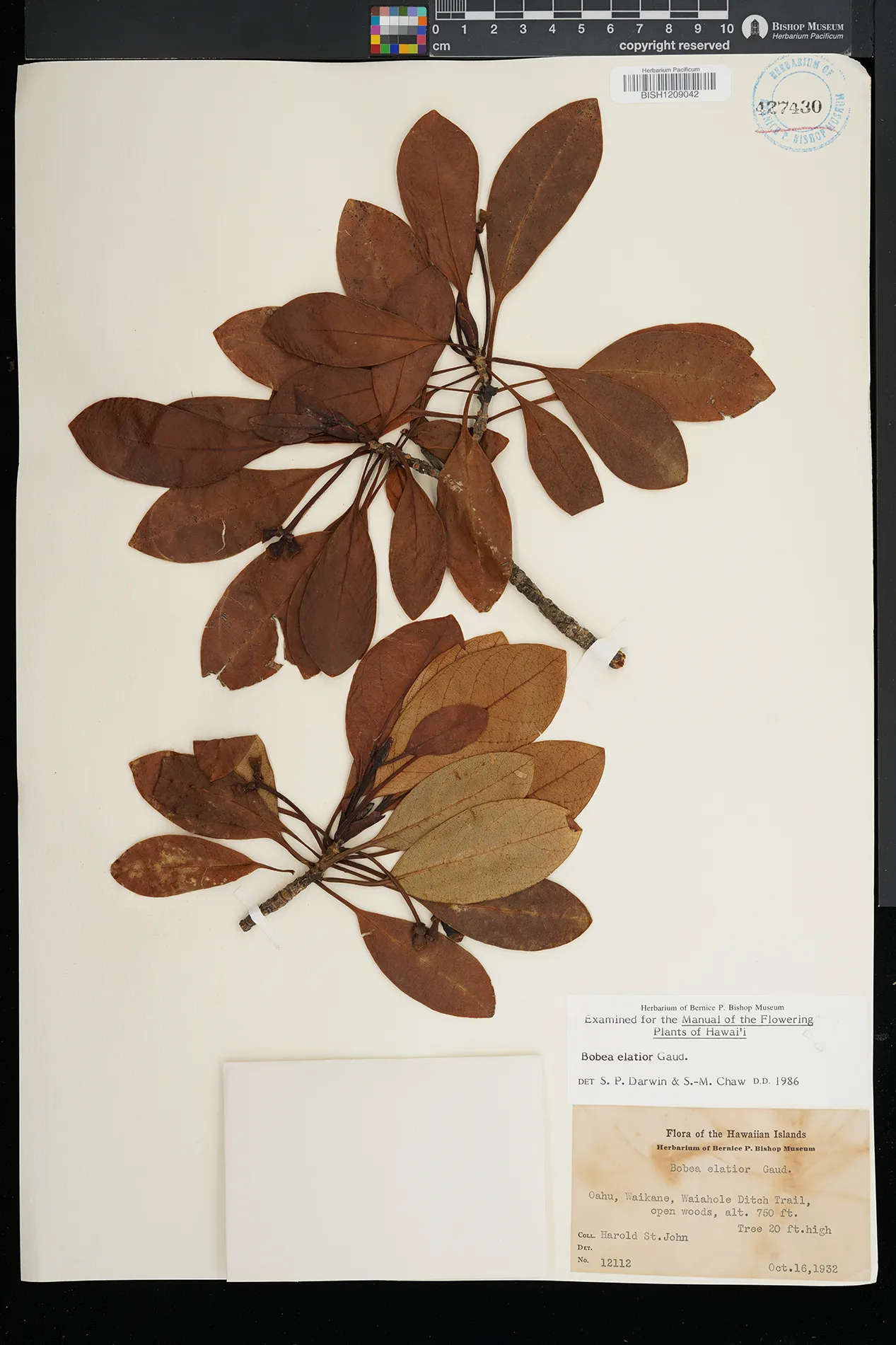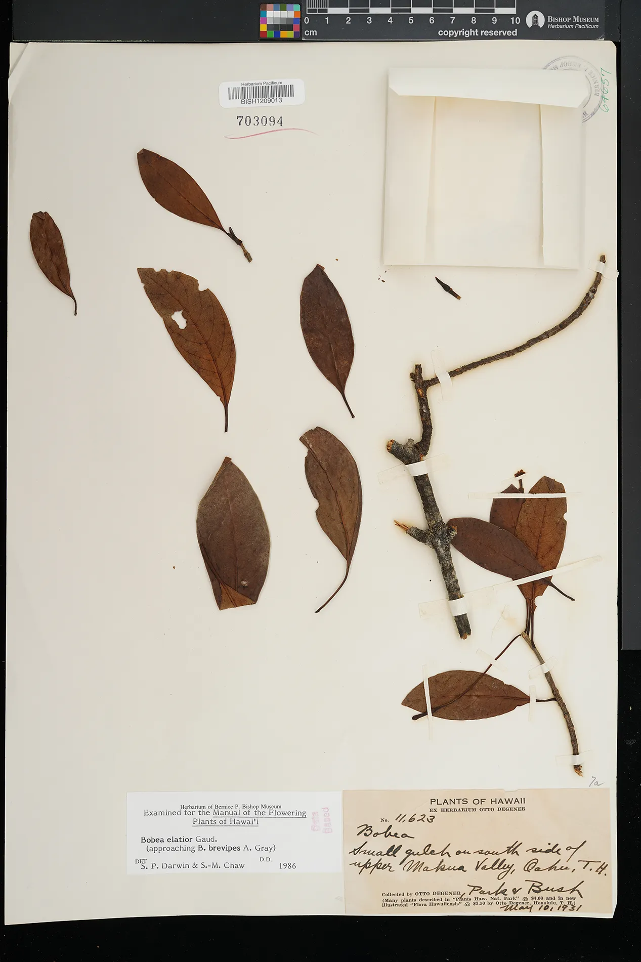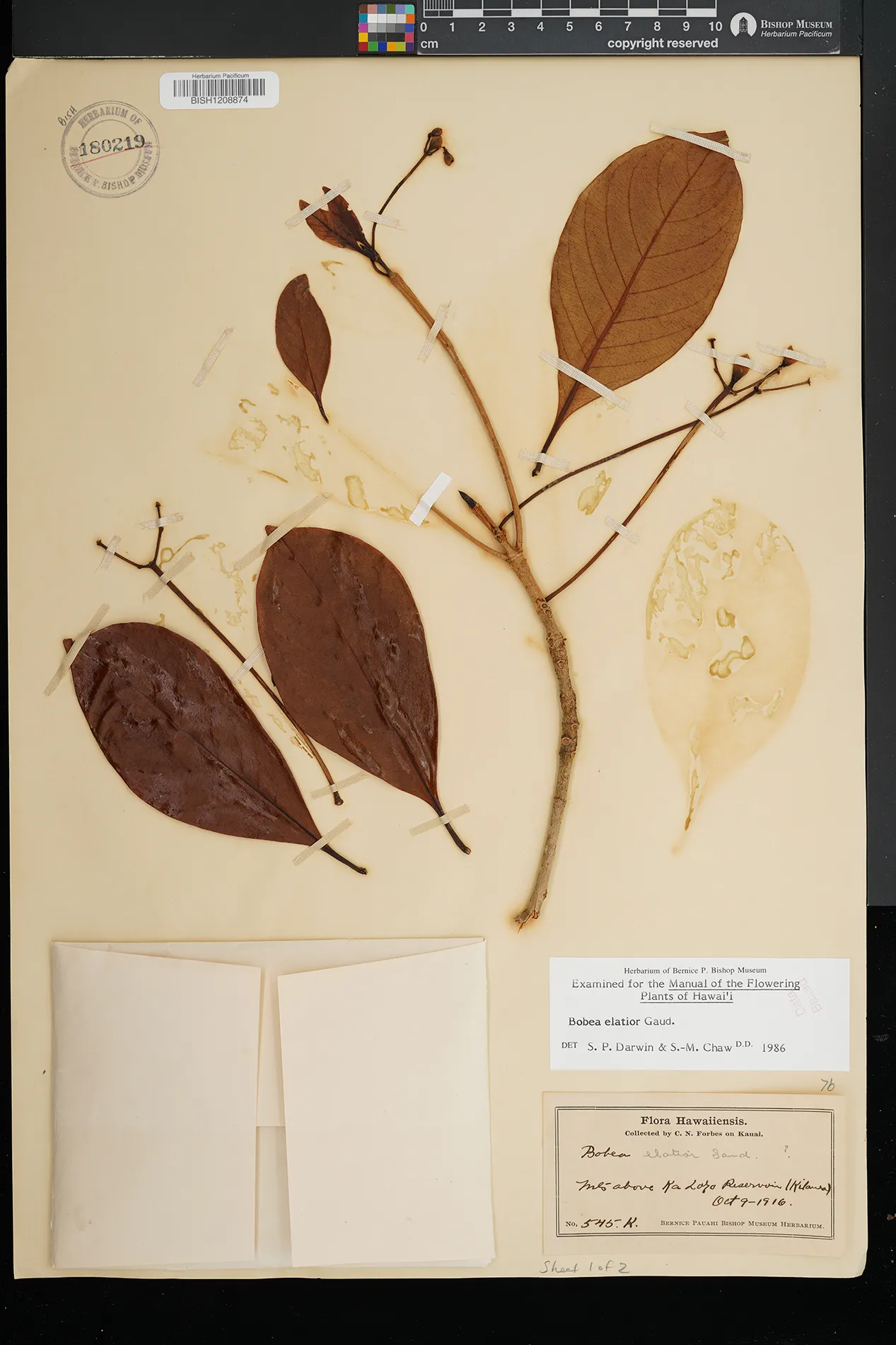 Leaves: Leaves simple. Opposite. Blades elliptic to obovate, (1.5–)3–15 cm long, (1–)4–5.5(–8) cm wide. Apex acute to obtuse. Base acute to long–attenuate. Surfaces usually glabrous, domatia somewhat elevated, porate, subglabrous, often scattered over blade, or sometimes absent chartaceous to subcoriaceous. Margins entire. Secondary veins 7–10 on each side of midrib, often reddish pellucid. Petioles (5–)10–25(–50) mm long, sometimes winged distally, glabrous. Stipules ovate to lanceolate, strongly imbricate in bud, 7–22 mm long, 4–9 mm wide, acute to acuminate, upper surface villous toward base, lower surface glabrous or slightly pubescent toward apex.