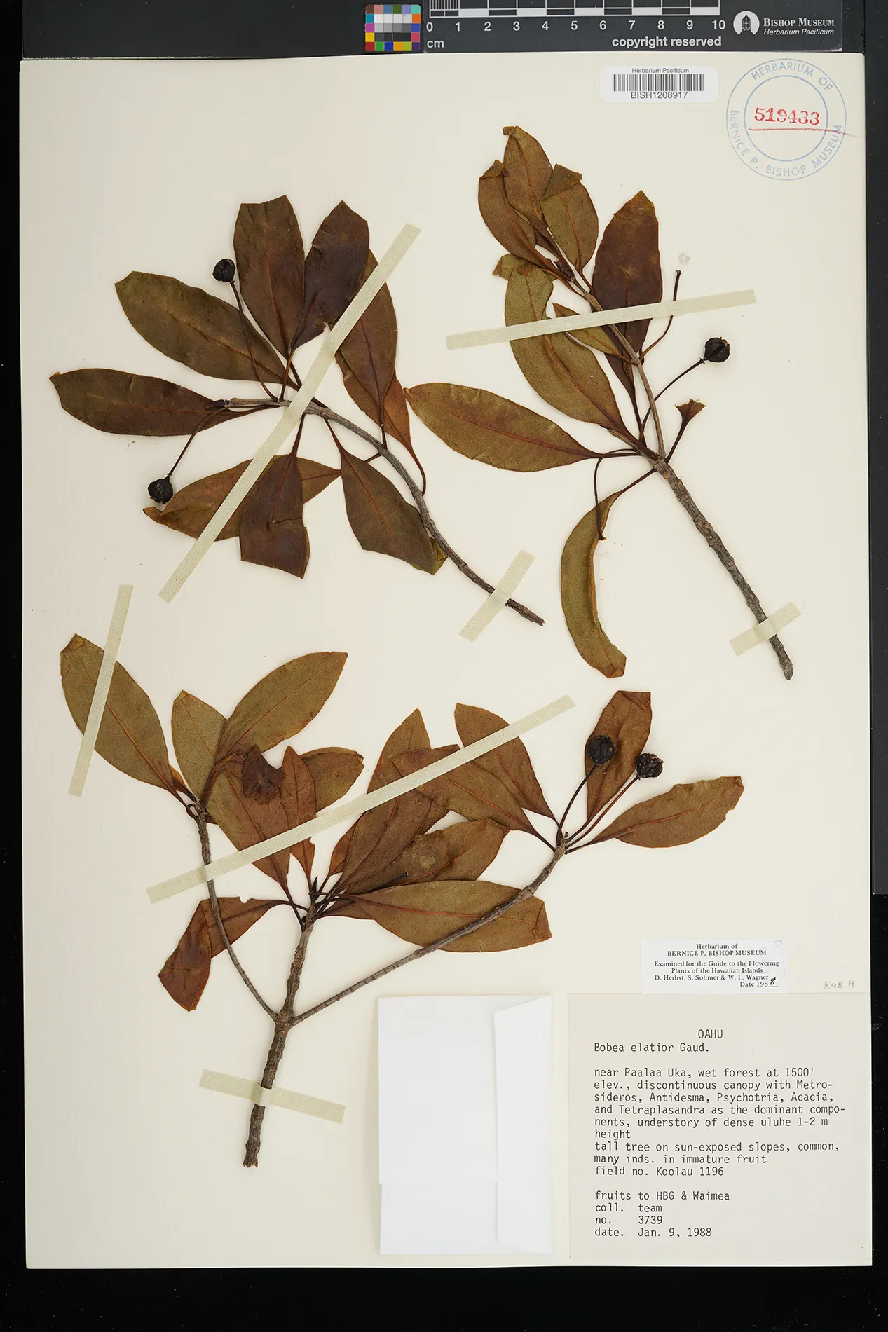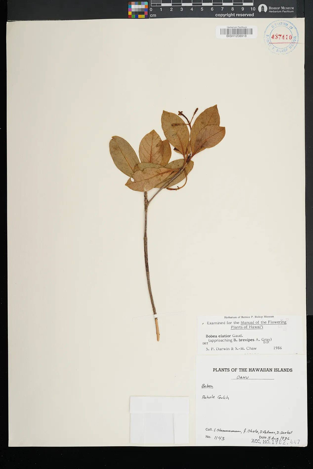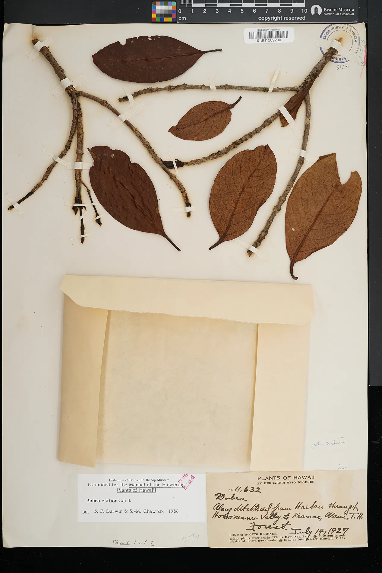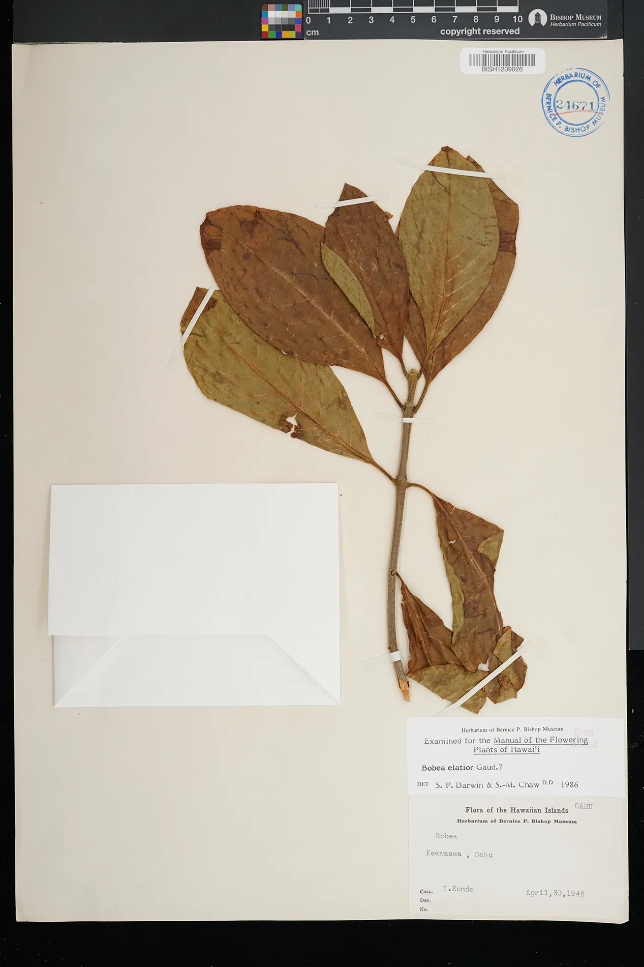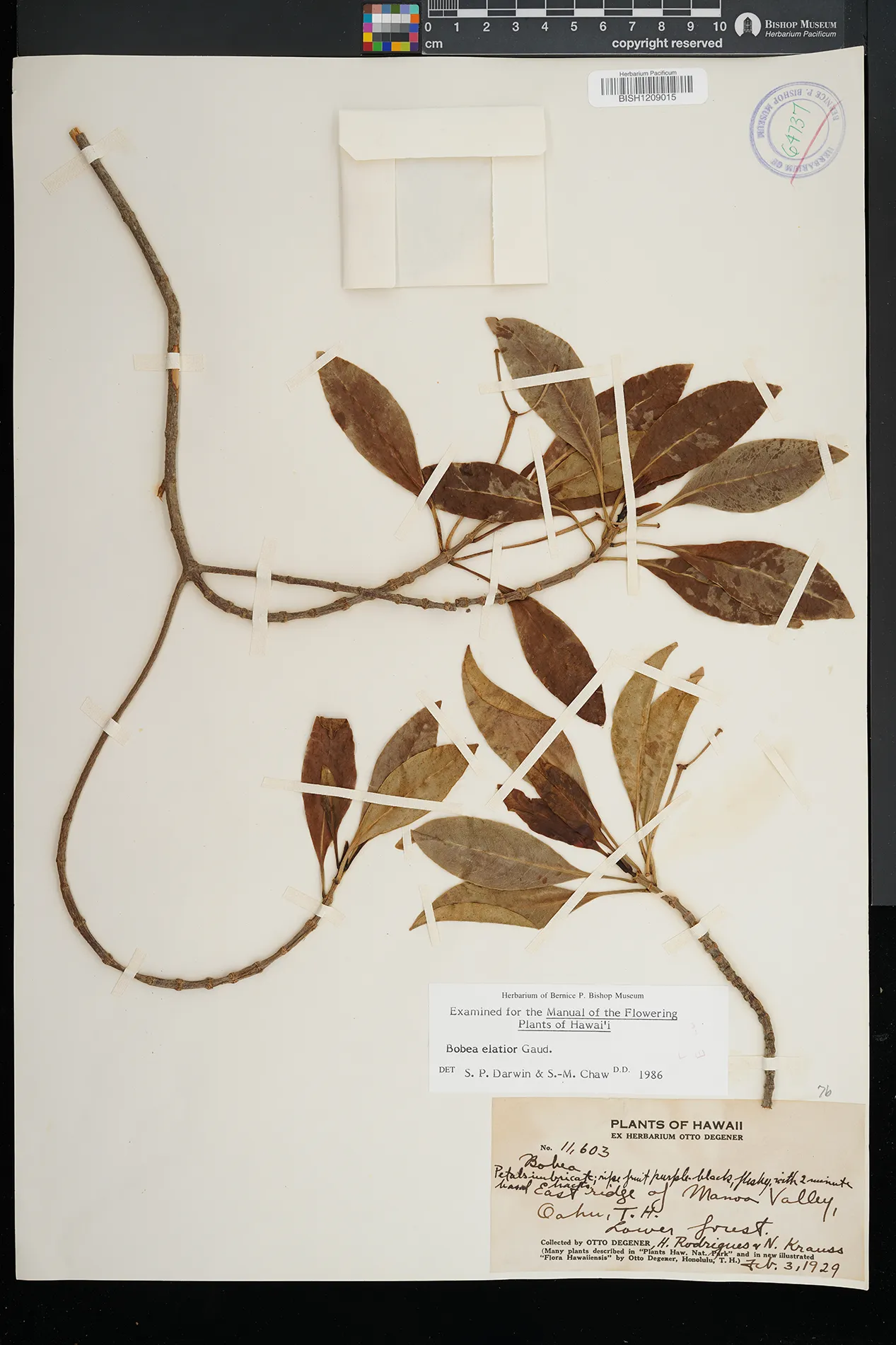 Leaves: Leaves simple. Opposite. Blades elliptic to obovate, (1.5–)3–15 cm long, (1–)4–5.5(–8) cm wide. Apex acute to obtuse. Base acute to long–attenuate. Surfaces usually glabrous, domatia somewhat elevated, porate, subglabrous, often scattered over blade, or sometimes absent chartaceous to subcoriaceous. Margins entire. Secondary veins 7–10 on each side of midrib, often reddish pellucid. Petioles (5–)10–25(–50) mm long, sometimes winged distally, glabrous. Stipules ovate to lanceolate, strongly imbricate in bud, 7–22 mm long, 4–9 mm wide, acute to acuminate, upper surface villous toward base, lower surface glabrous or slightly pubescent toward apex.