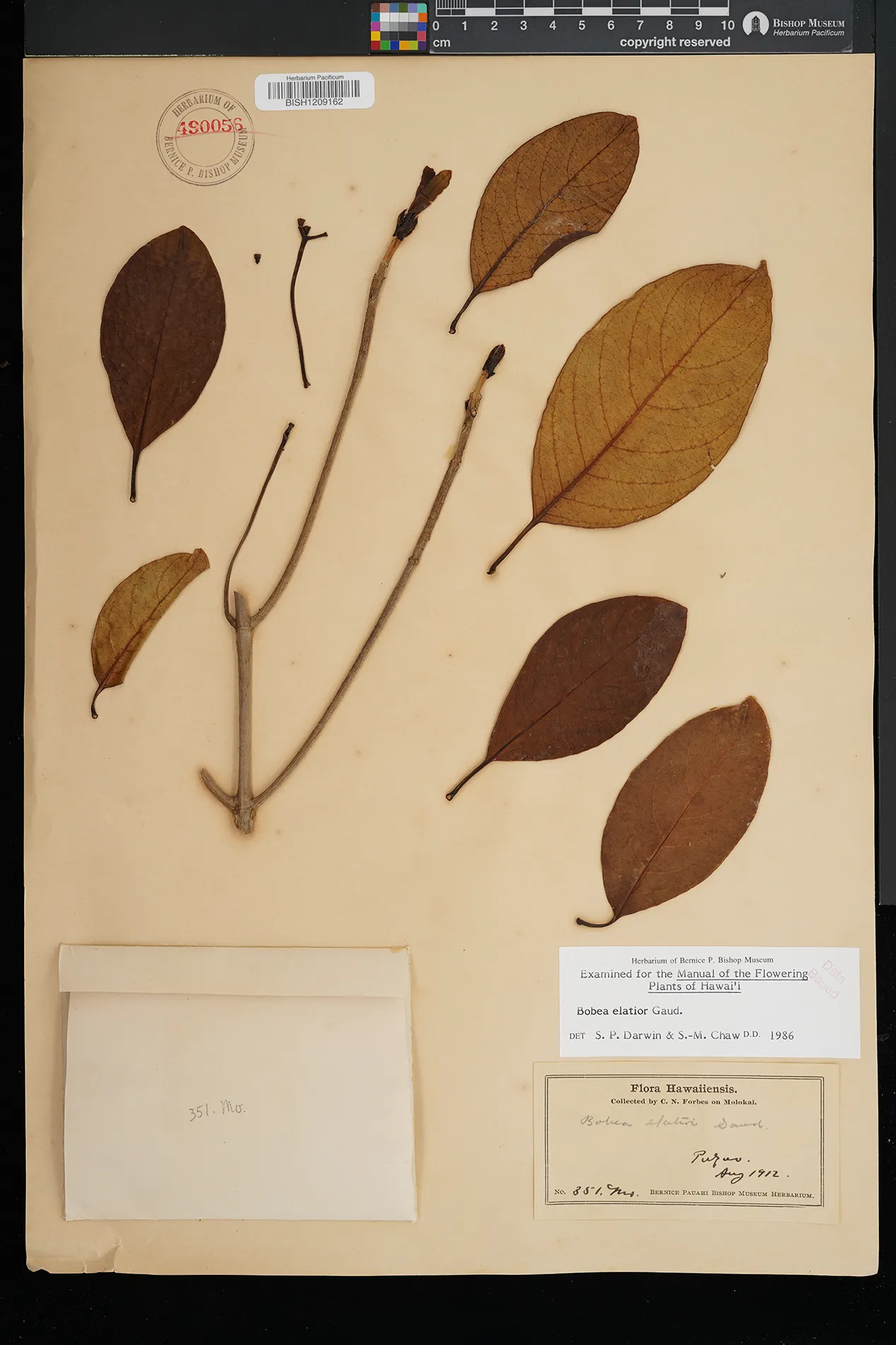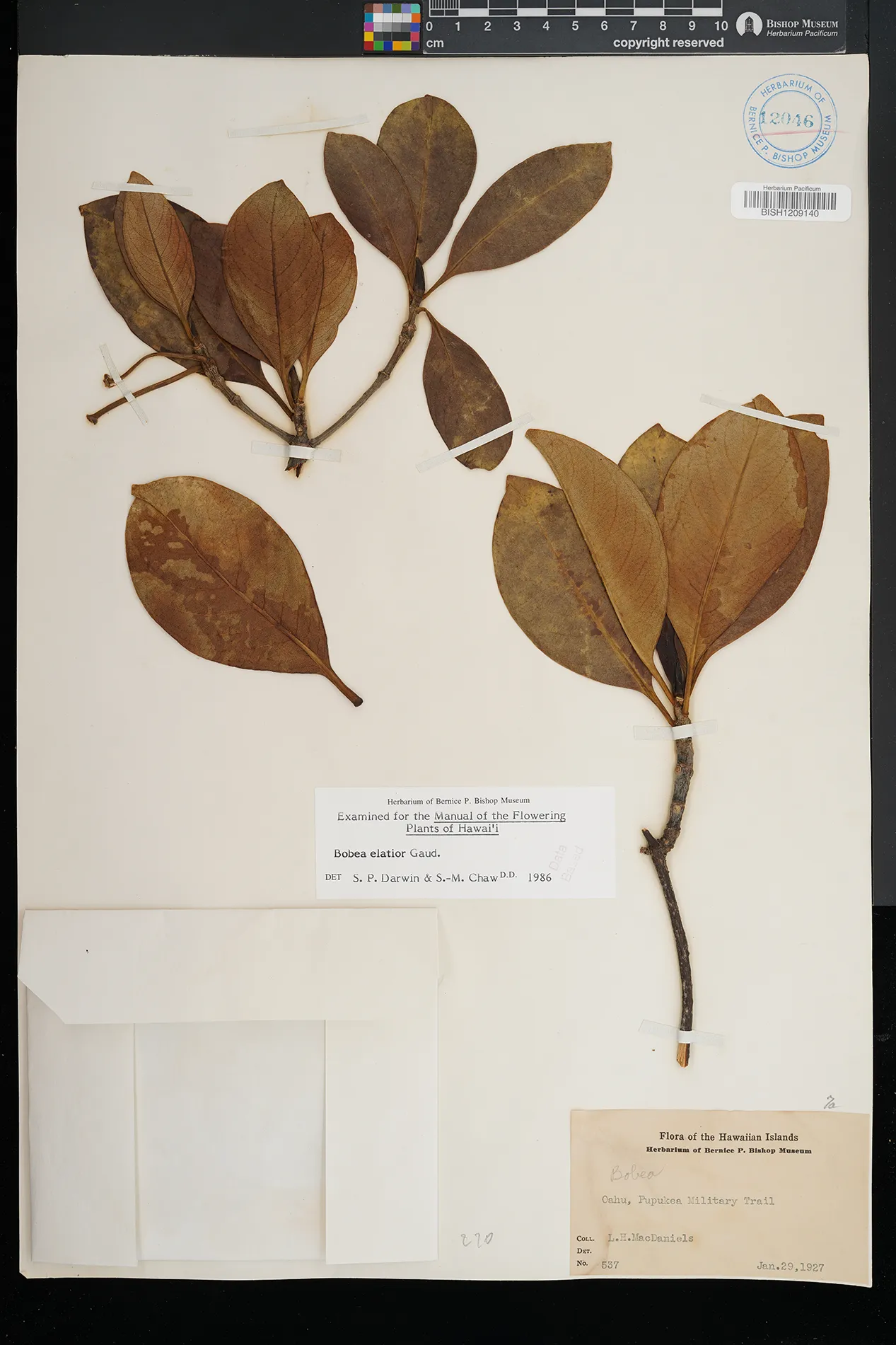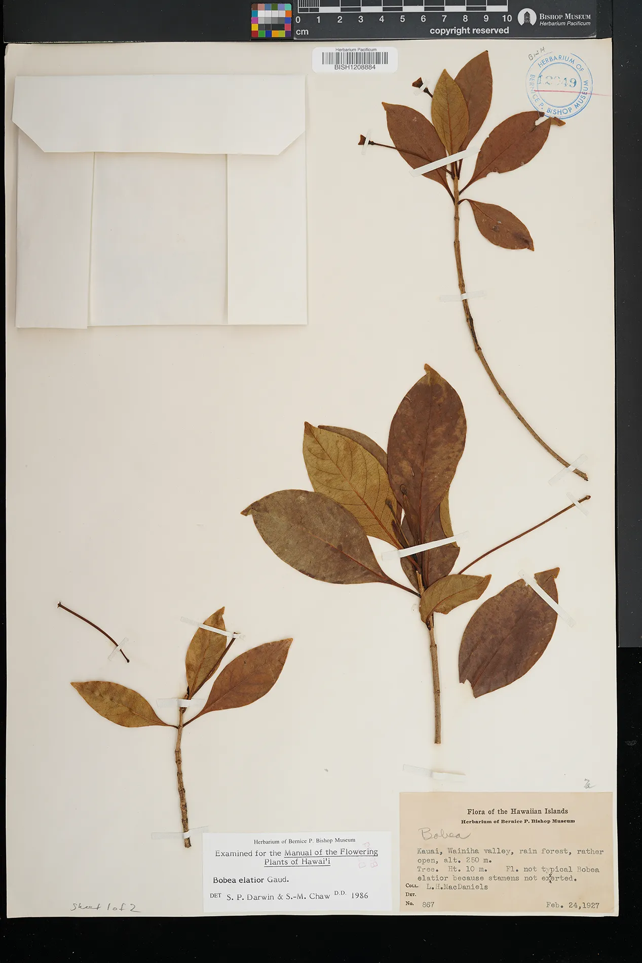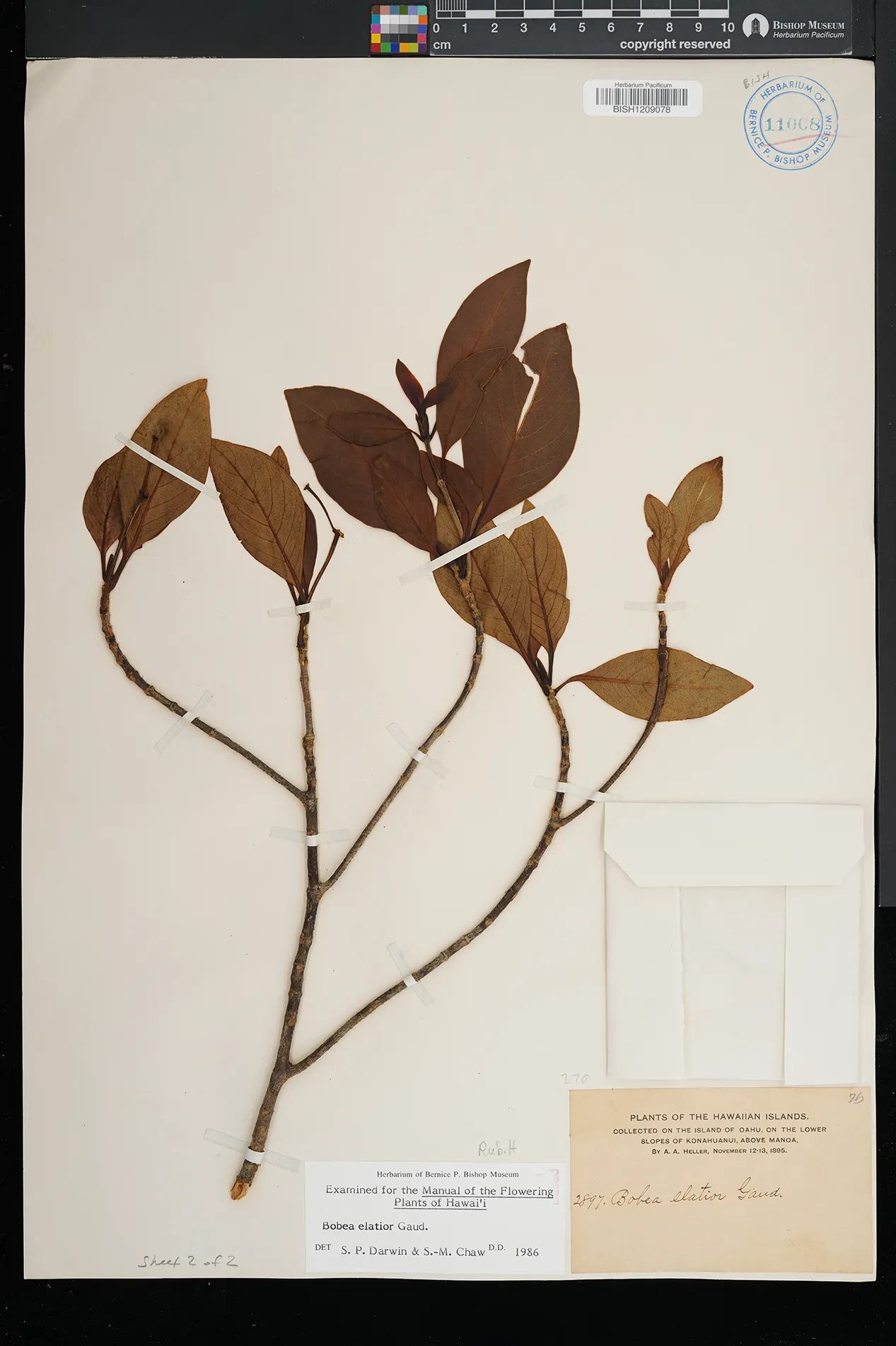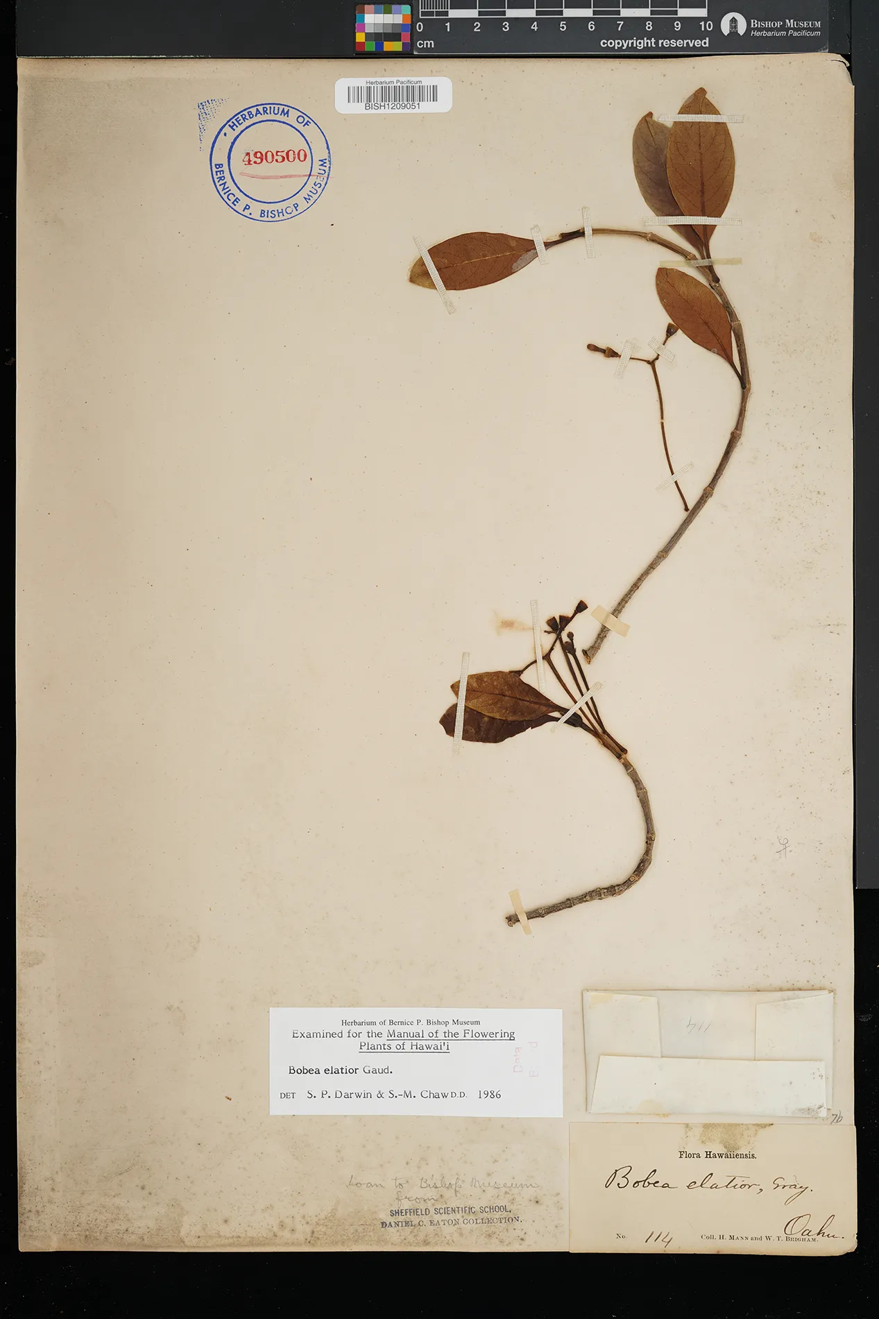 Leaves: Leaves simple. Opposite. Blades elliptic to obovate, (1.5–)3–15 cm long, (1–)4–5.5(–8) cm wide. Apex acute to obtuse. Base acute to long–attenuate. Surfaces usually glabrous, domatia somewhat elevated, porate, subglabrous, often scattered over blade, or sometimes absent chartaceous to subcoriaceous. Margins entire. Secondary veins 7–10 on each side of midrib, often reddish pellucid. Petioles (5–)10–25(–50) mm long, sometimes winged distally, glabrous. Stipules ovate to lanceolate, strongly imbricate in bud, 7–22 mm long, 4–9 mm wide, acute to acuminate, upper surface villous toward base, lower surface glabrous or slightly pubescent toward apex.