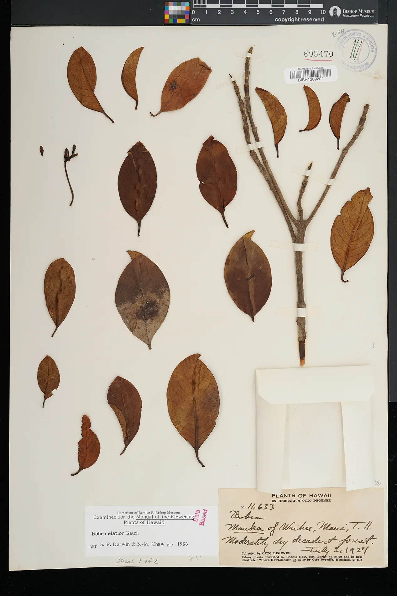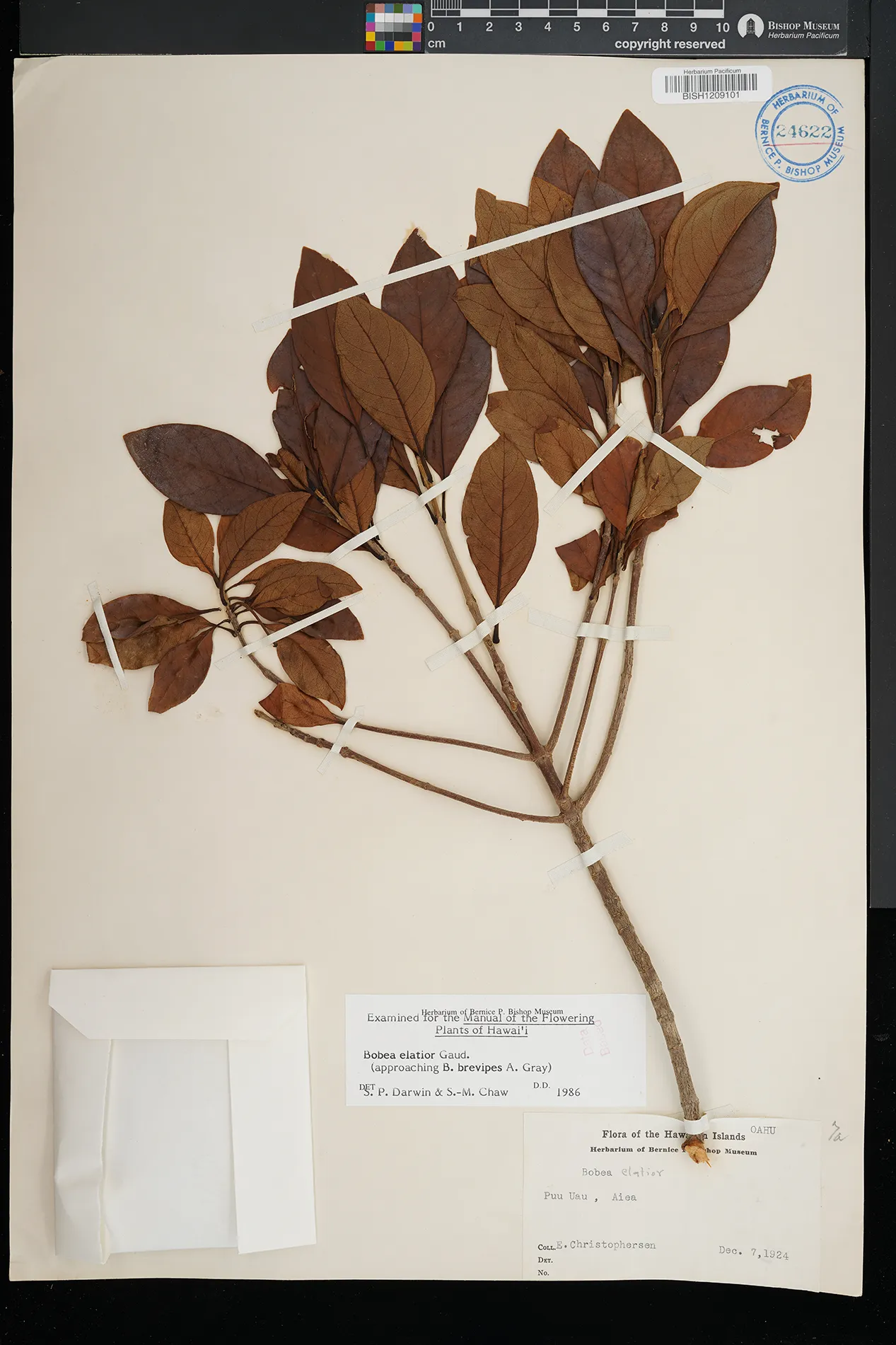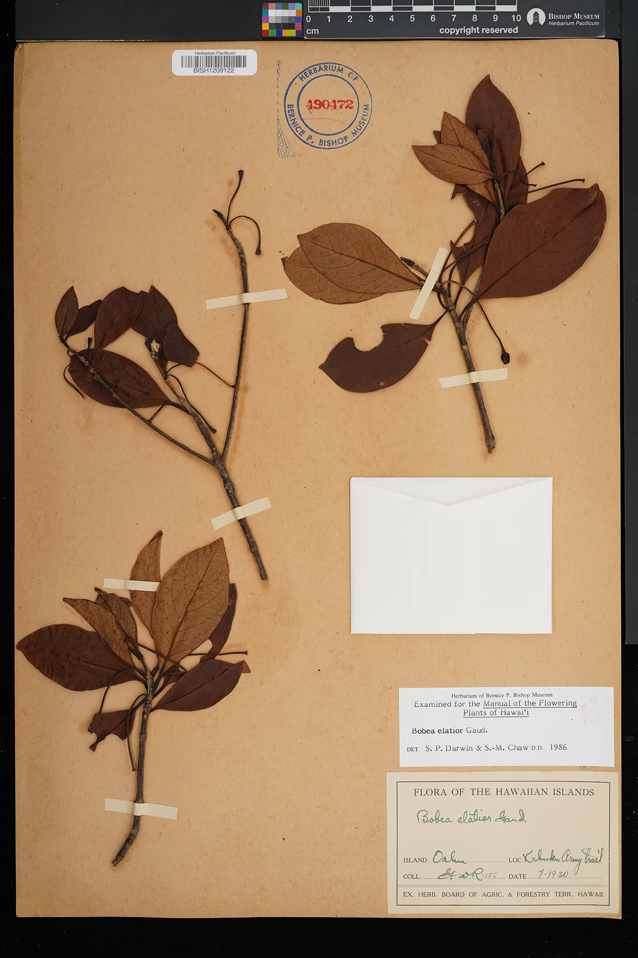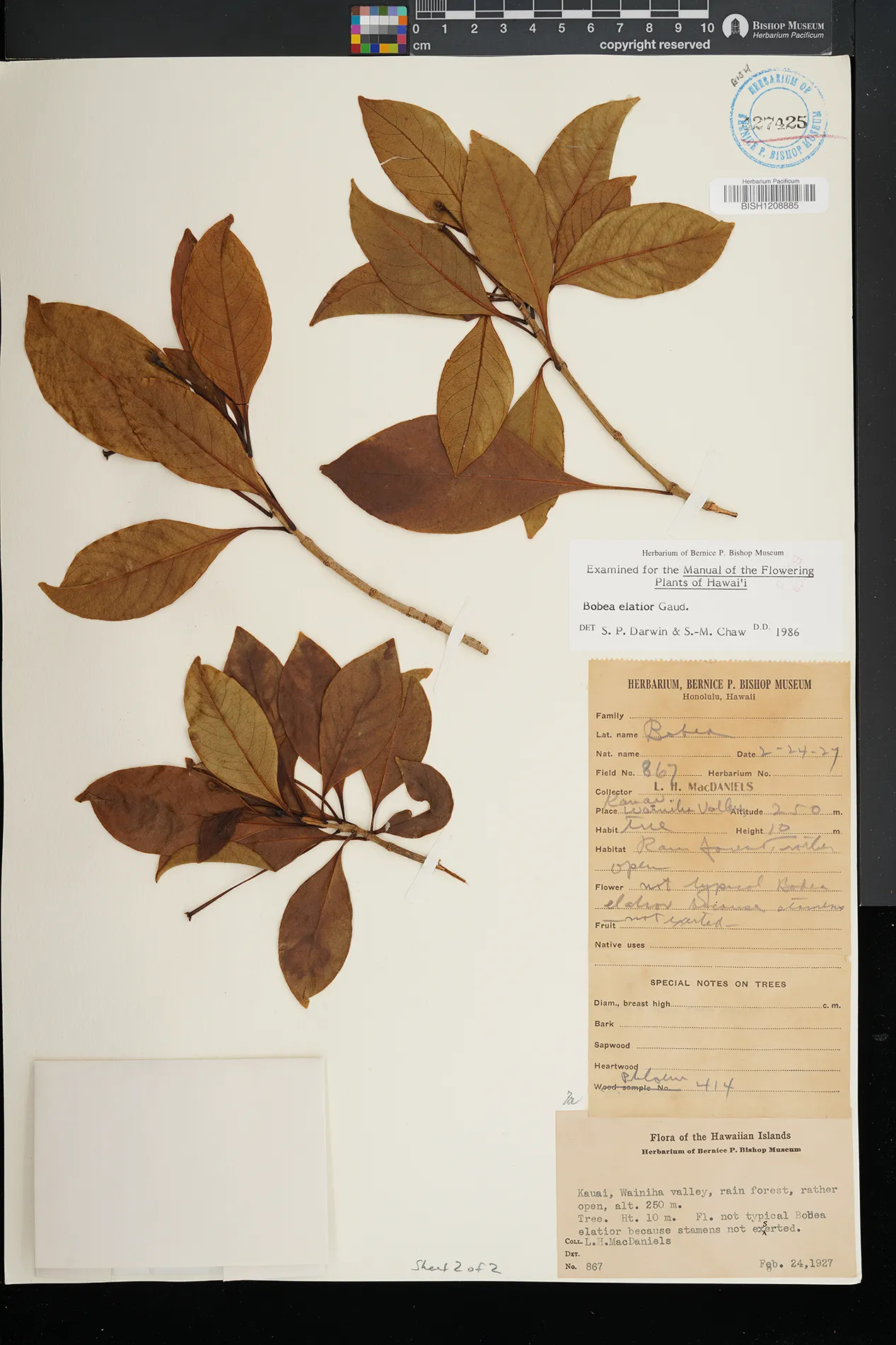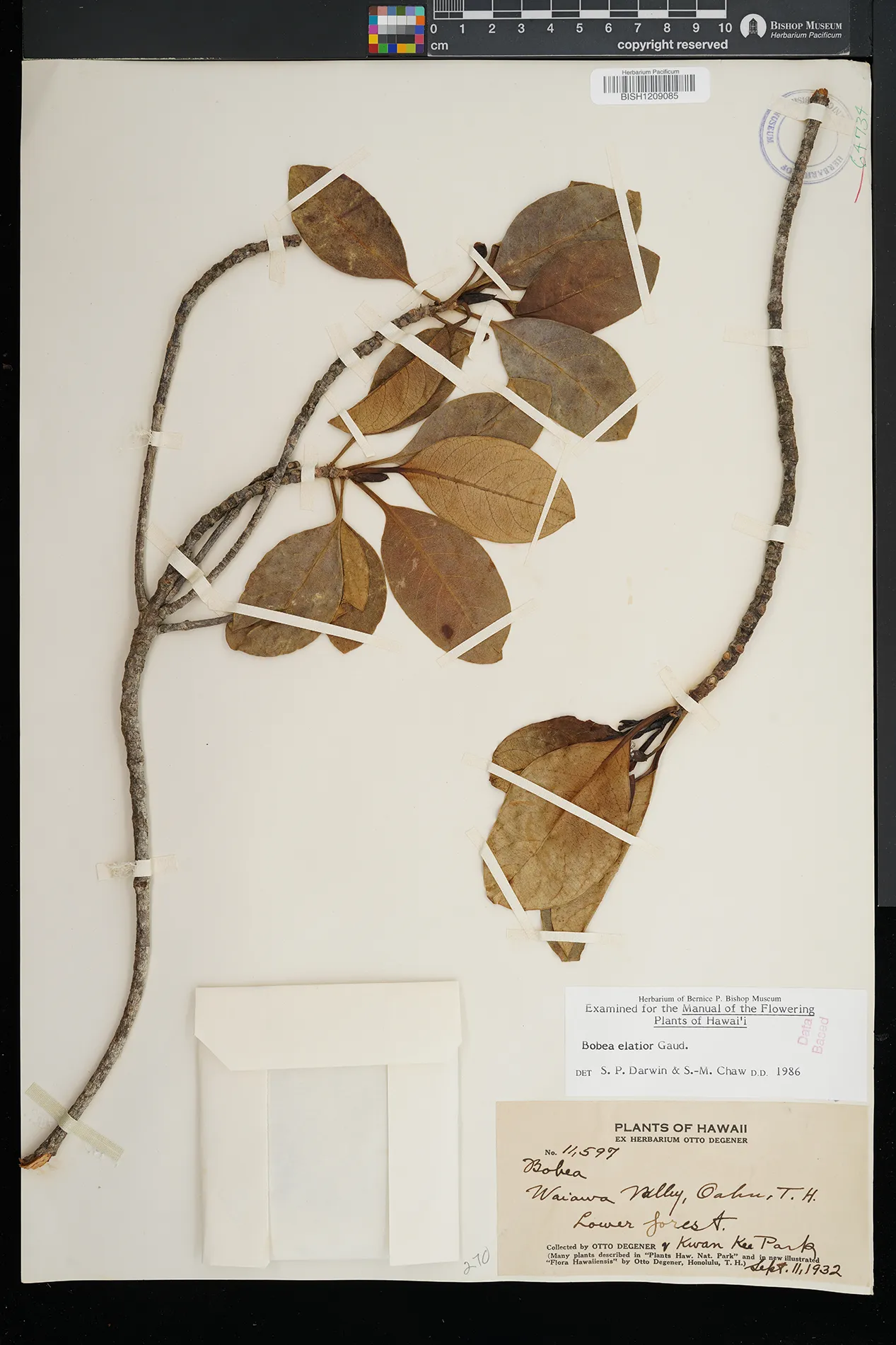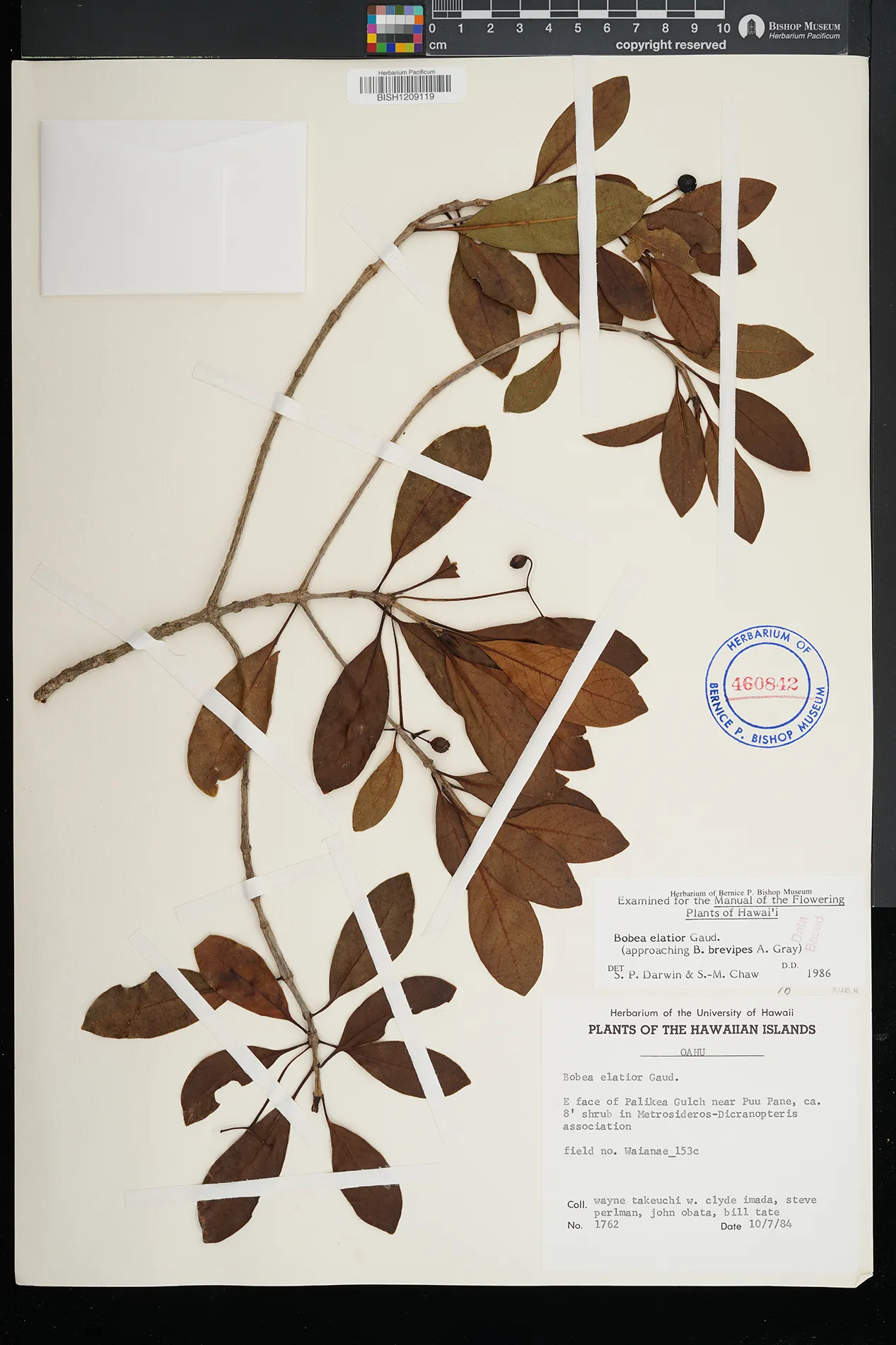 Leaves: Leaves simple. Opposite. Blades elliptic to obovate, (1.5–)3–15 cm long, (1–)4–5.5(–8) cm wide. Apex acute to obtuse. Base acute to long–attenuate. Surfaces usually glabrous, domatia somewhat elevated, porate, subglabrous, often scattered over blade, or sometimes absent chartaceous to subcoriaceous. Margins entire. Secondary veins 7–10 on each side of midrib, often reddish pellucid. Petioles (5–)10–25(–50) mm long, sometimes winged distally, glabrous. Stipules ovate to lanceolate, strongly imbricate in bud, 7–22 mm long, 4–9 mm wide, acute to acuminate, upper surface villous toward base, lower surface glabrous or slightly pubescent toward apex.