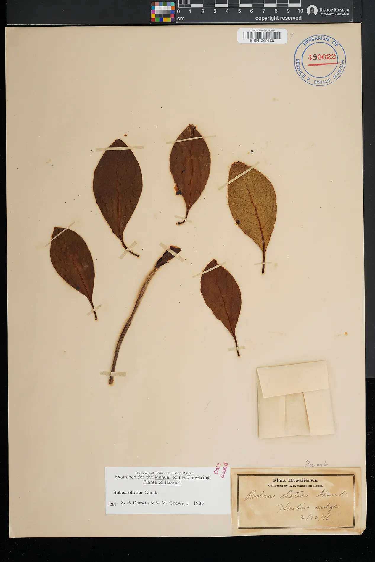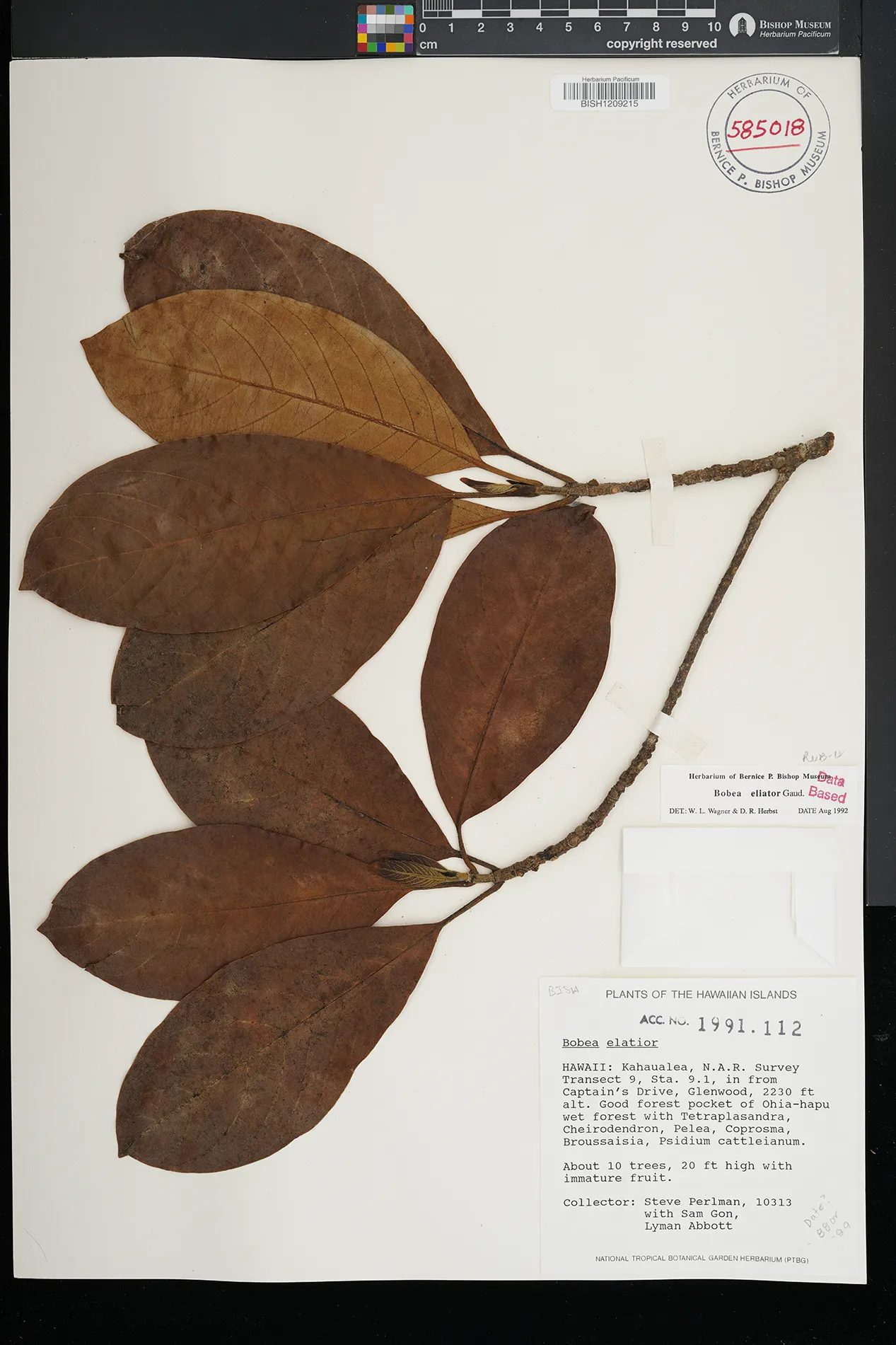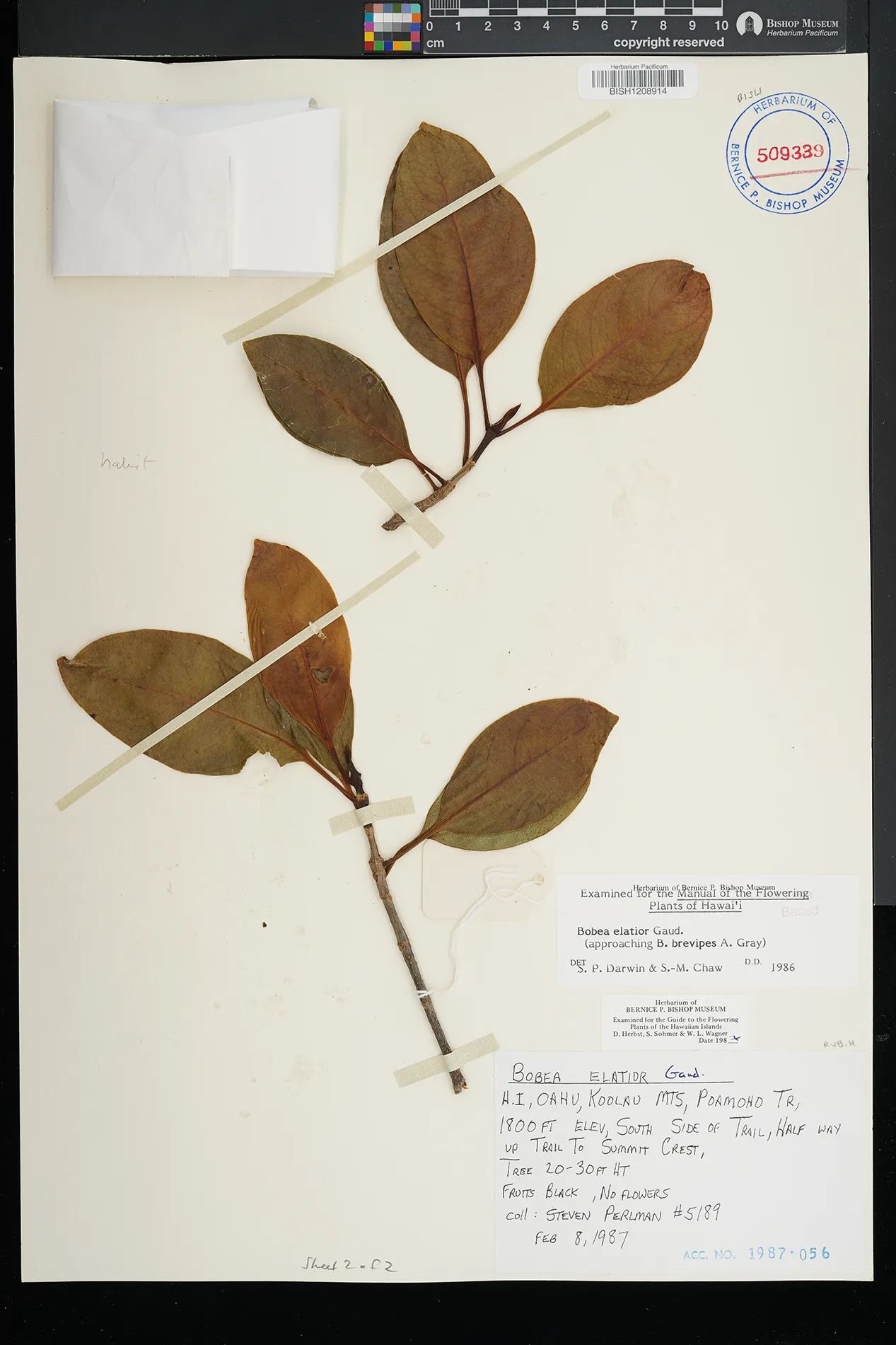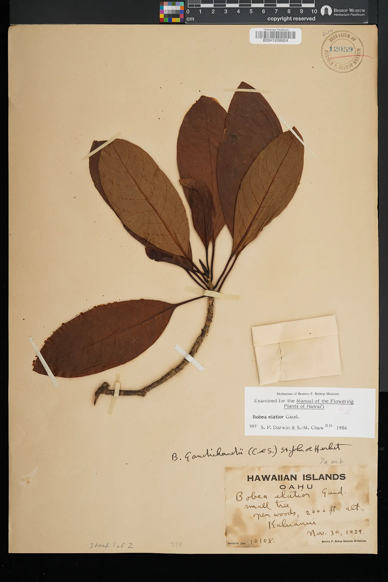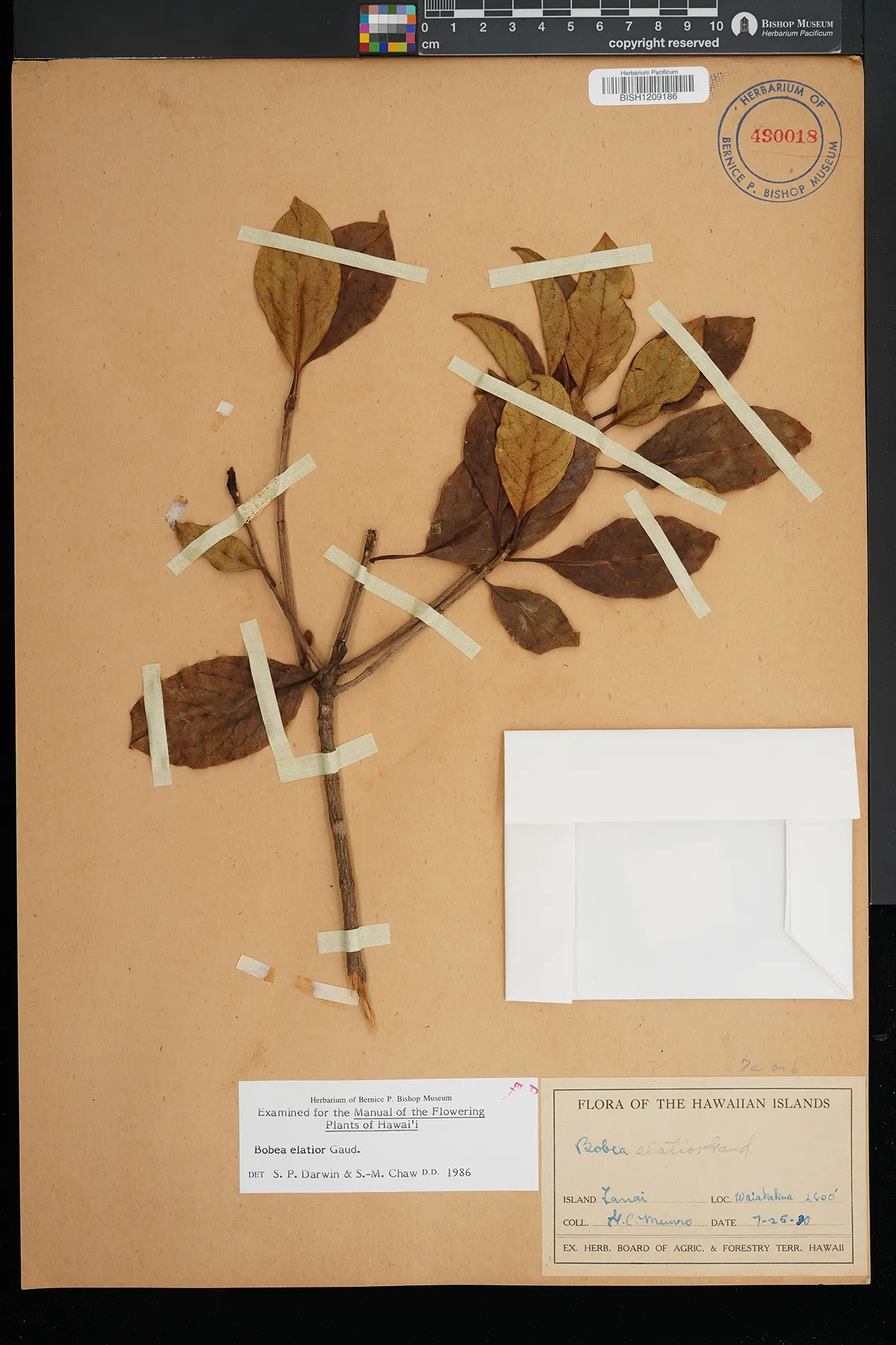 Leaves: Leaves simple. Opposite. Blades elliptic to obovate, (1.5–)3–15 cm long, (1–)4–5.5(–8) cm wide. Apex acute to obtuse. Base acute to long–attenuate. Surfaces usually glabrous, domatia somewhat elevated, porate, subglabrous, often scattered over blade, or sometimes absent chartaceous to subcoriaceous. Margins entire. Secondary veins 7–10 on each side of midrib, often reddish pellucid. Petioles (5–)10–25(–50) mm long, sometimes winged distally, glabrous. Stipules ovate to lanceolate, strongly imbricate in bud, 7–22 mm long, 4–9 mm wide, acute to acuminate, upper surface villous toward base, lower surface glabrous or slightly pubescent toward apex.