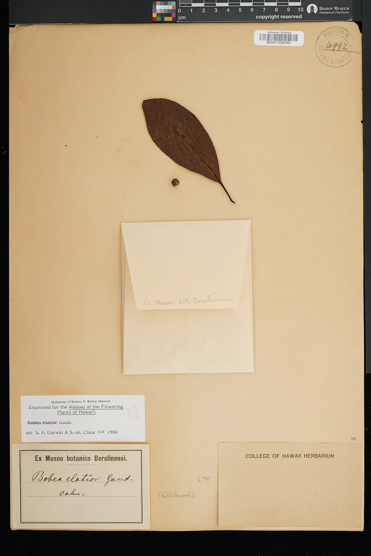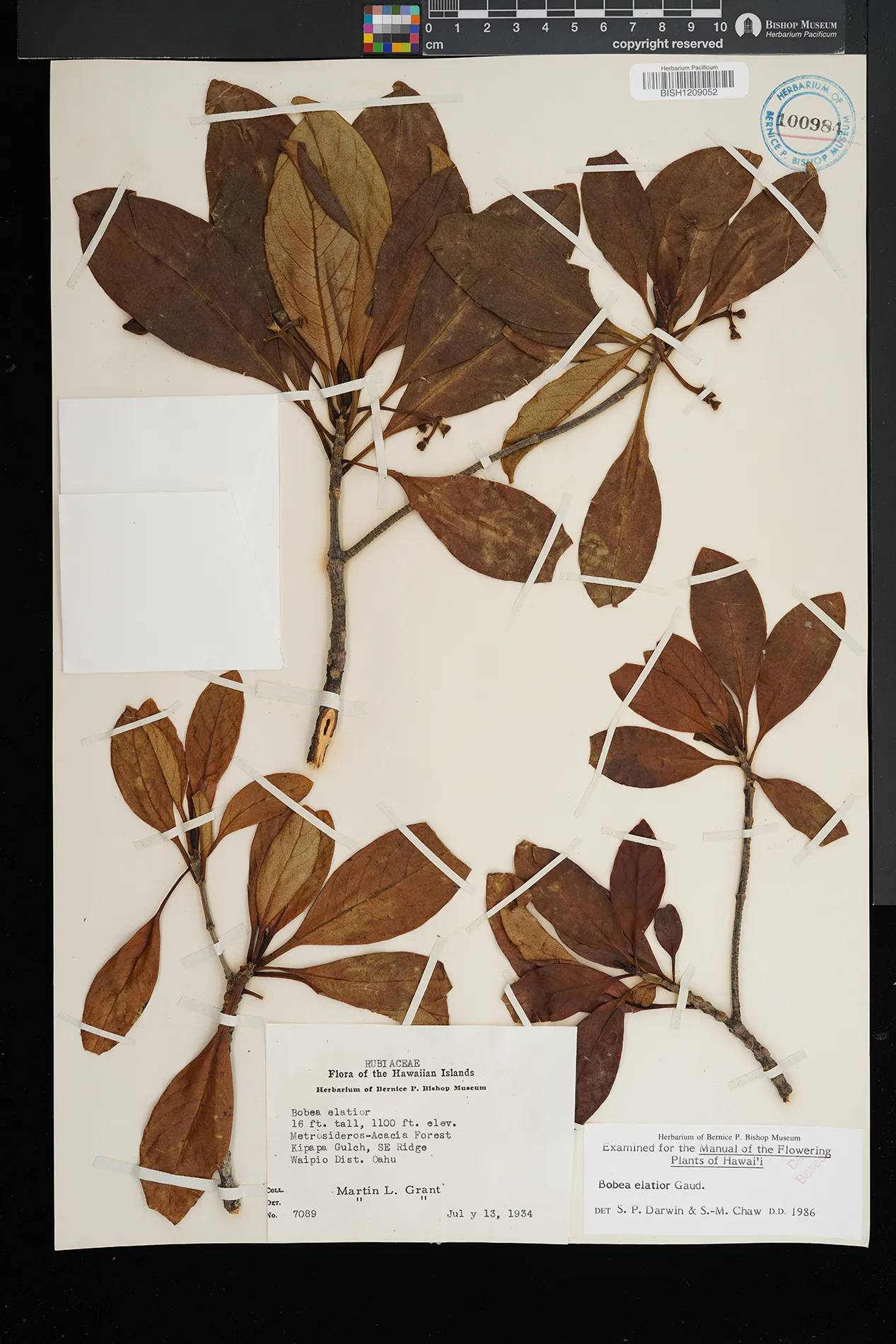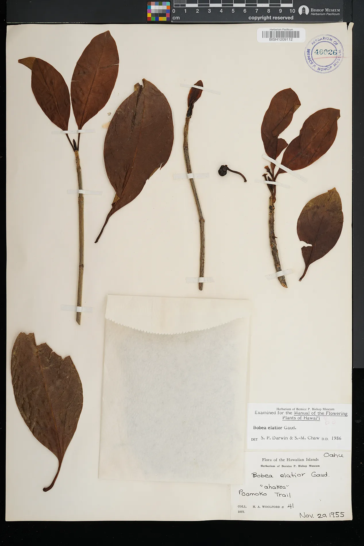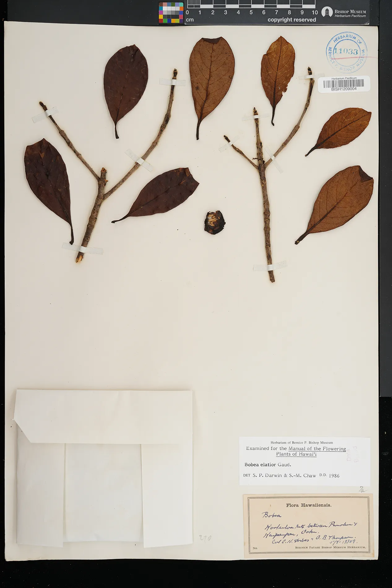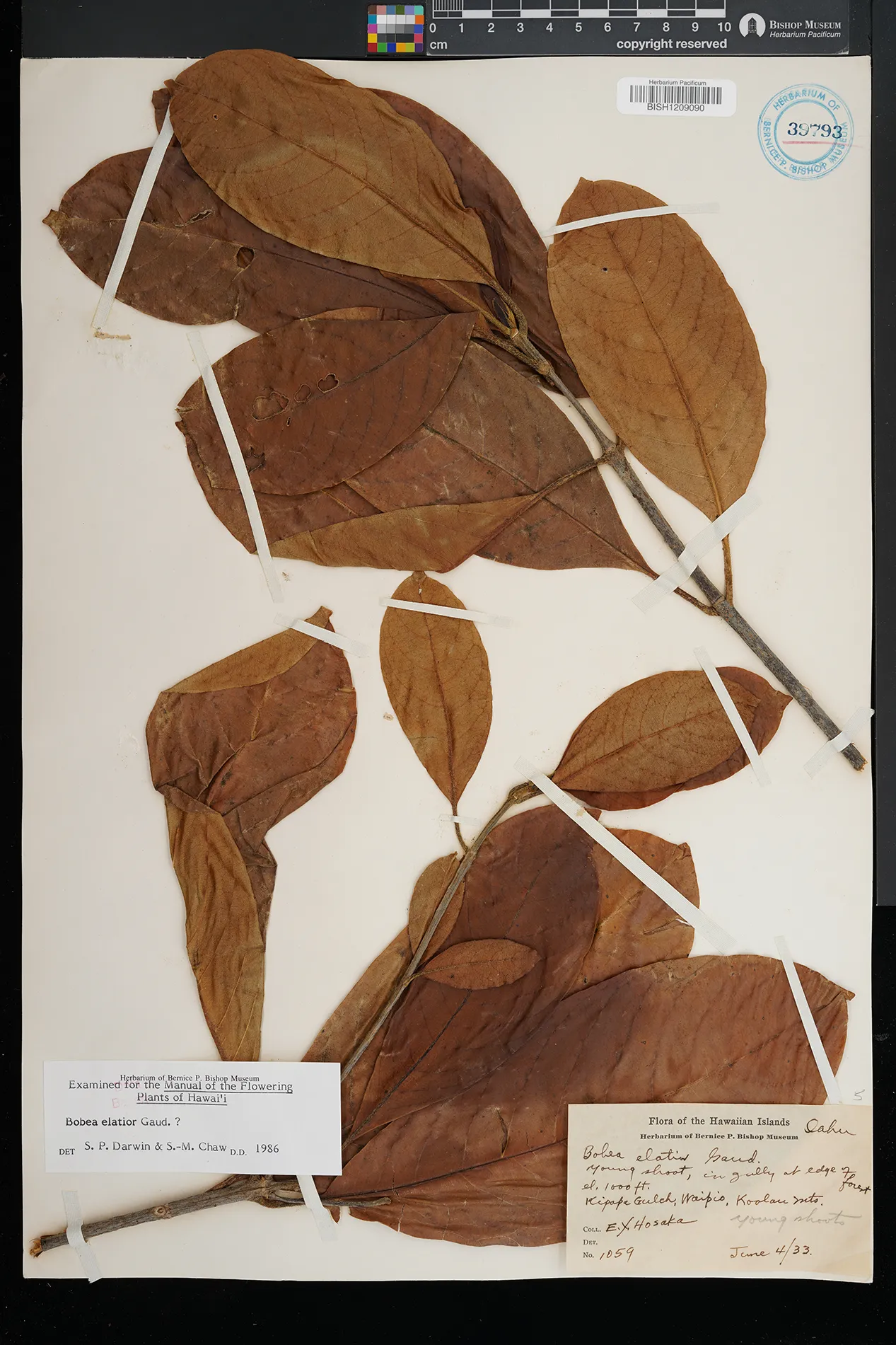 Leaves: Leaves simple. Opposite. Blades elliptic to obovate, (1.5–)3–15 cm long, (1–)4–5.5(–8) cm wide. Apex acute to obtuse. Base acute to long–attenuate. Surfaces usually glabrous, domatia somewhat elevated, porate, subglabrous, often scattered over blade, or sometimes absent chartaceous to subcoriaceous. Margins entire. Secondary veins 7–10 on each side of midrib, often reddish pellucid. Petioles (5–)10–25(–50) mm long, sometimes winged distally, glabrous. Stipules ovate to lanceolate, strongly imbricate in bud, 7–22 mm long, 4–9 mm wide, acute to acuminate, upper surface villous toward base, lower surface glabrous or slightly pubescent toward apex.