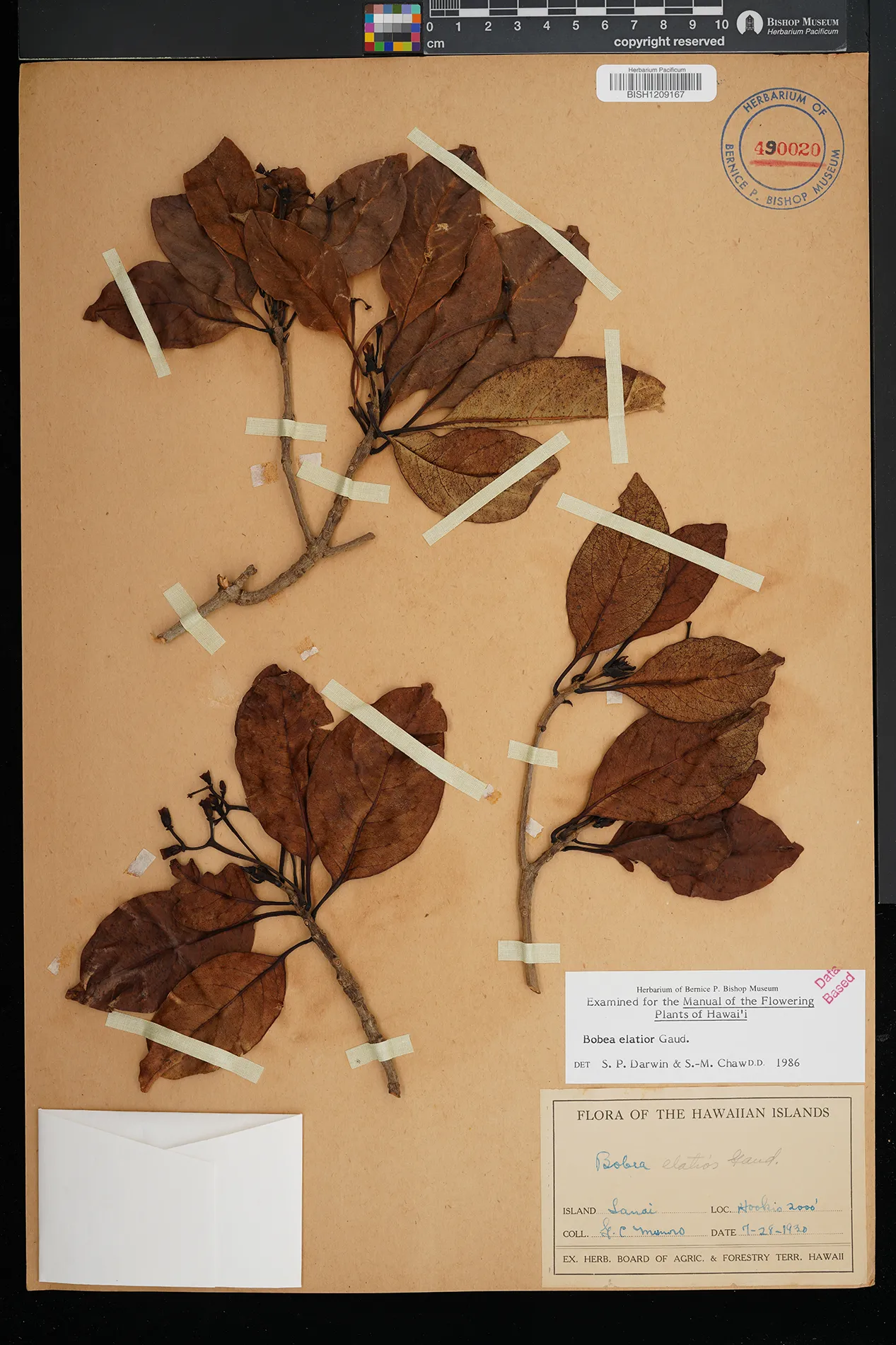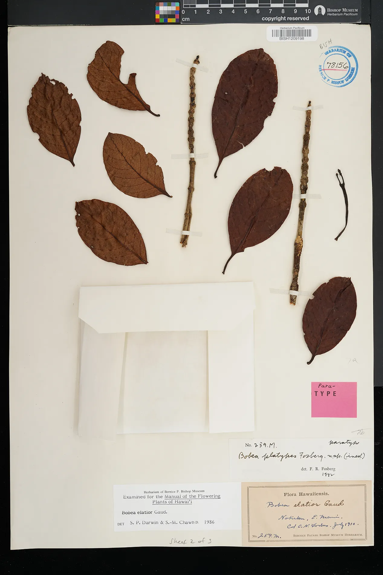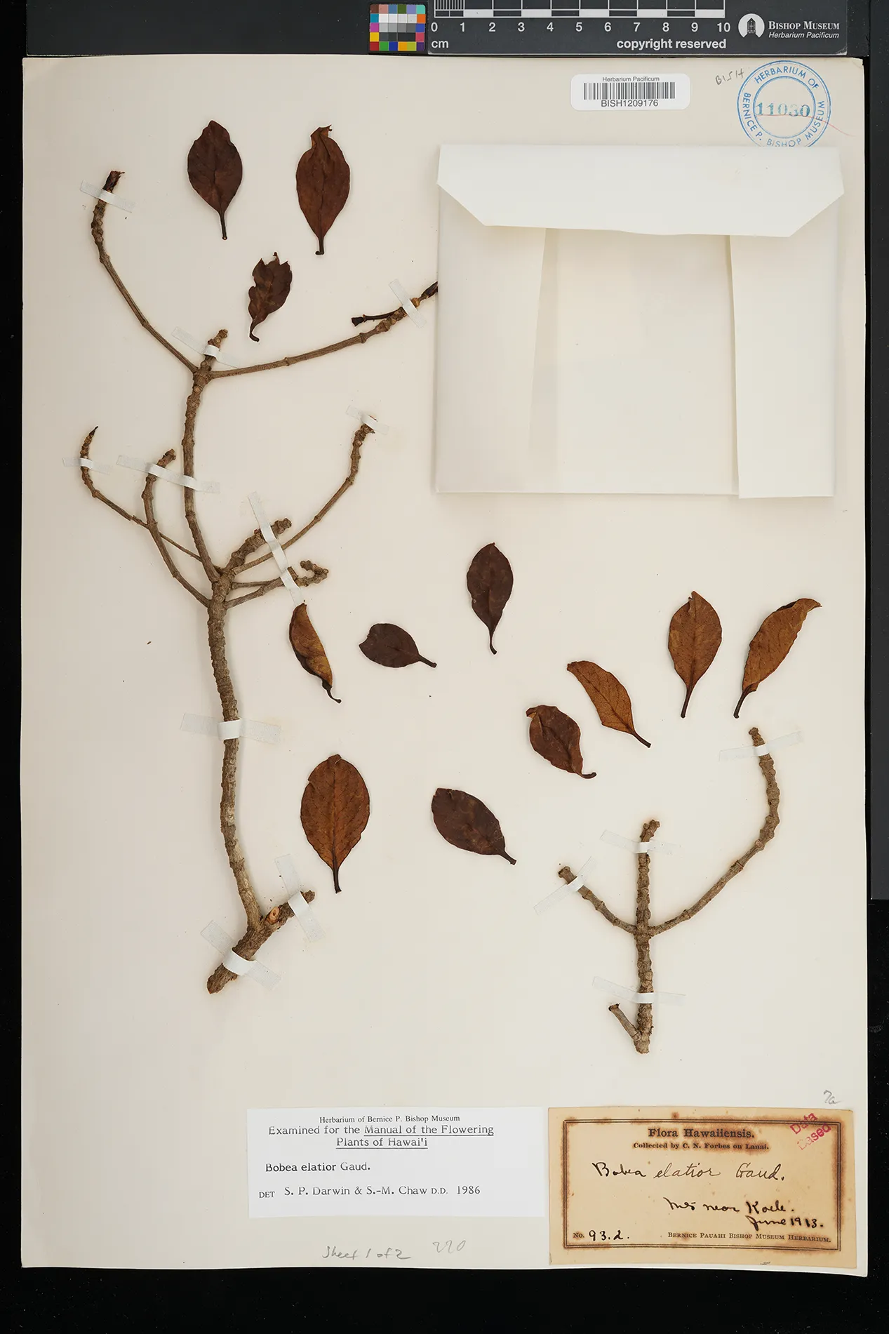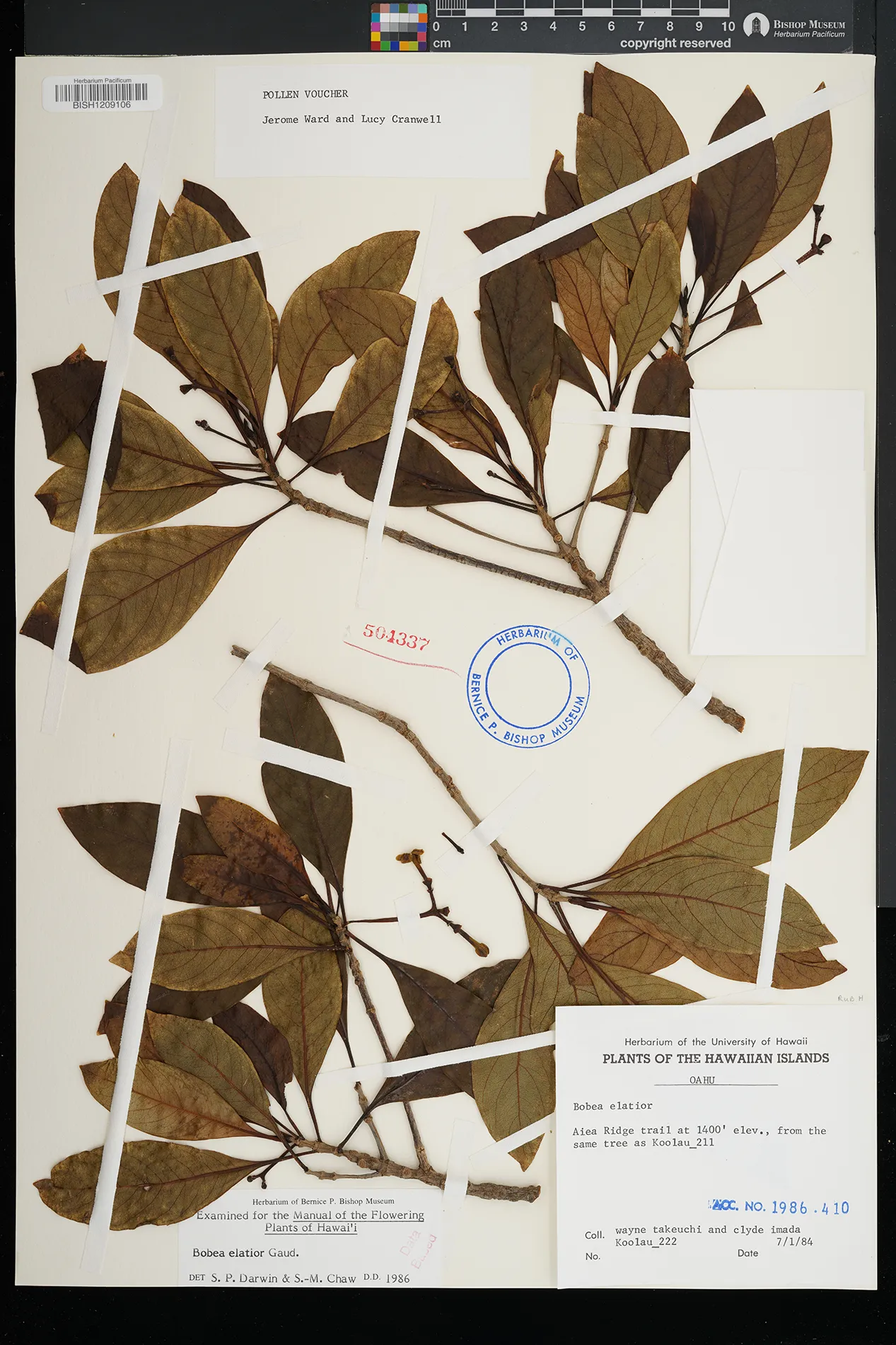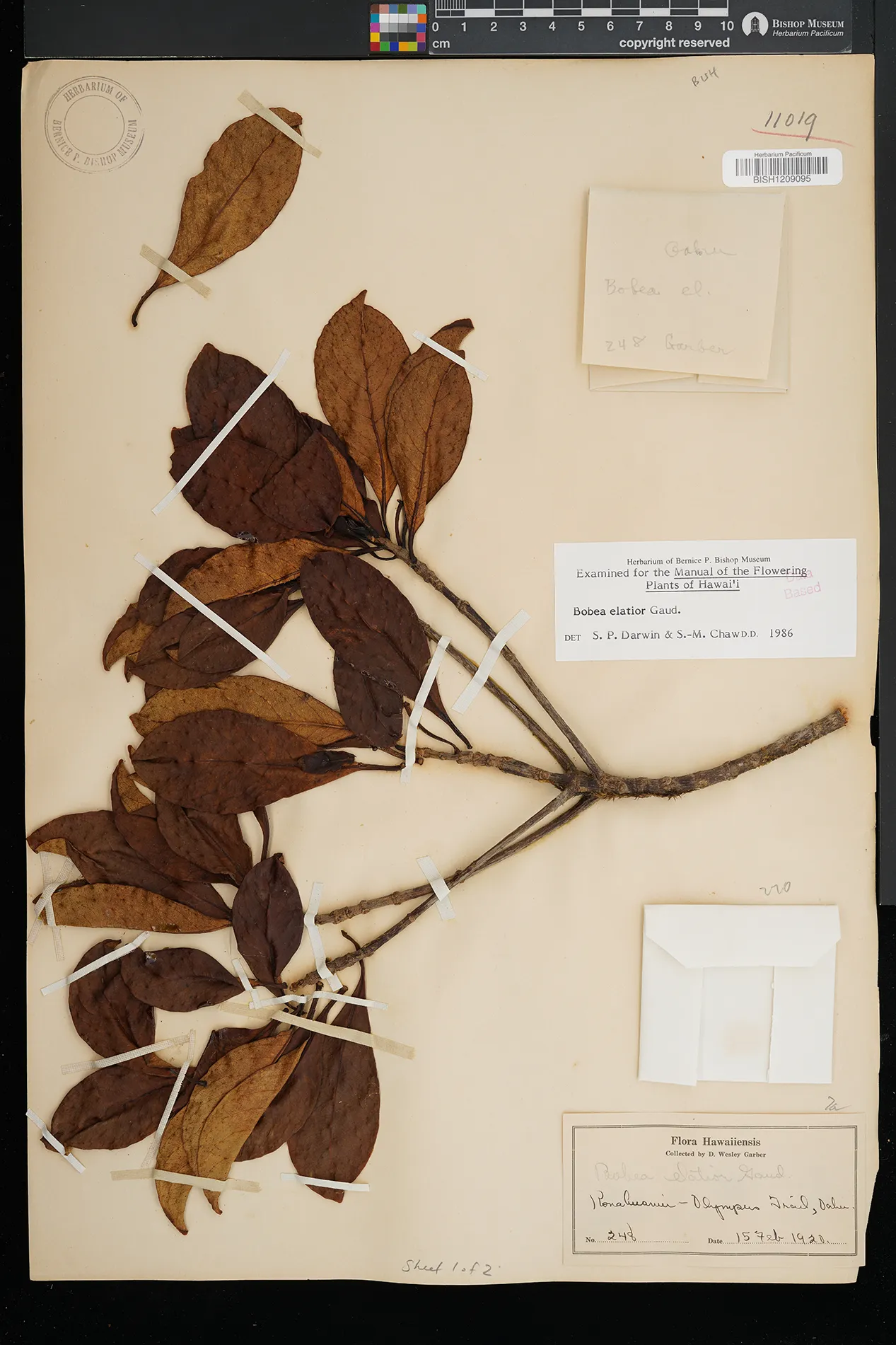 Leaves: Leaves simple. Opposite. Blades elliptic to obovate, (1.5–)3–15 cm long, (1–)4–5.5(–8) cm wide. Apex acute to obtuse. Base acute to long–attenuate. Surfaces usually glabrous, domatia somewhat elevated, porate, subglabrous, often scattered over blade, or sometimes absent chartaceous to subcoriaceous. Margins entire. Secondary veins 7–10 on each side of midrib, often reddish pellucid. Petioles (5–)10–25(–50) mm long, sometimes winged distally, glabrous. Stipules ovate to lanceolate, strongly imbricate in bud, 7–22 mm long, 4–9 mm wide, acute to acuminate, upper surface villous toward base, lower surface glabrous or slightly pubescent toward apex.