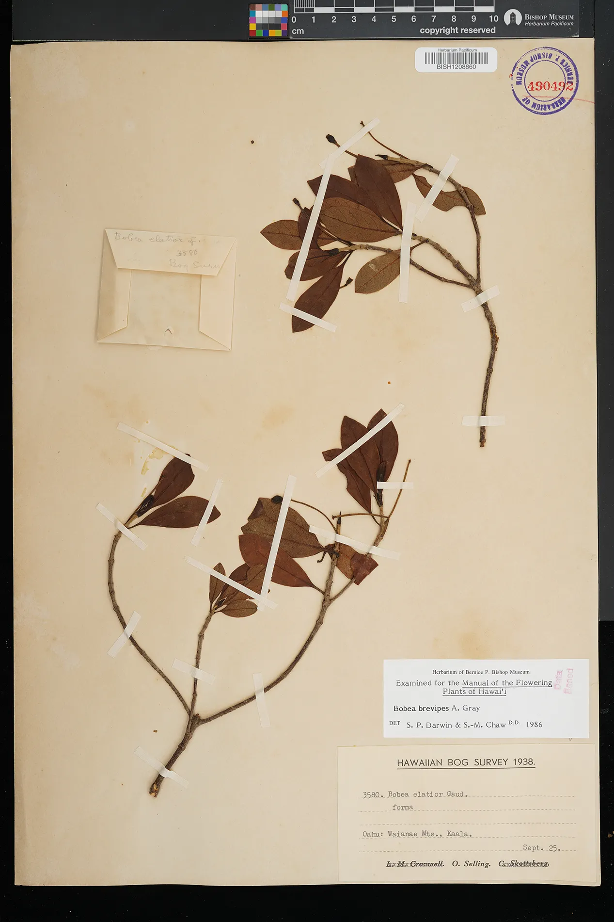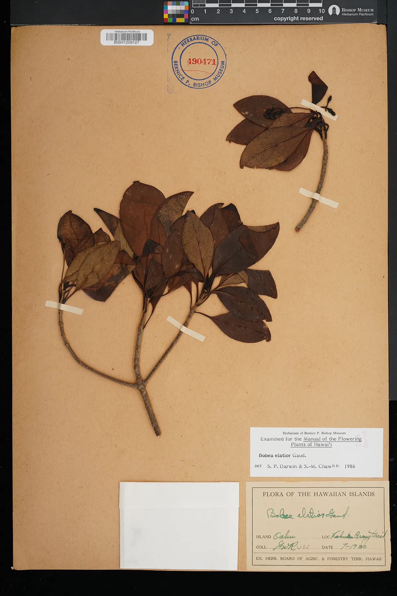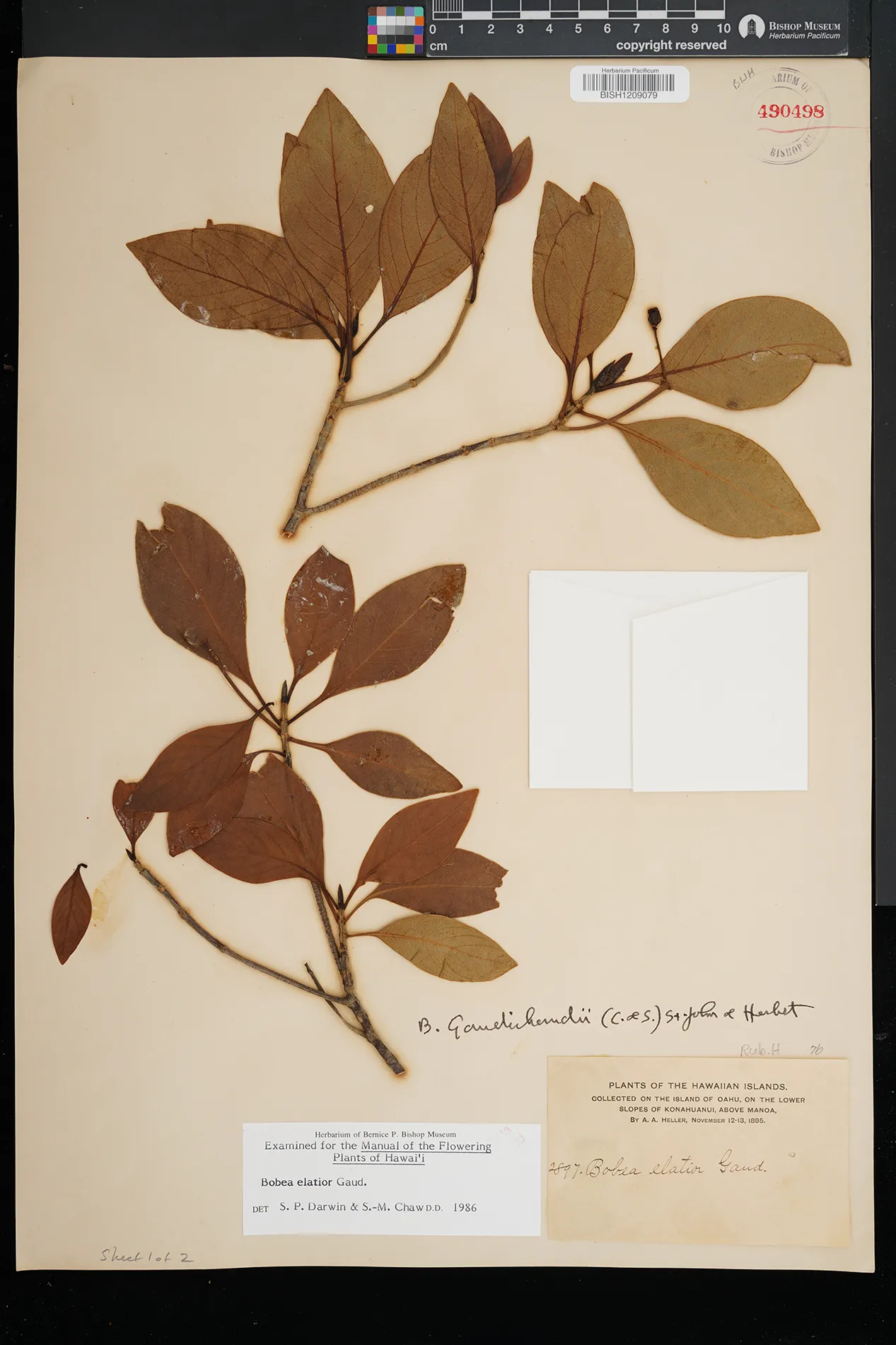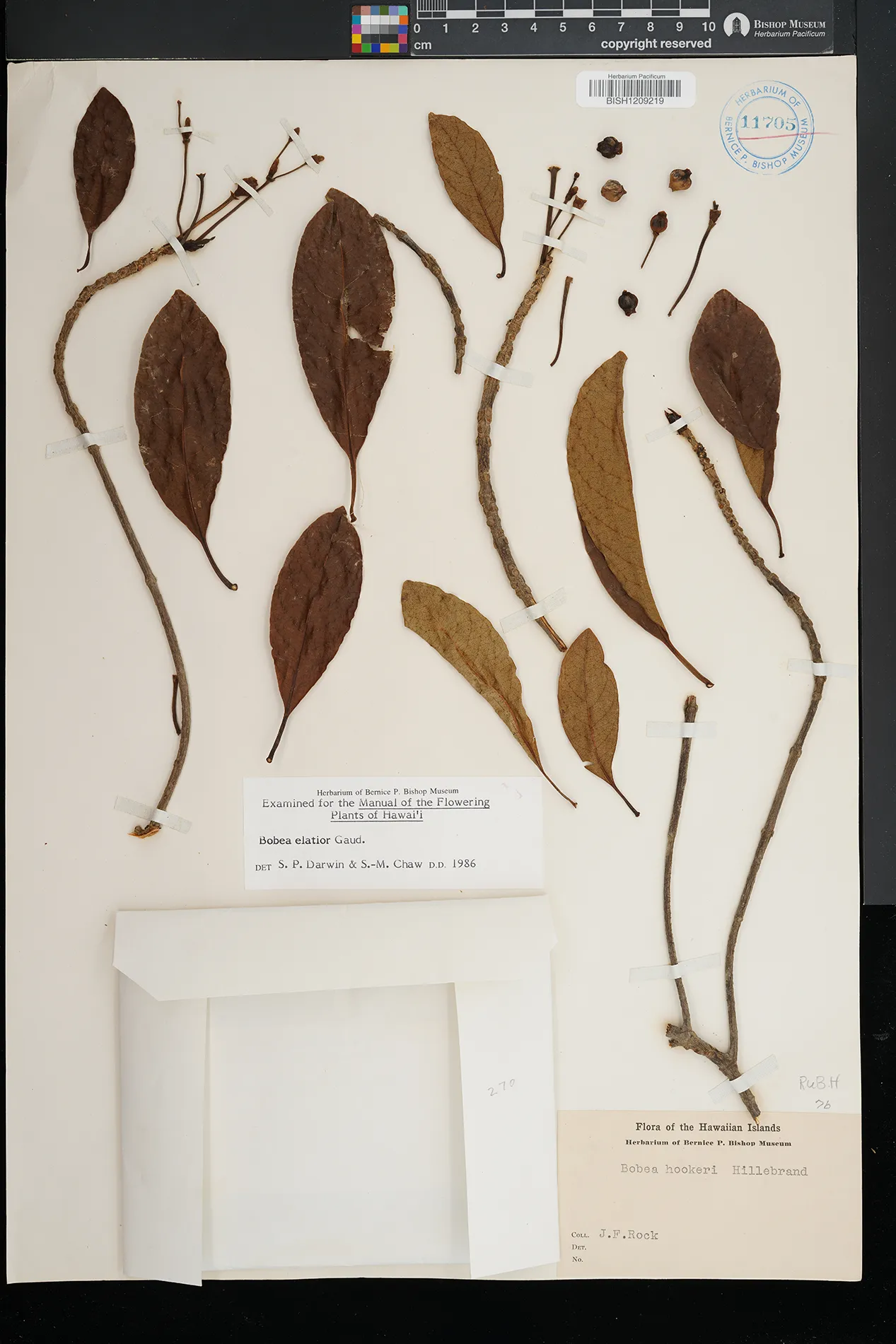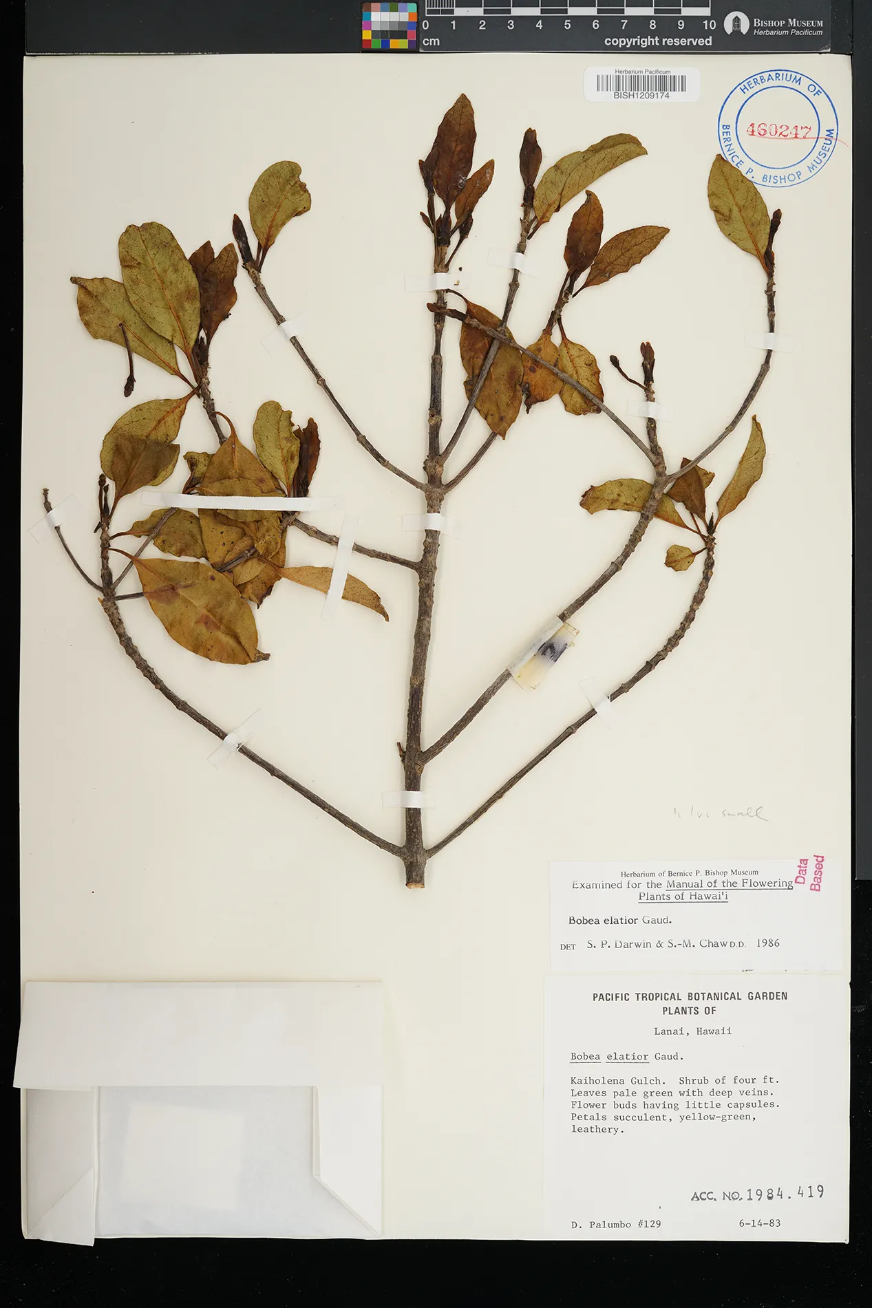 Leaves: Leaves simple. Opposite. Blades elliptic to obovate, (1.5–)3–15 cm long, (1–)4–5.5(–8) cm wide. Apex acute to obtuse. Base acute to long–attenuate. Surfaces usually glabrous, domatia somewhat elevated, porate, subglabrous, often scattered over blade, or sometimes absent chartaceous to subcoriaceous. Margins entire. Secondary veins 7–10 on each side of midrib, often reddish pellucid. Petioles (5–)10–25(–50) mm long, sometimes winged distally, glabrous. Stipules ovate to lanceolate, strongly imbricate in bud, 7–22 mm long, 4–9 mm wide, acute to acuminate, upper surface villous toward base, lower surface glabrous or slightly pubescent toward apex.