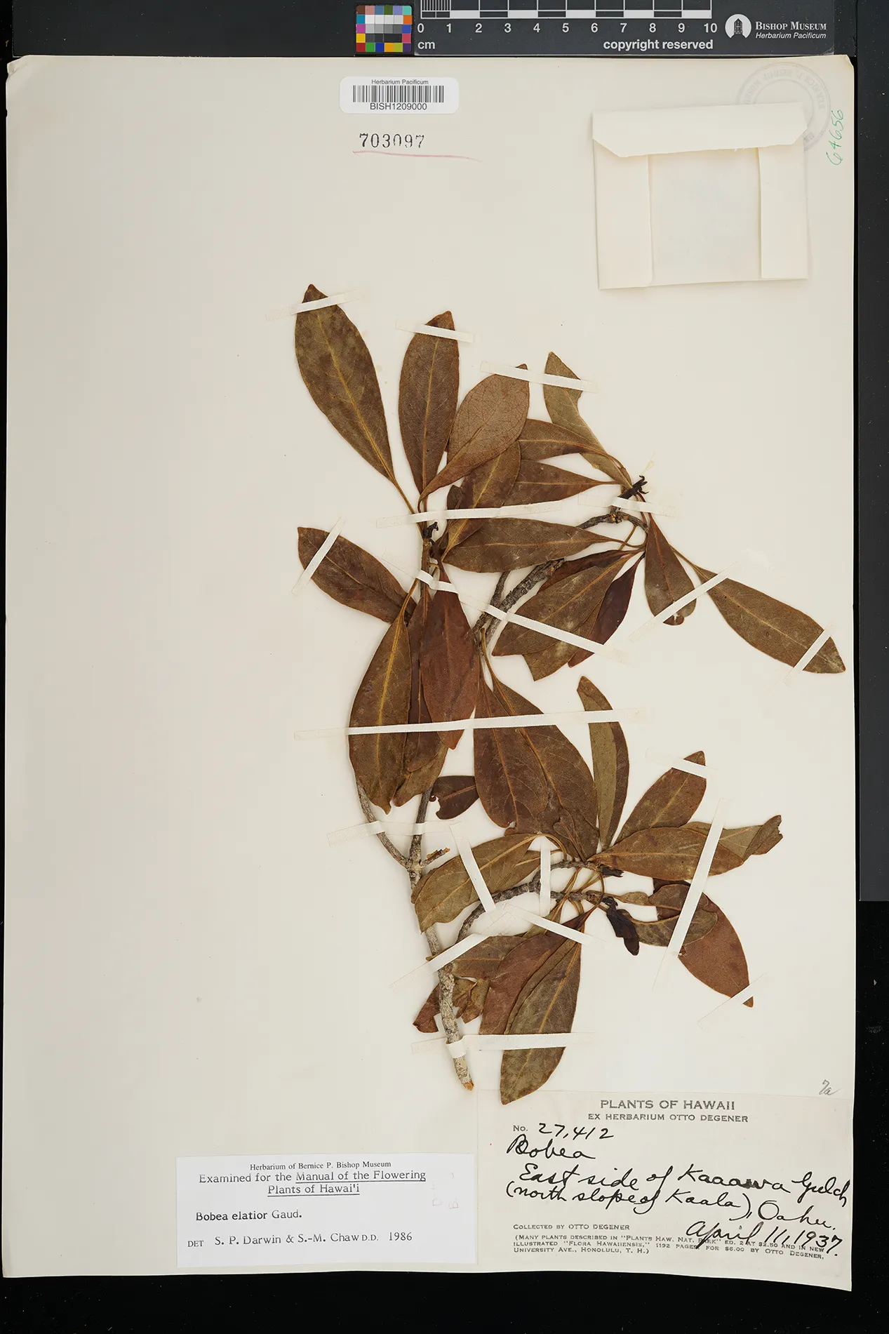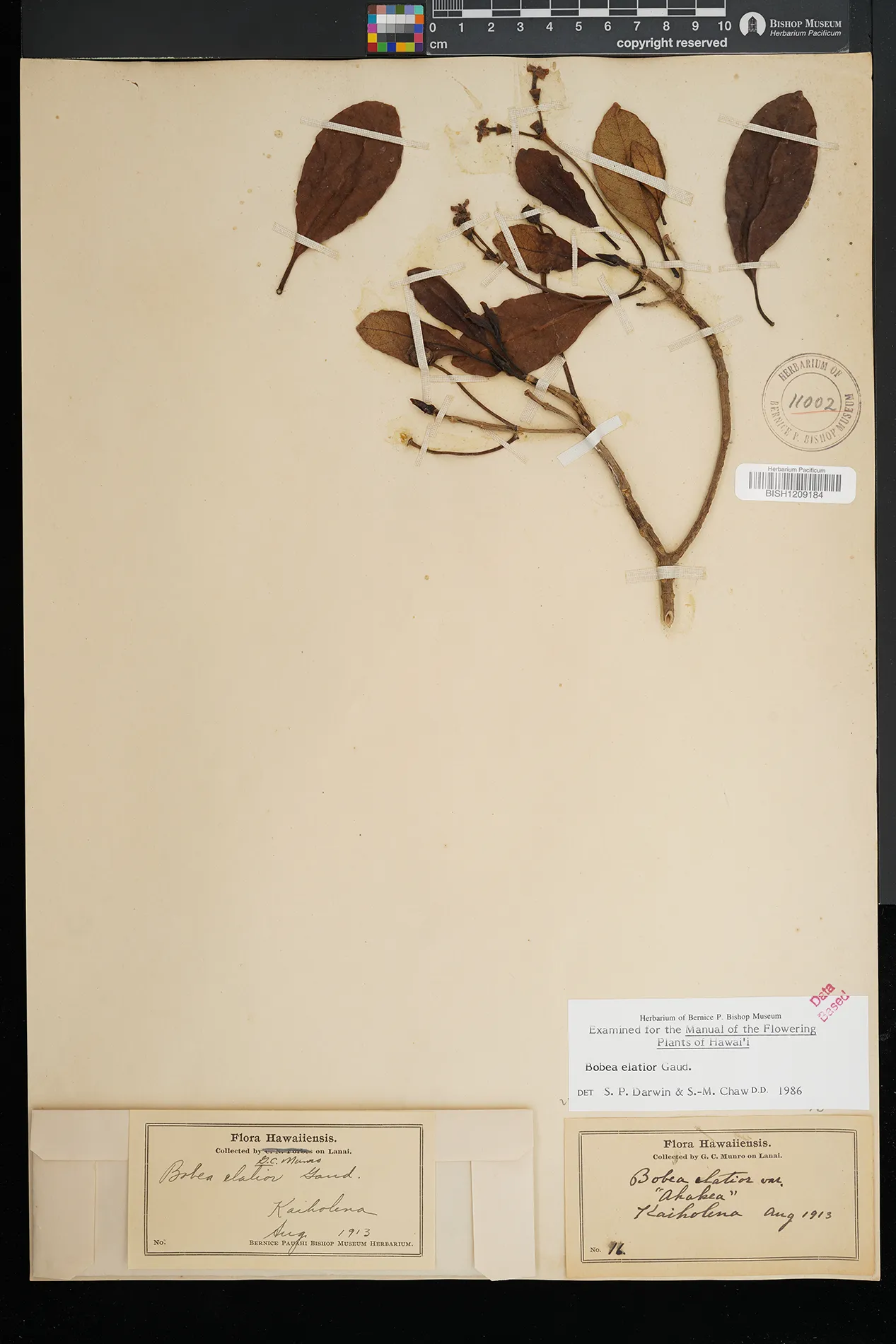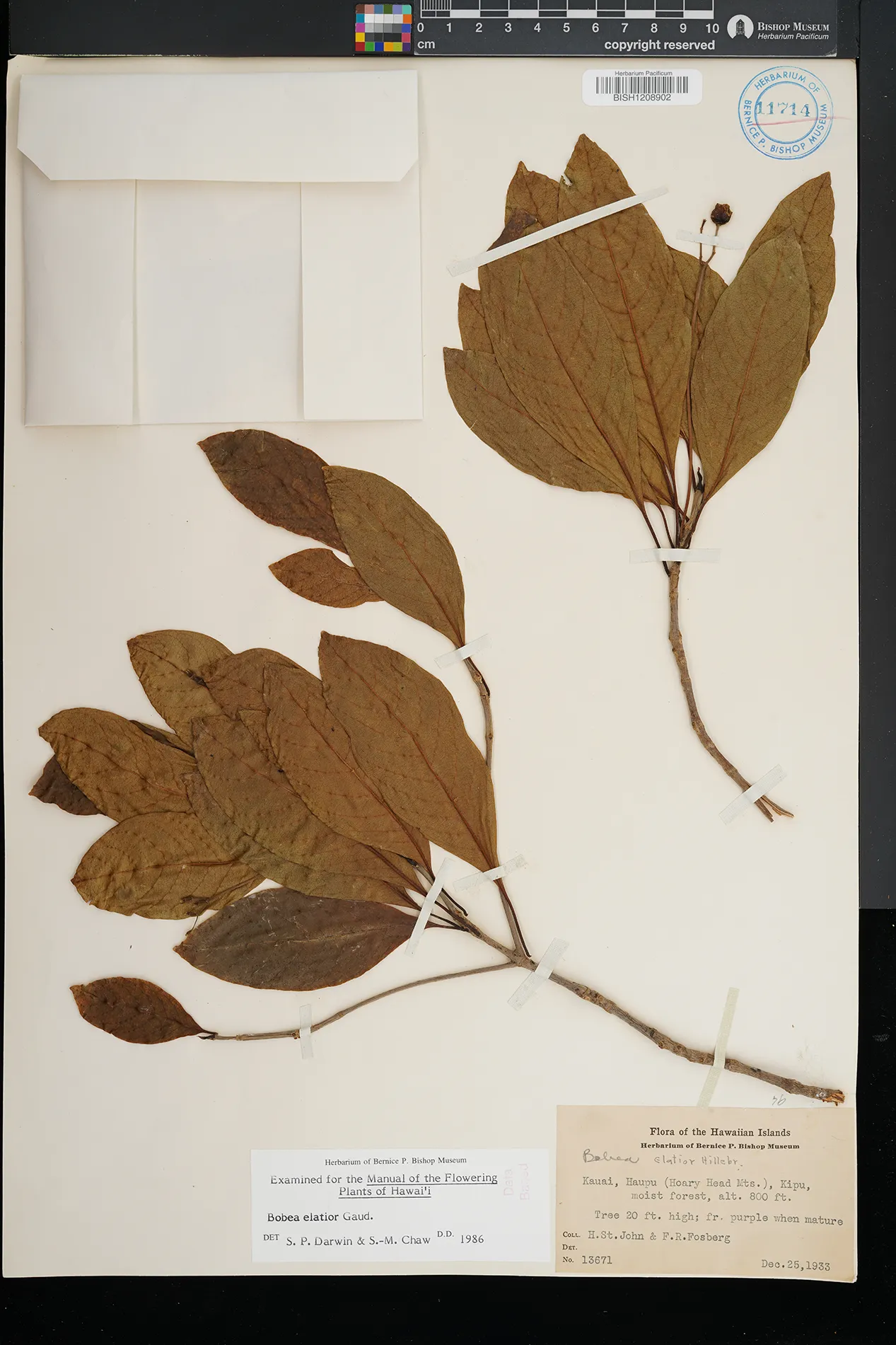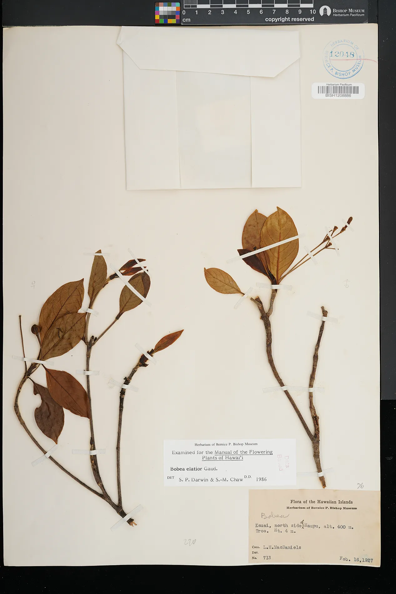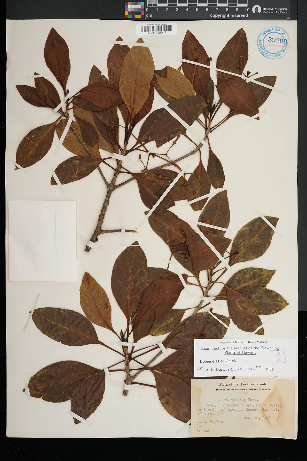 Leaves: Leaves simple. Opposite. Blades elliptic to obovate, (1.5–)3–15 cm long, (1–)4–5.5(–8) cm wide. Apex acute to obtuse. Base acute to long–attenuate. Surfaces usually glabrous, domatia somewhat elevated, porate, subglabrous, often scattered over blade, or sometimes absent chartaceous to subcoriaceous. Margins entire. Secondary veins 7–10 on each side of midrib, often reddish pellucid. Petioles (5–)10–25(–50) mm long, sometimes winged distally, glabrous. Stipules ovate to lanceolate, strongly imbricate in bud, 7–22 mm long, 4–9 mm wide, acute to acuminate, upper surface villous toward base, lower surface glabrous or slightly pubescent toward apex.