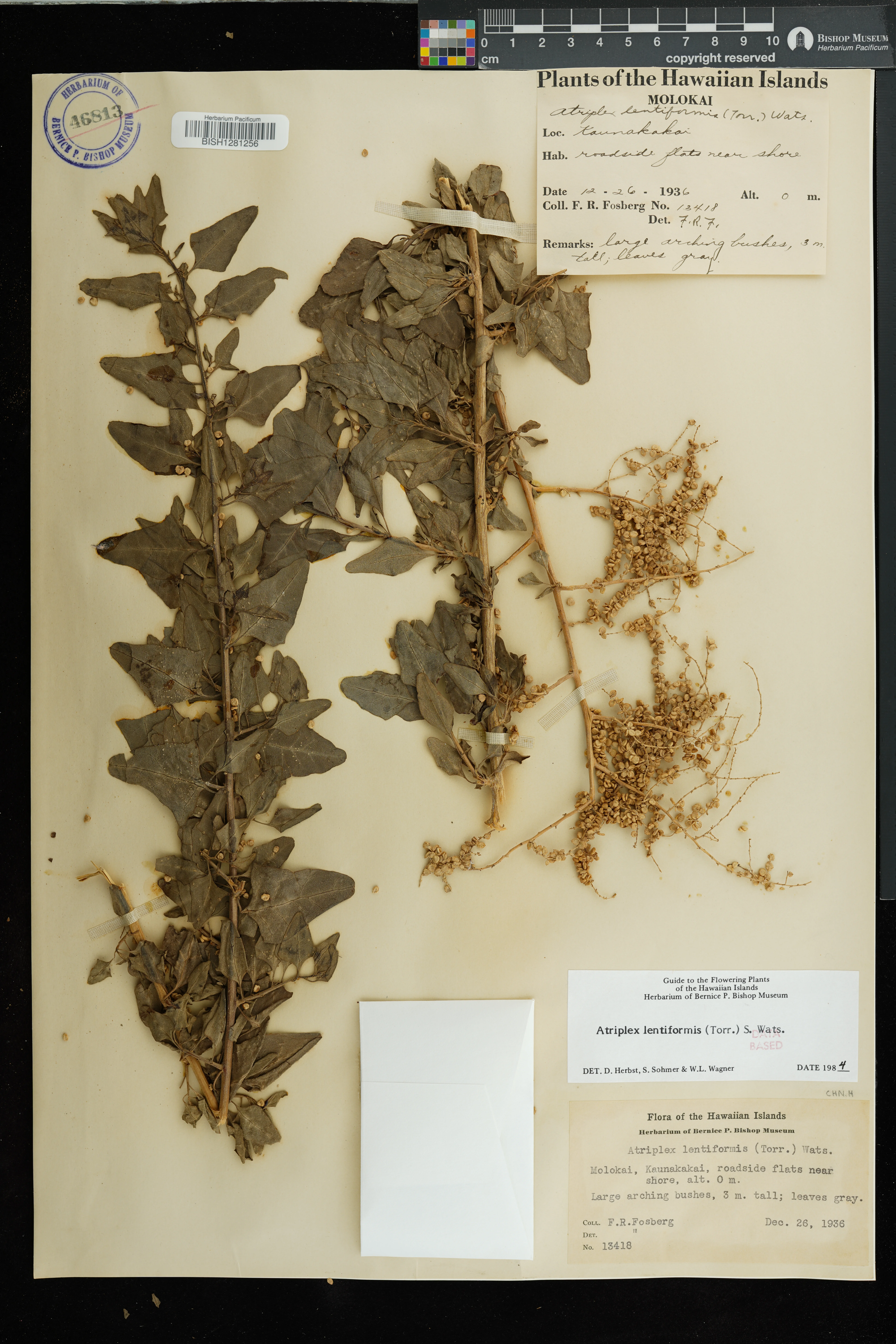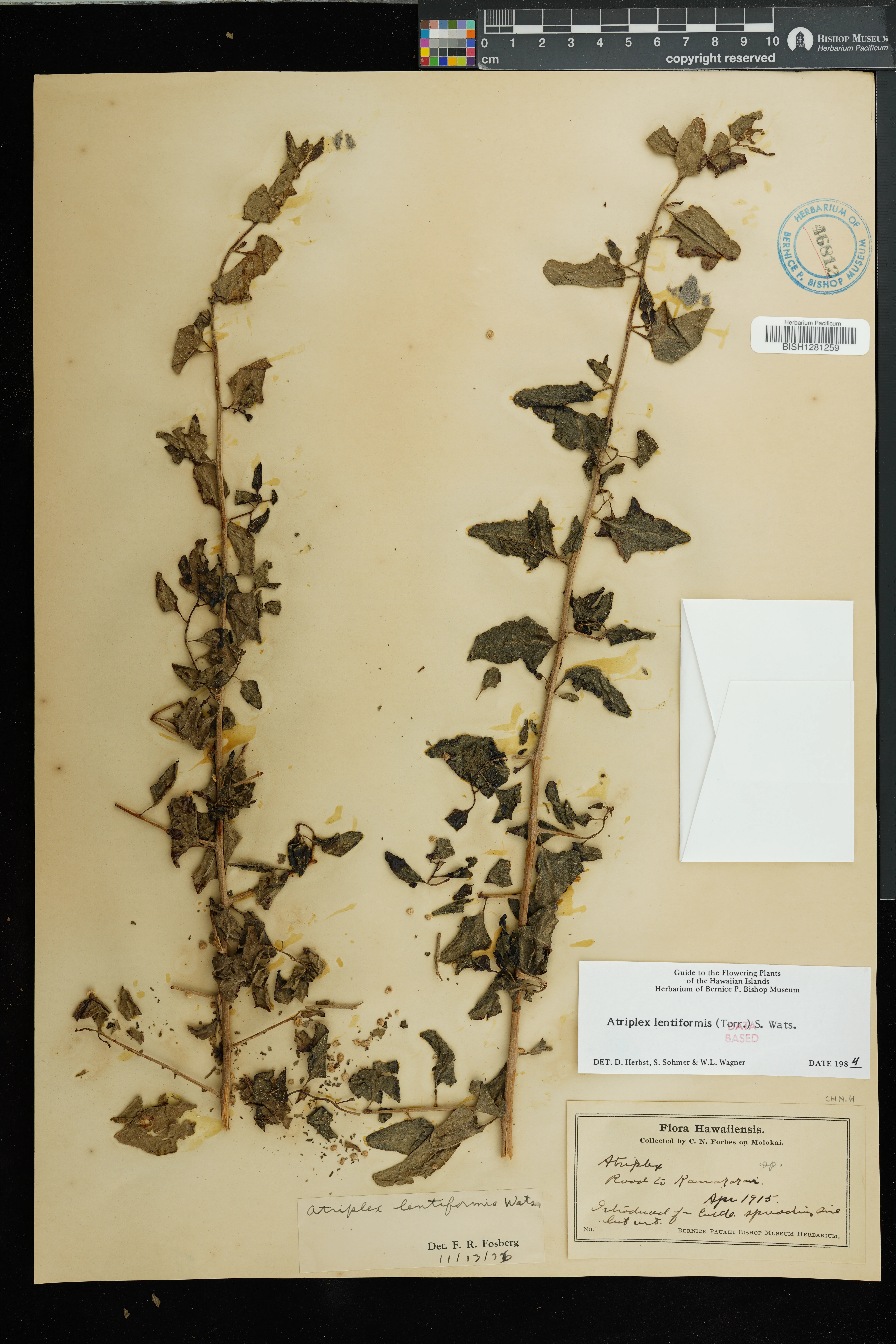 | 12 | Atriplex lentiformis | (Torr.) S.Watson | road to Kaunakakai | PRESERVED_SPECIMEN | Forbes, C.N. | s.n. | Molokai | BISH | 4/1/1915 | |