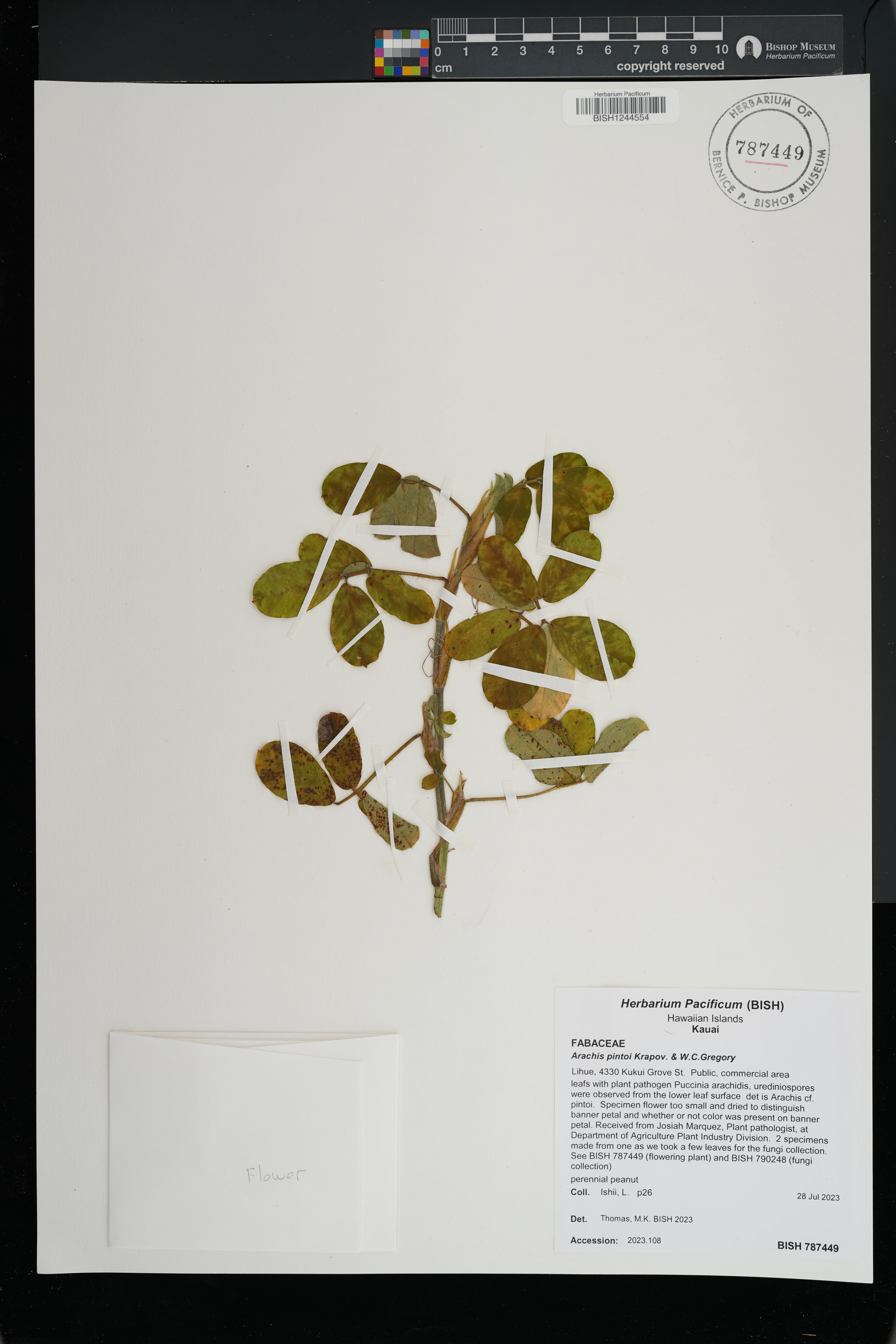 | 4 | Arachis pintoi | Krapov. & W.C.Greg. | waimanalo. frankie's nursery, 41-999 mahiku place | PRESERVED_SPECIMEN | sekiya, f. | collector number: s.n. | Oahu | BISH | 7/10/1996 | |