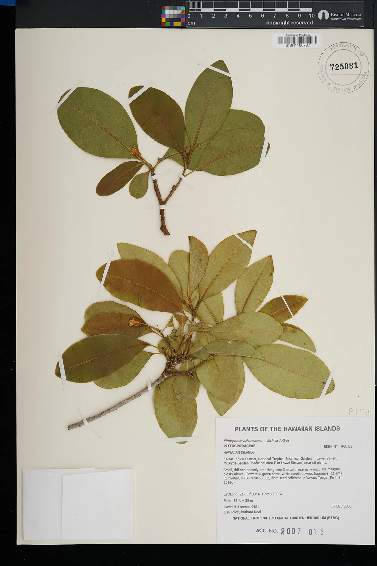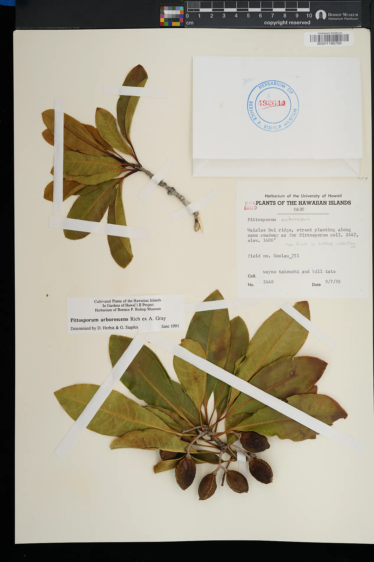 waialae nui ridge, street plantings along same roadway as for pittosporum coll. 2447. field no. koolau 751 |