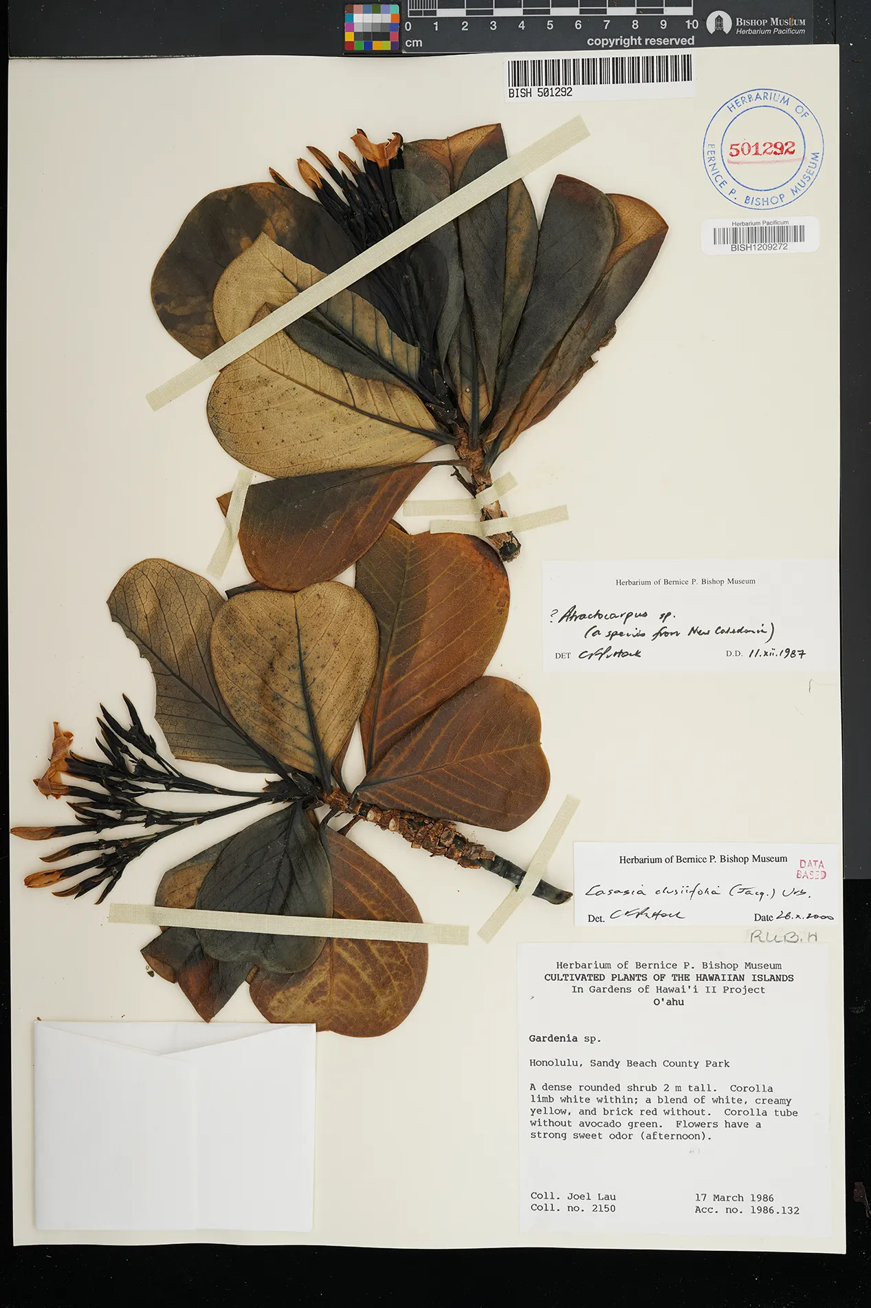 | 7 | Casasia clusiifolia | (Jacq.) Urb. | Sandy Beach | PRESERVED_SPECIMEN | Corn, C. | s.n. | Oahu | BISH | 11/11/1987 | |