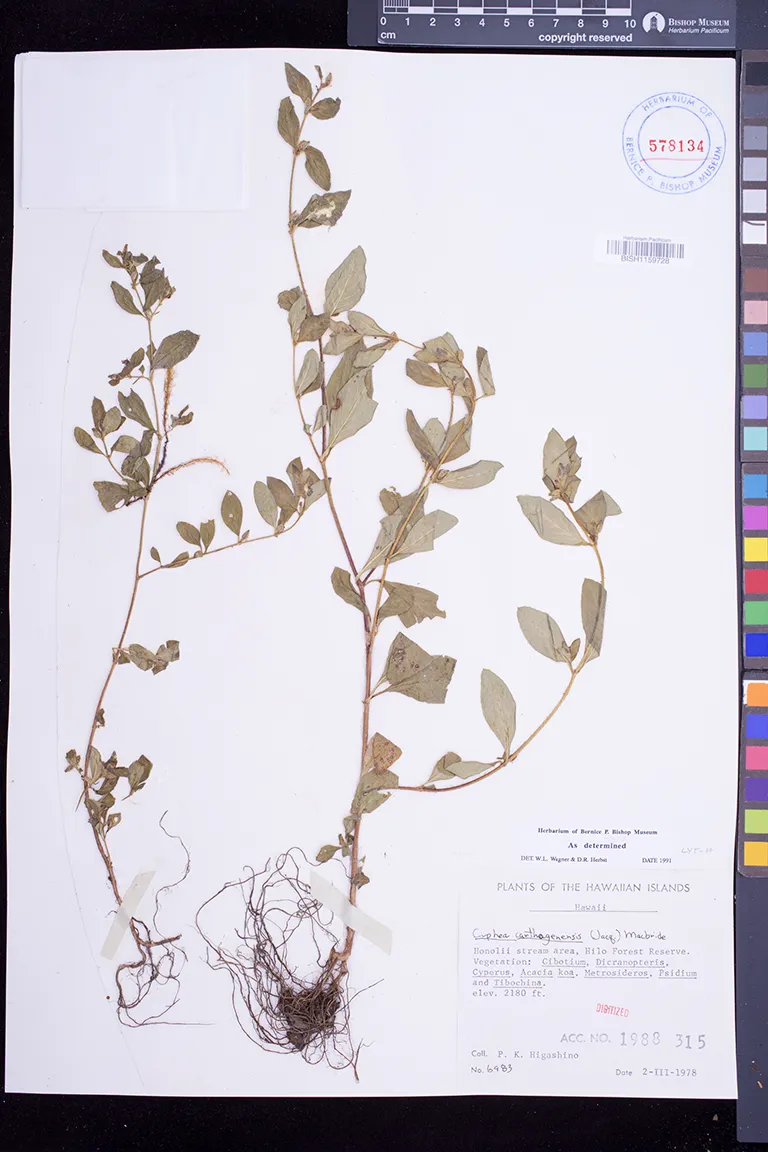 Growing in jeep trail through disturbed Metrosidoers forest. |